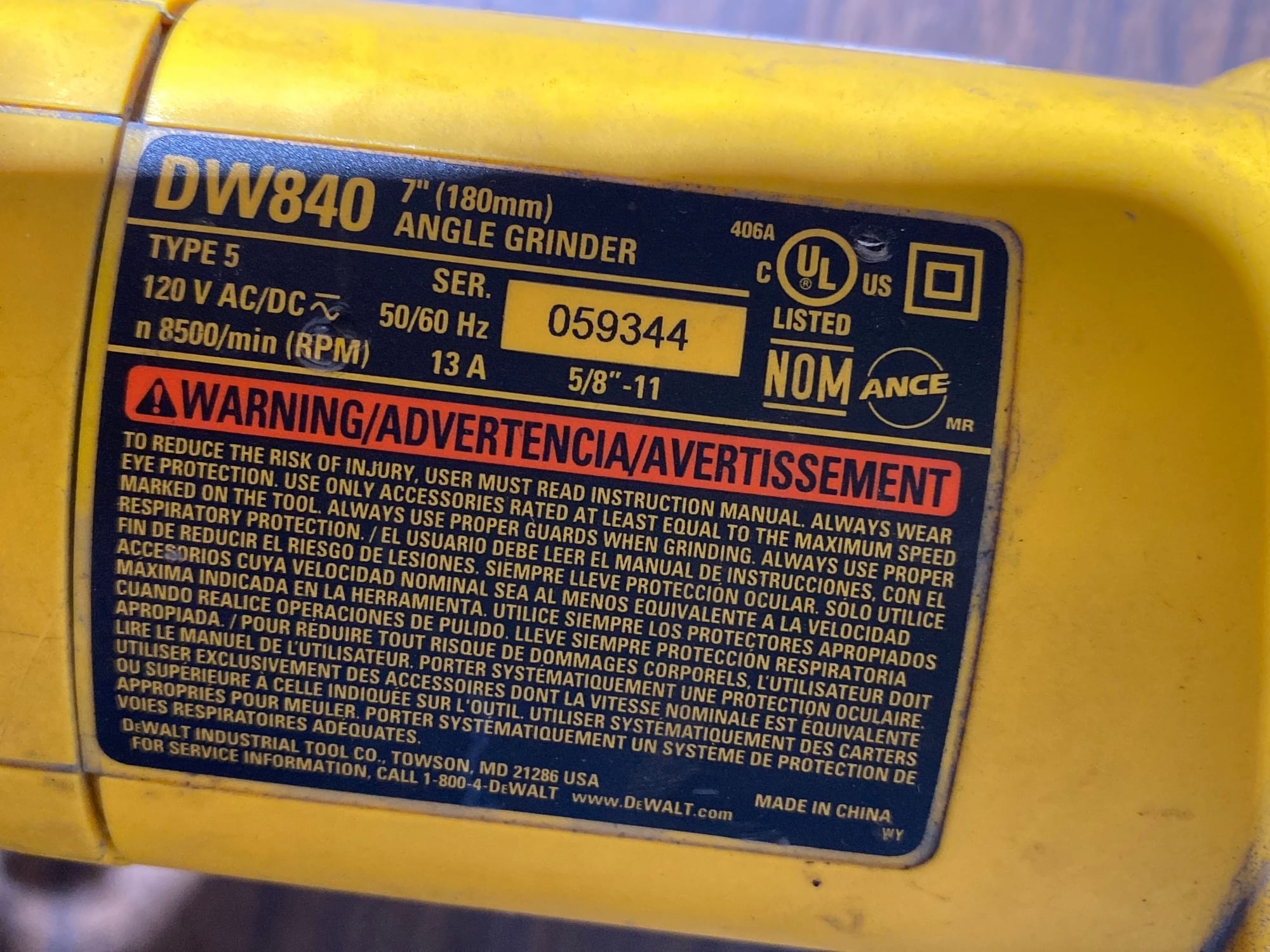 33 DeWalt DW840 Electric 7” Angle Grinder (works)