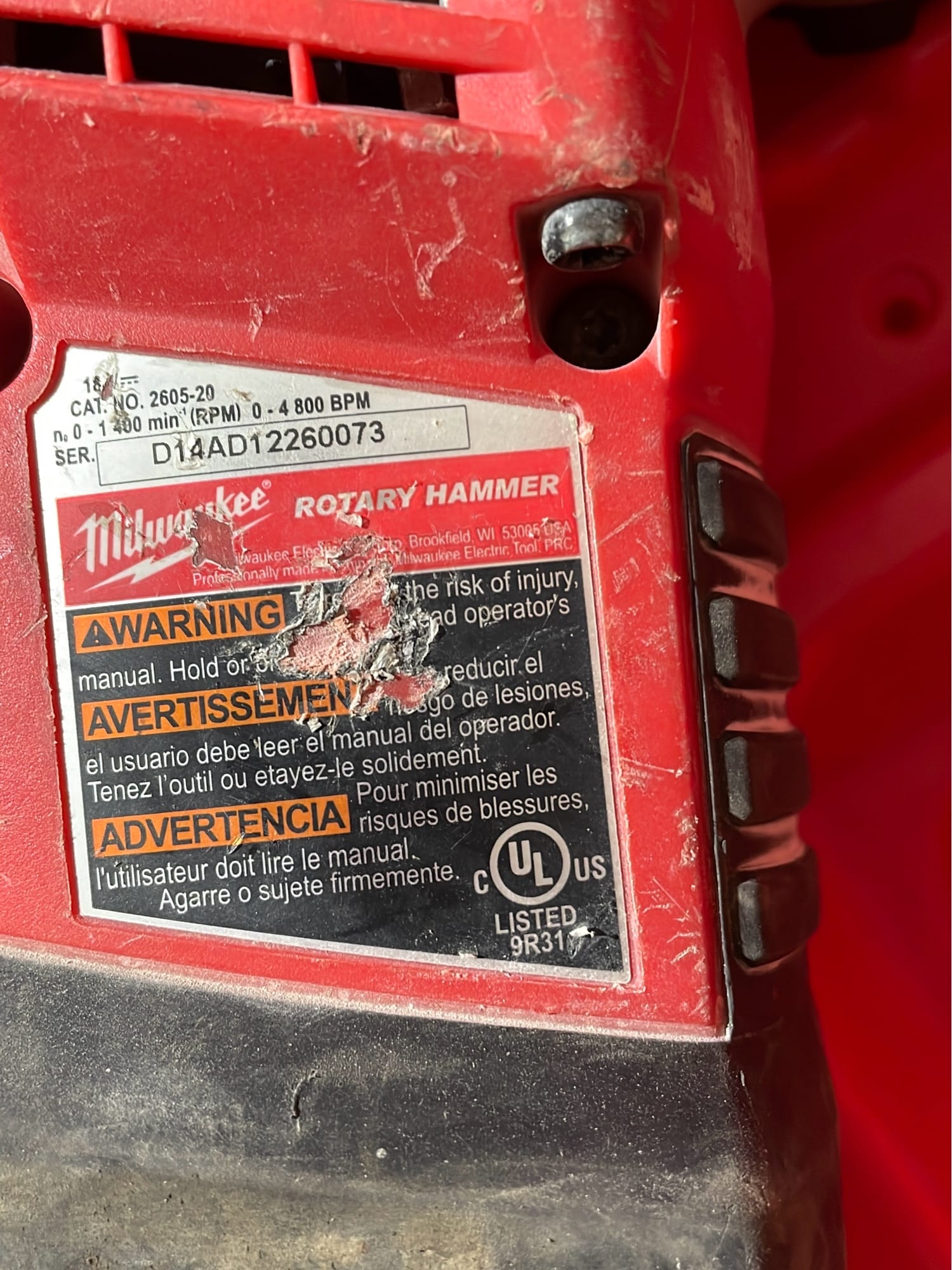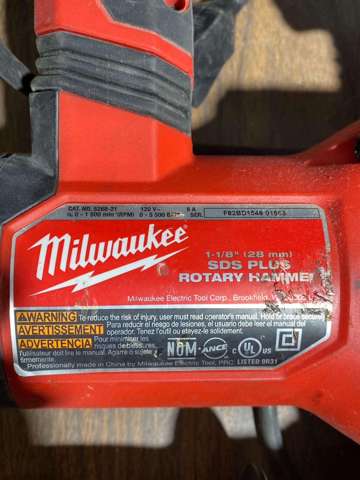 35 Milwaukee 1 1/8” SDS Plus Rotary Hammer Serial #F82BD1548 01563