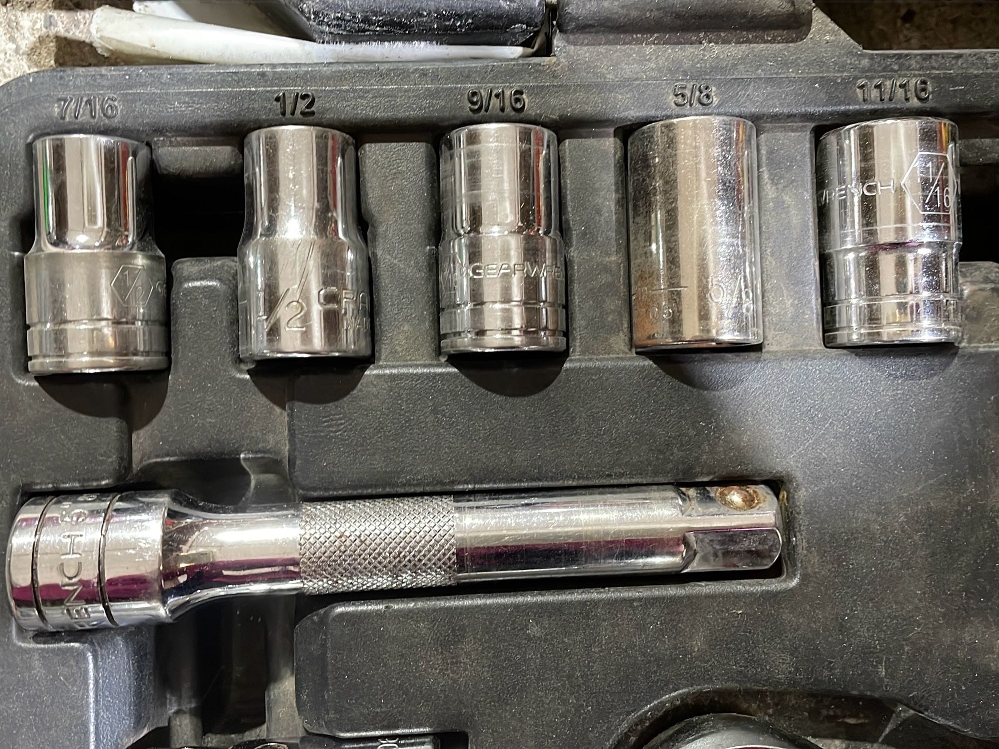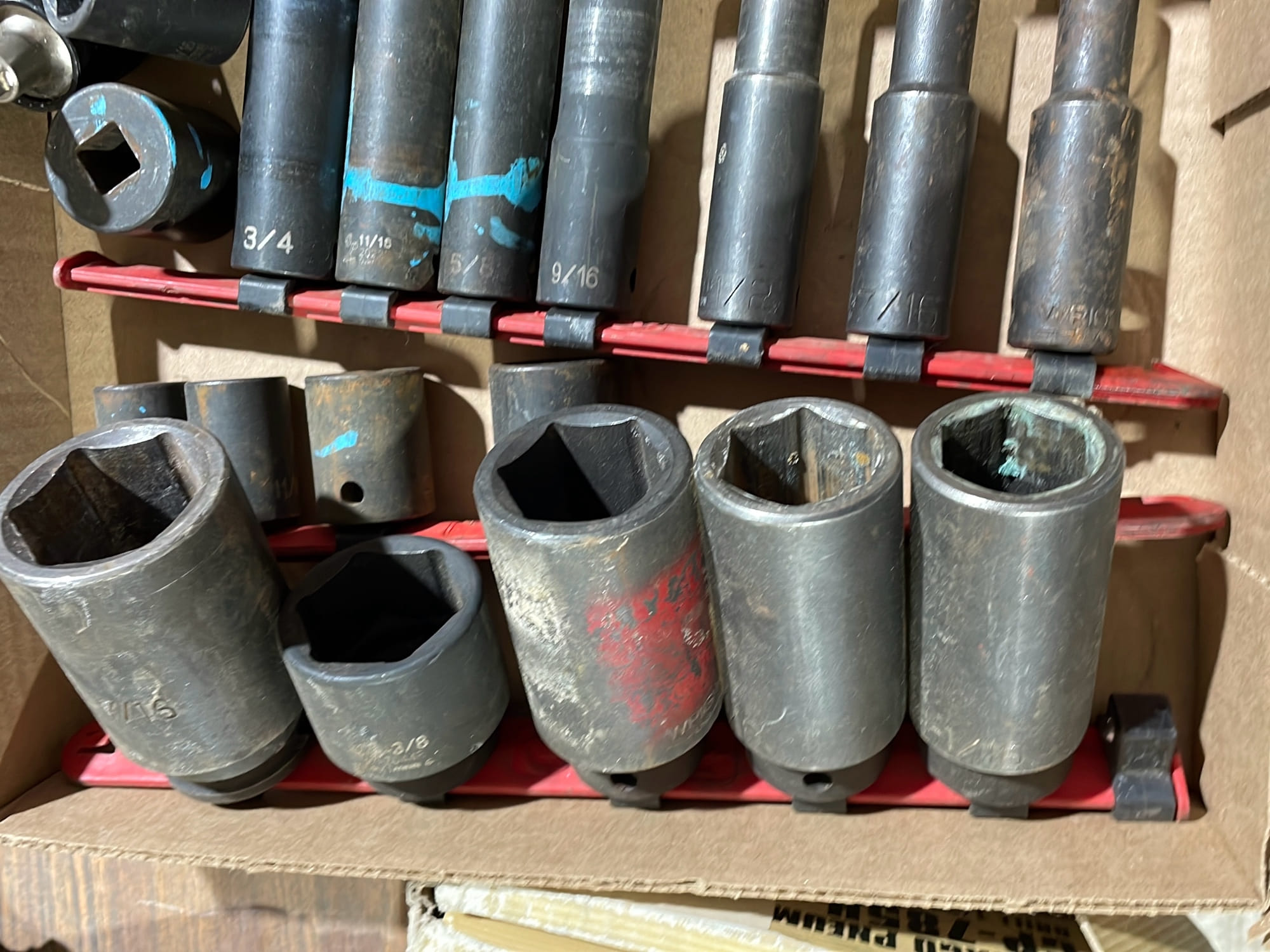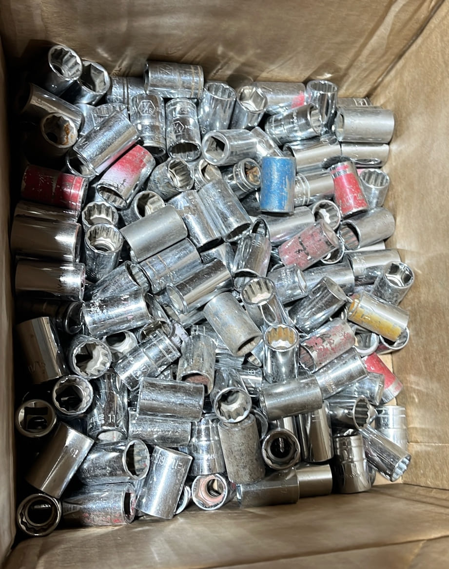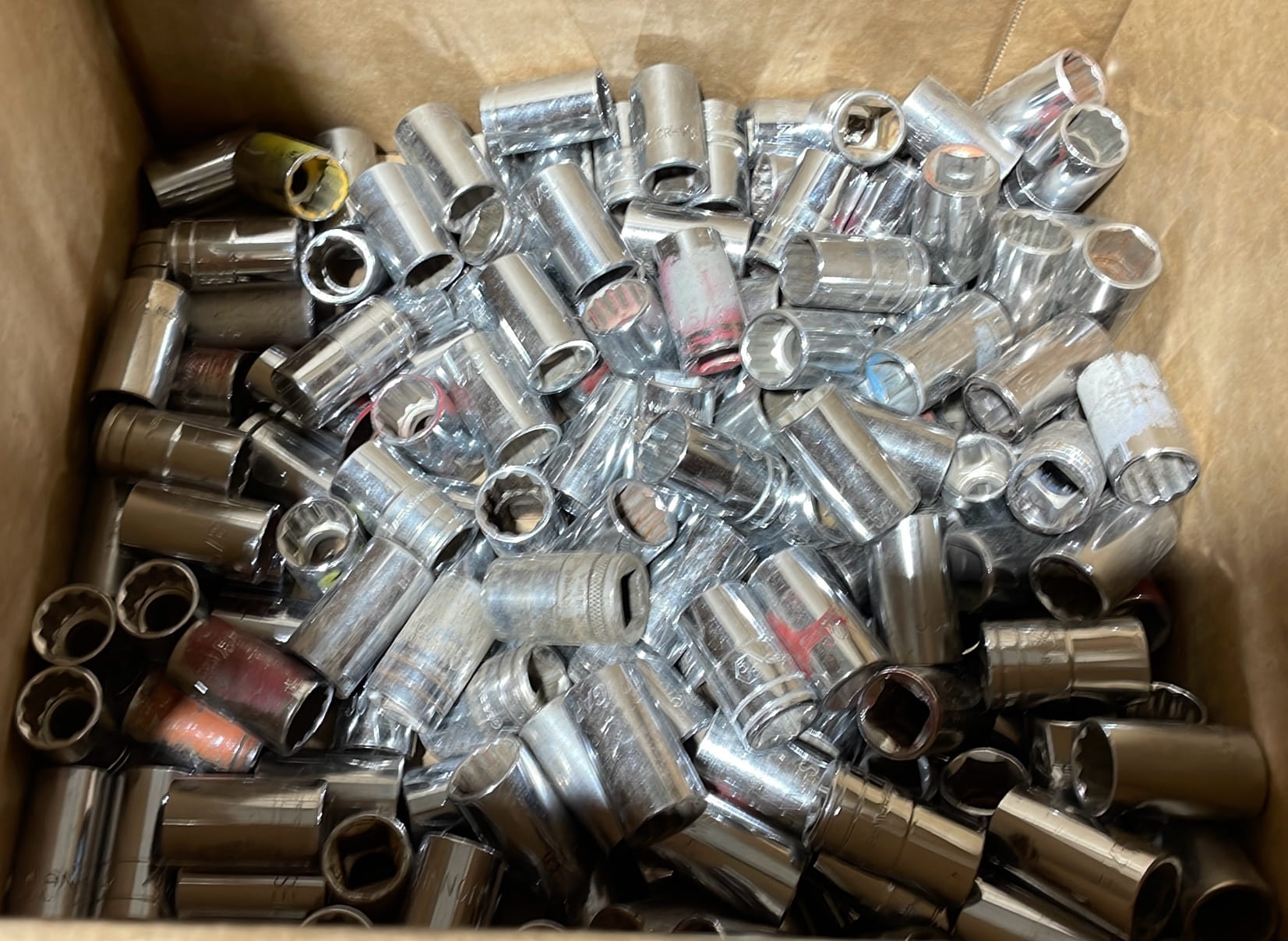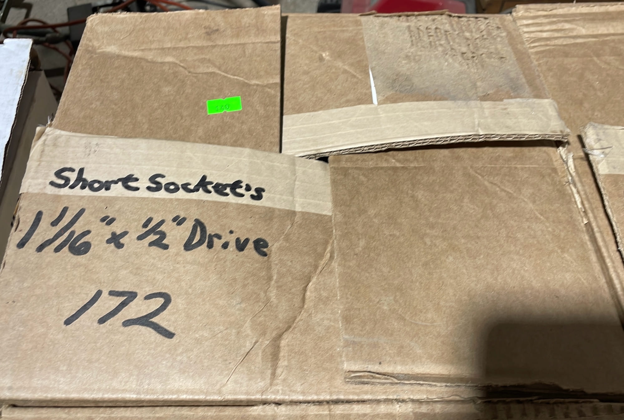 692 Socket assortment in plastic bin including Powerbuilt 7/16”, craftsman 1/4” 12mm, craftsman 1/4” 7/16”