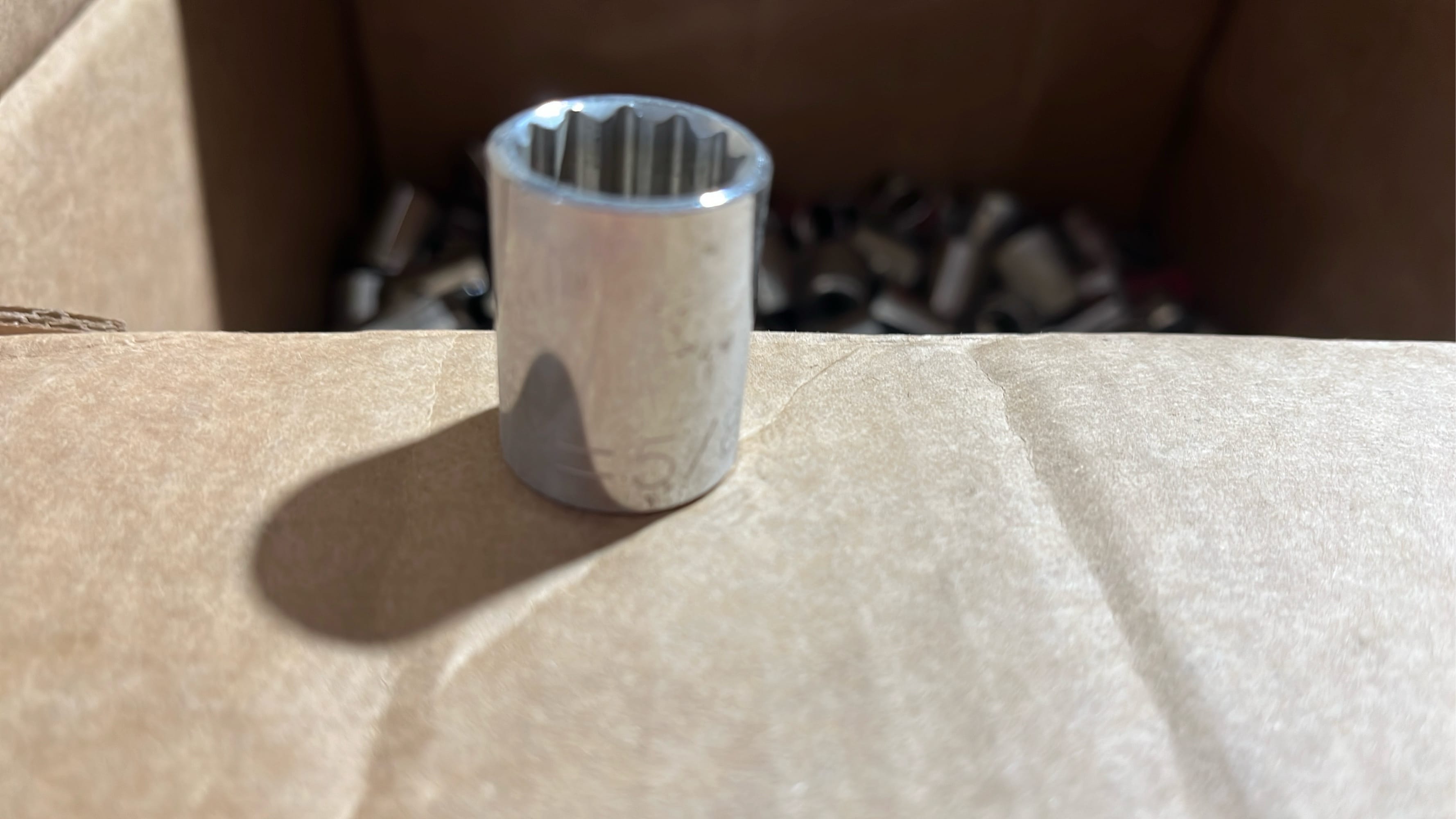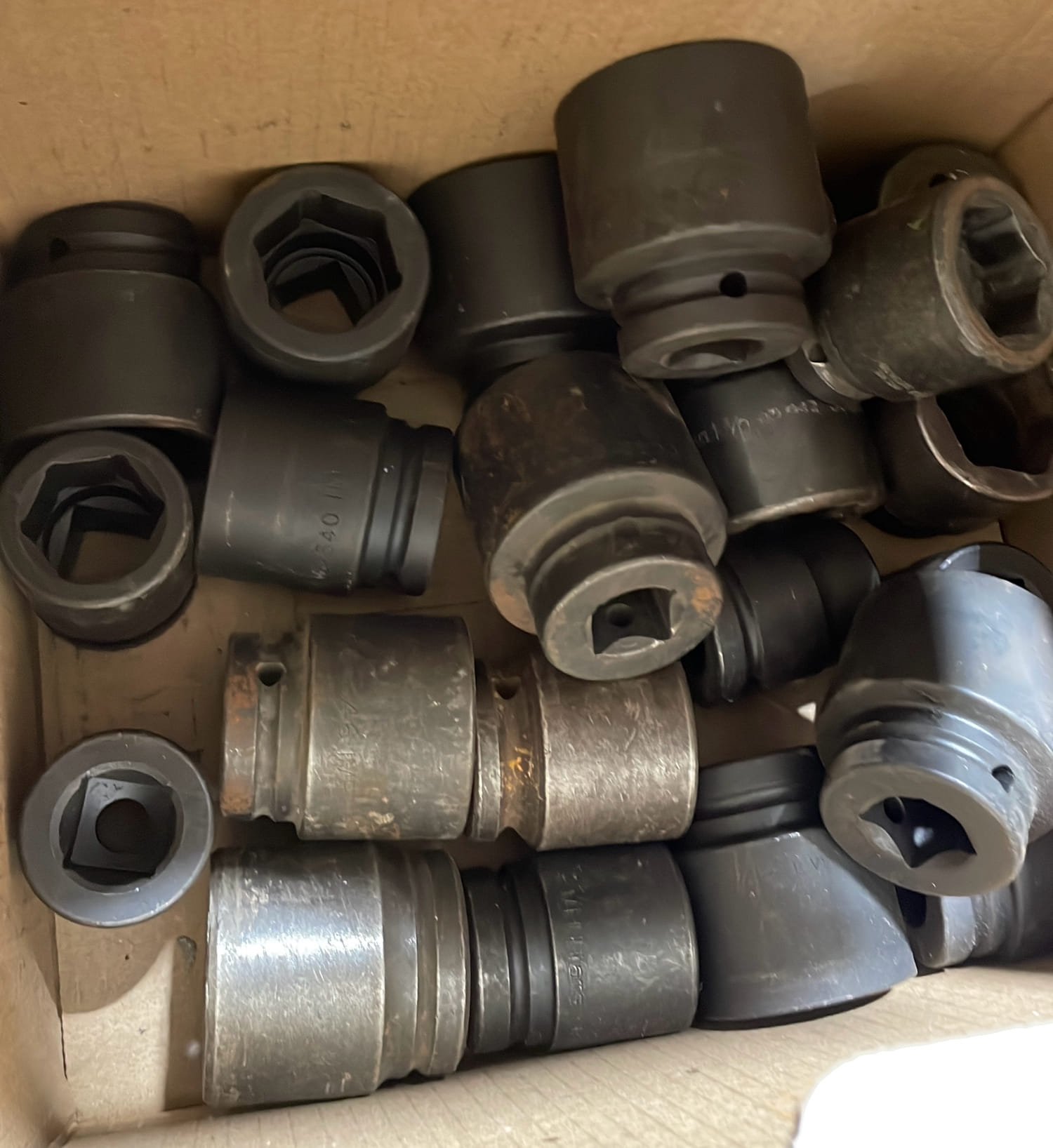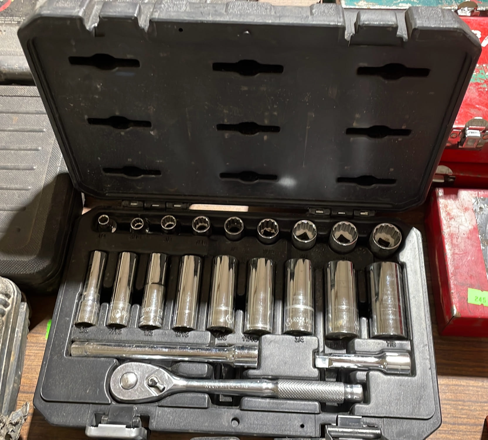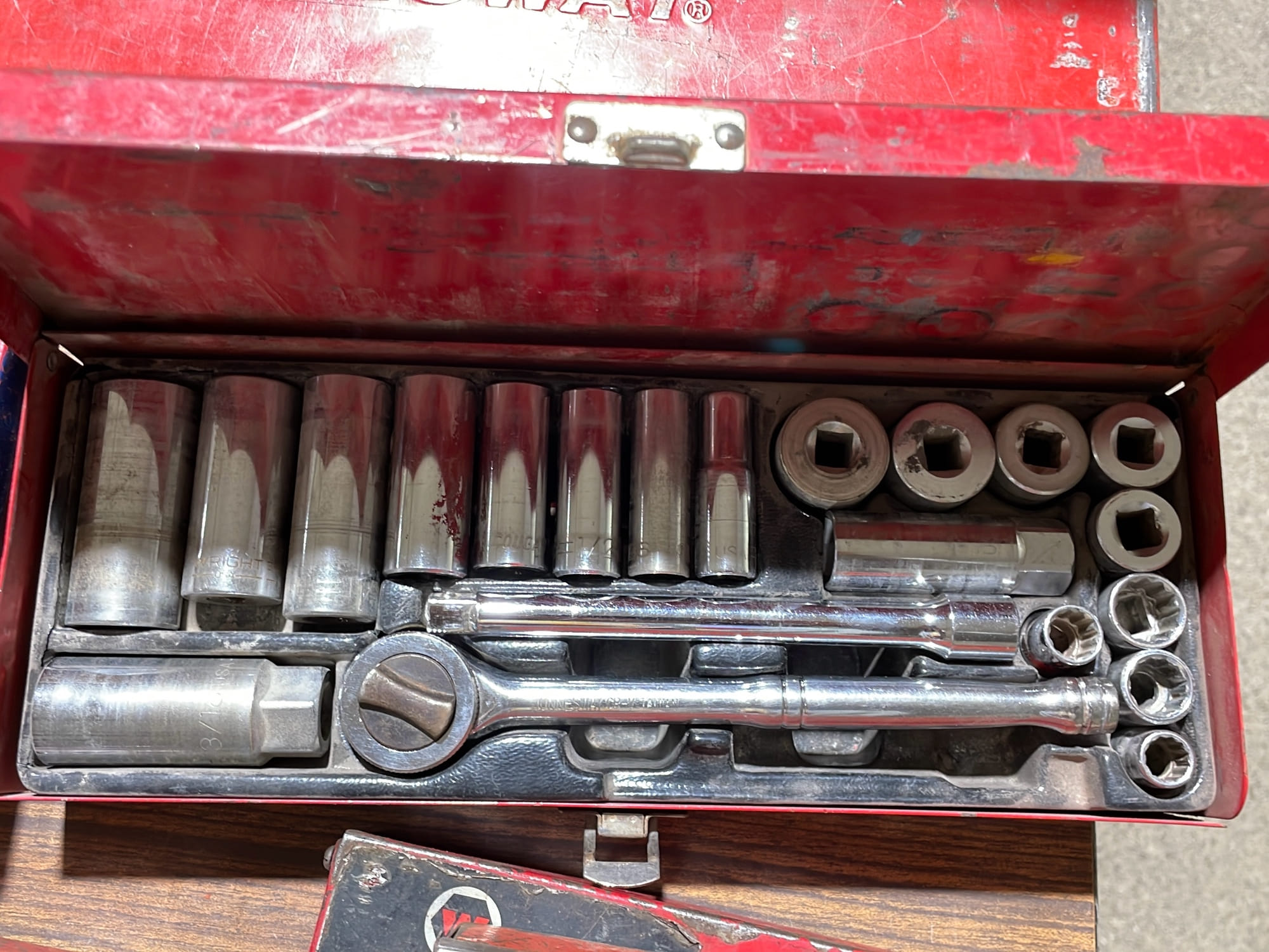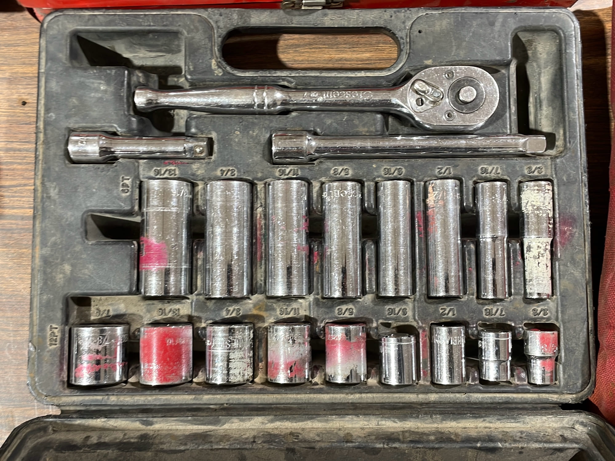 692 Socket assortment in plastic bin including Powerbuilt 7/16”, craftsman 1/4” 12mm, craftsman 1/4” 7/16”