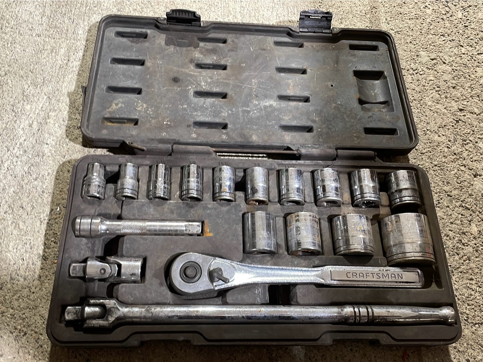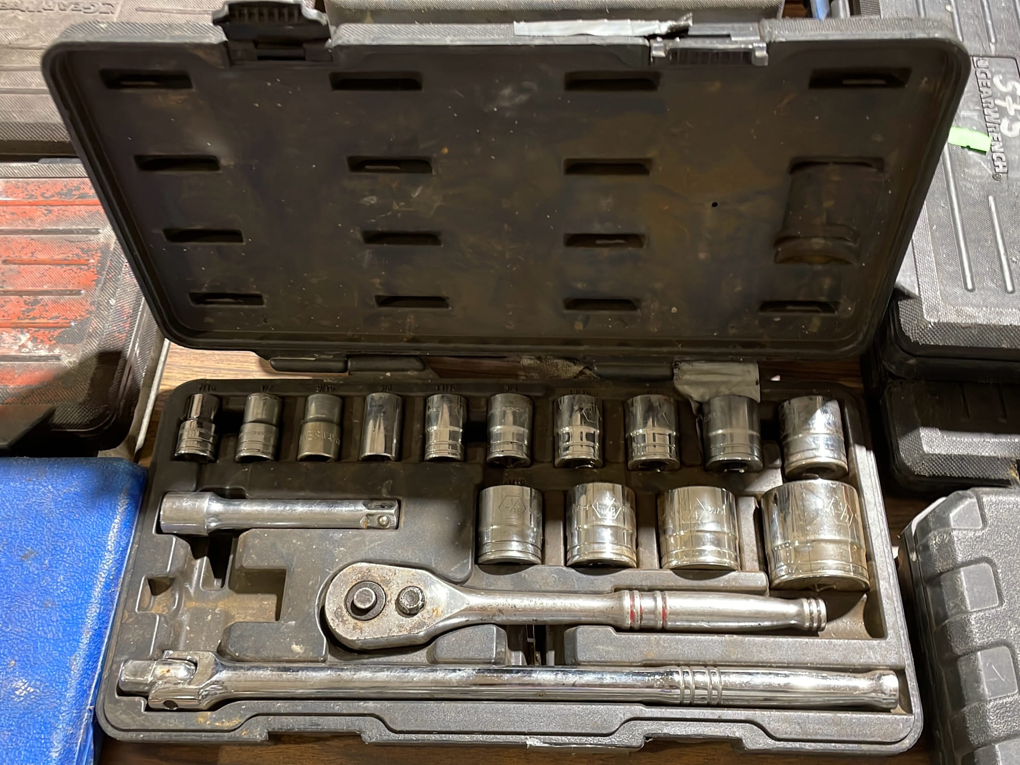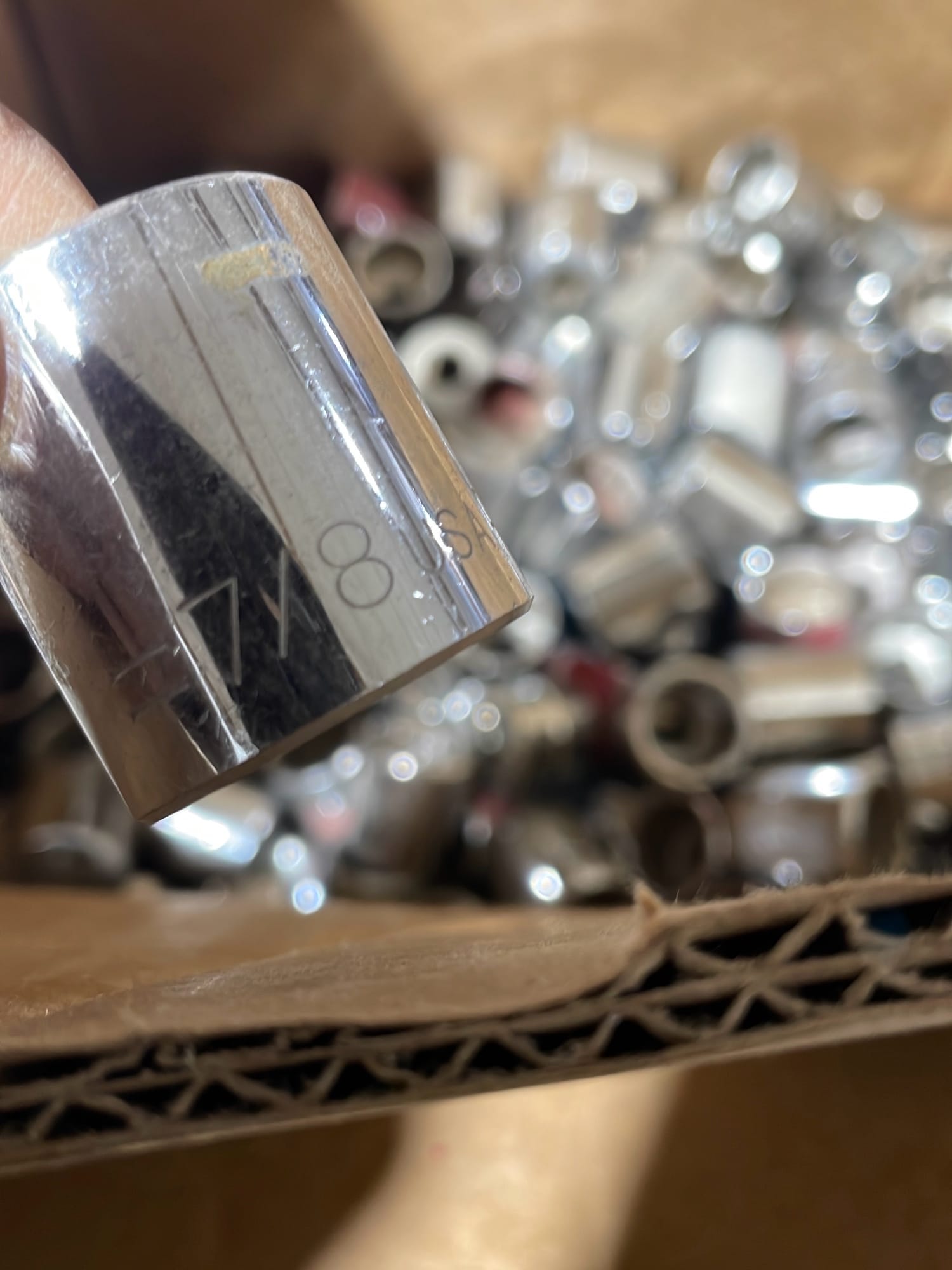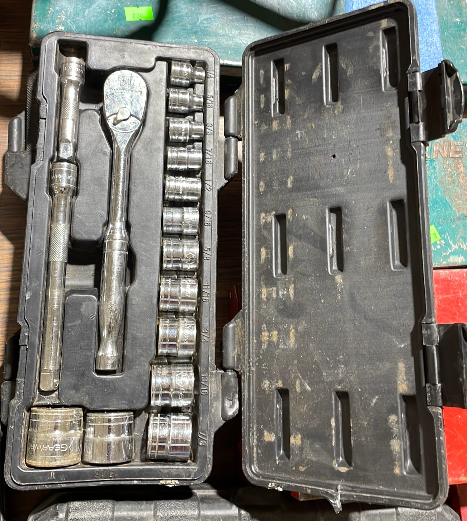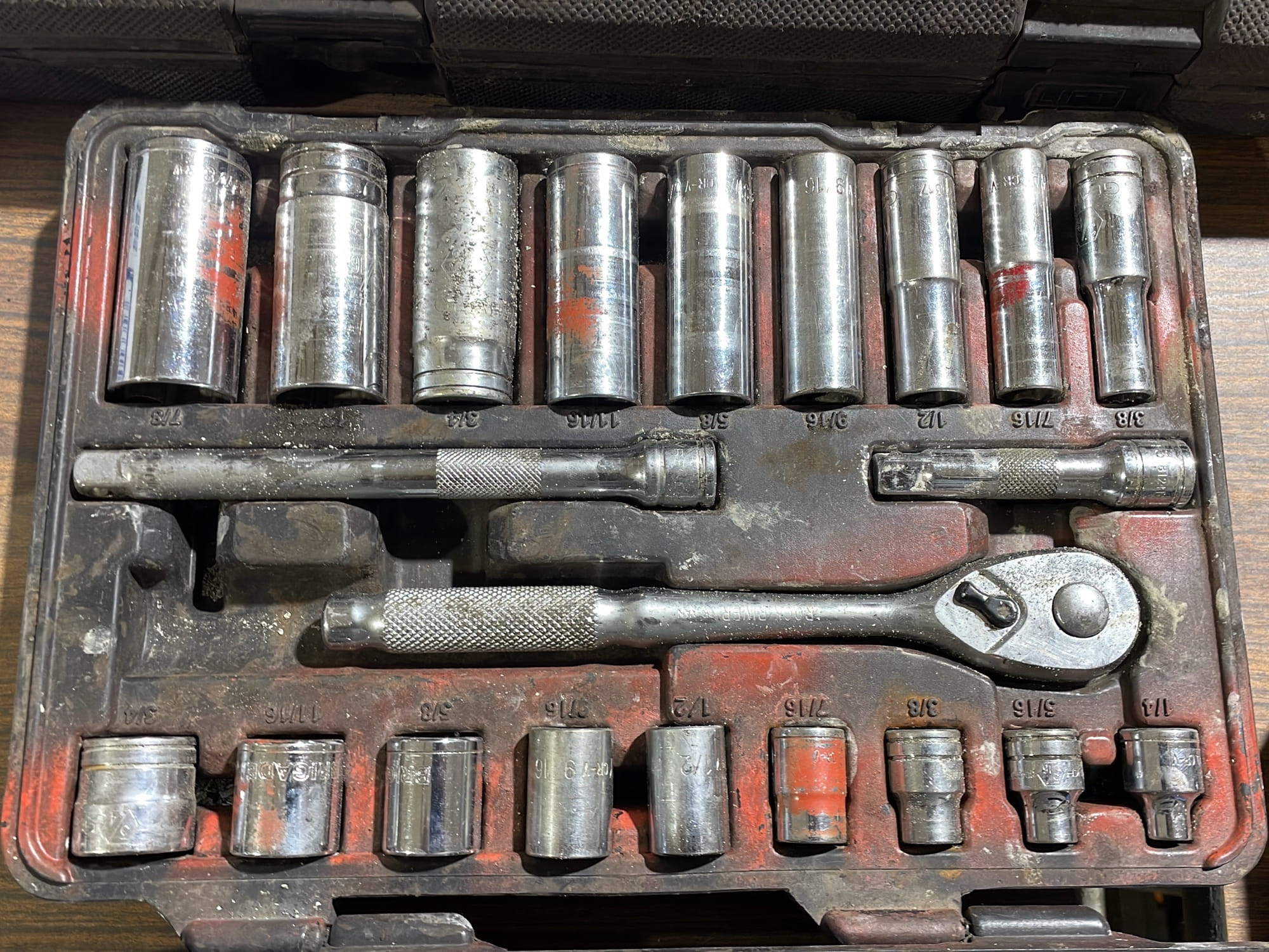 692 Socket assortment in plastic bin including Powerbuilt 7/16”, craftsman 1/4” 12mm, craftsman 1/4” 7/16”