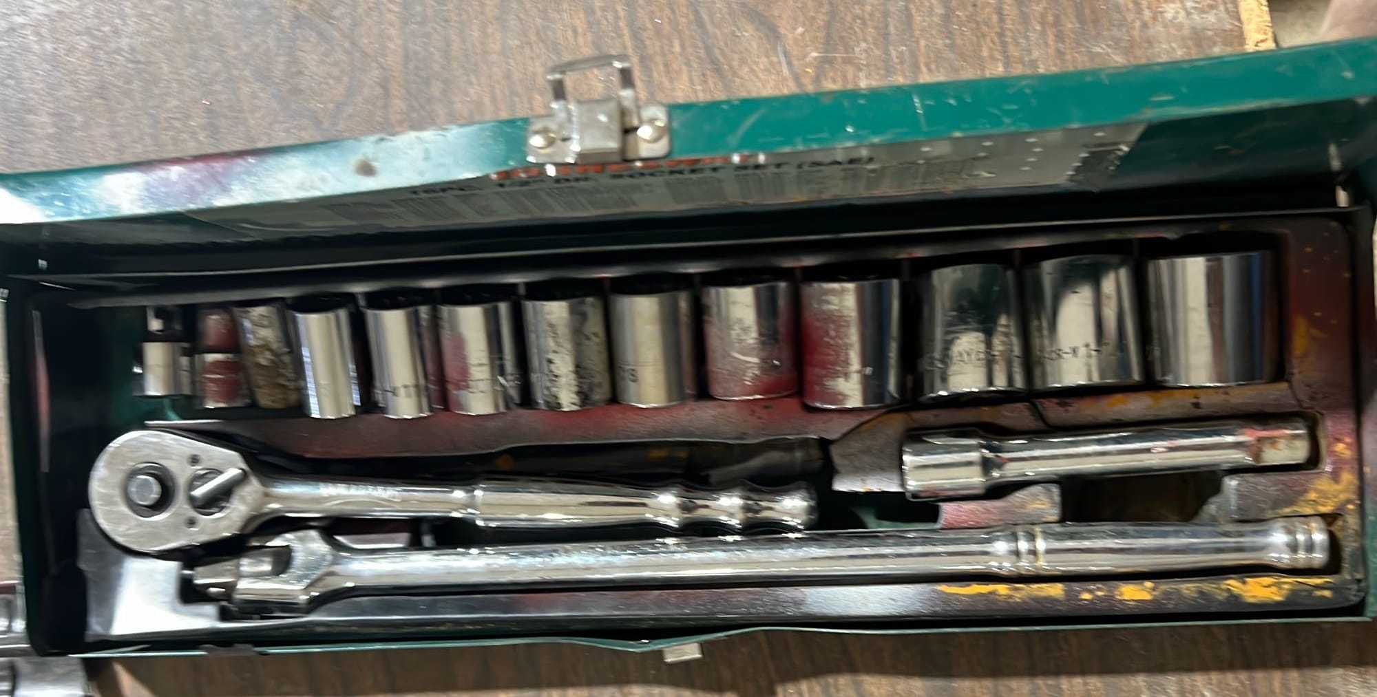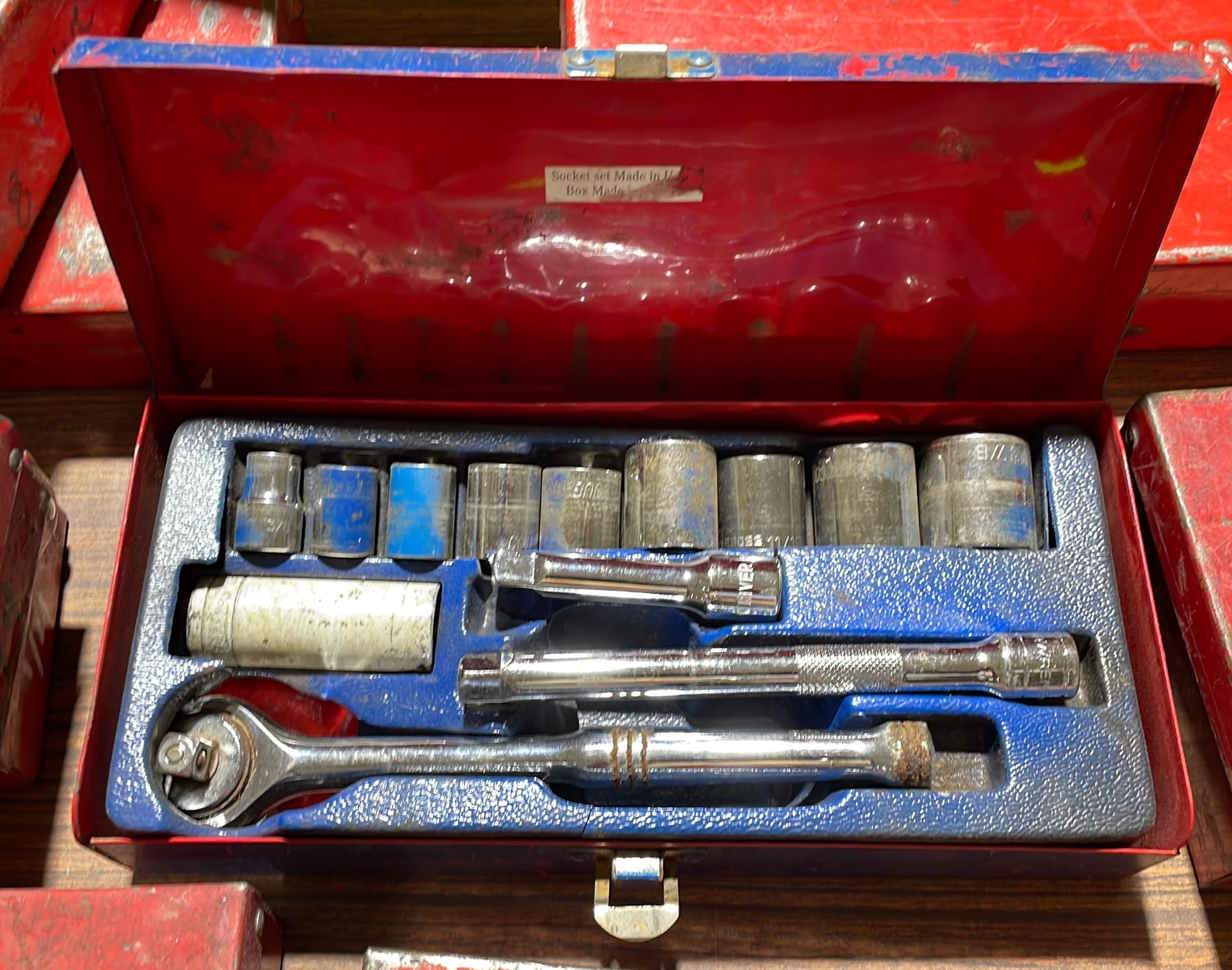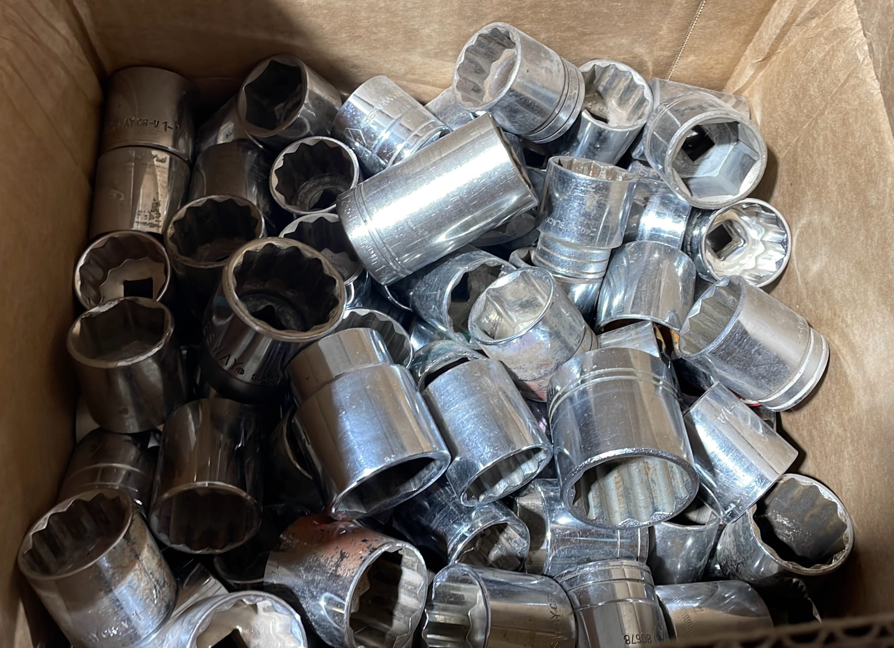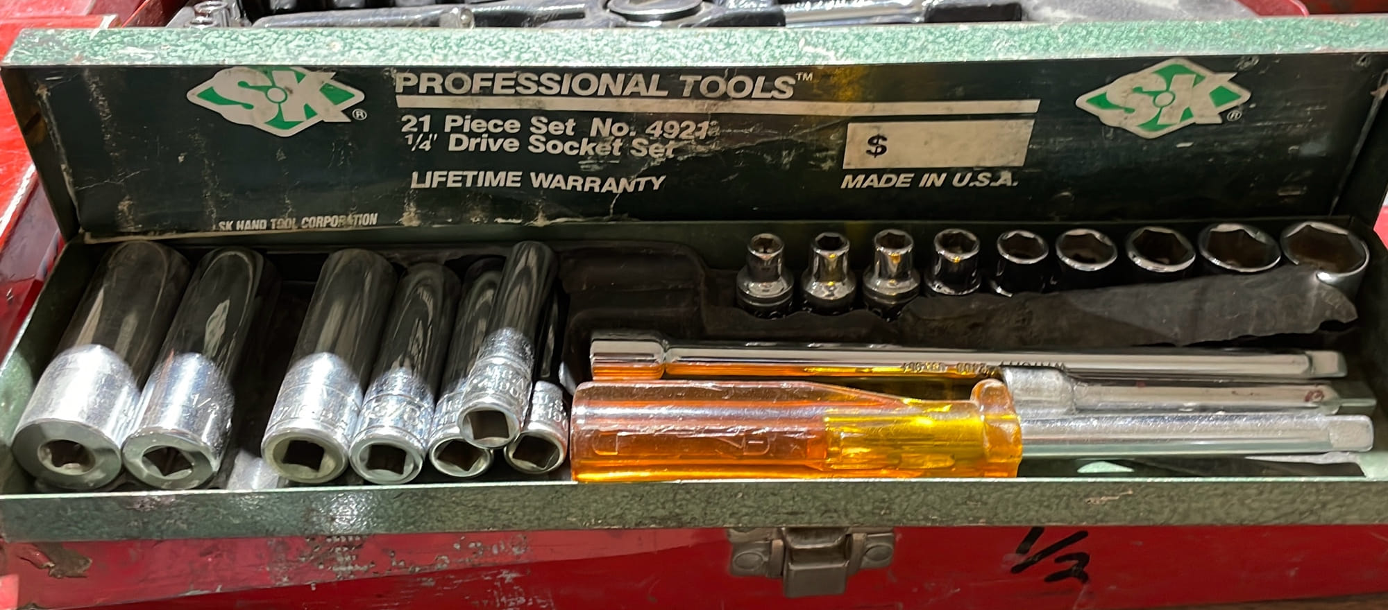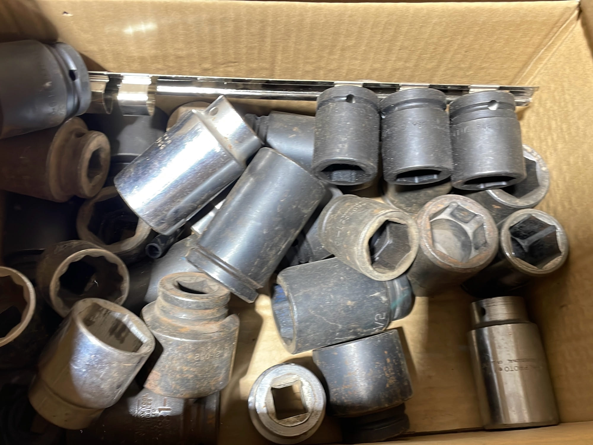 692 Socket assortment in plastic bin including Powerbuilt 7/16”, craftsman 1/4” 12mm, craftsman 1/4” 7/16”