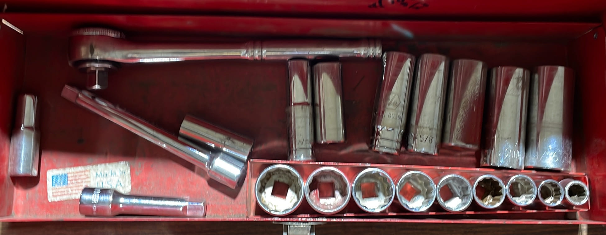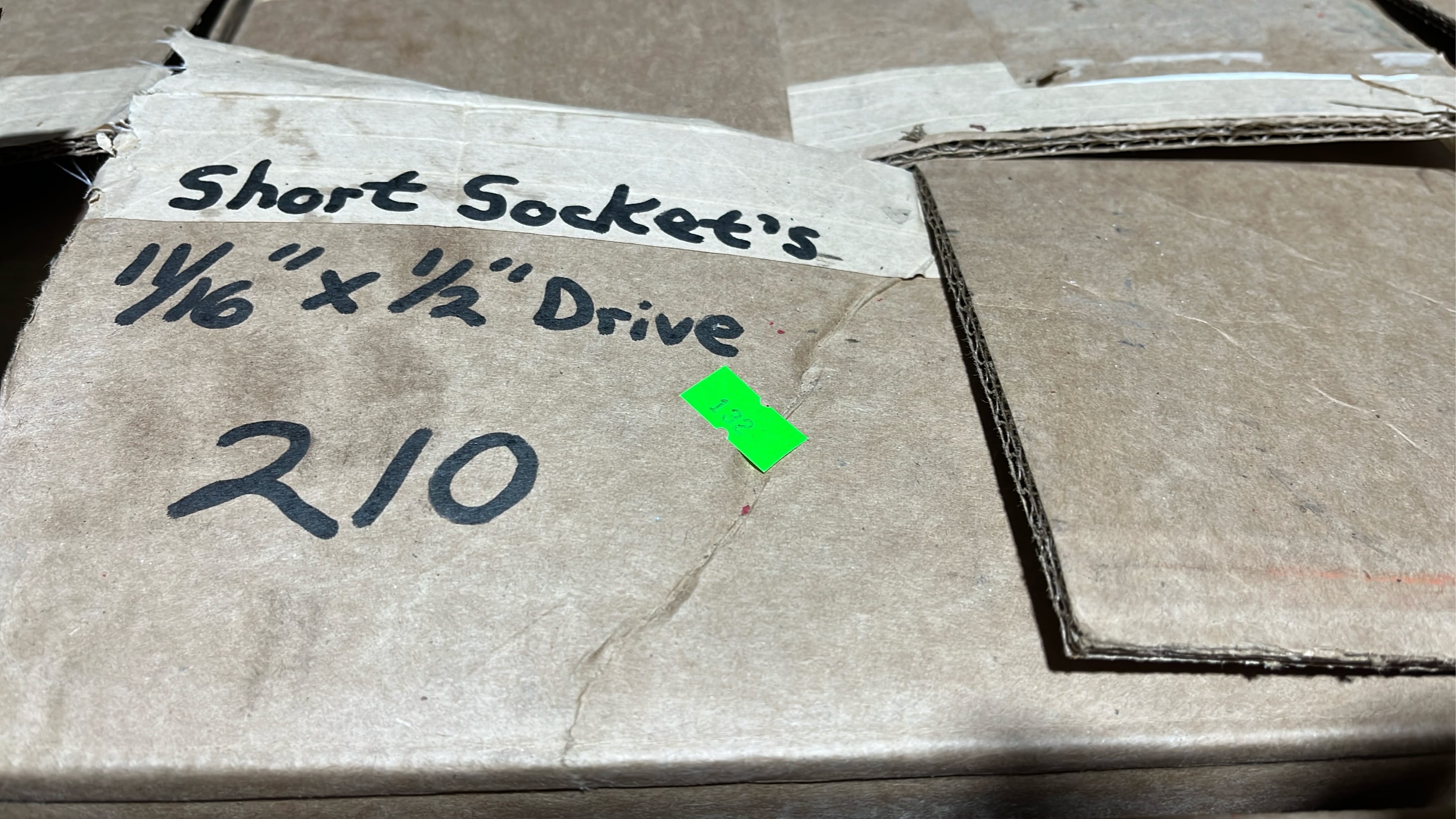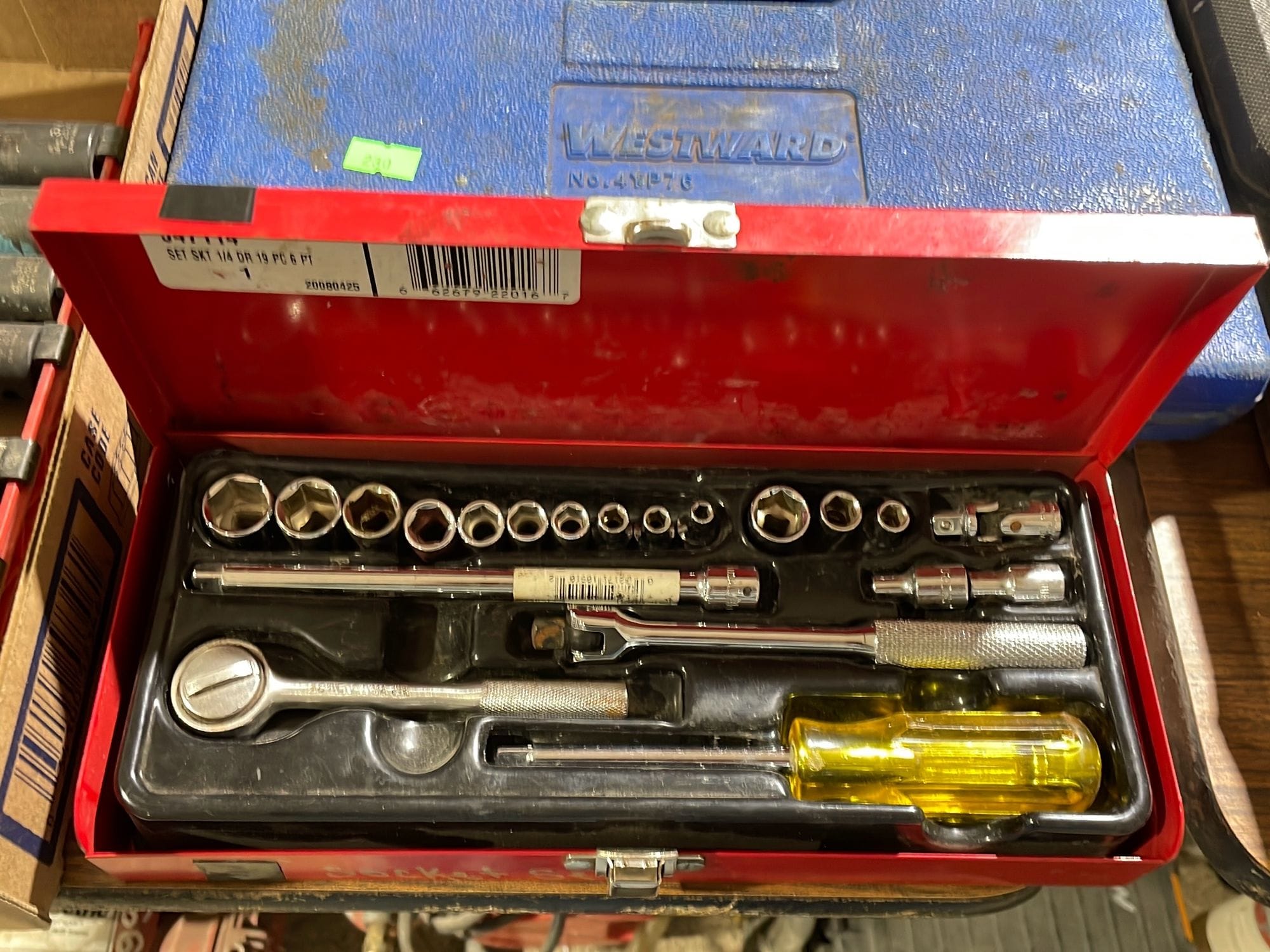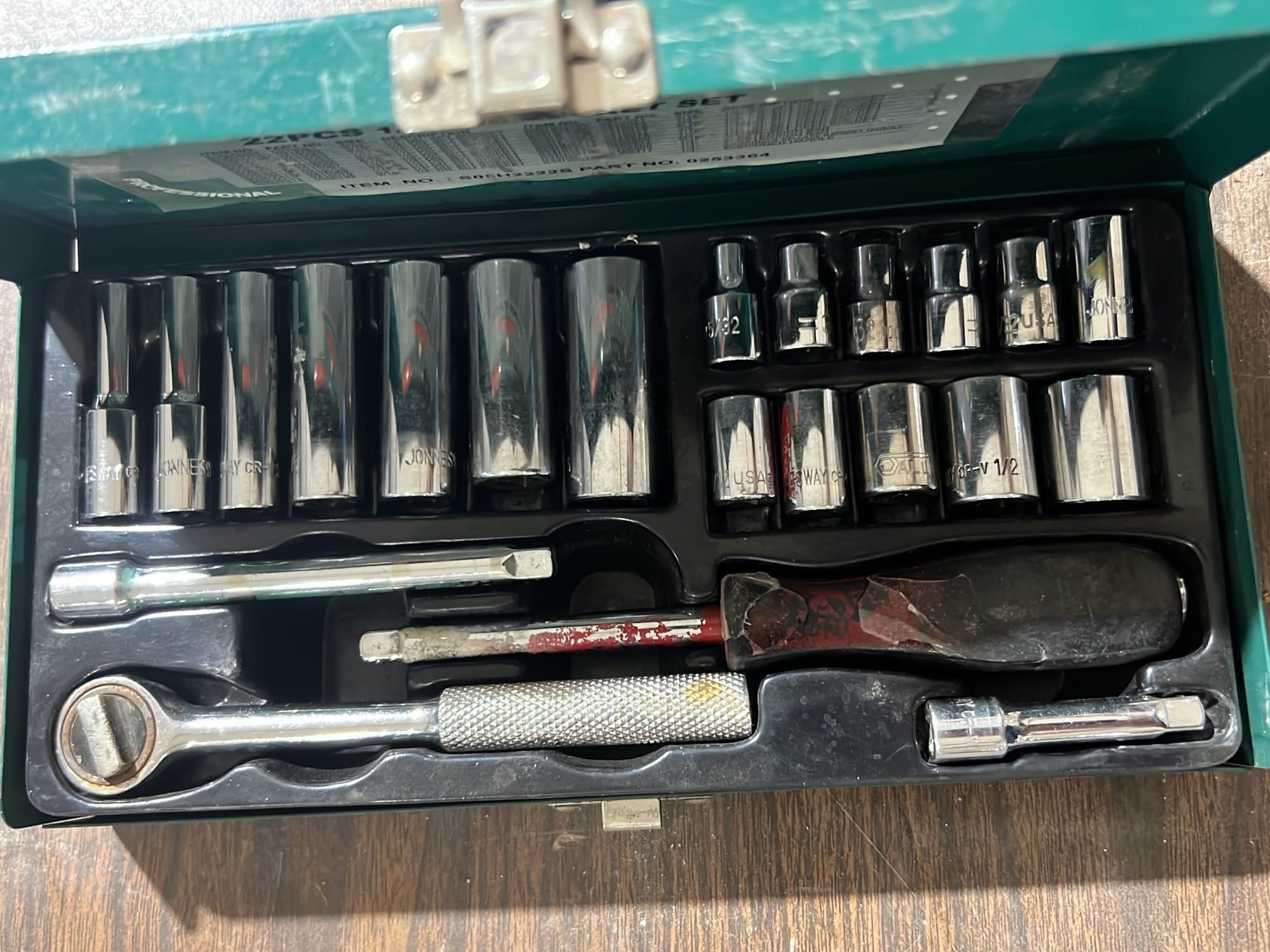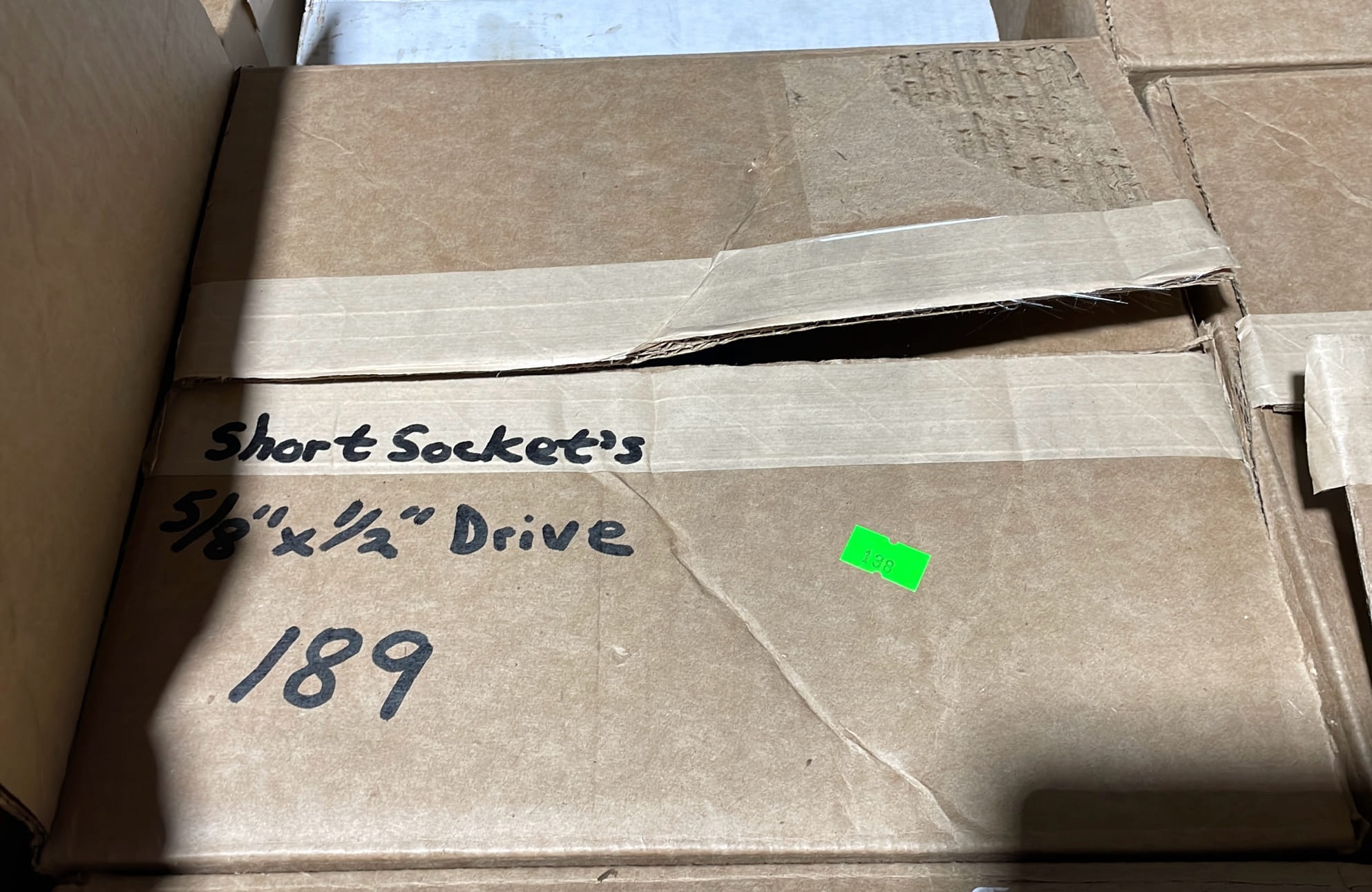692 Socket assortment in plastic bin including Powerbuilt 7/16”, craftsman 1/4” 12mm, craftsman 1/4” 7/16”