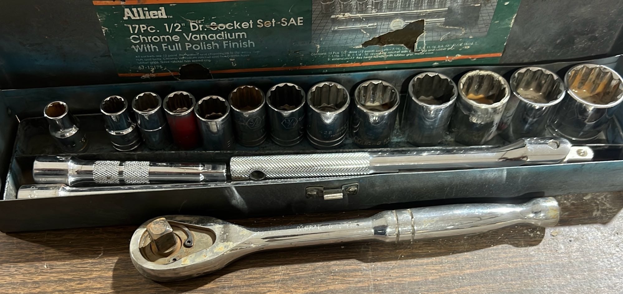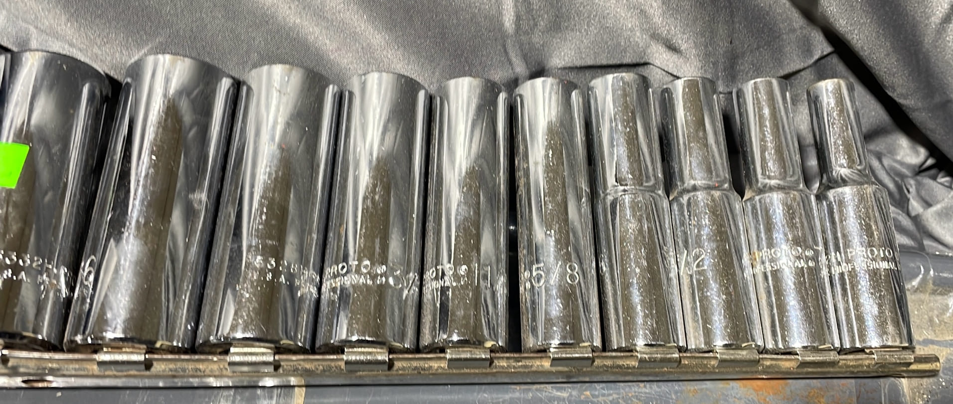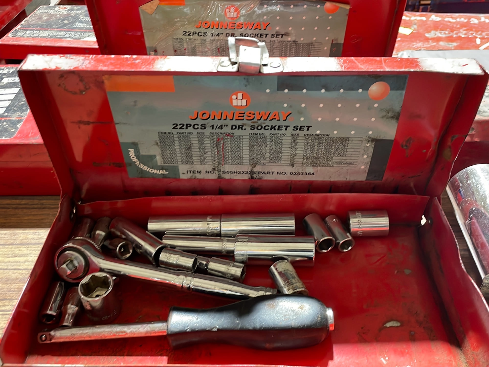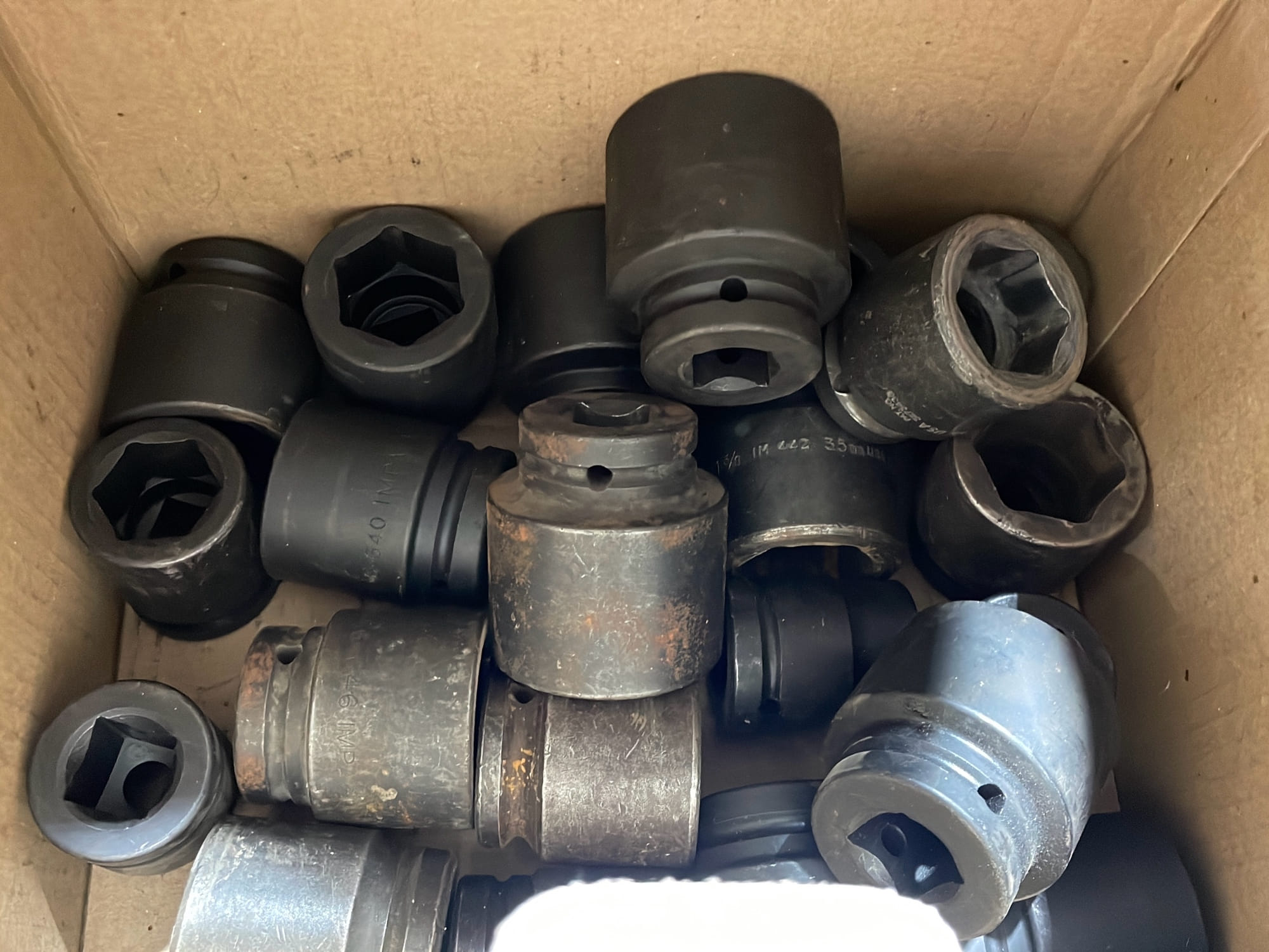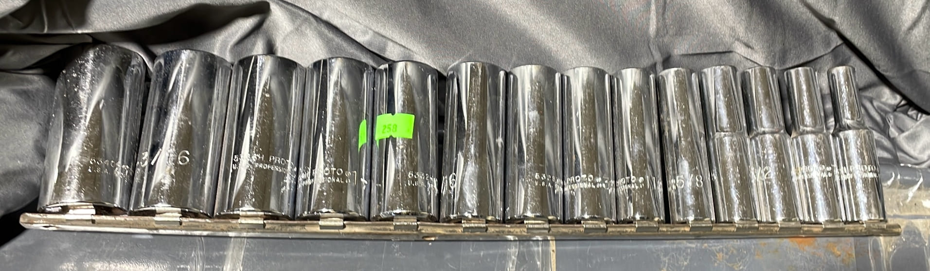 692 Socket assortment in plastic bin including Powerbuilt 7/16”, craftsman 1/4” 12mm, craftsman 1/4” 7/16”