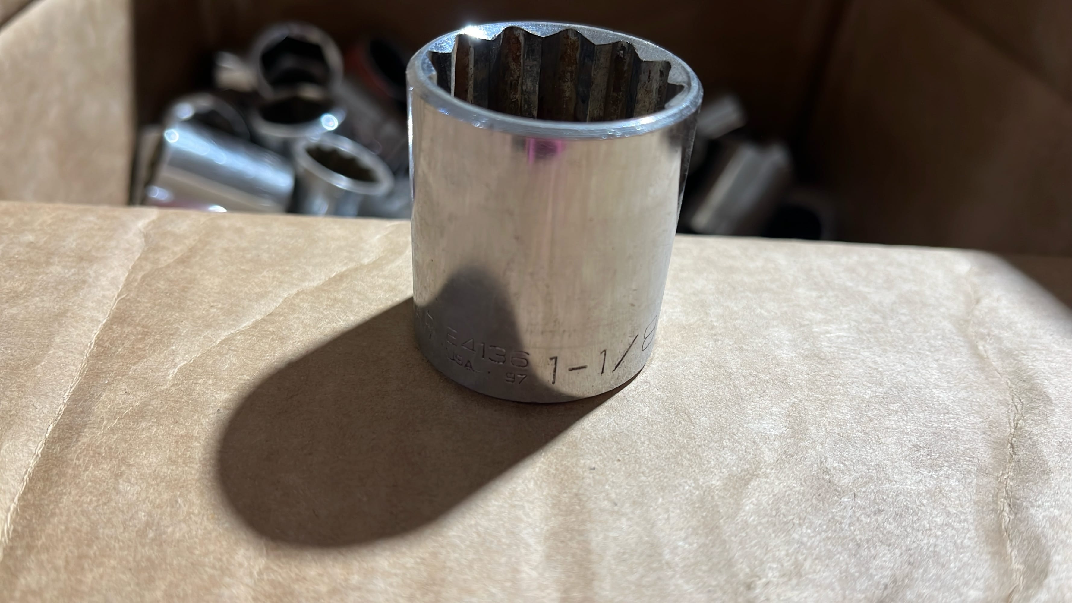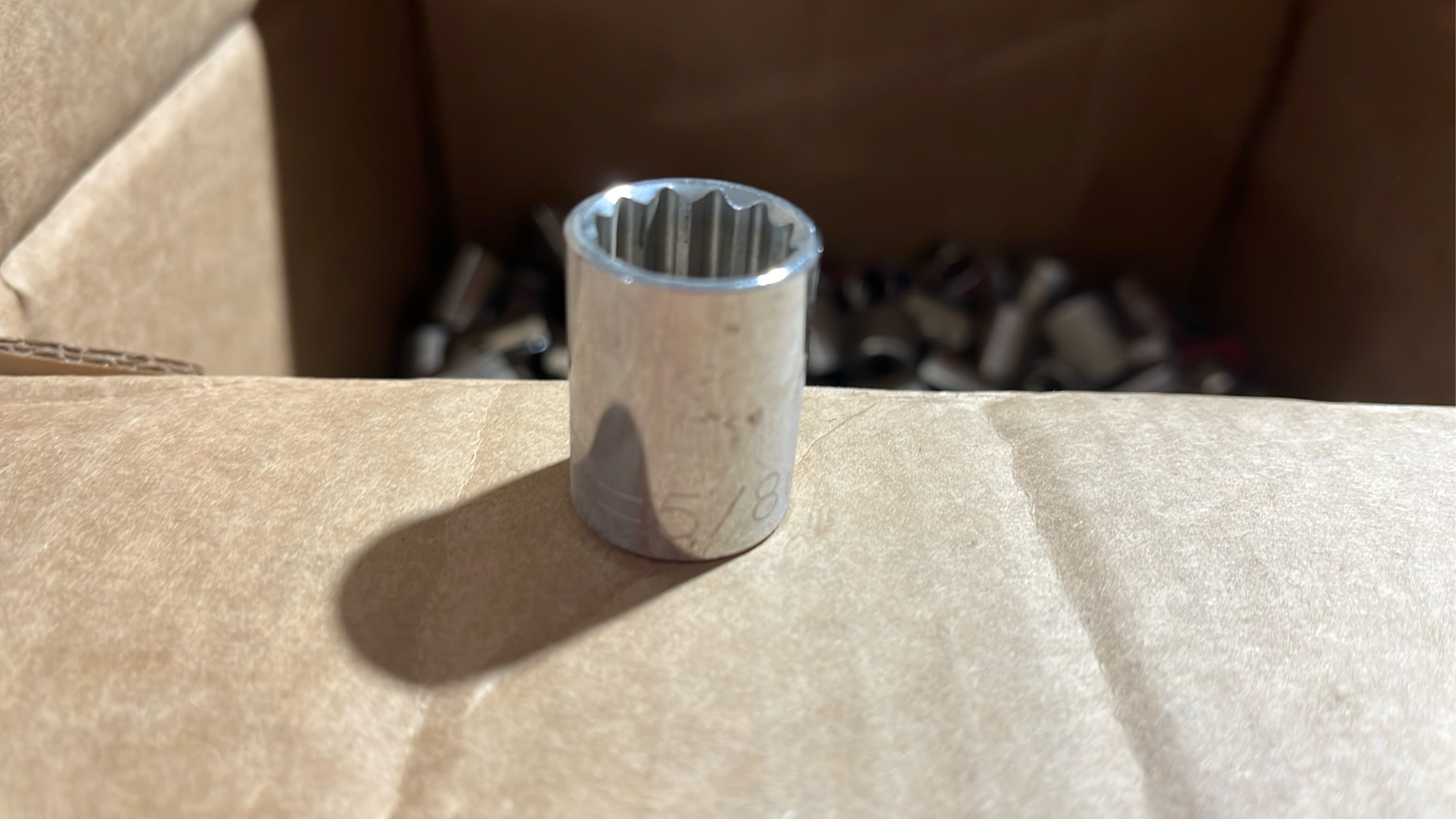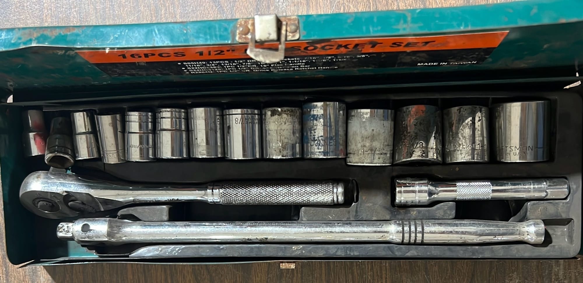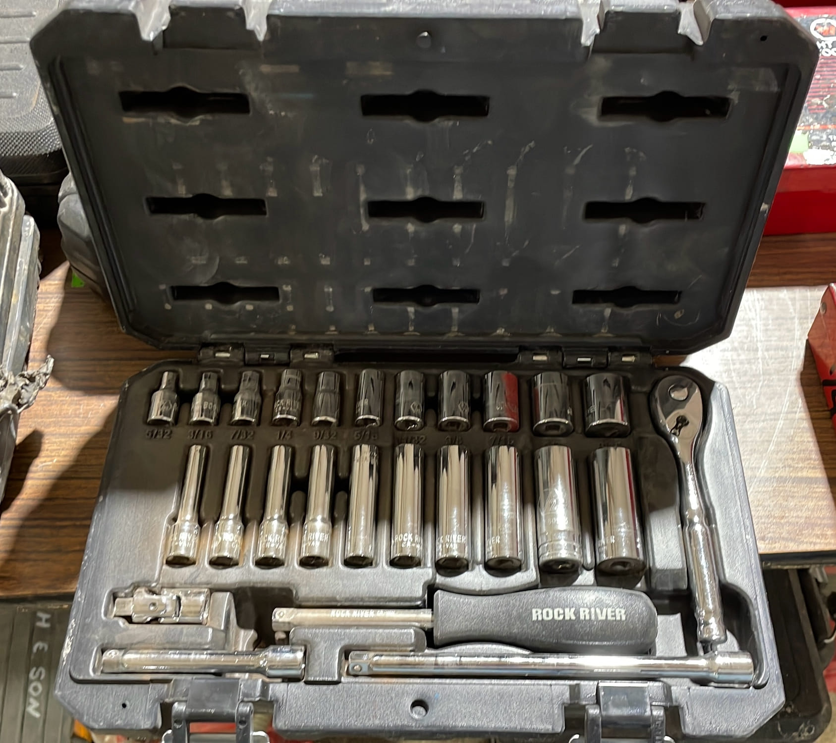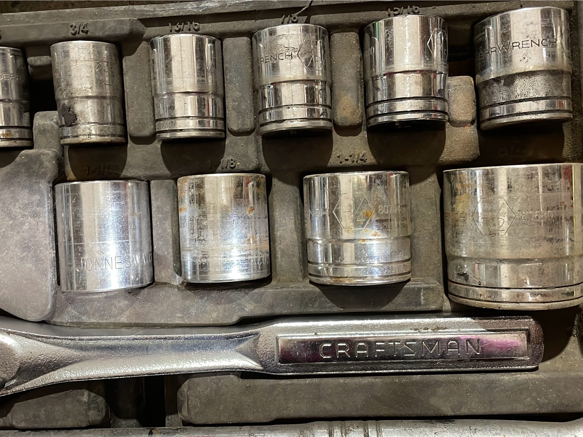 692 Socket assortment in plastic bin including Powerbuilt 7/16”, craftsman 1/4” 12mm, craftsman 1/4” 7/16”