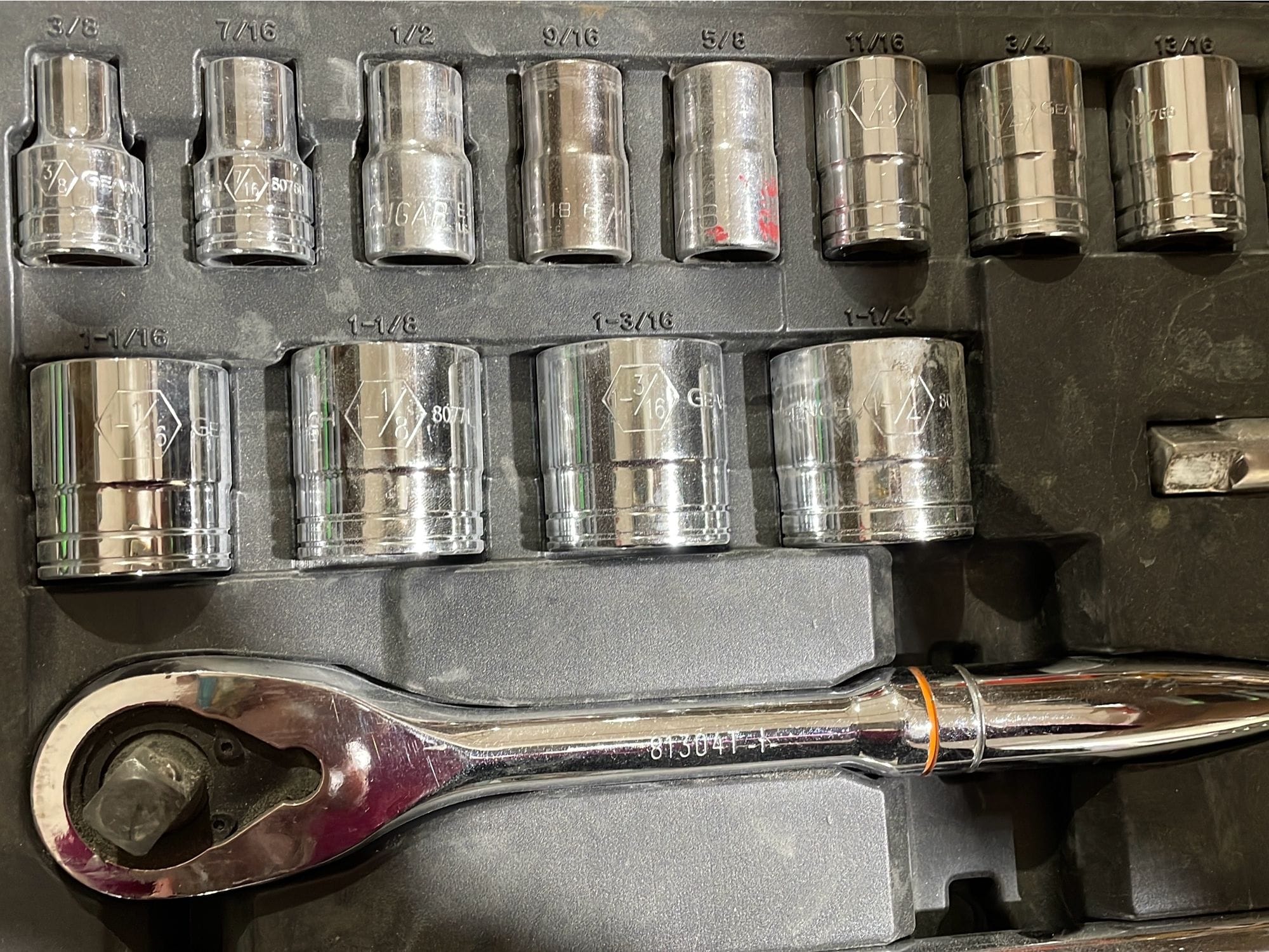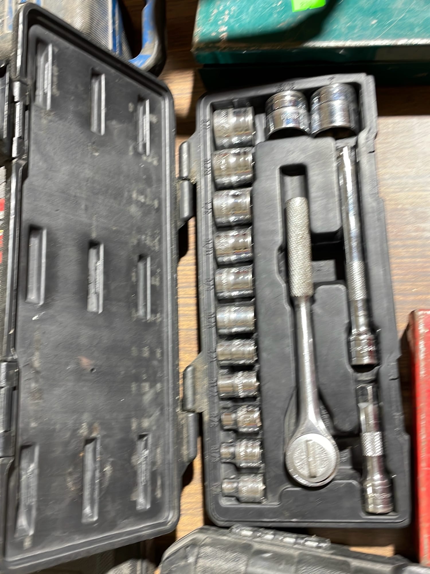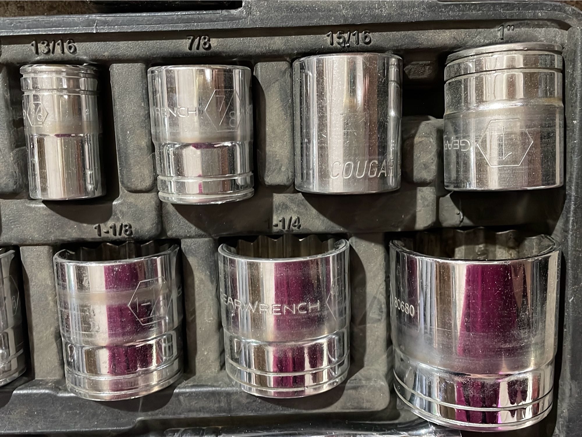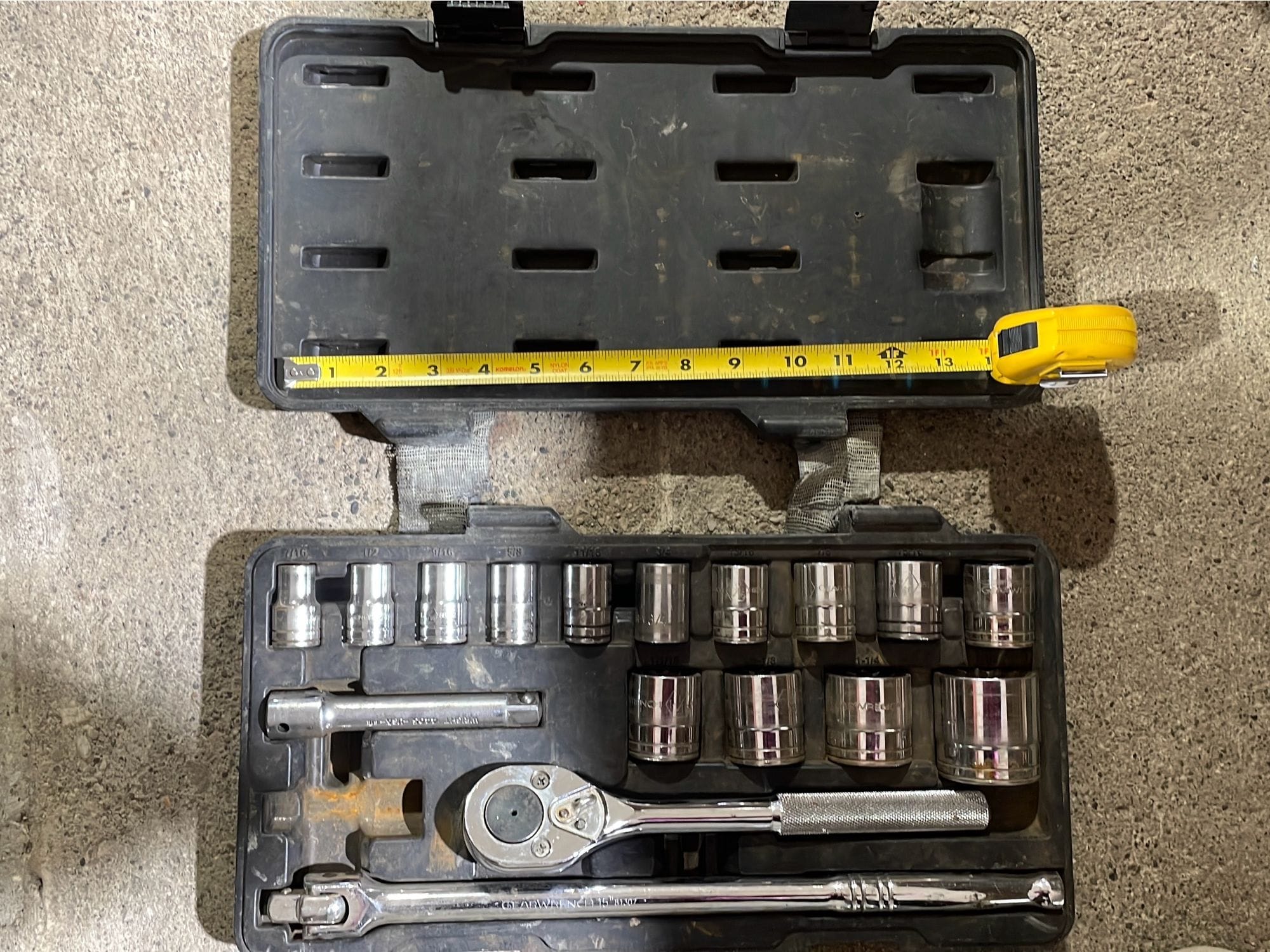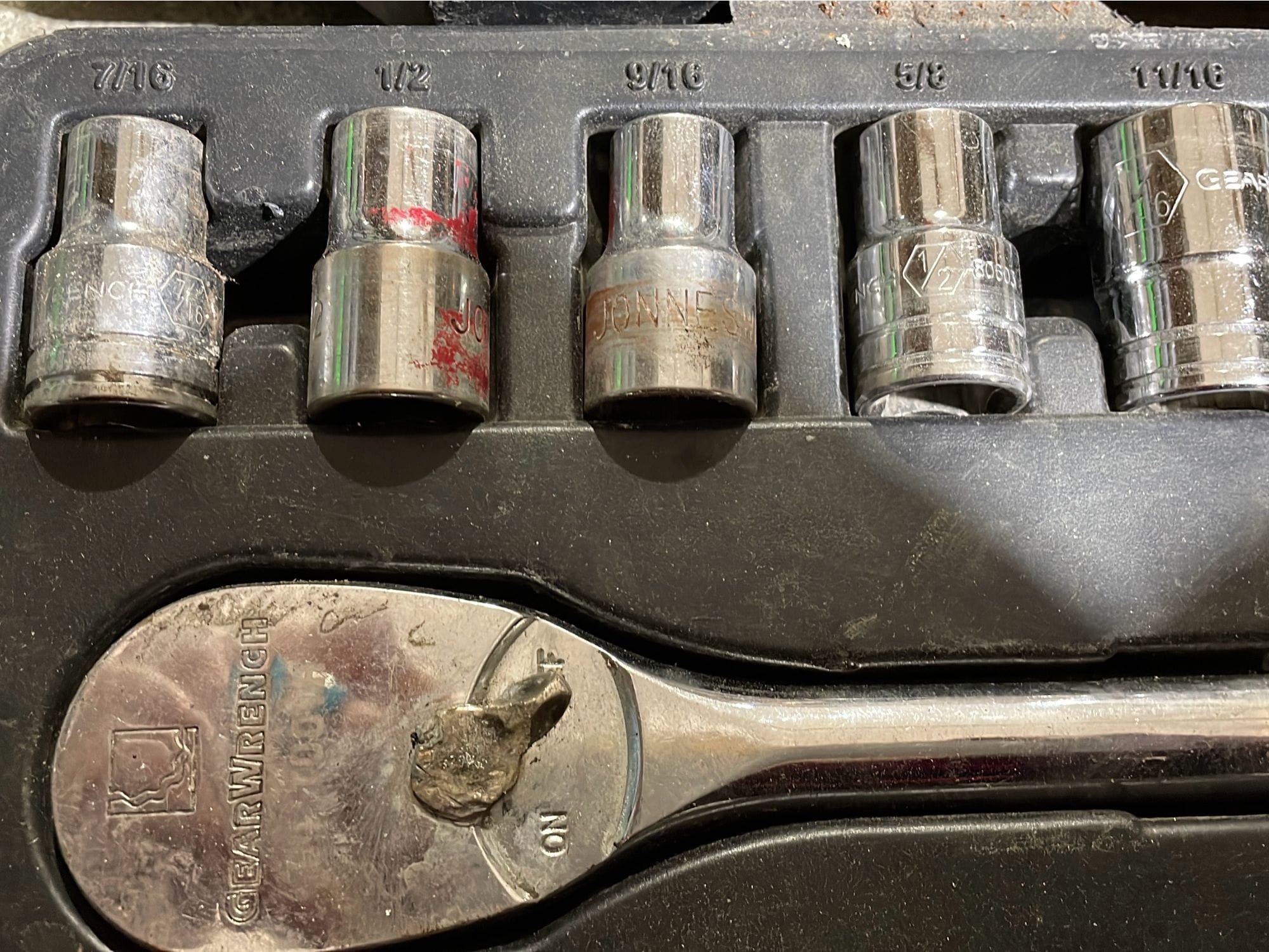 692 Socket assortment in plastic bin including Powerbuilt 7/16”, craftsman 1/4” 12mm, craftsman 1/4” 7/16”