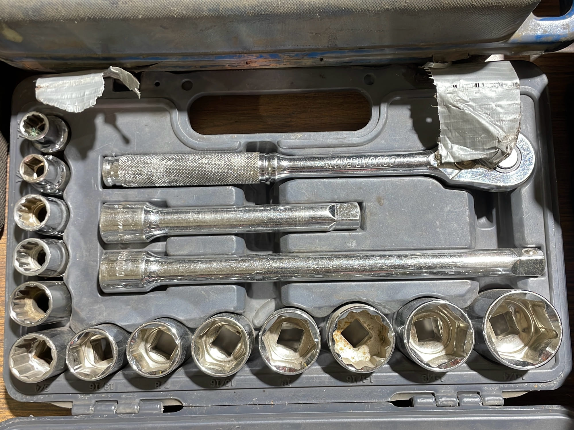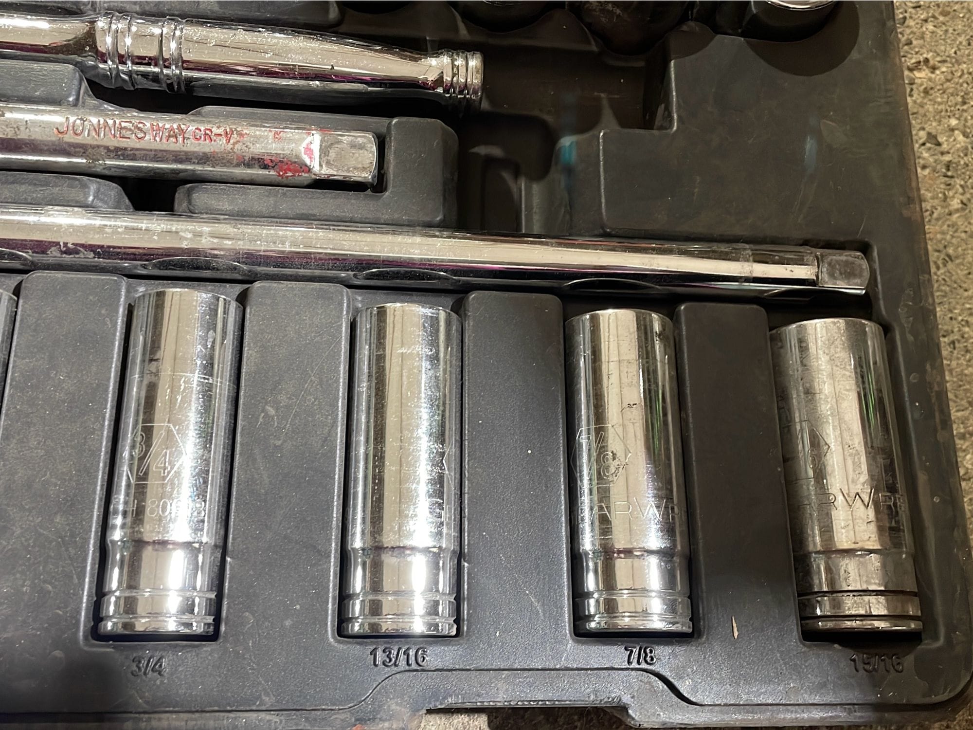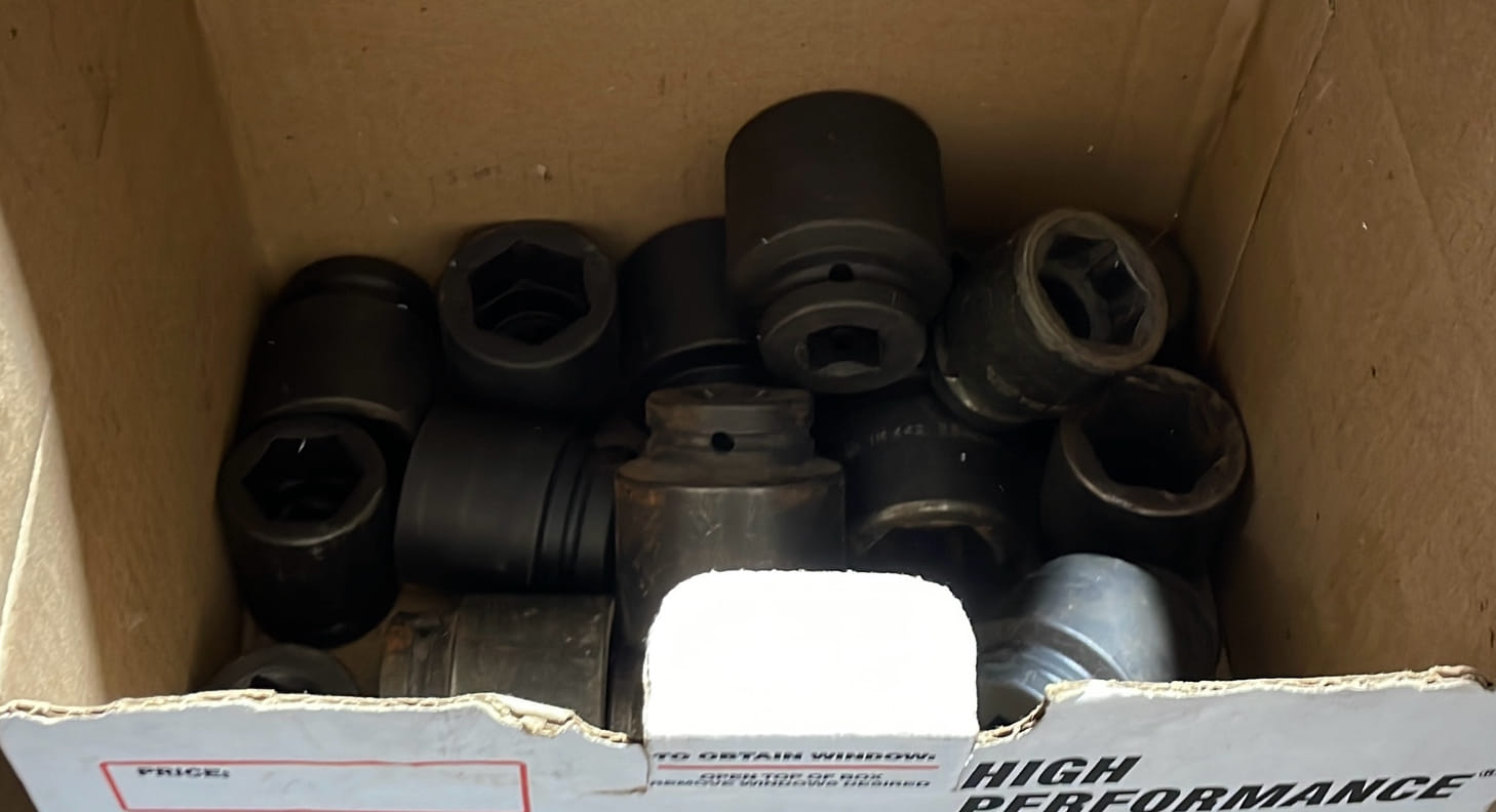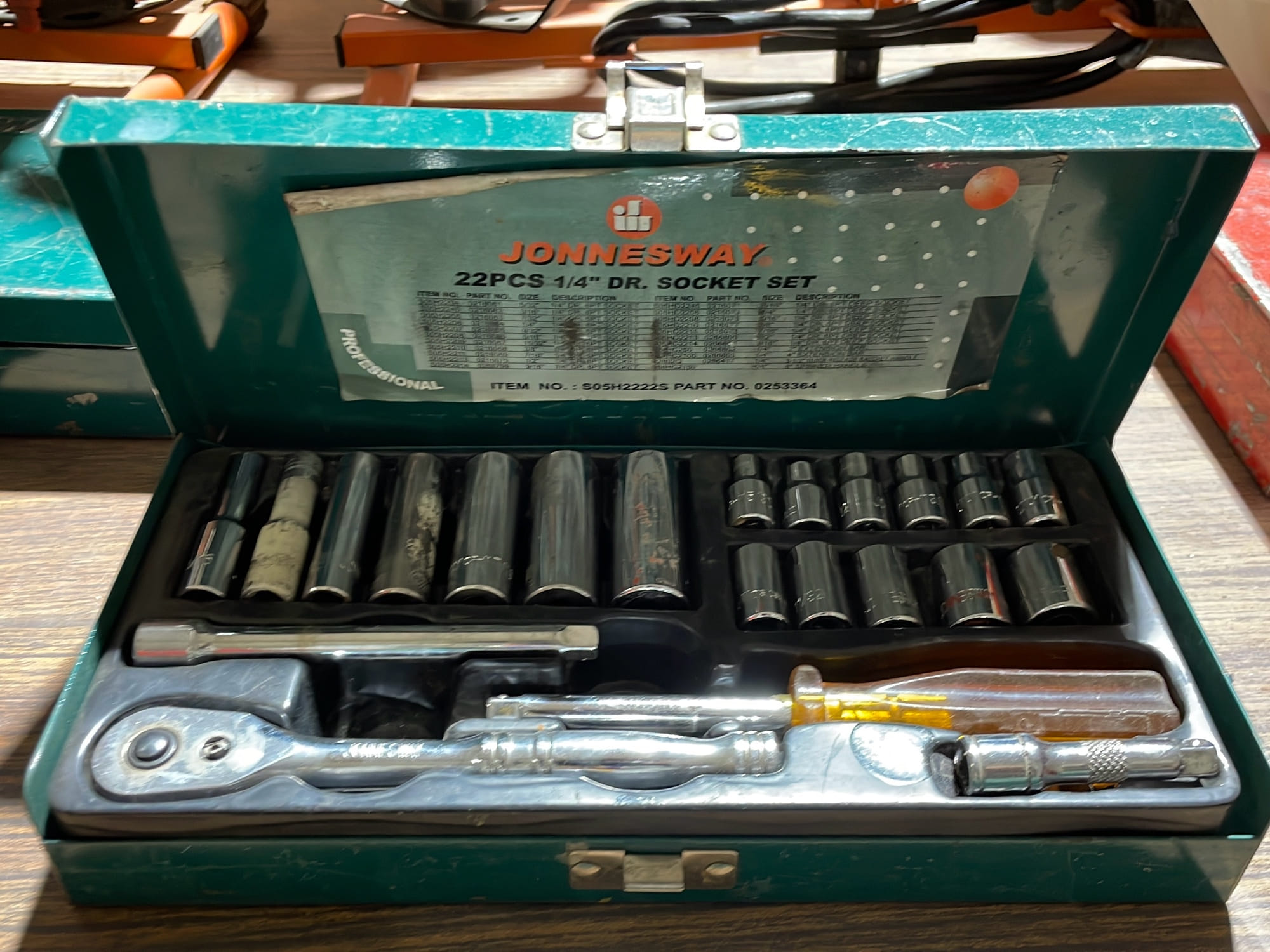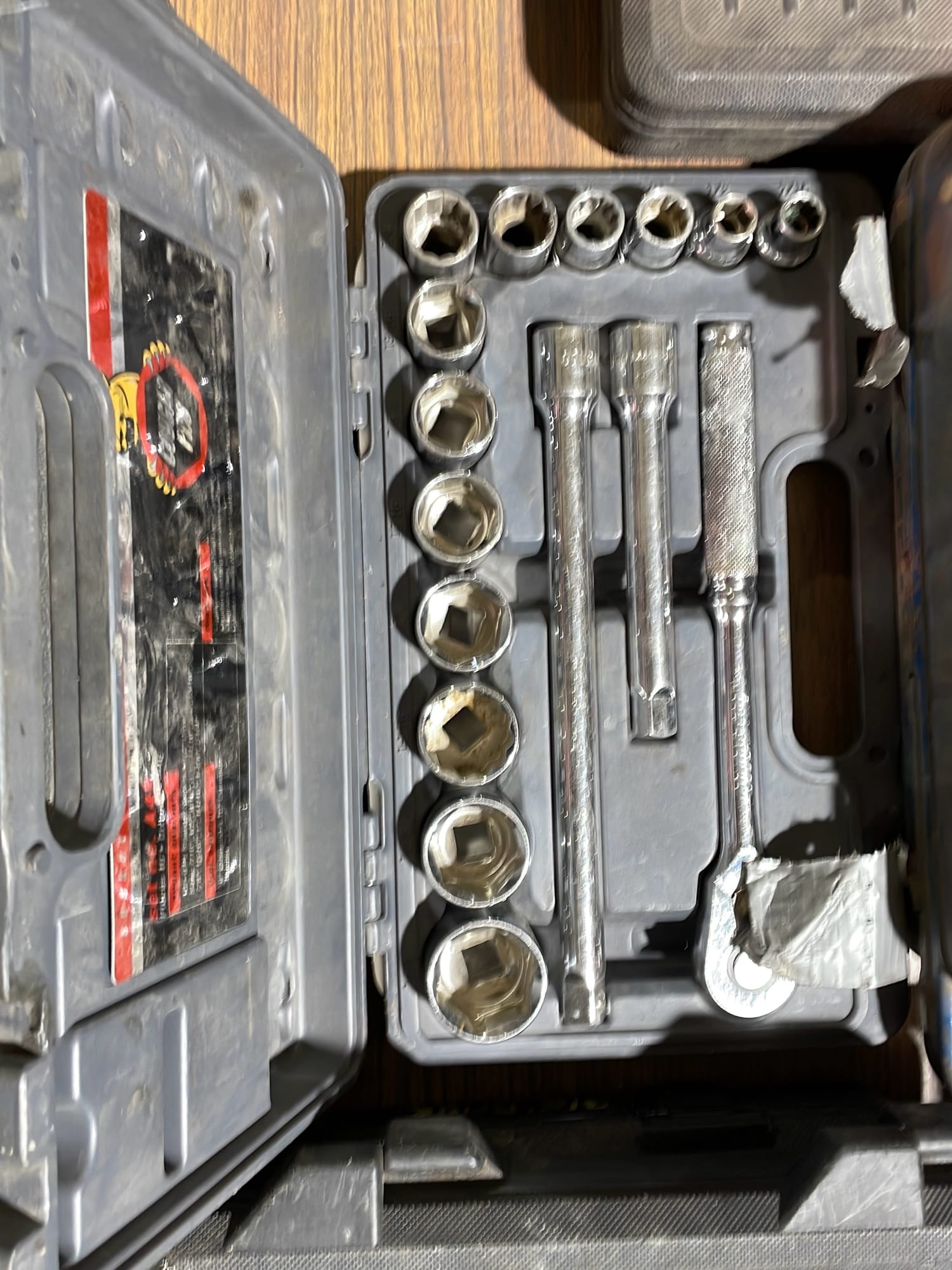 692 Socket assortment in plastic bin including Powerbuilt 7/16”, craftsman 1/4” 12mm, craftsman 1/4” 7/16”