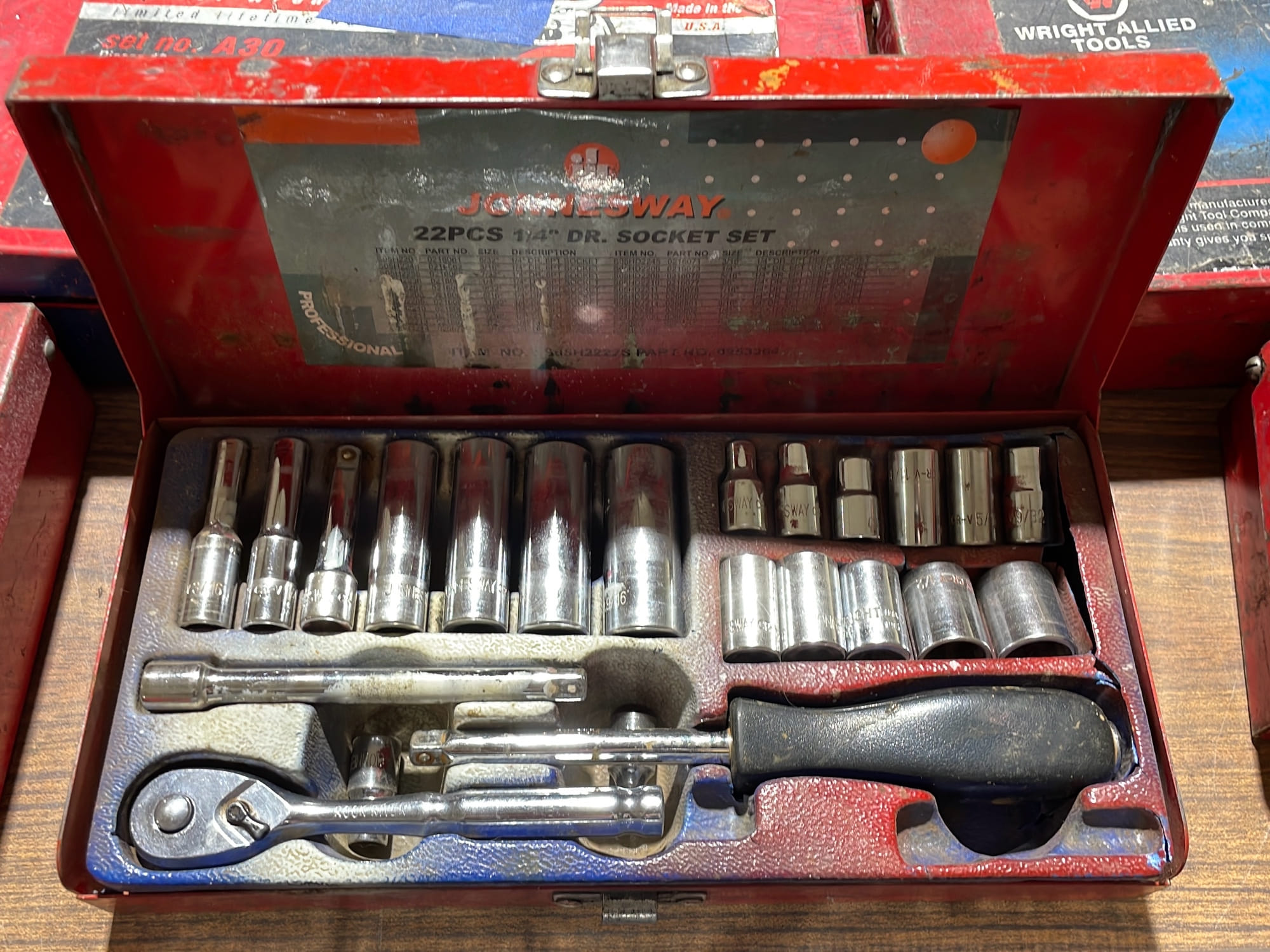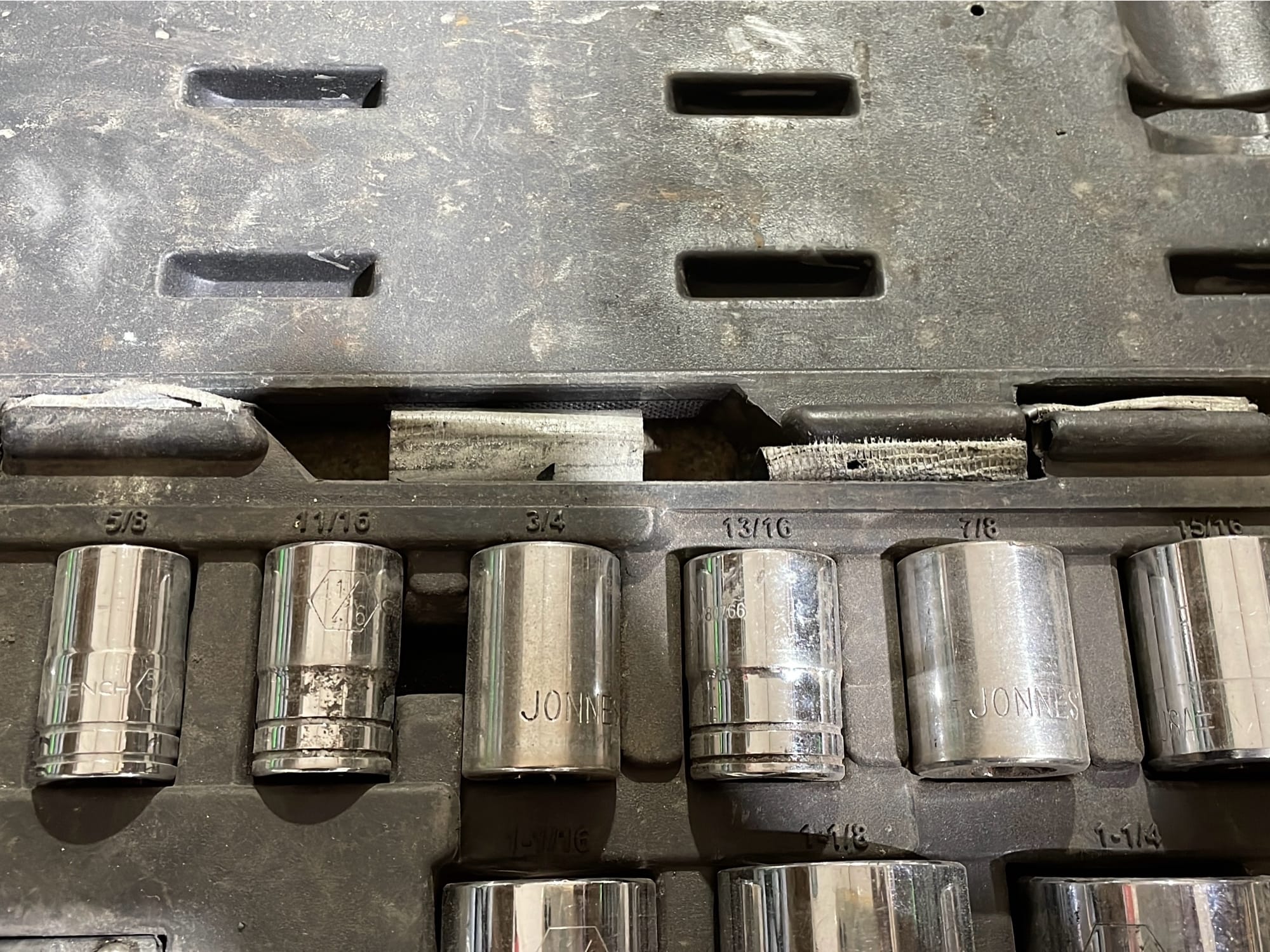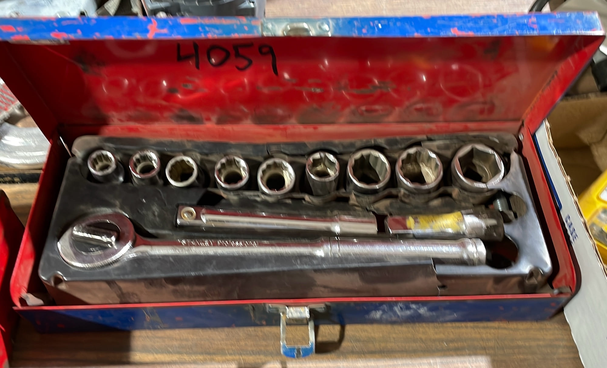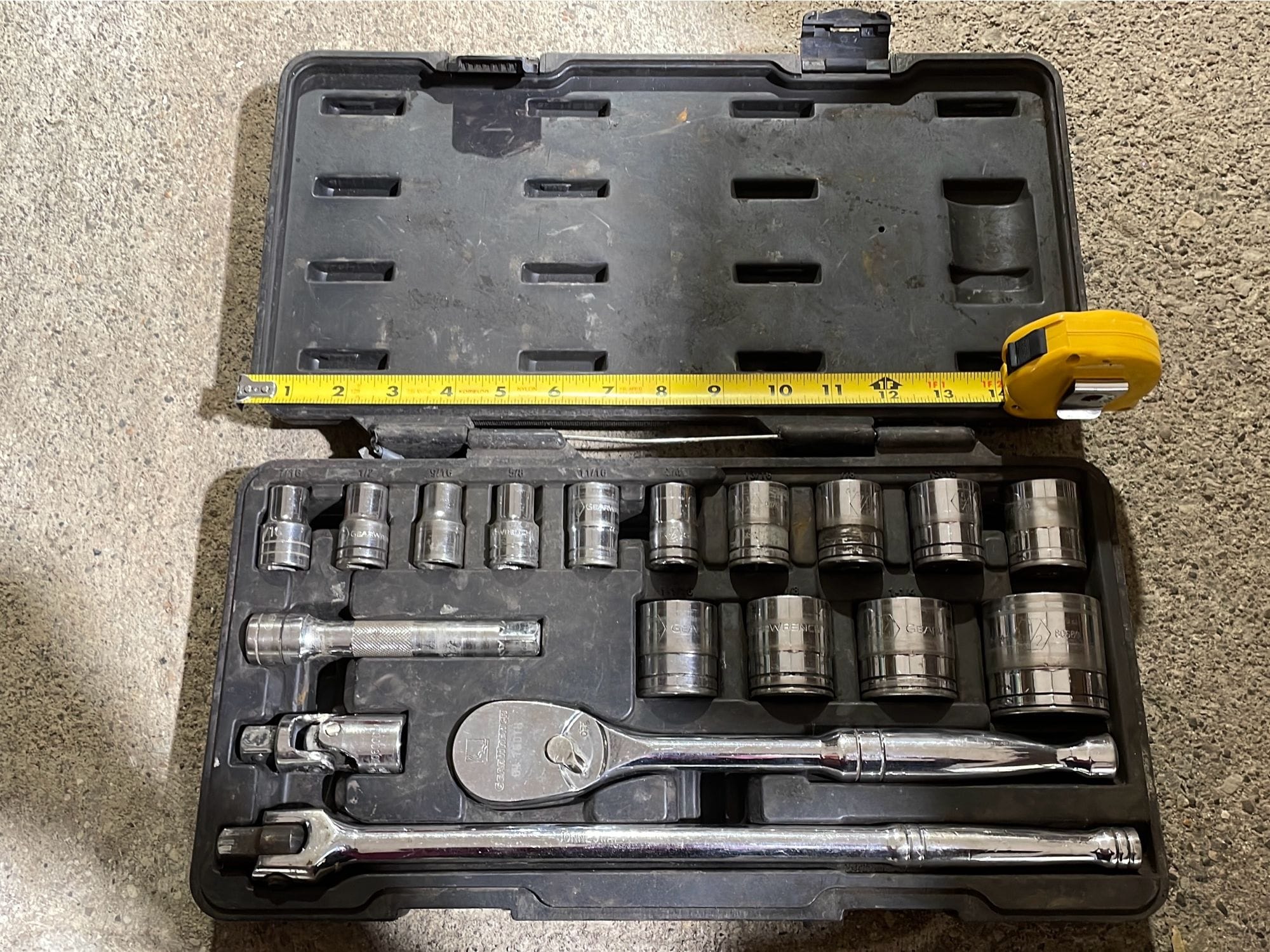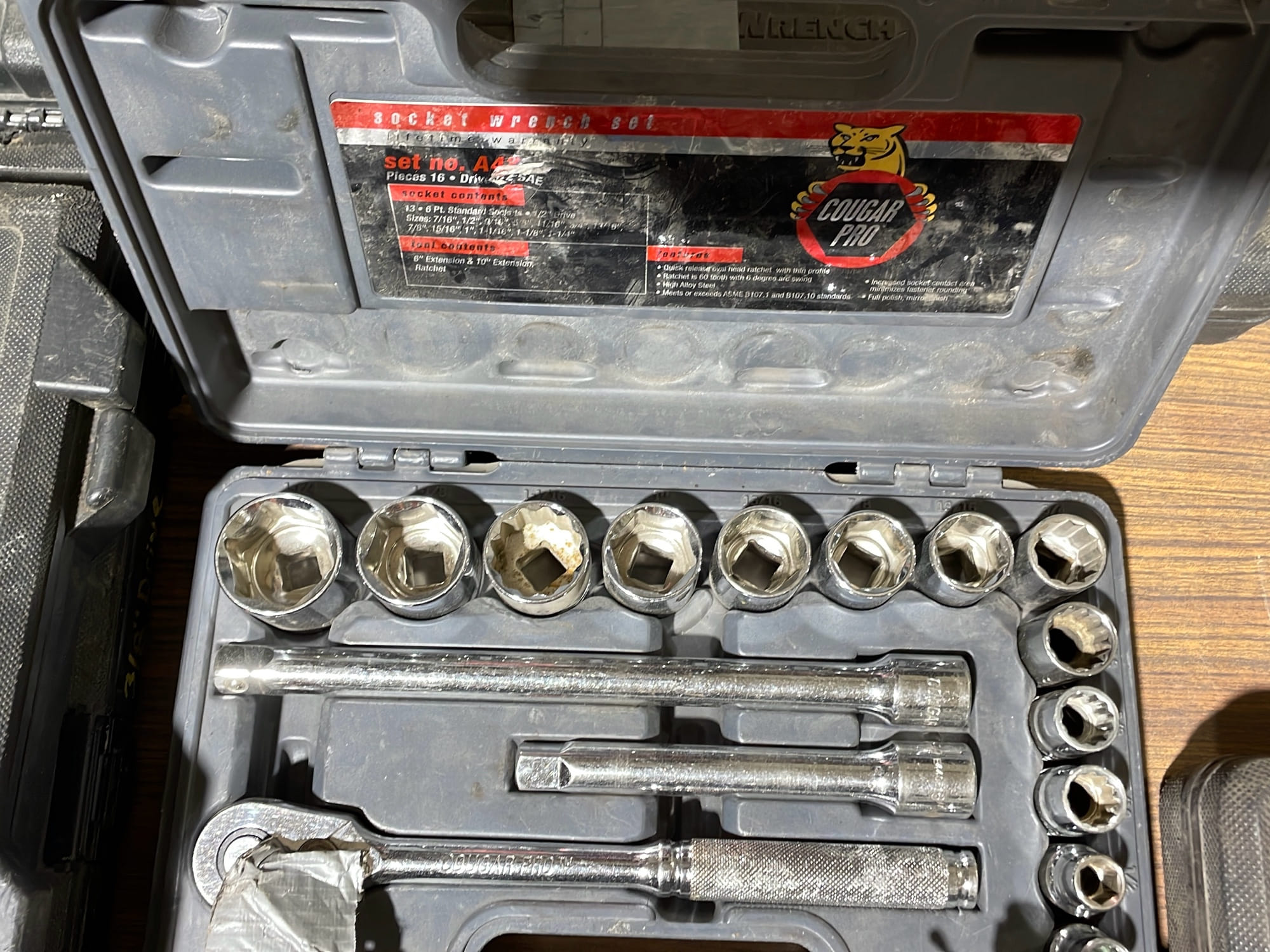 692 Socket assortment in plastic bin including Powerbuilt 7/16”, craftsman 1/4” 12mm, craftsman 1/4” 7/16”