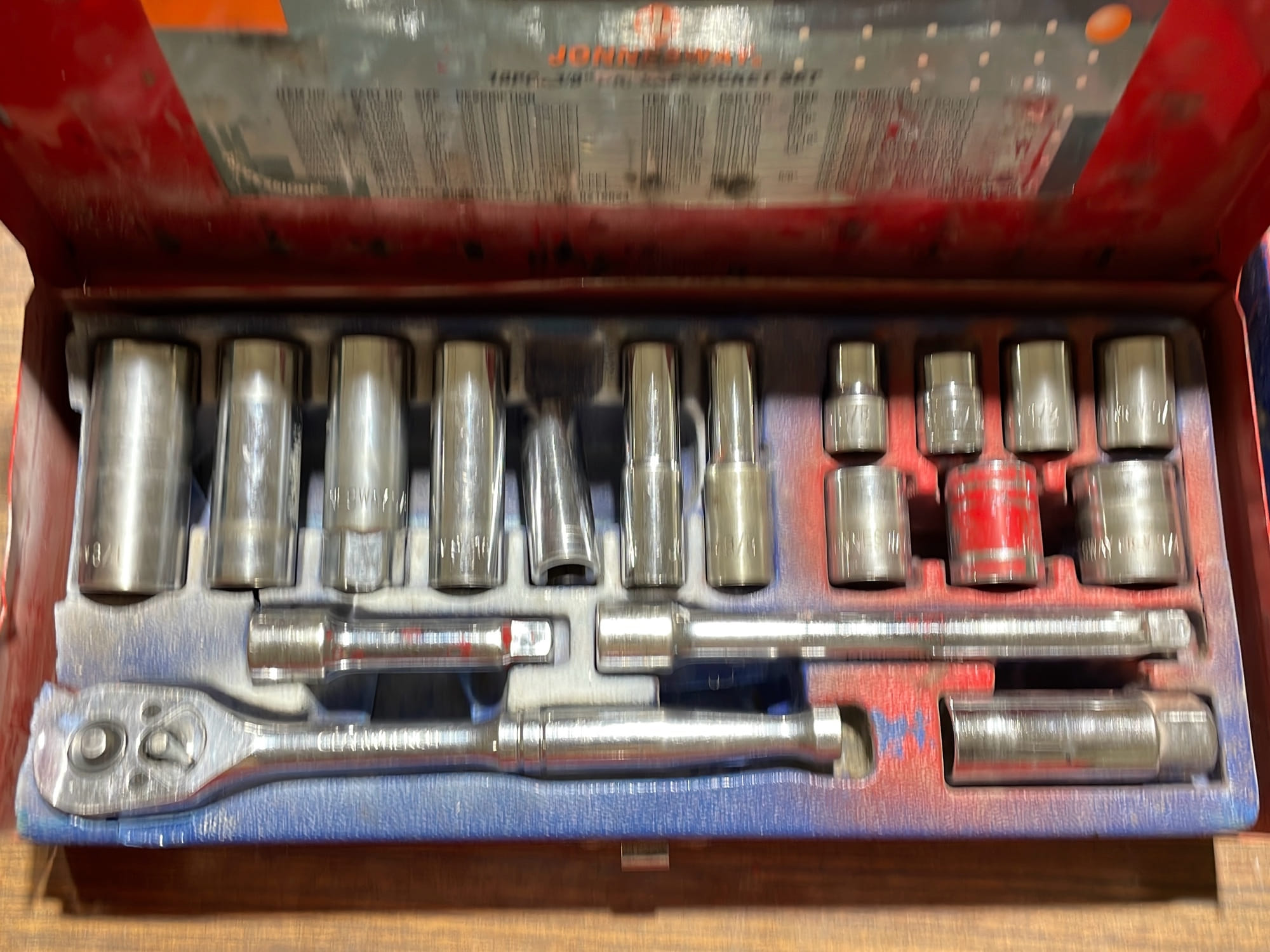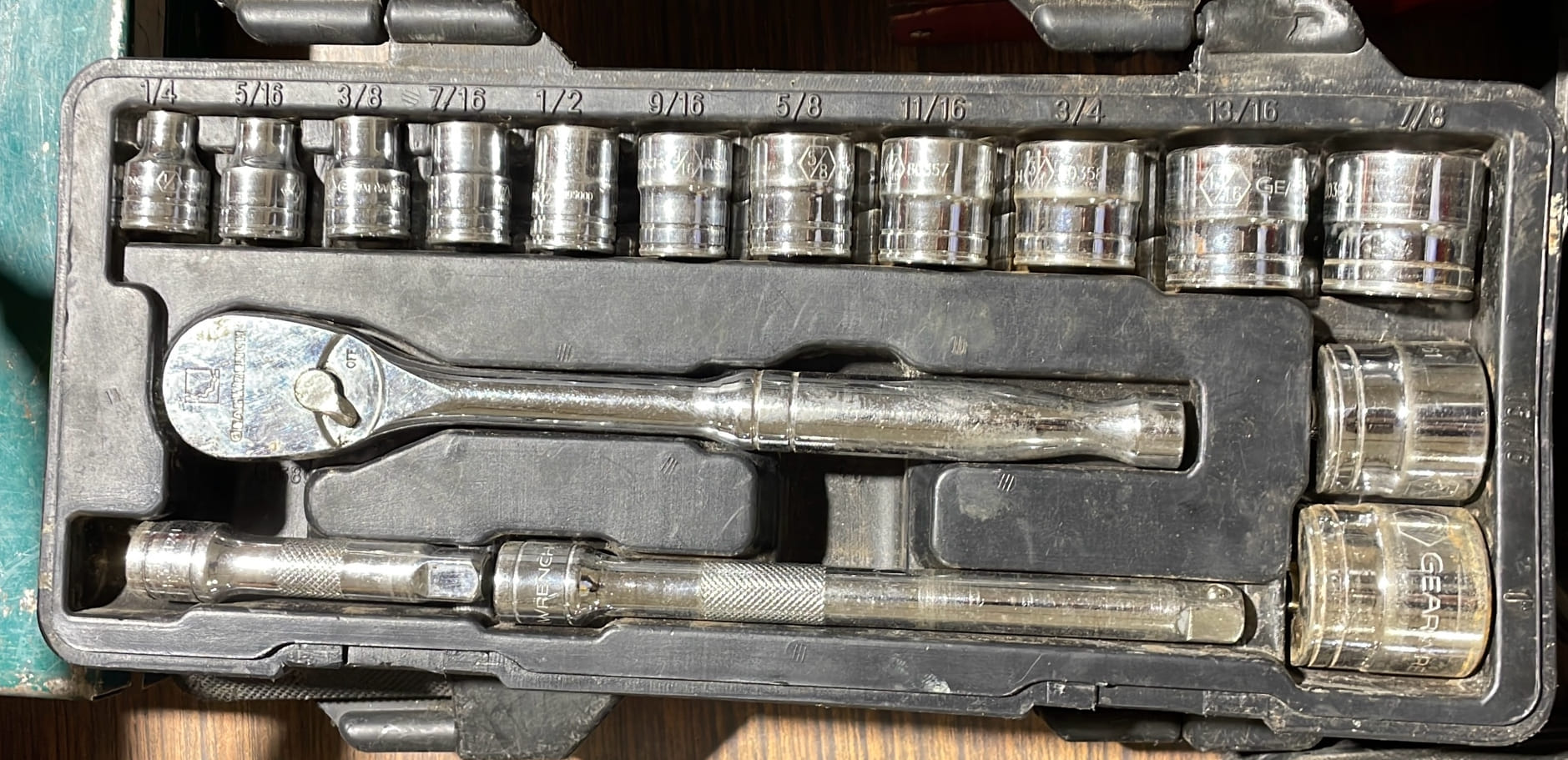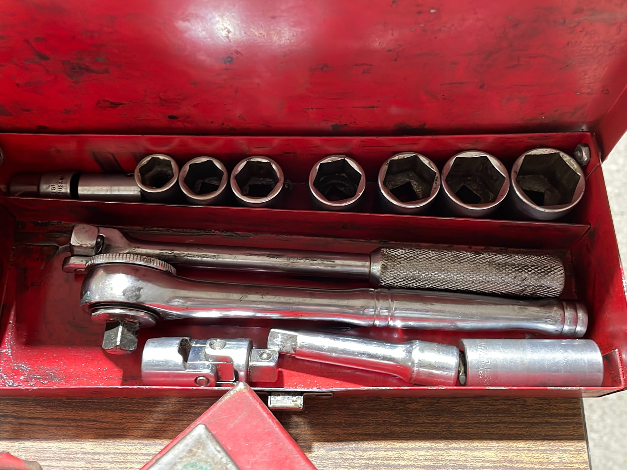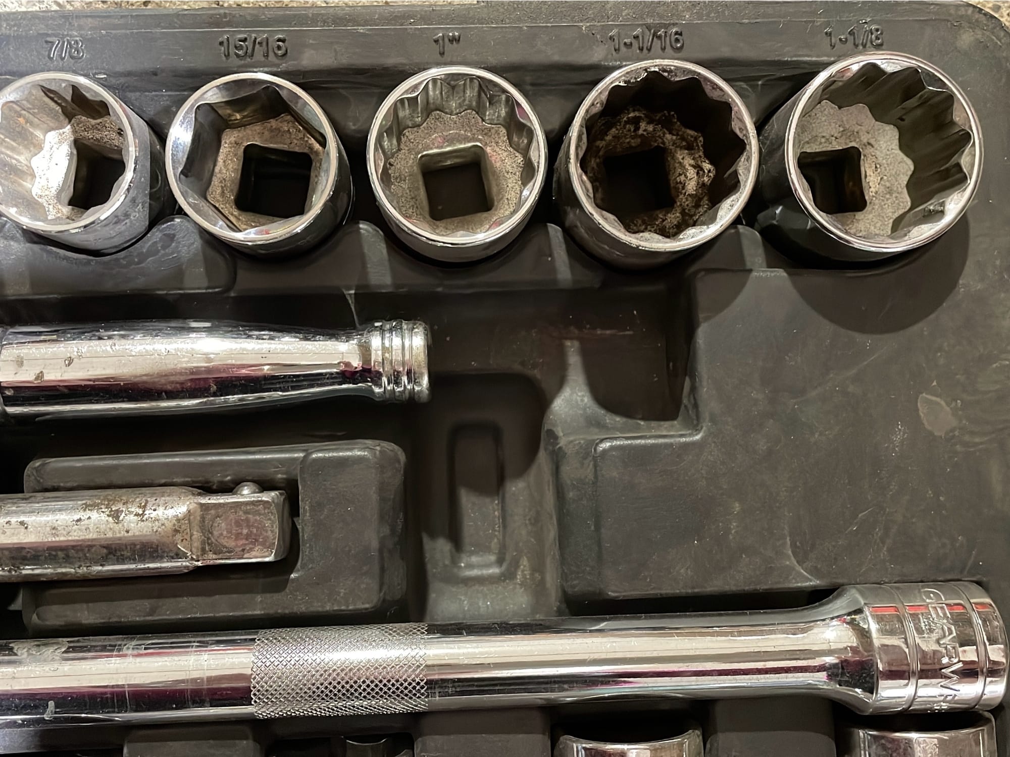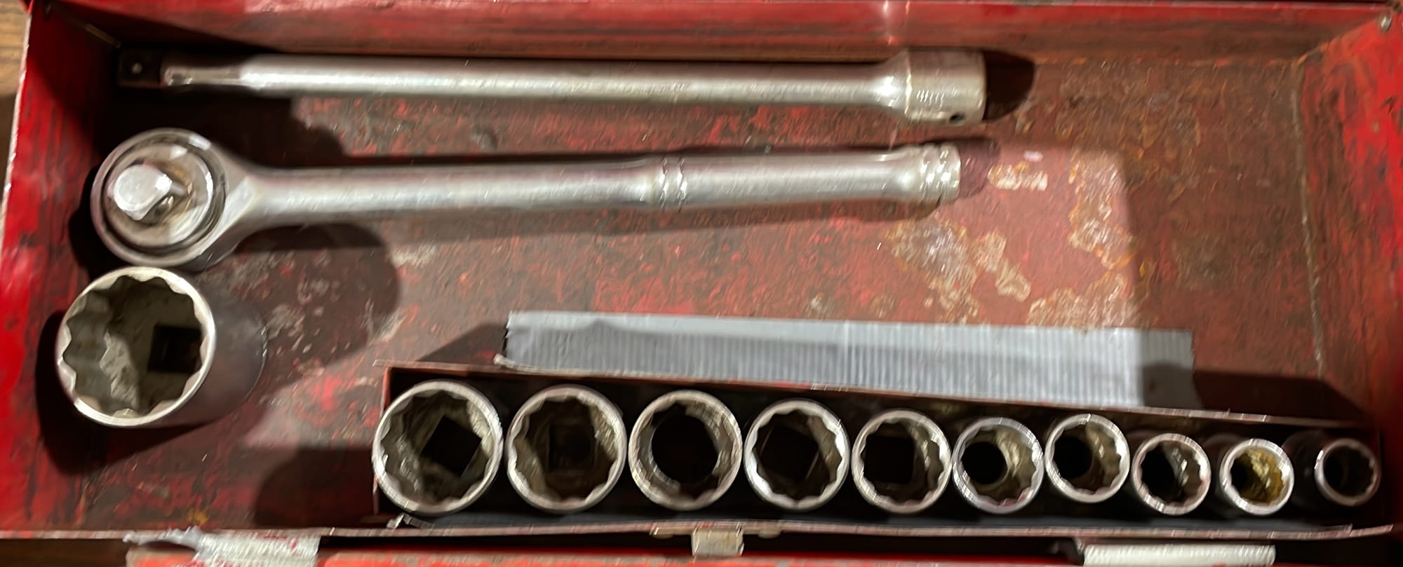 692 Socket assortment in plastic bin including Powerbuilt 7/16”, craftsman 1/4” 12mm, craftsman 1/4” 7/16”