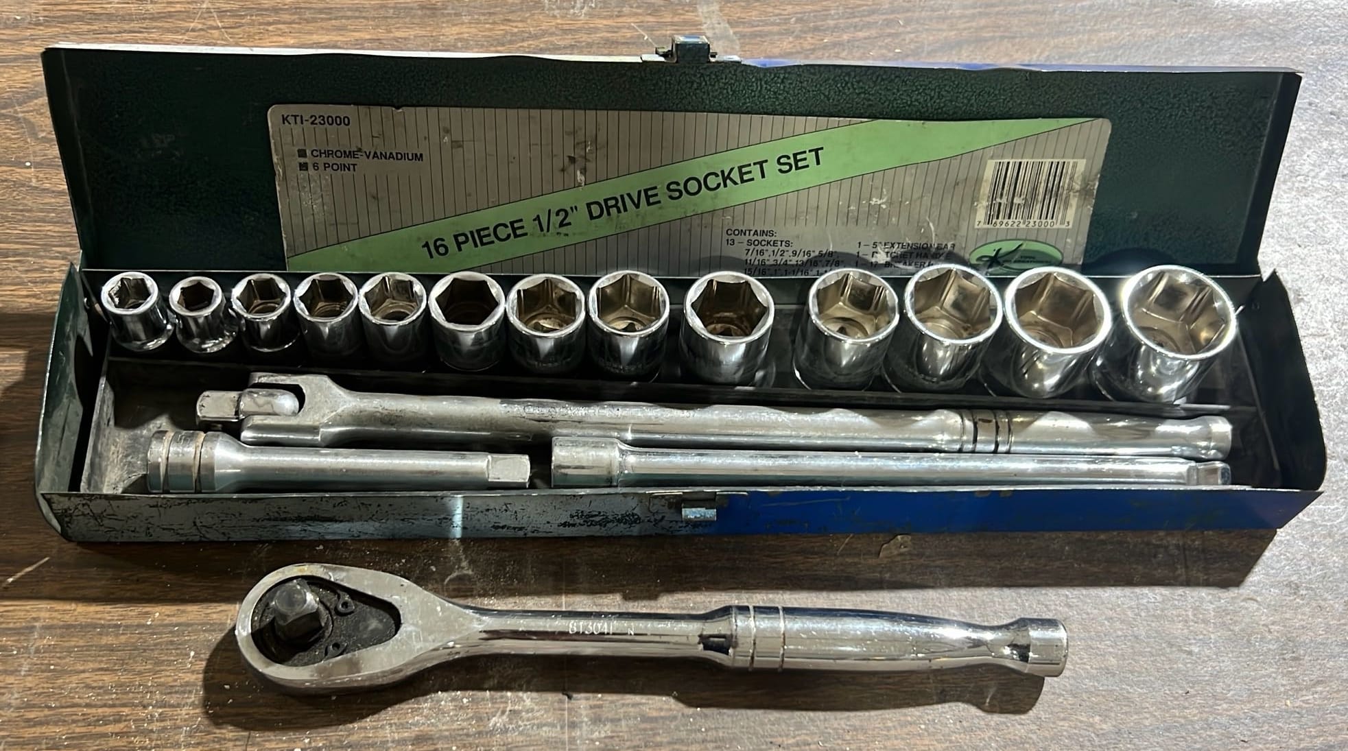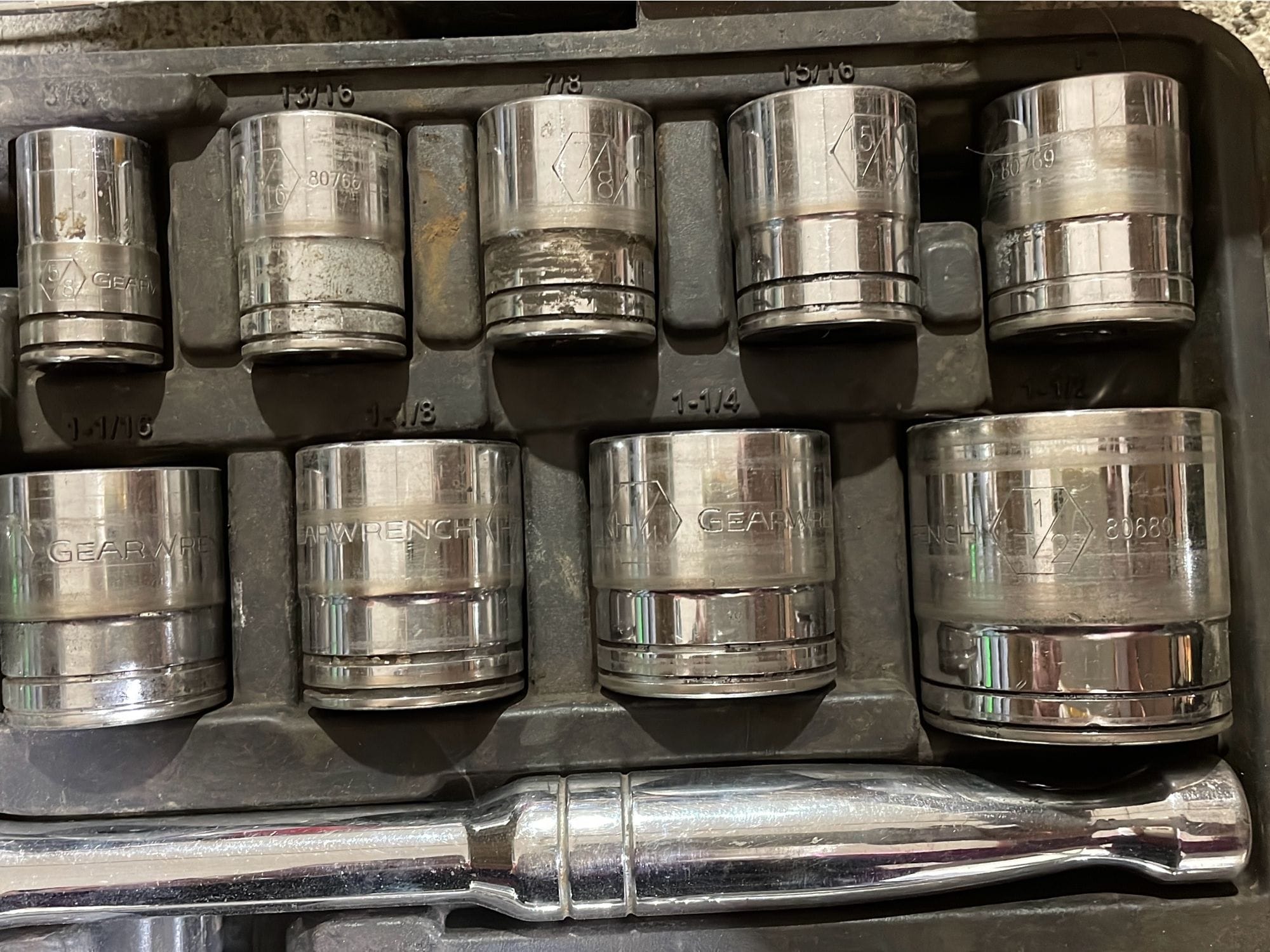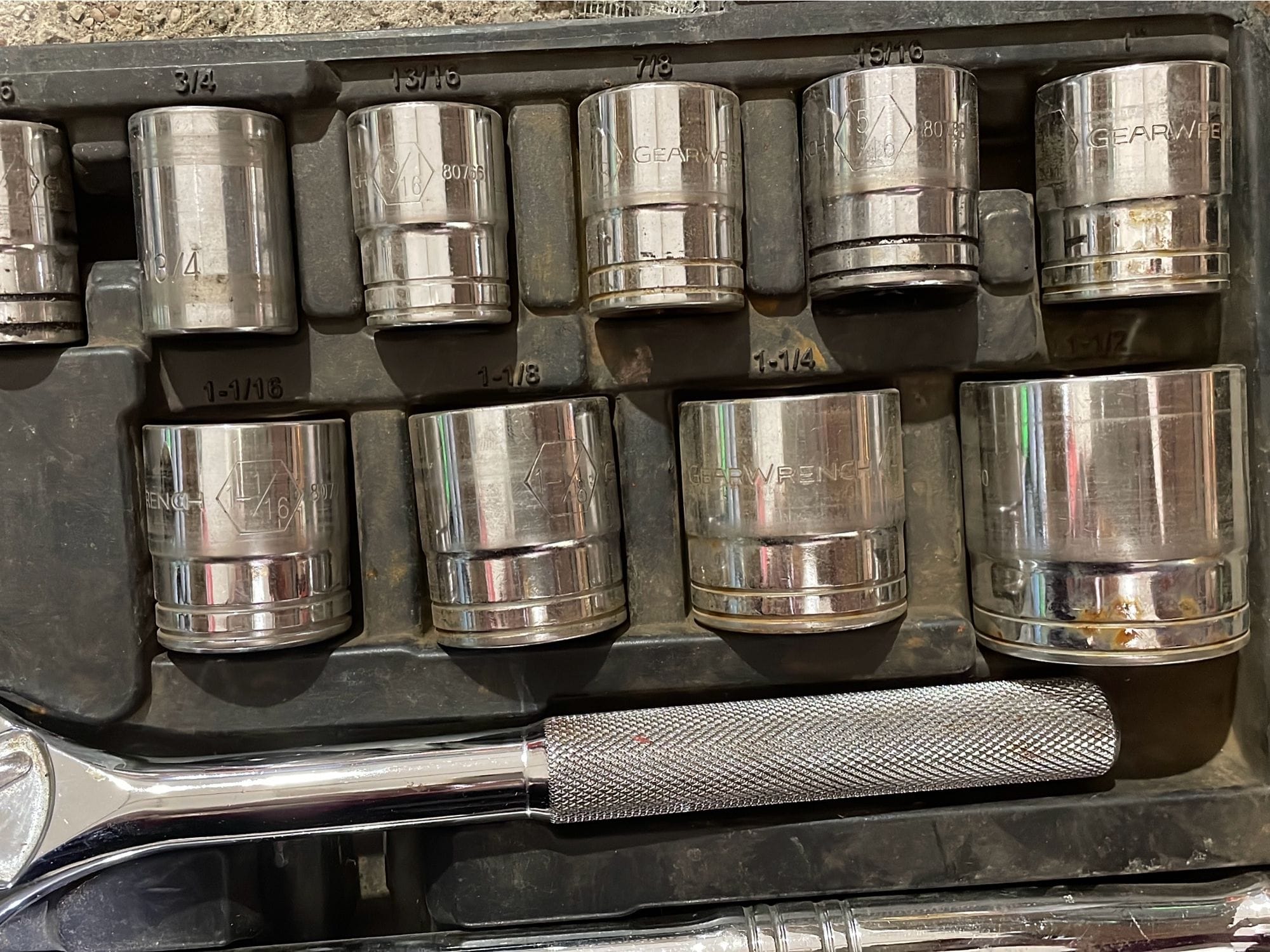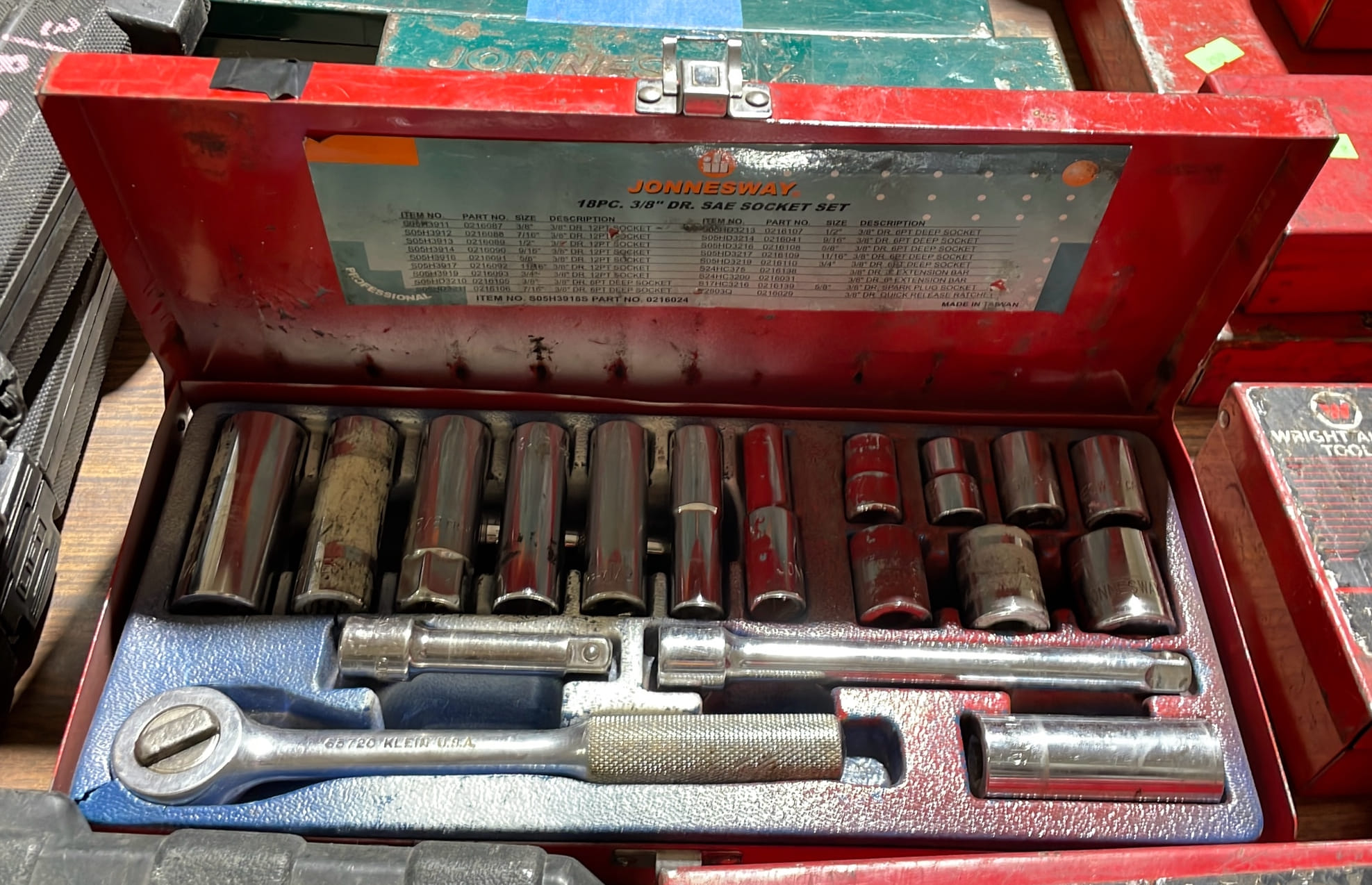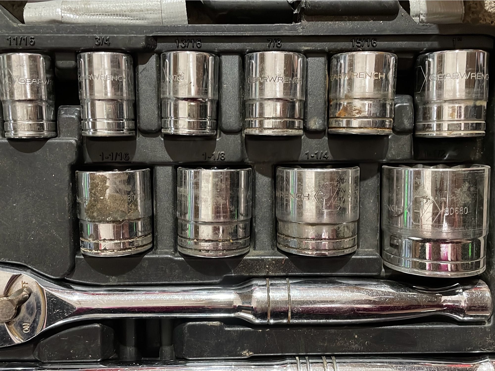692 Socket assortment in plastic bin including Powerbuilt 7/16”, craftsman 1/4” 12mm, craftsman 1/4” 7/16”