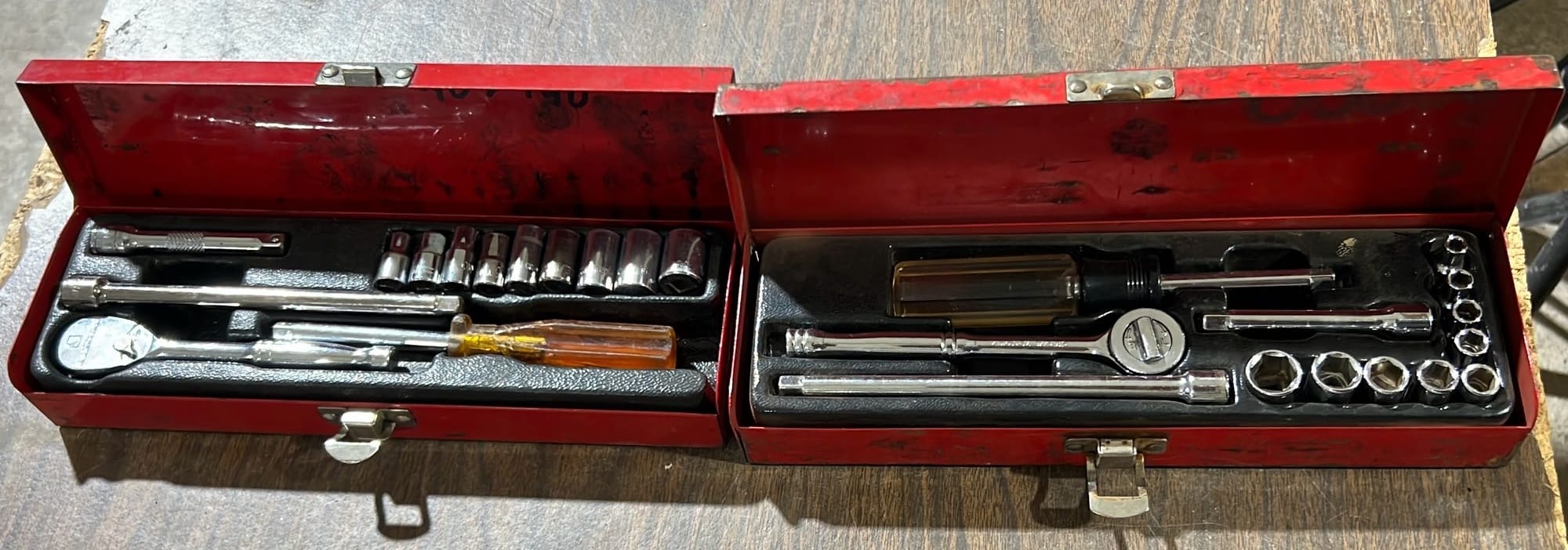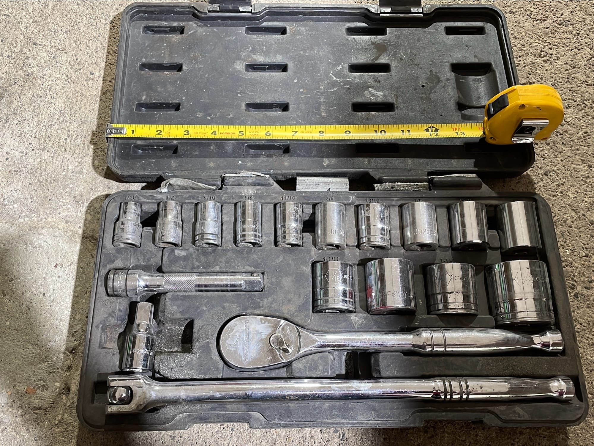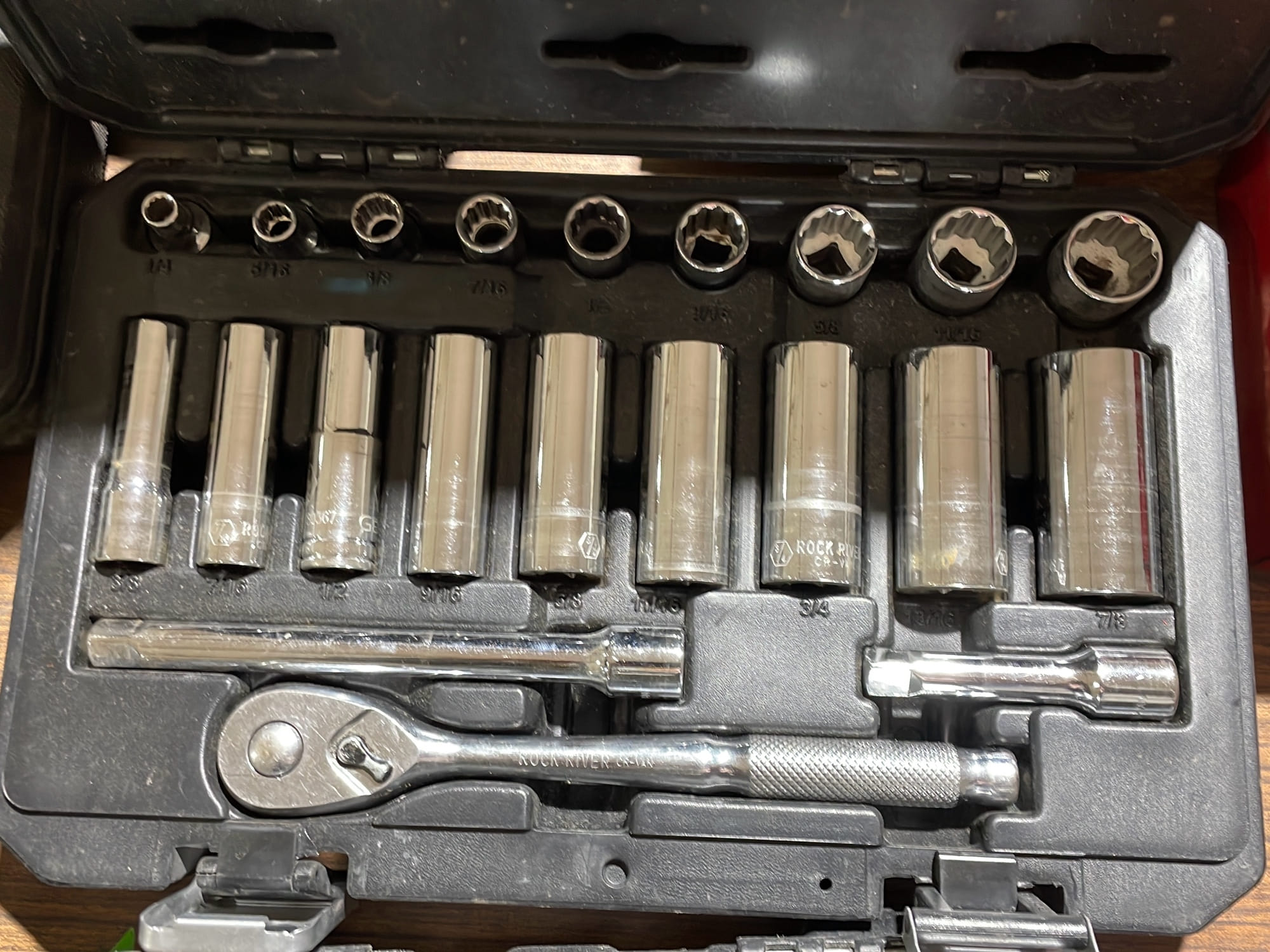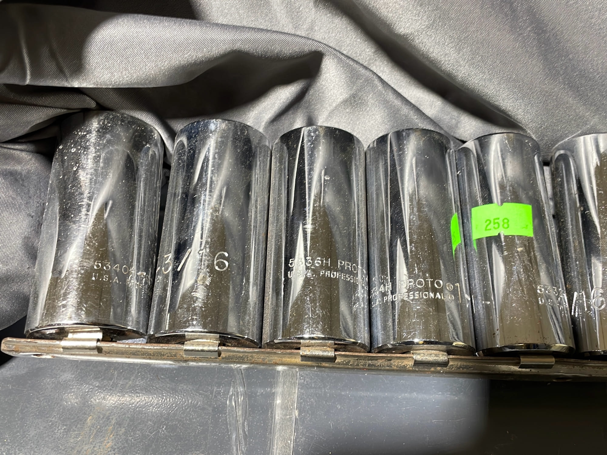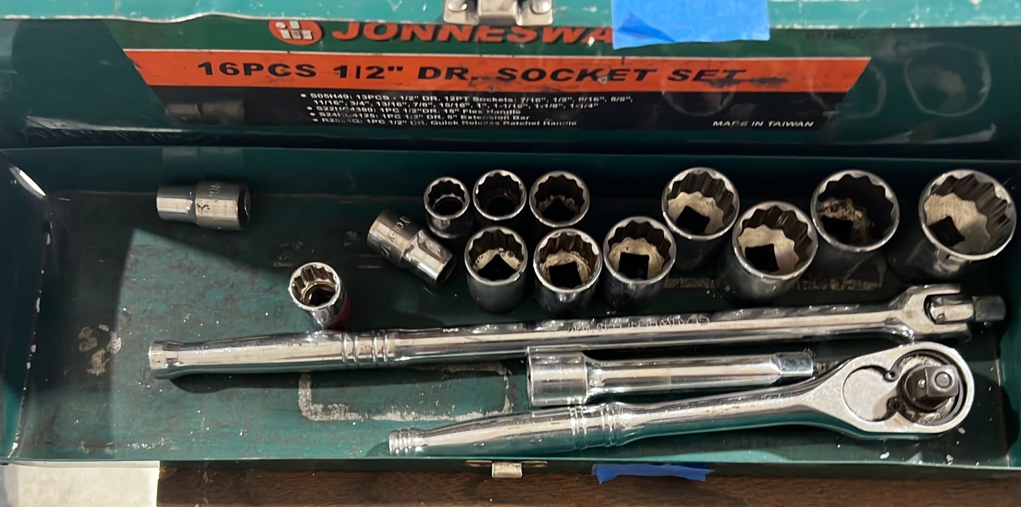 692 Socket assortment in plastic bin including Powerbuilt 7/16”, craftsman 1/4” 12mm, craftsman 1/4” 7/16”