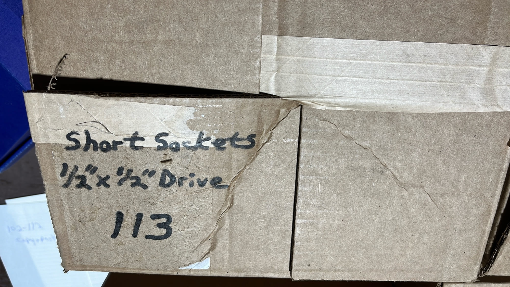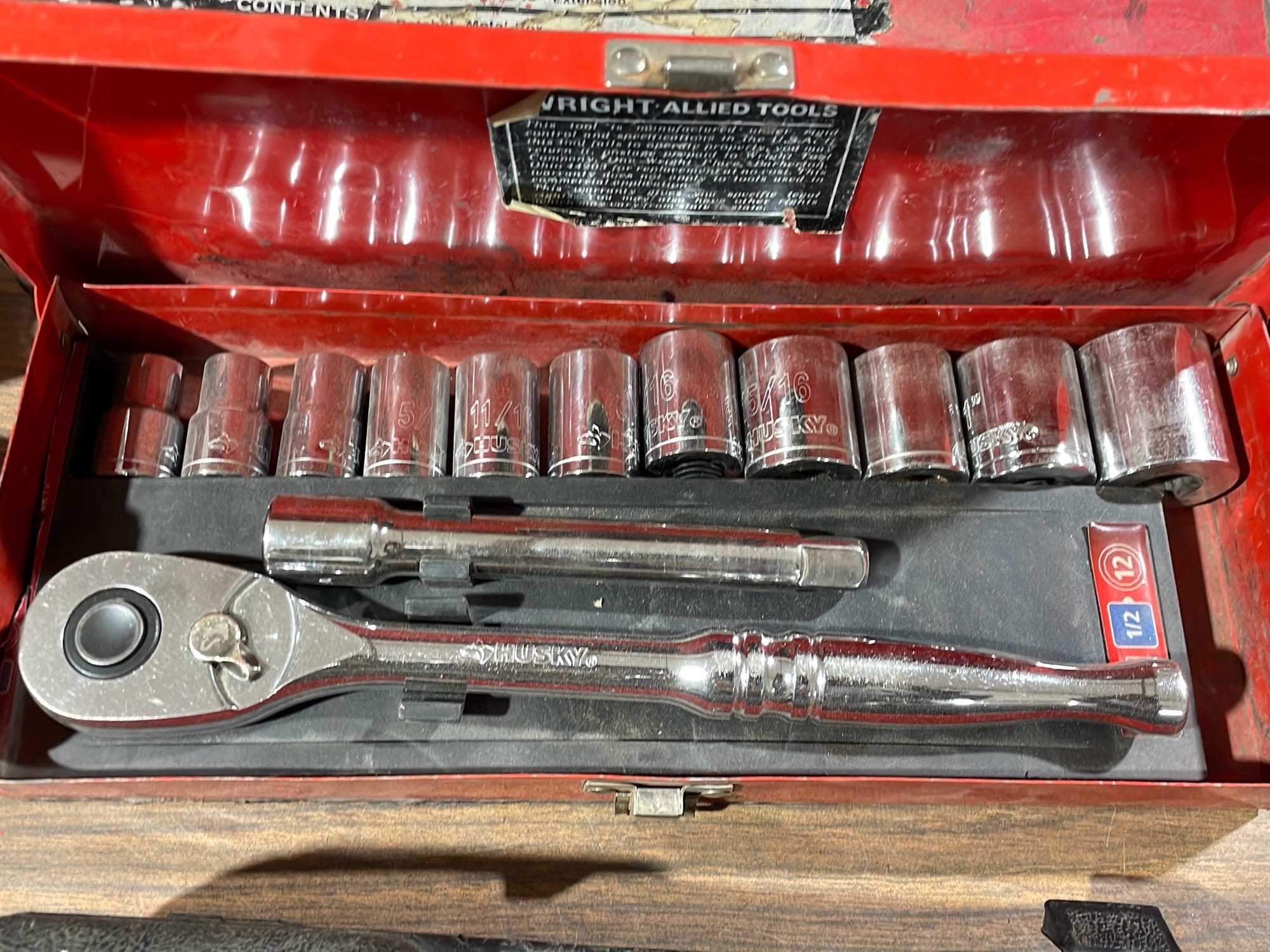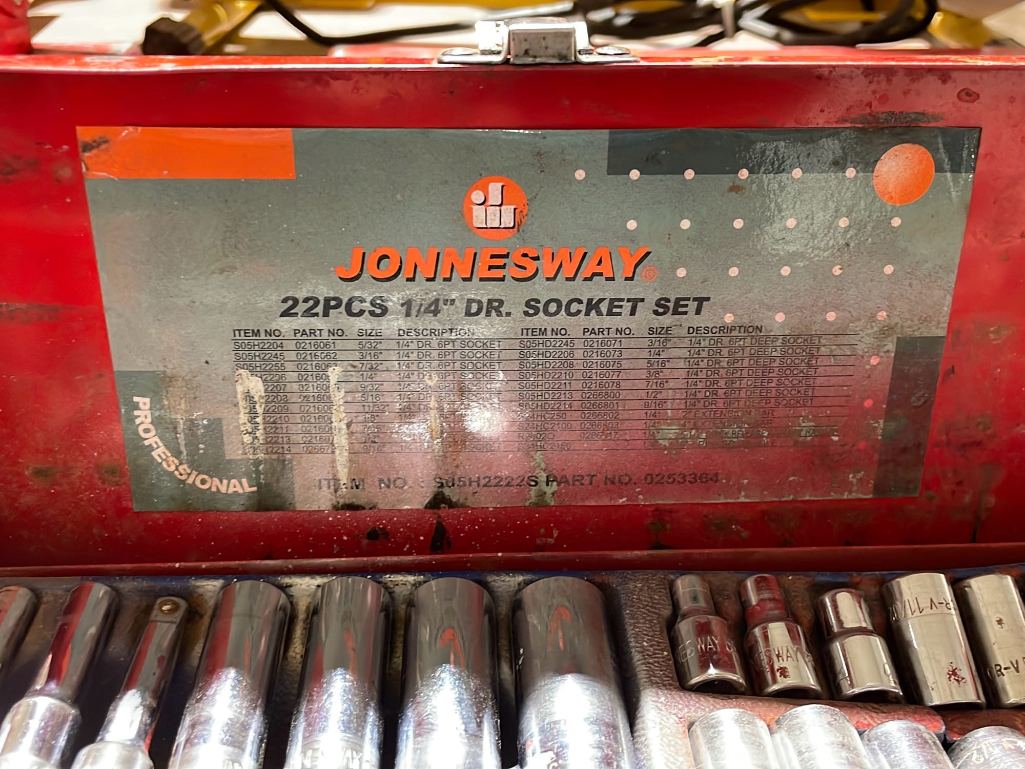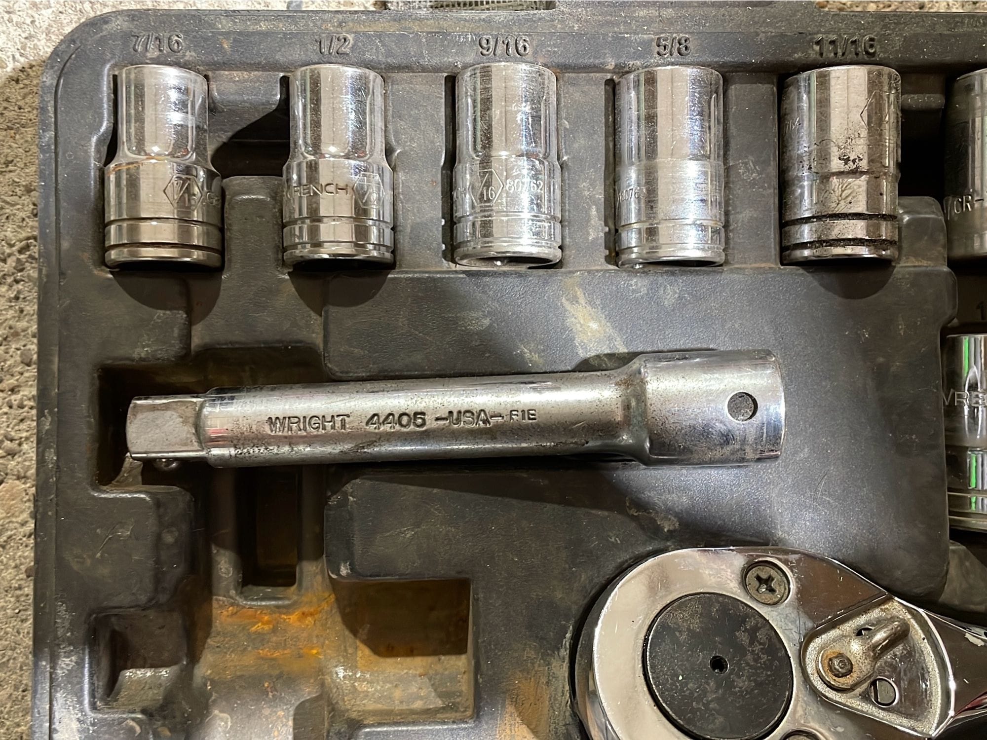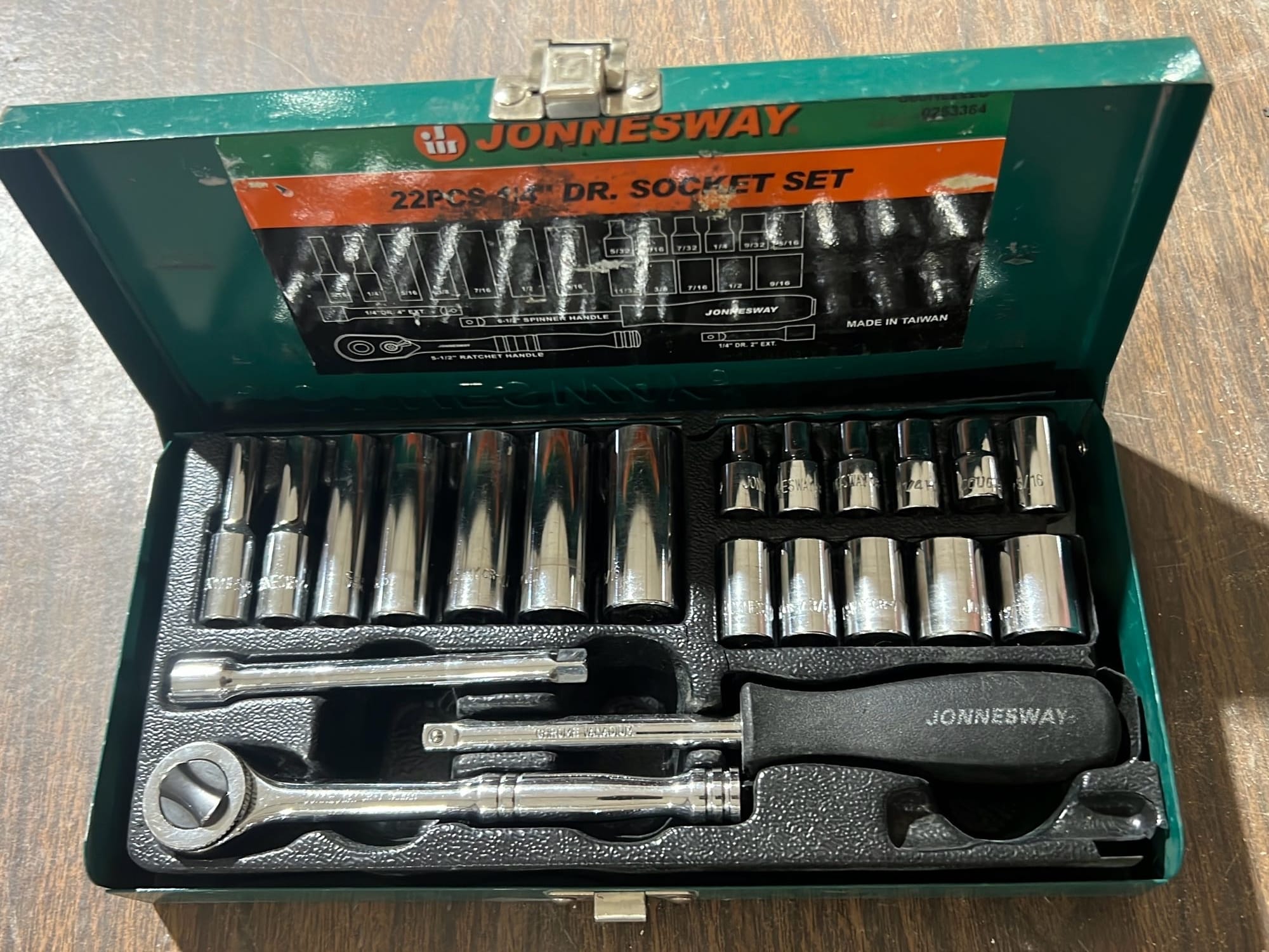 692 Socket assortment in plastic bin including Powerbuilt 7/16”, craftsman 1/4” 12mm, craftsman 1/4” 7/16”