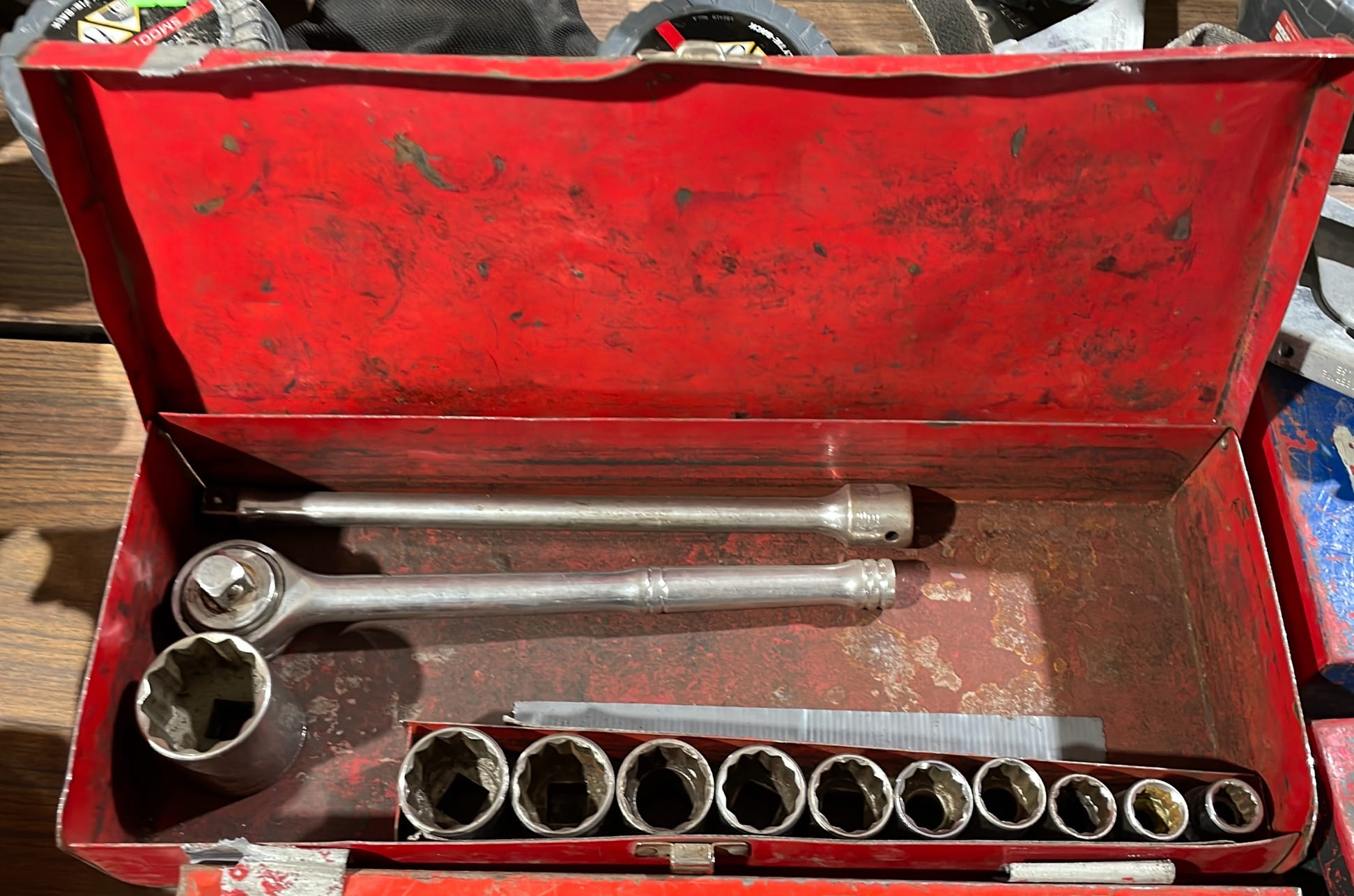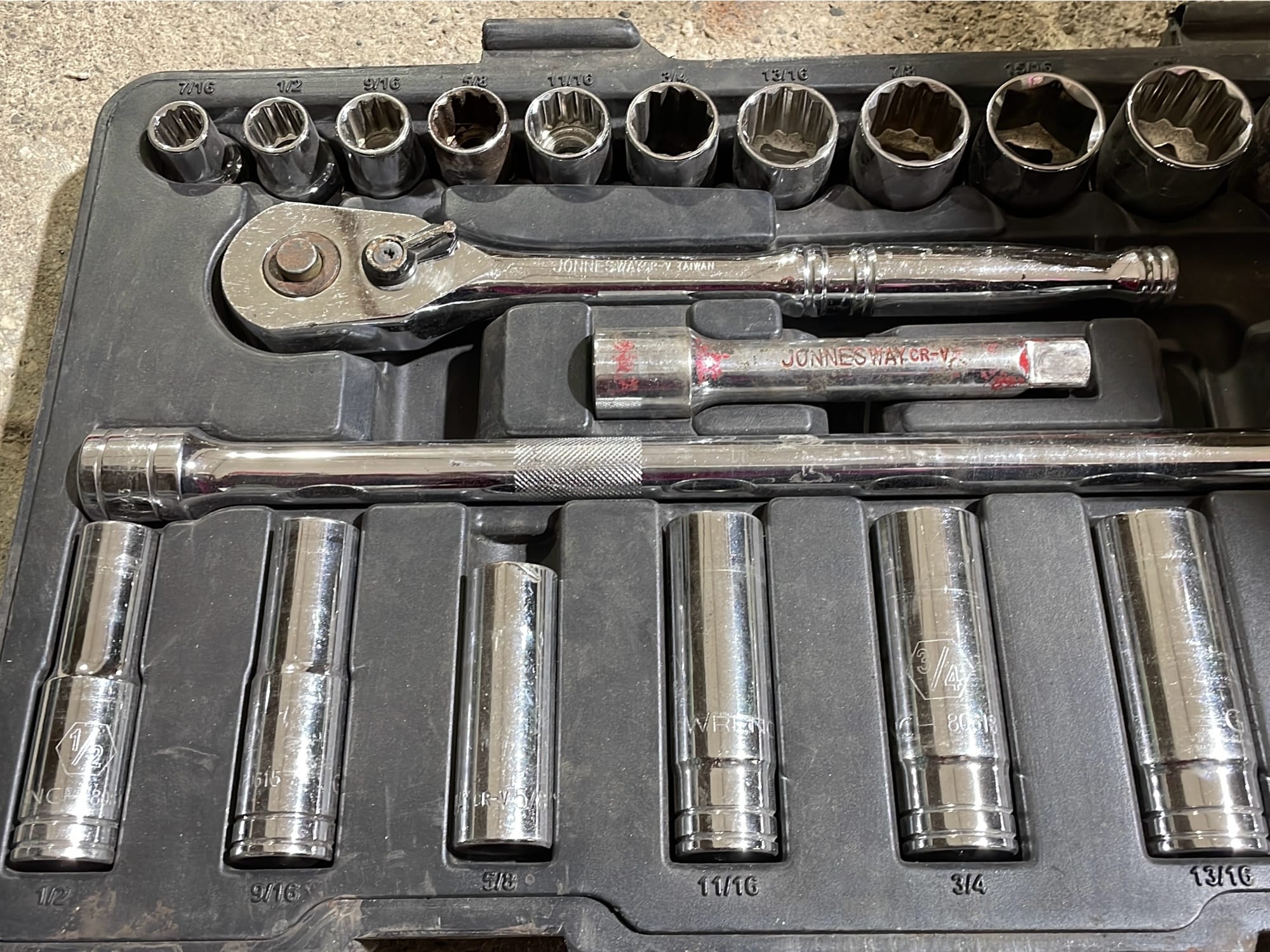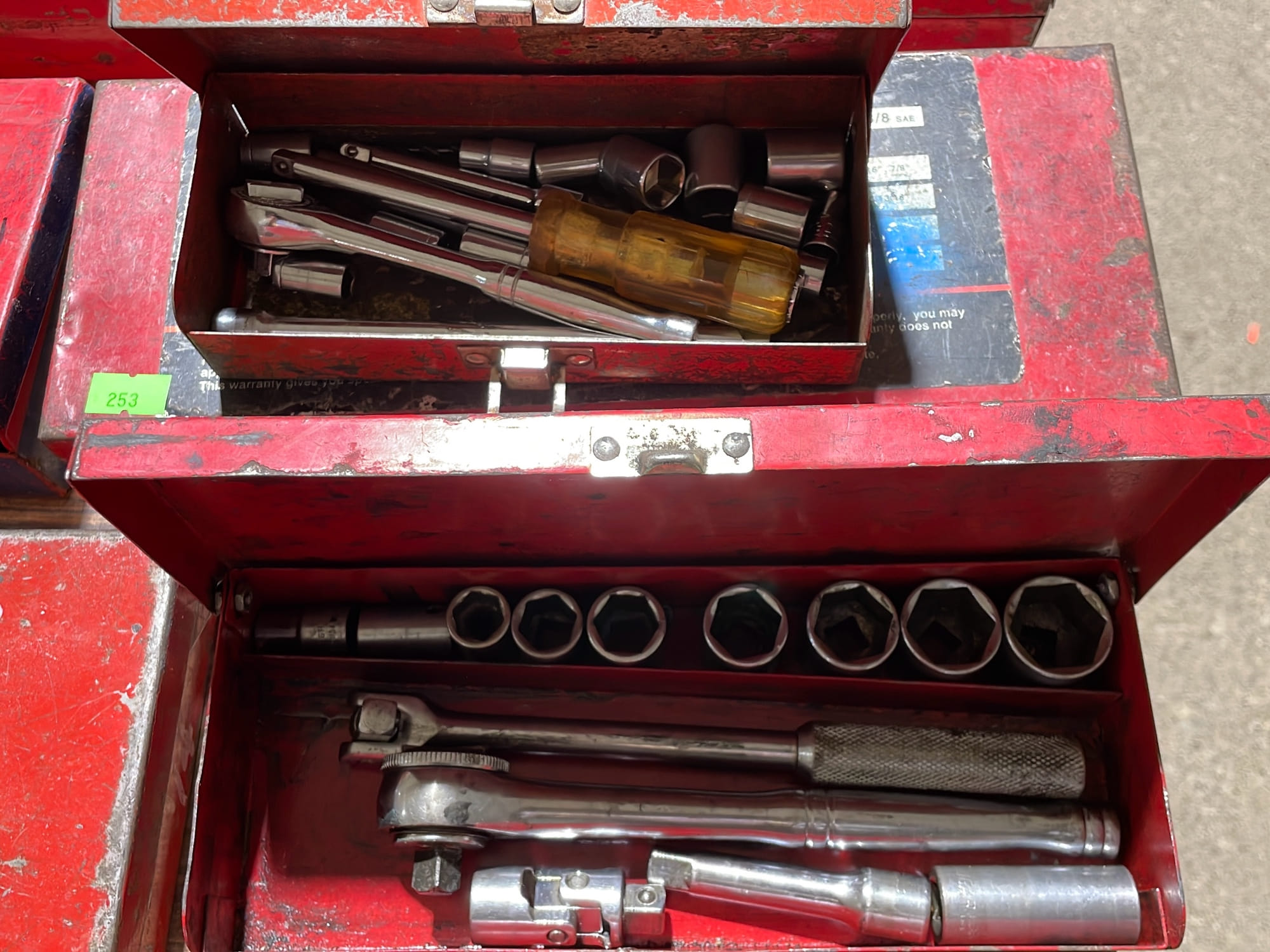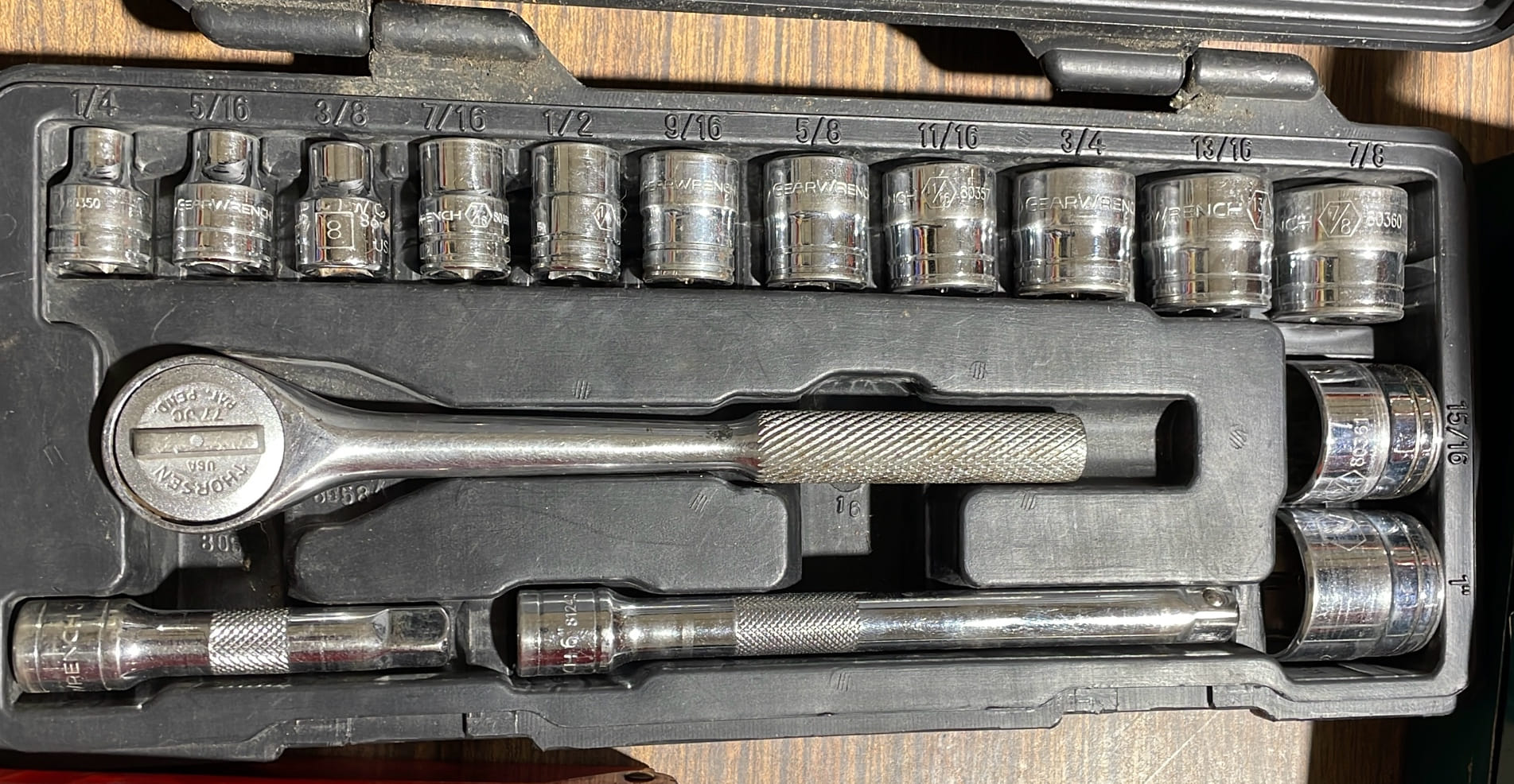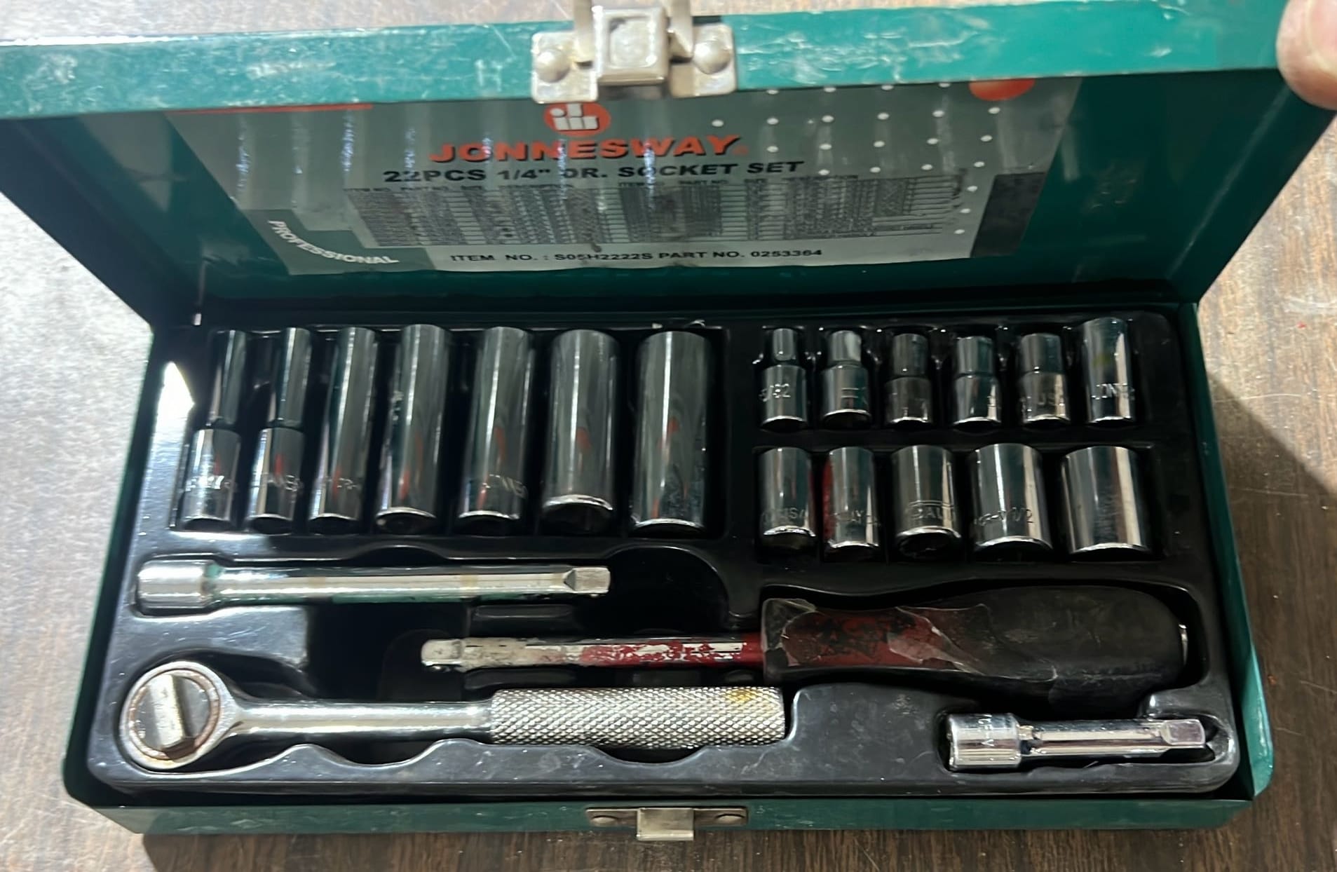 692 Socket assortment in plastic bin including Powerbuilt 7/16”, craftsman 1/4” 12mm, craftsman 1/4” 7/16”