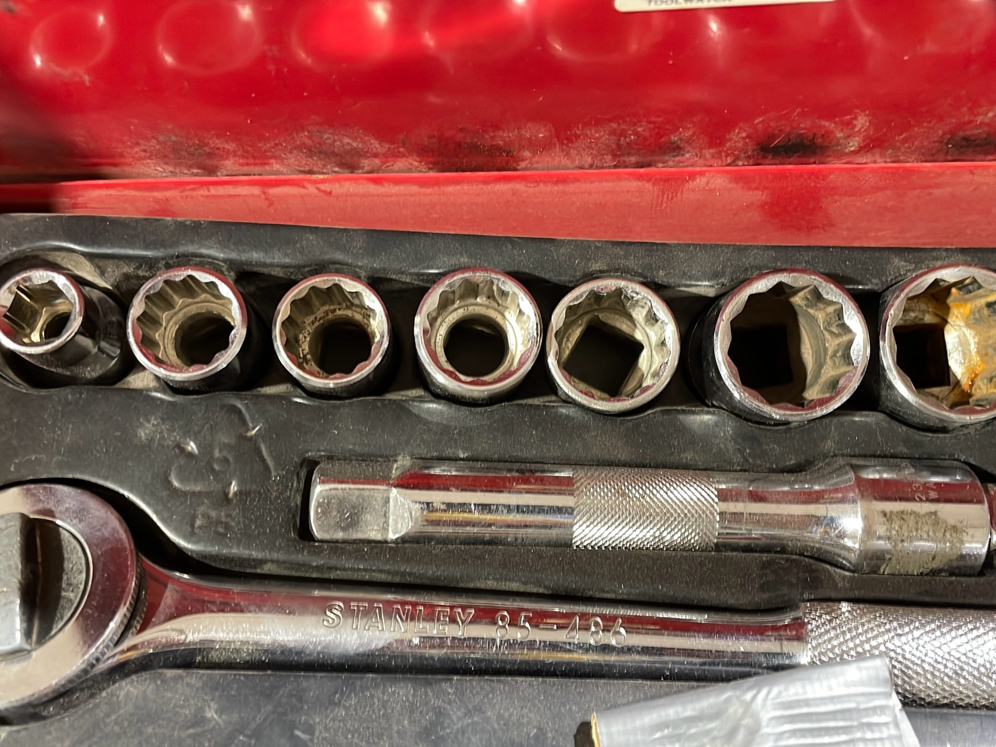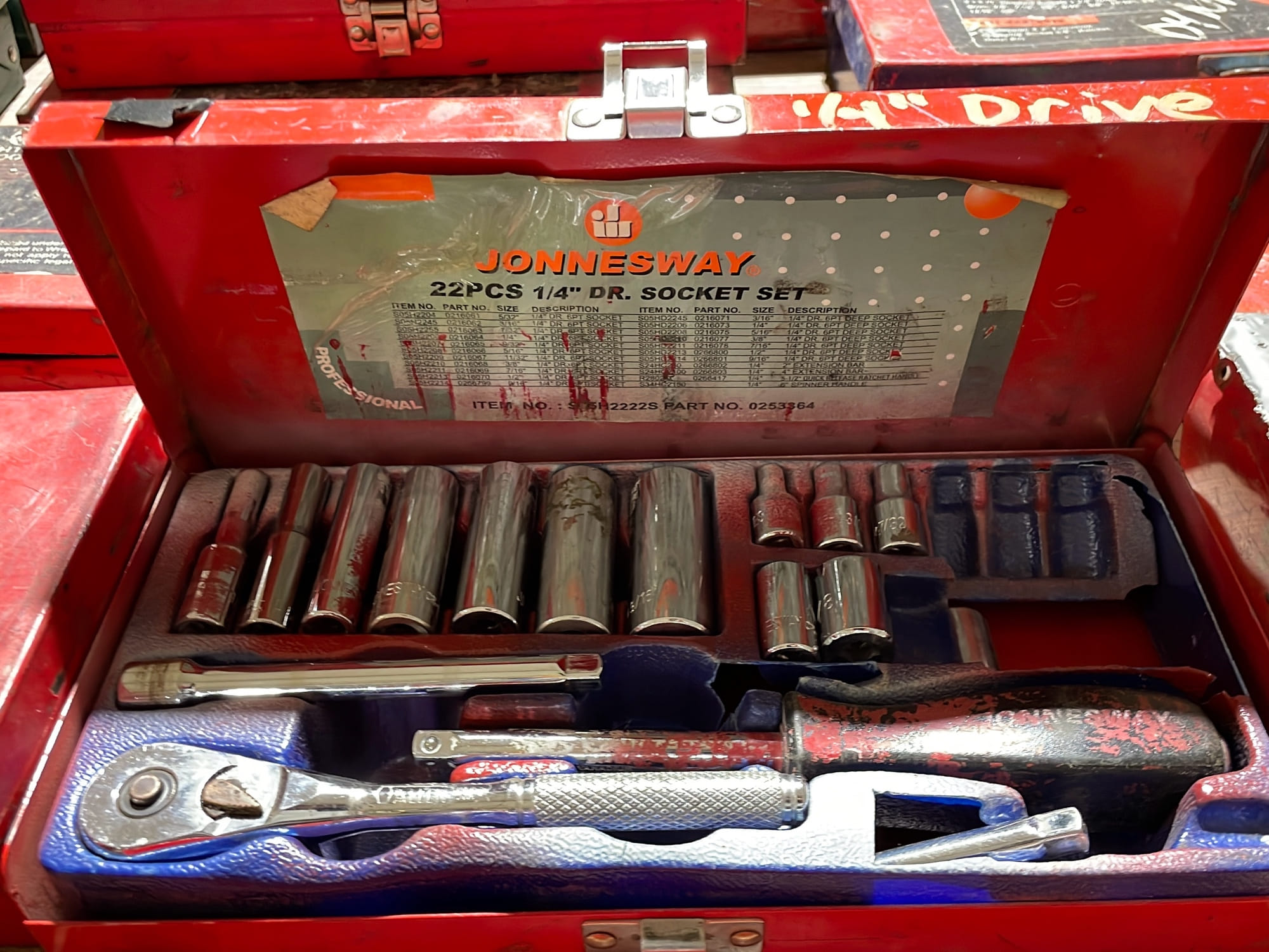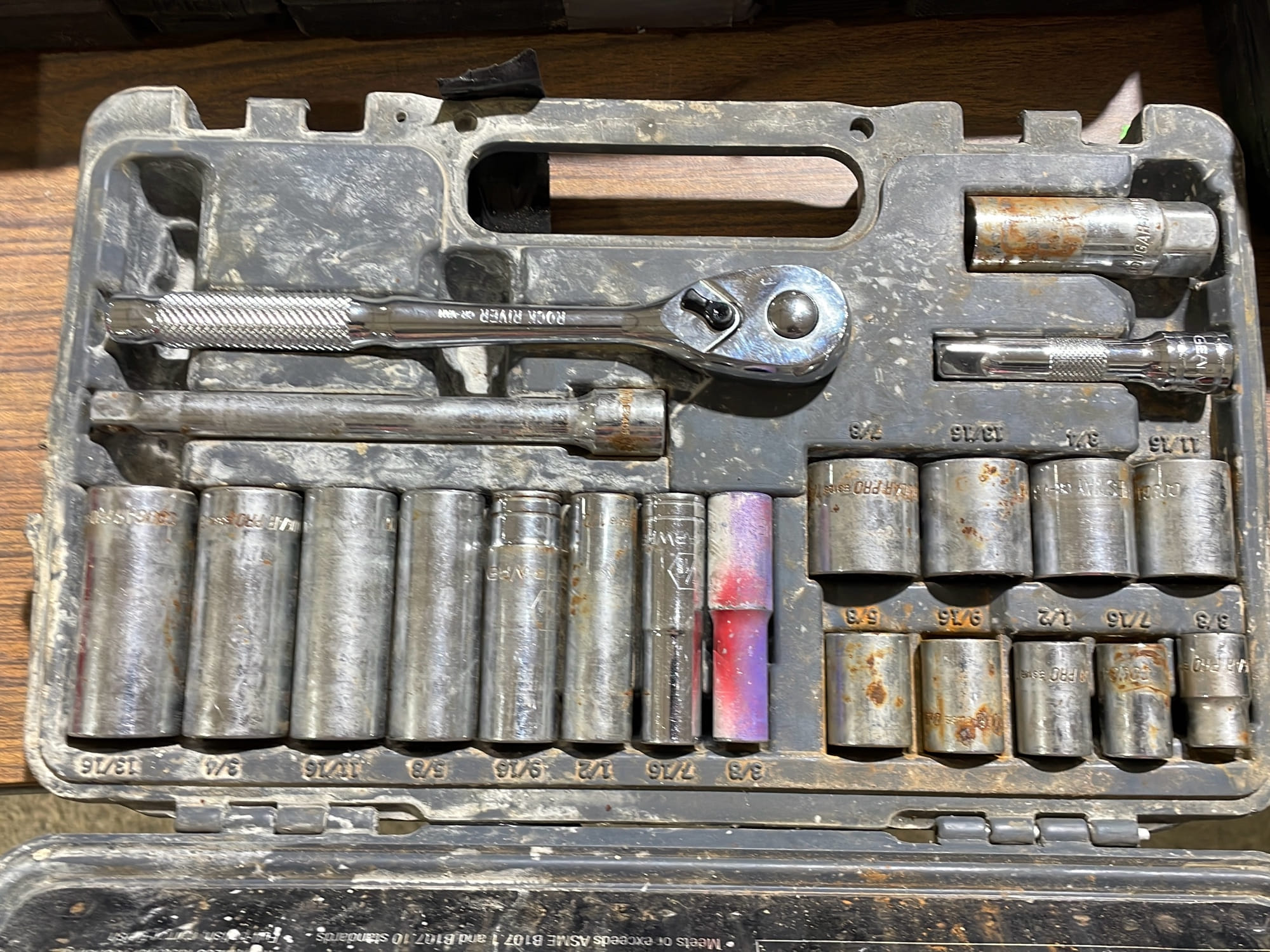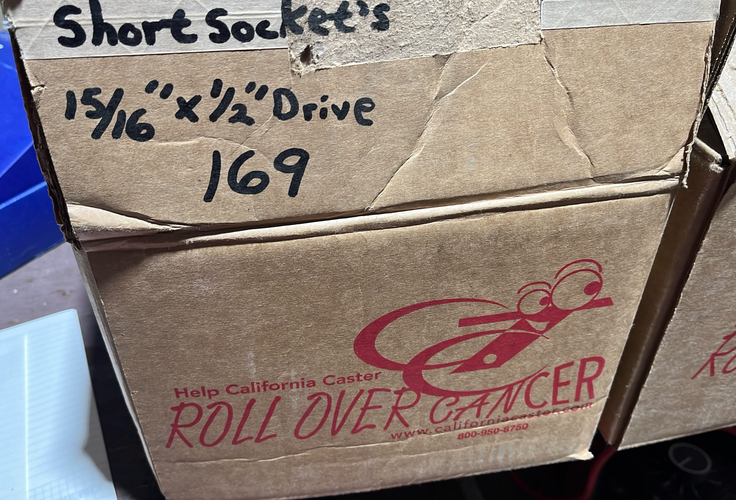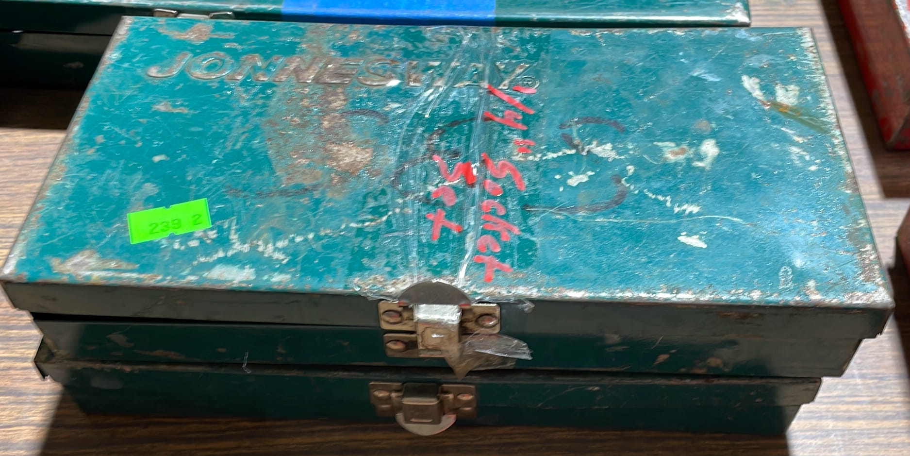 692 Socket assortment in plastic bin including Powerbuilt 7/16”, craftsman 1/4” 12mm, craftsman 1/4” 7/16”