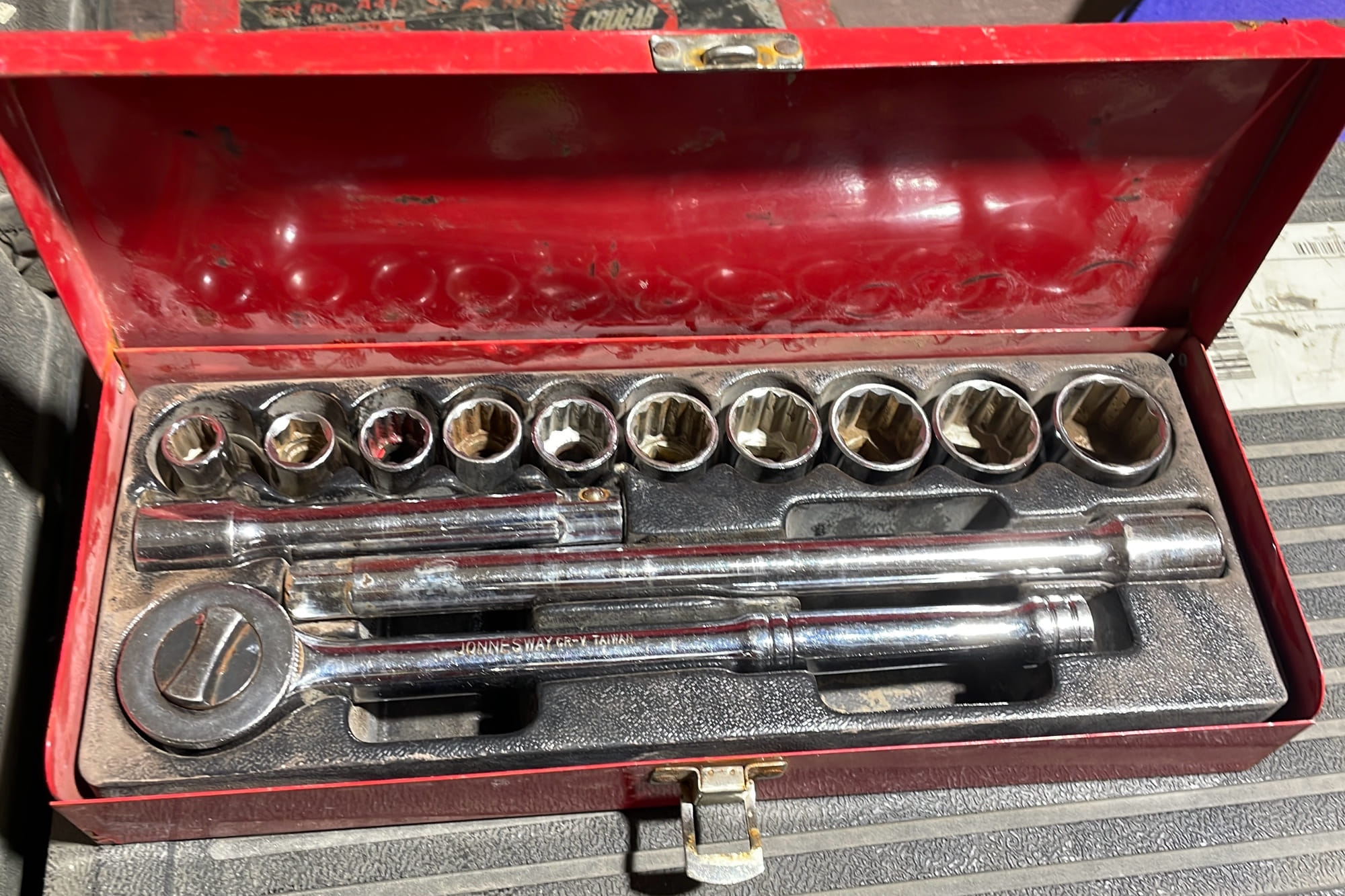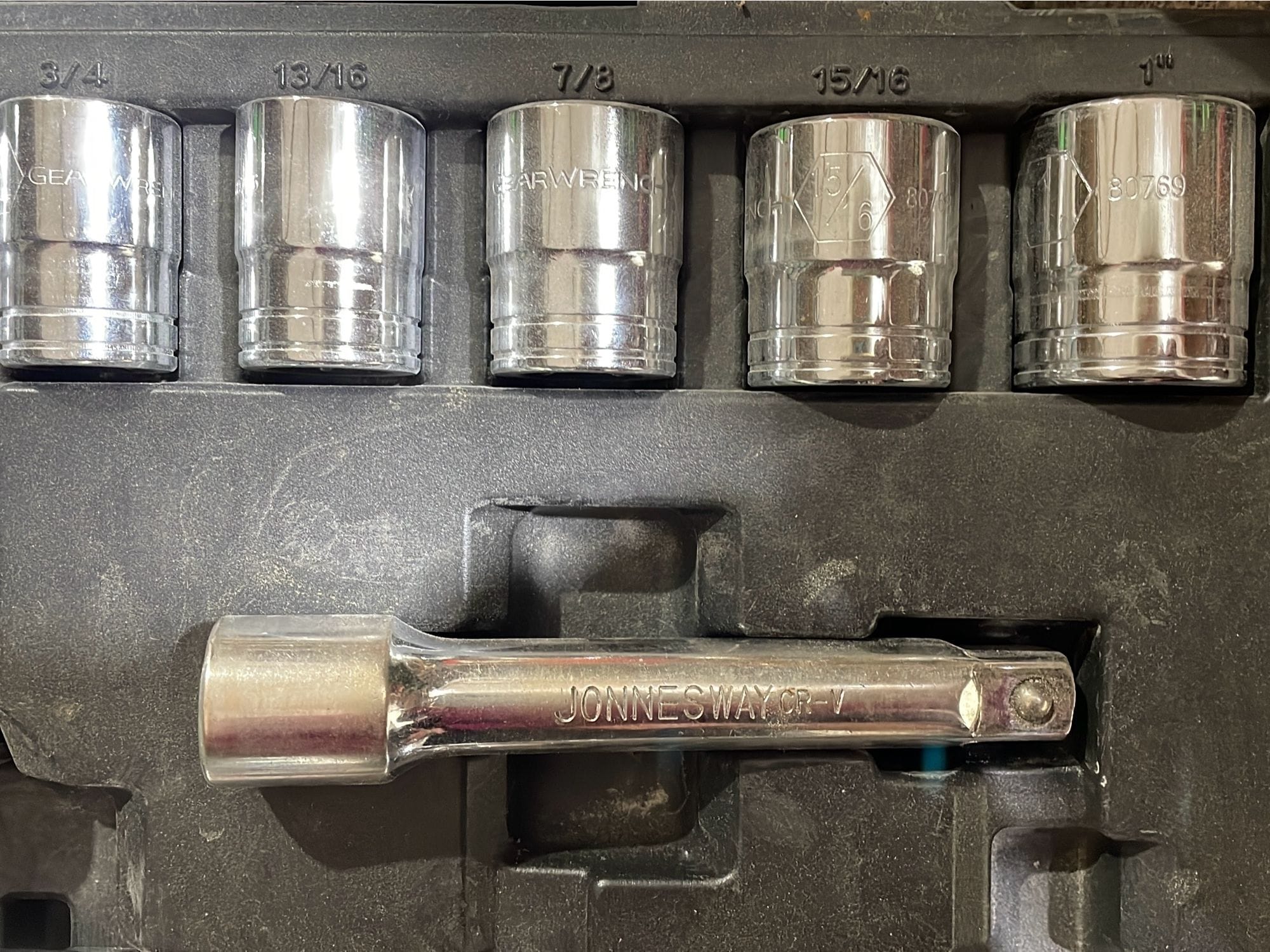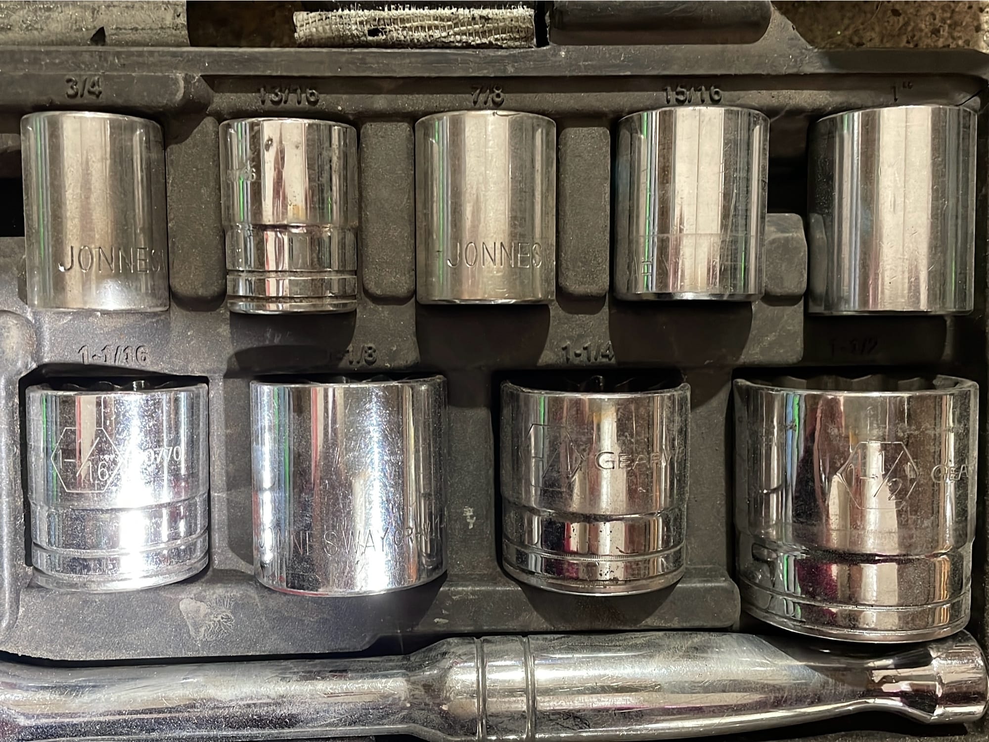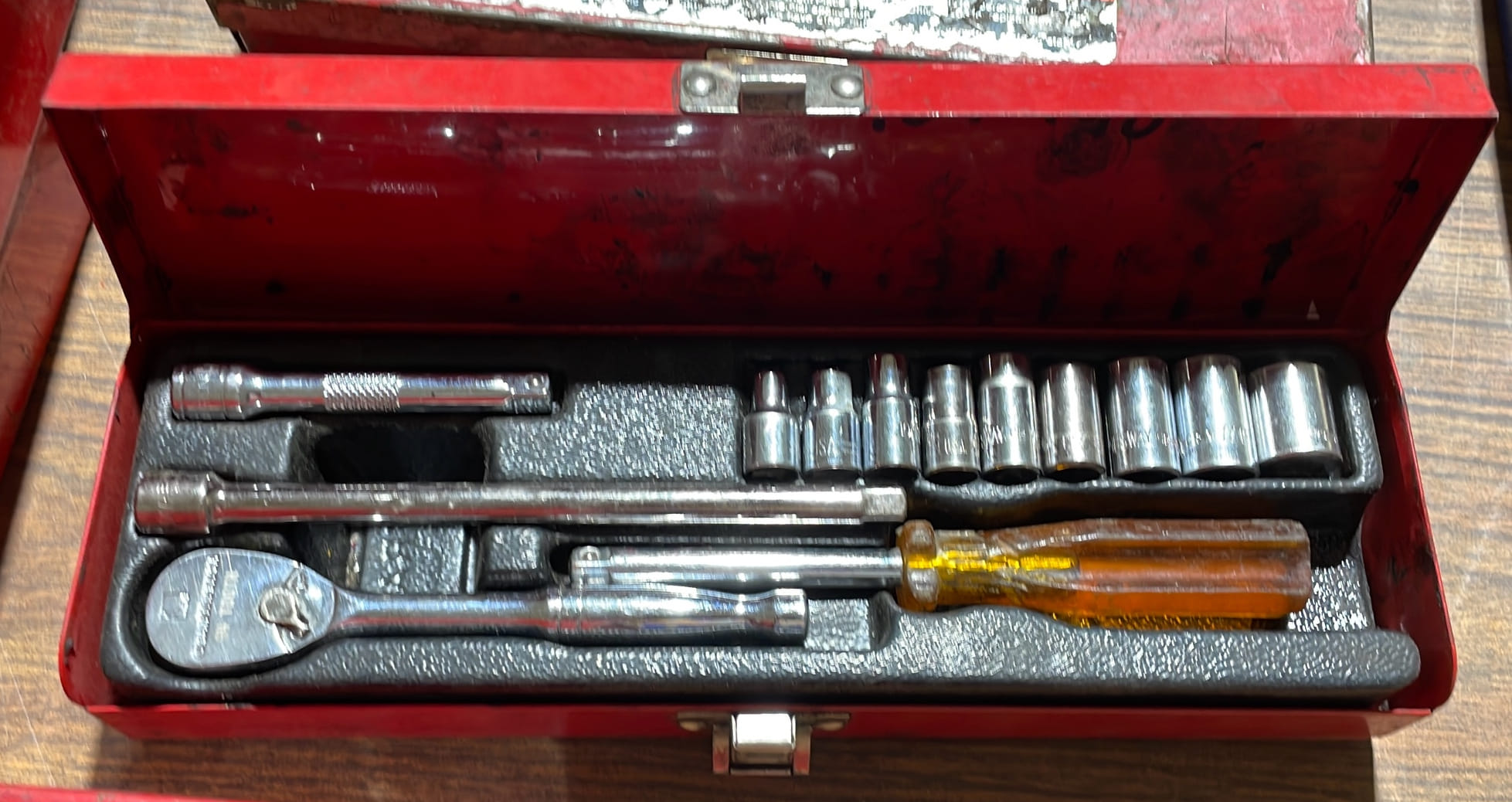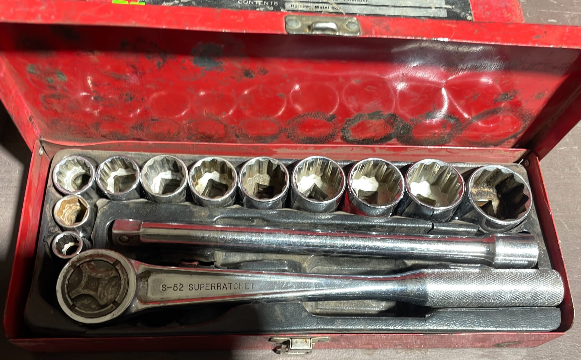 692 Socket assortment in plastic bin including Powerbuilt 7/16”, craftsman 1/4” 12mm, craftsman 1/4” 7/16”