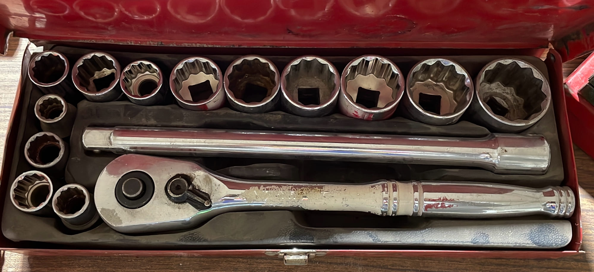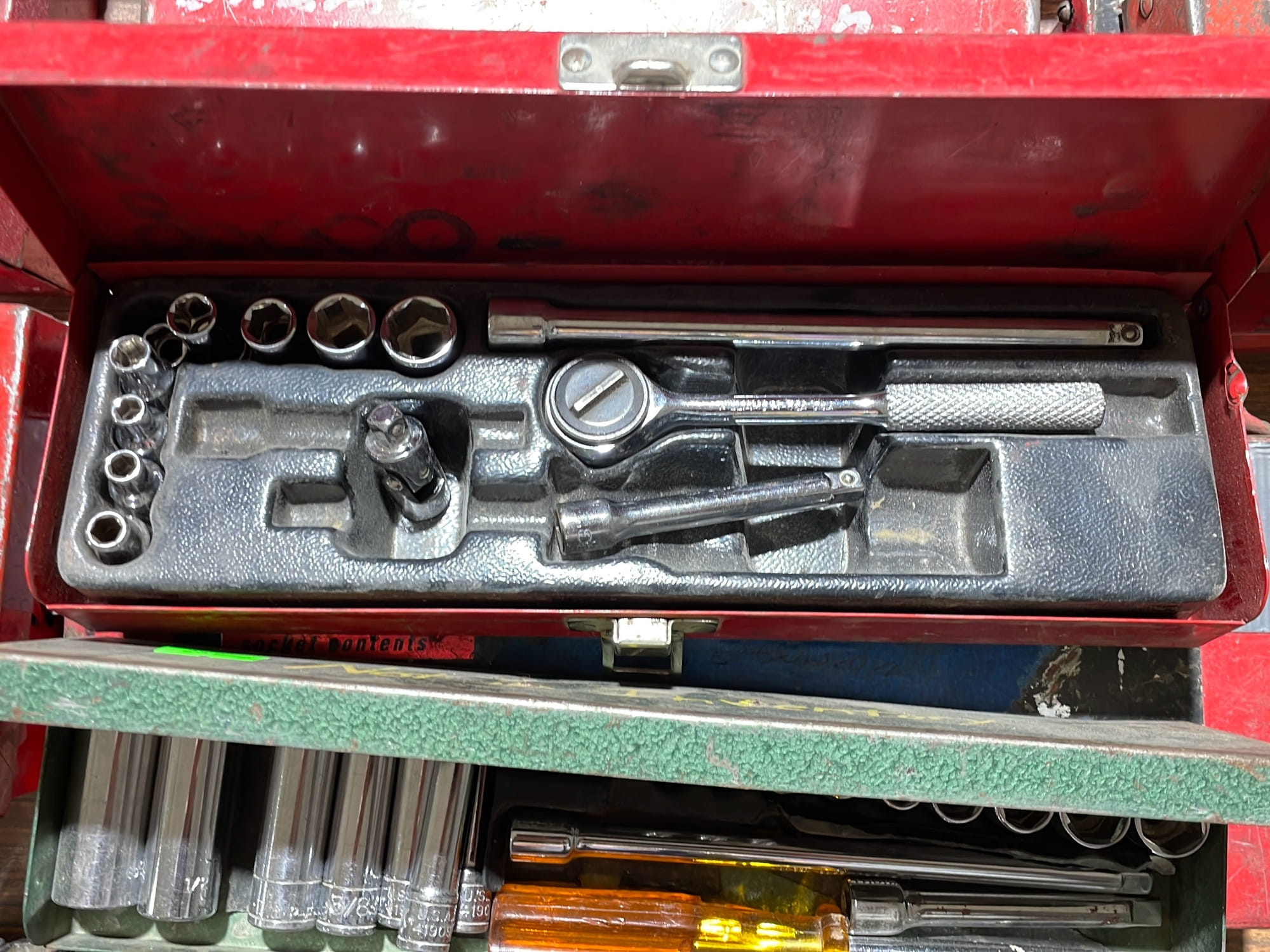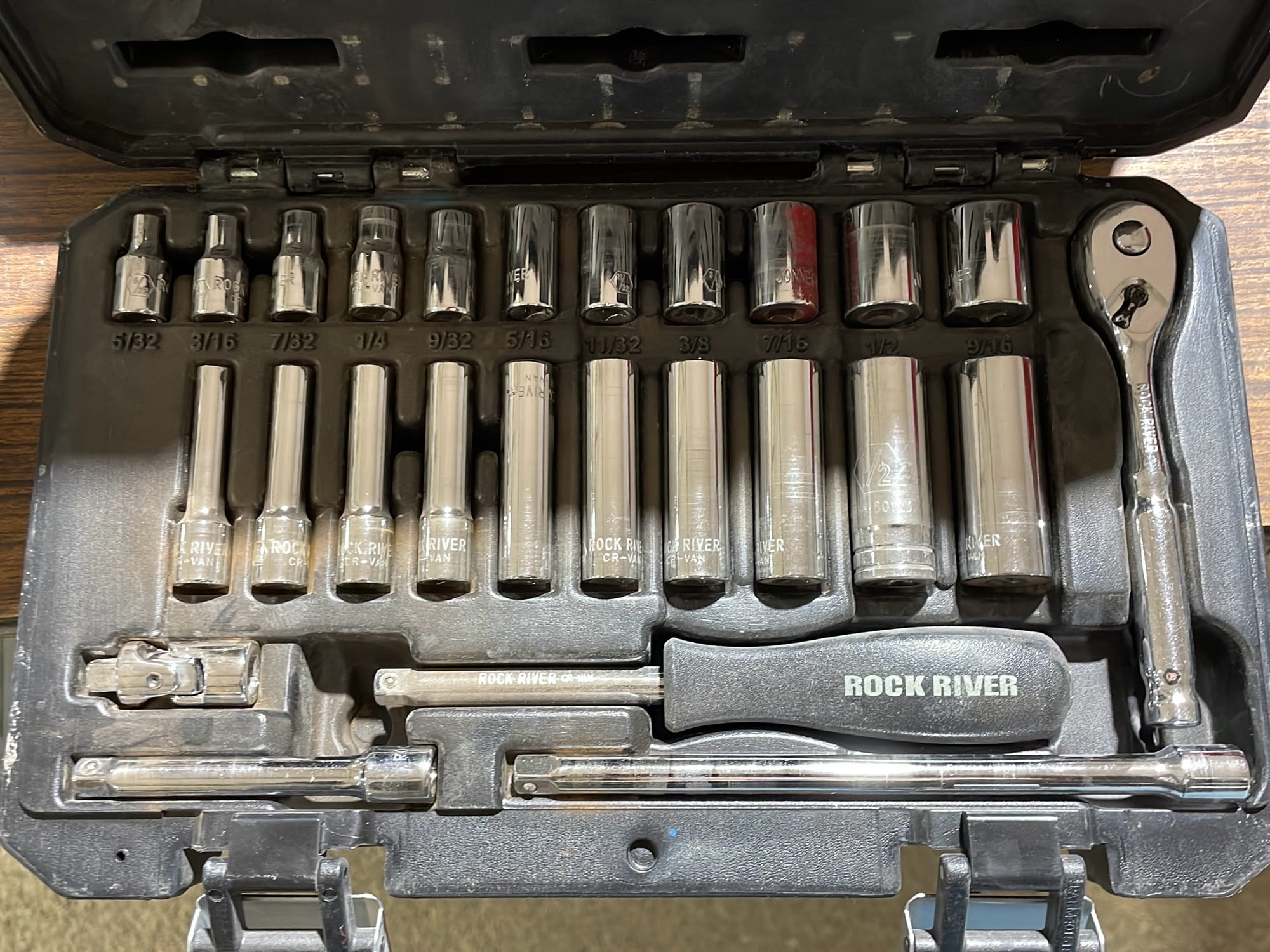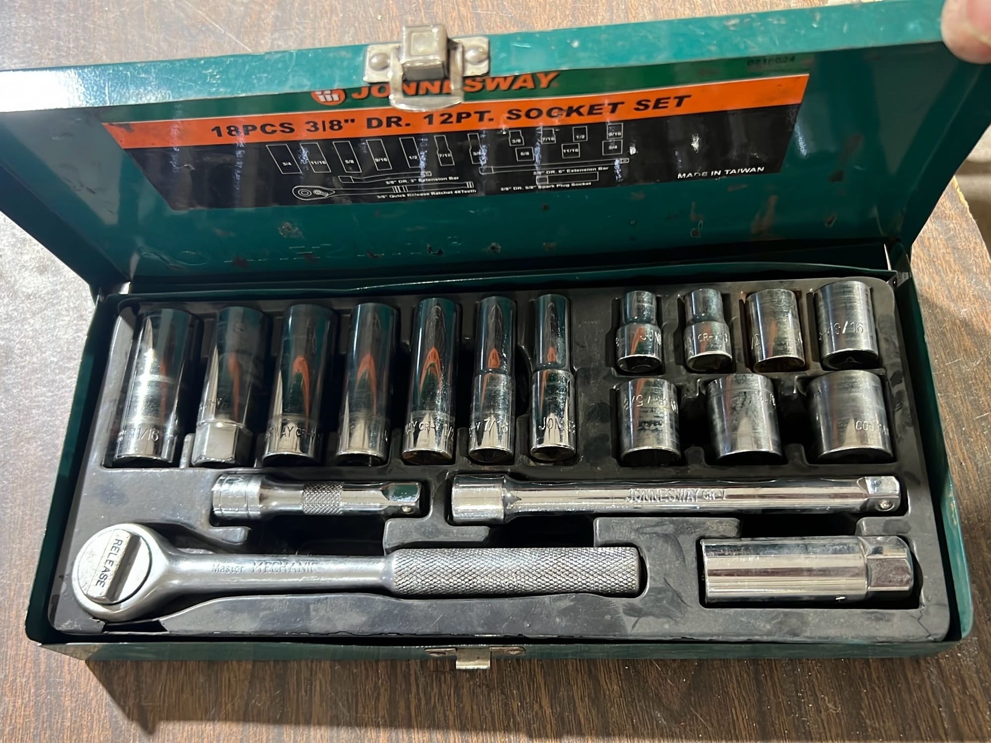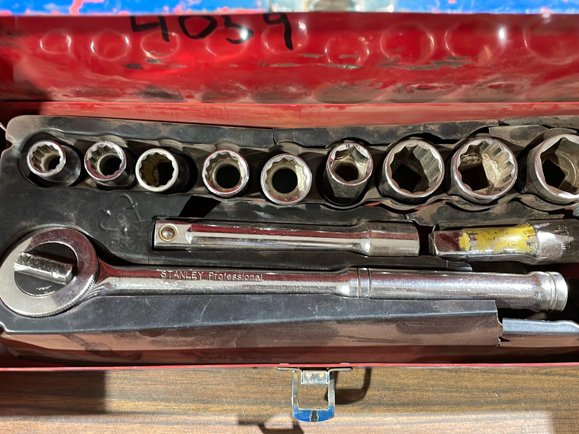 692 Socket assortment in plastic bin including Powerbuilt 7/16”, craftsman 1/4” 12mm, craftsman 1/4” 7/16”