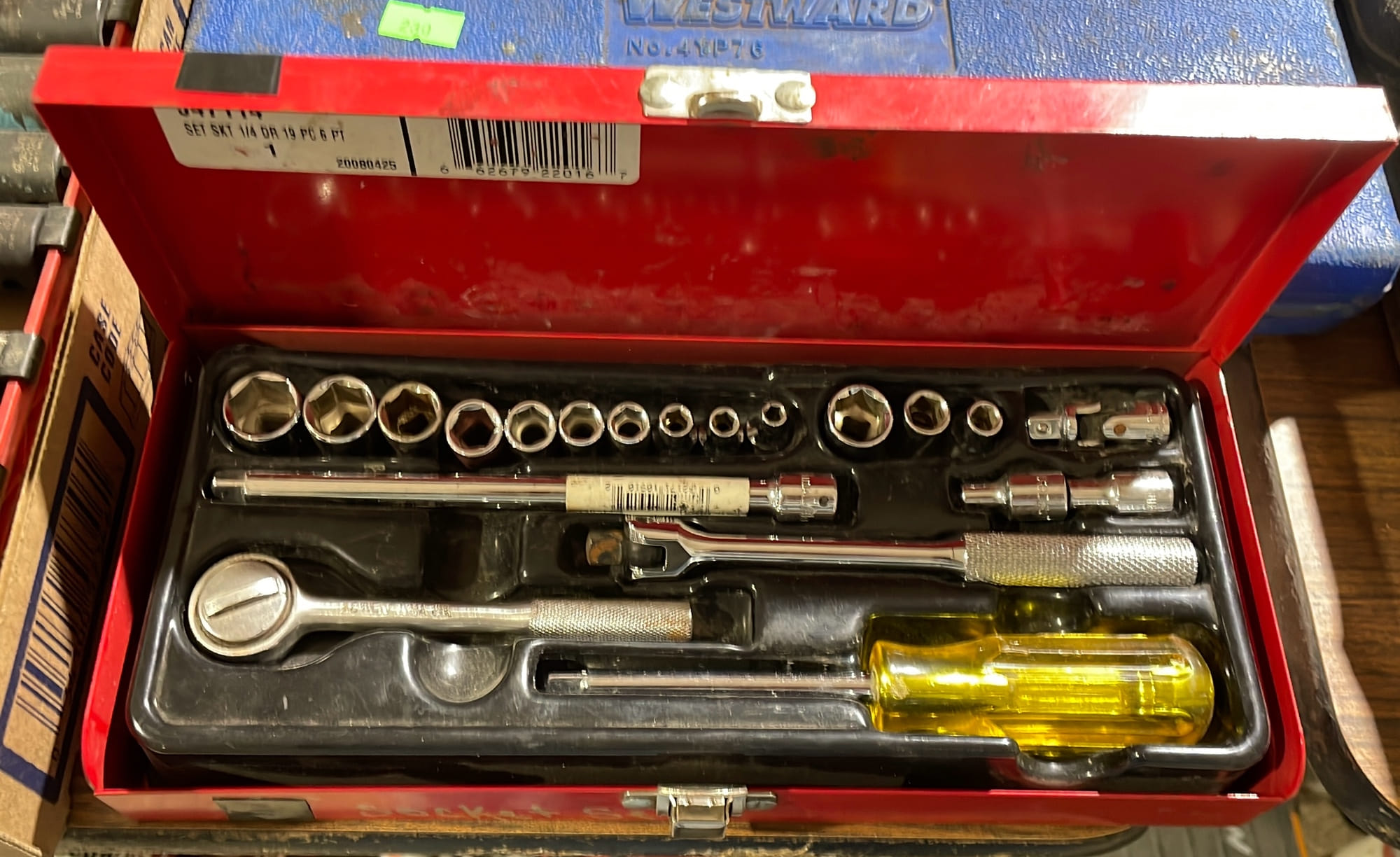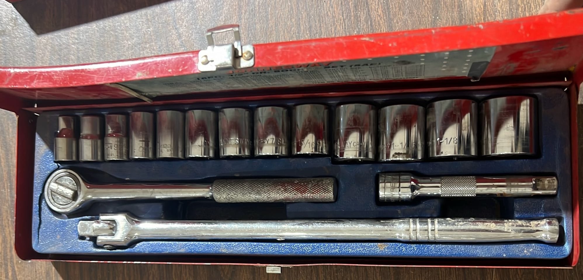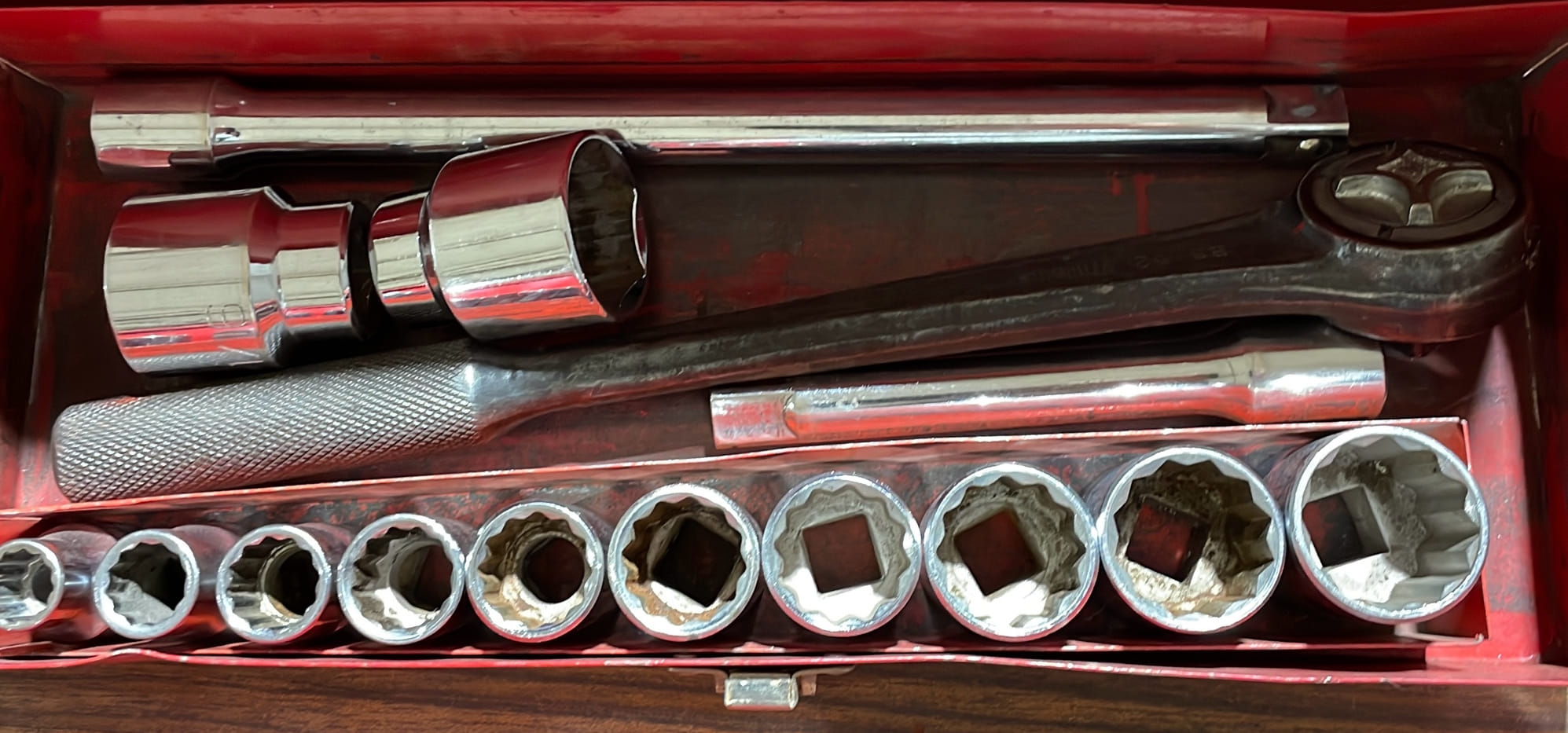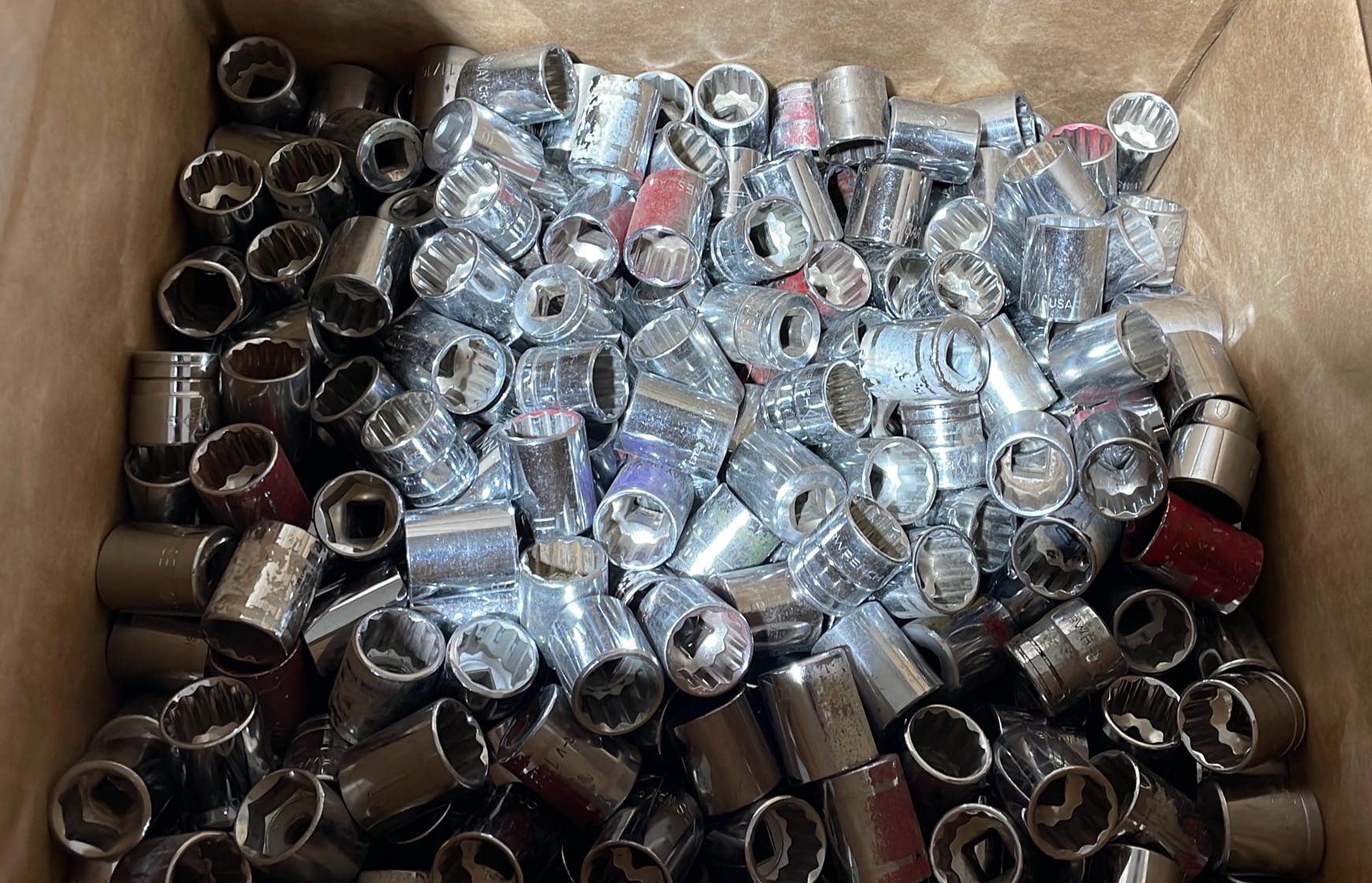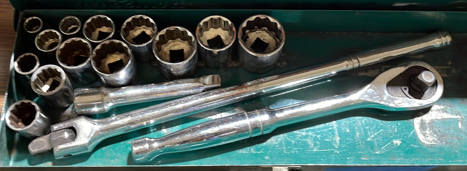 692 Socket assortment in plastic bin including Powerbuilt 7/16”, craftsman 1/4” 12mm, craftsman 1/4” 7/16”