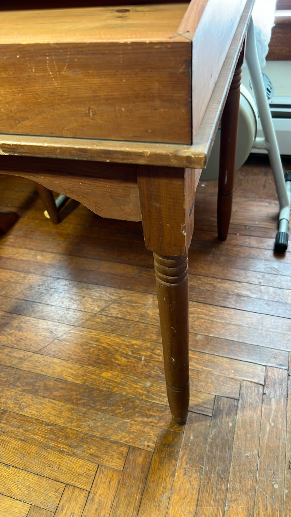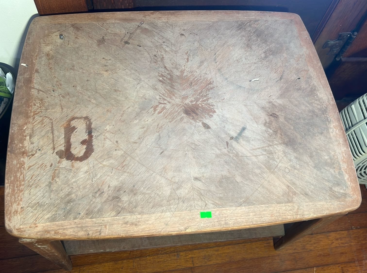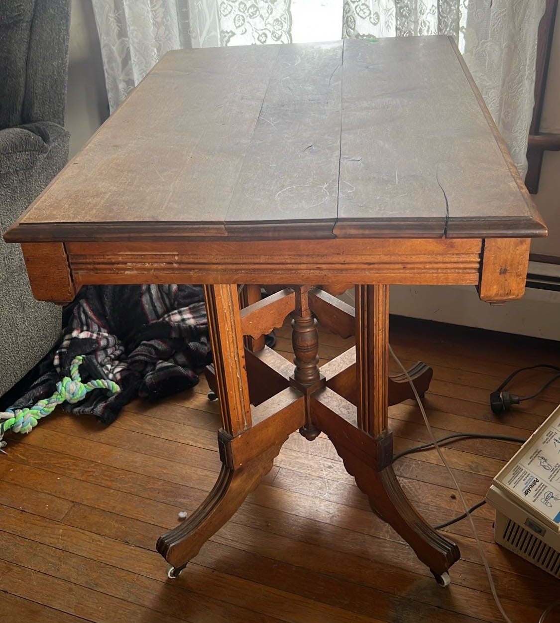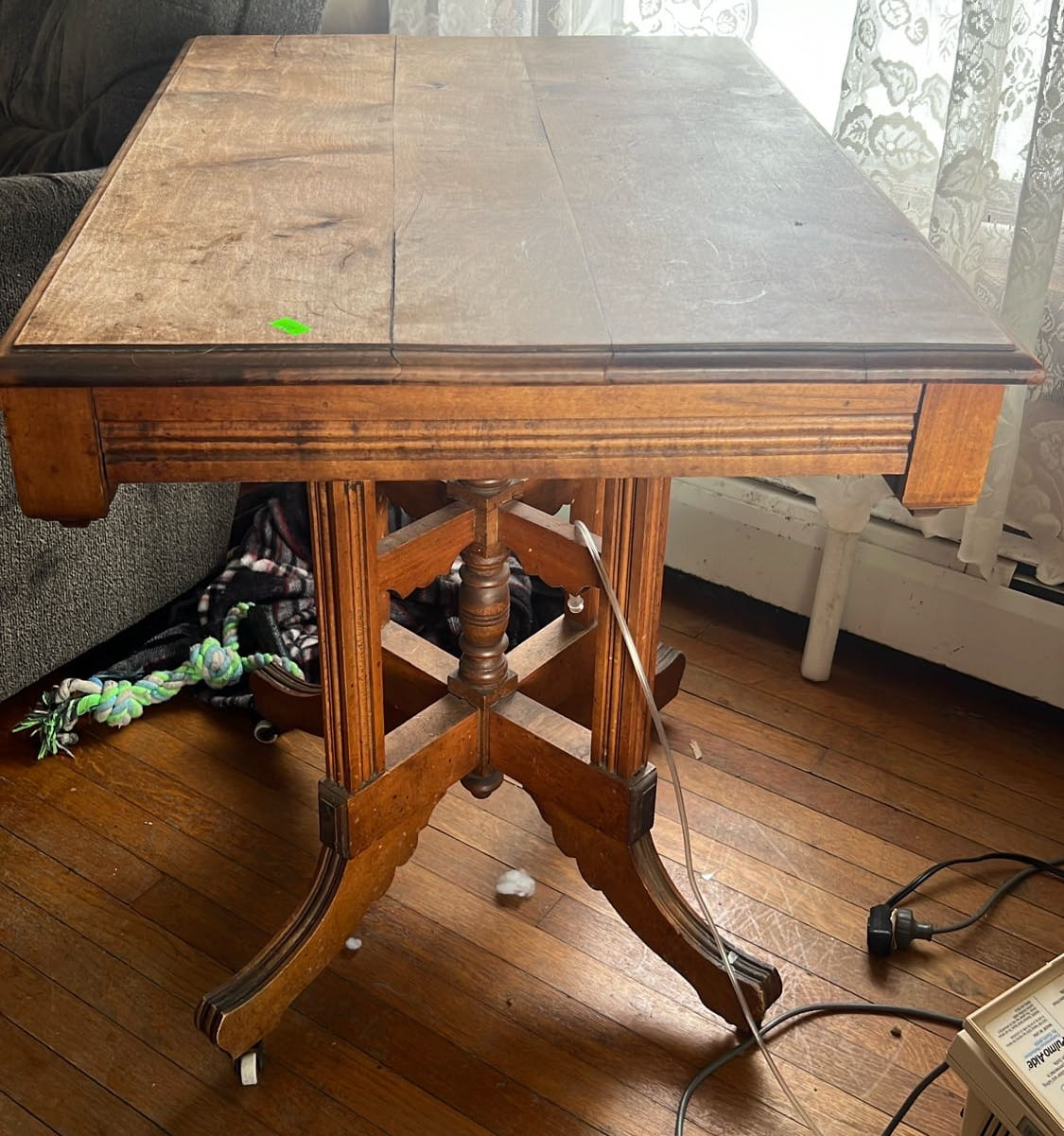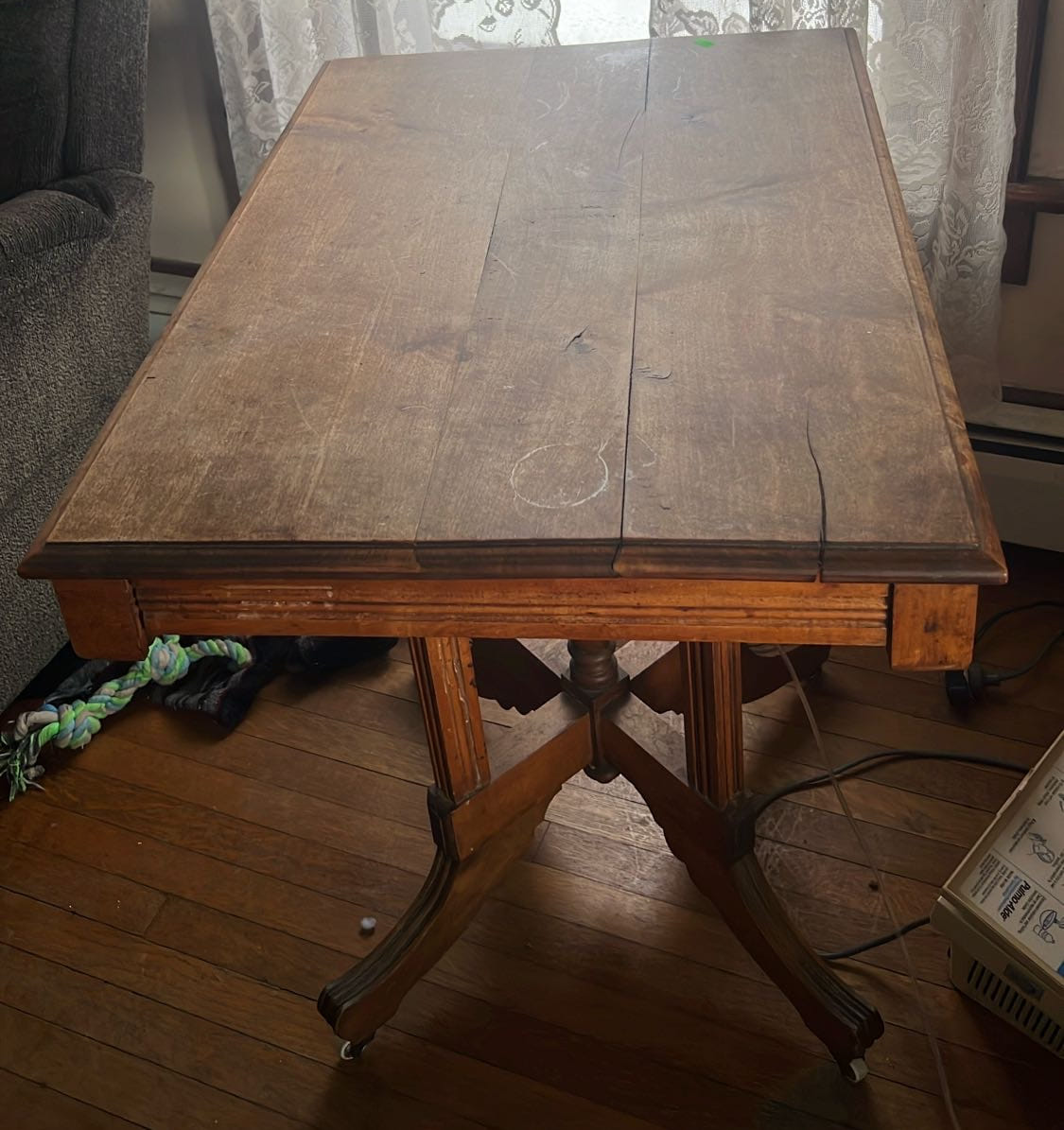 1121 Wood Table 22.25”W x 54.25”L, has damage see picture