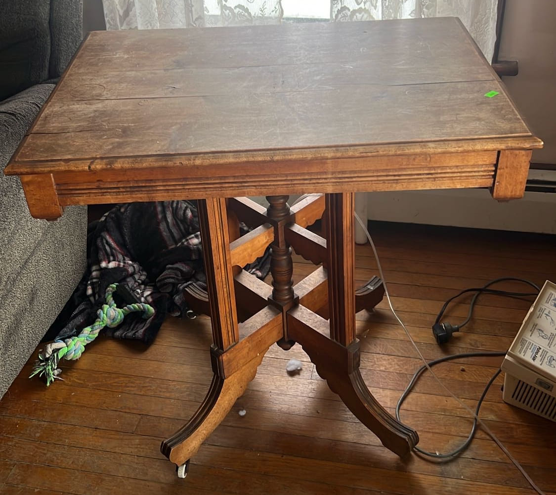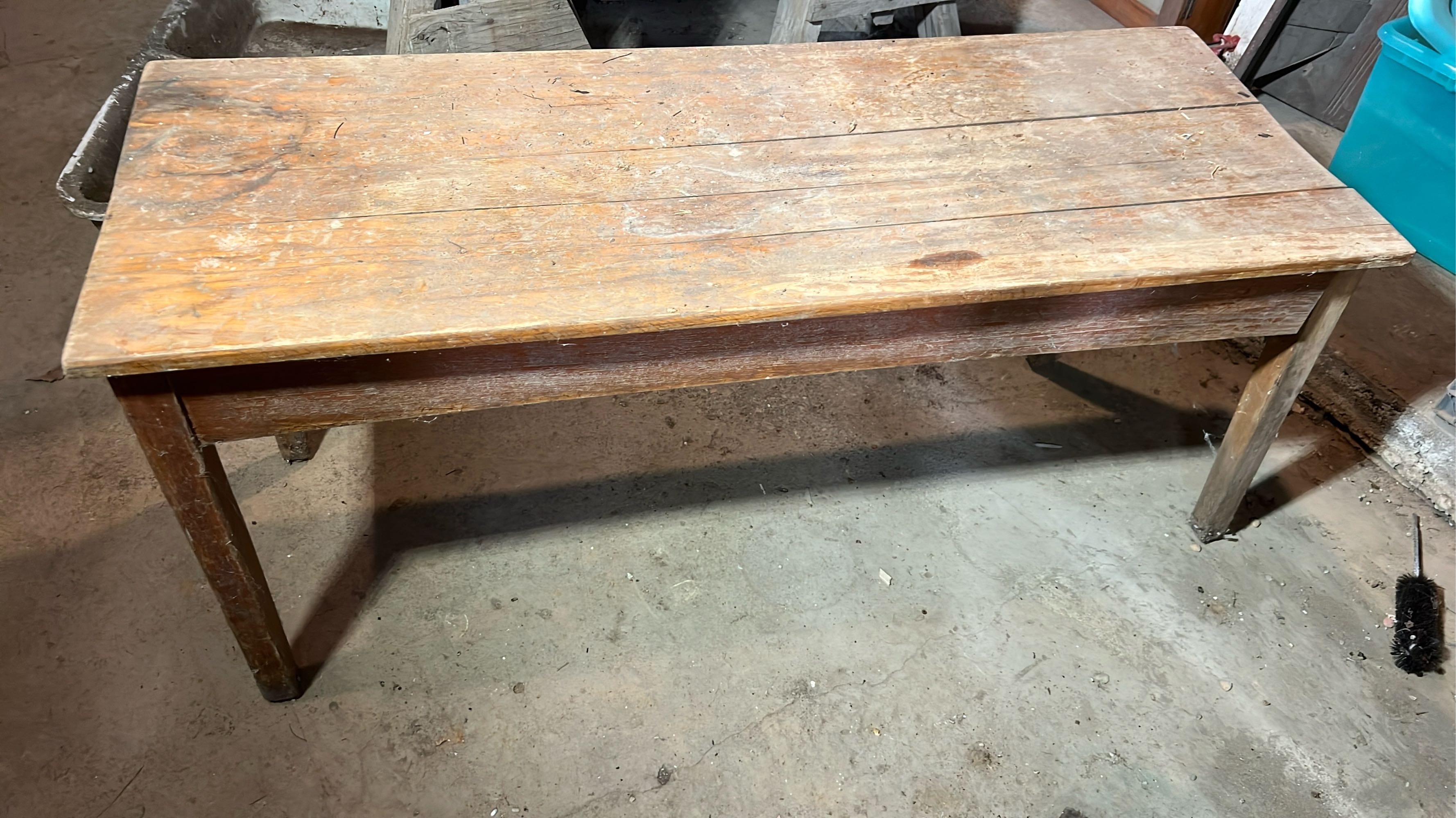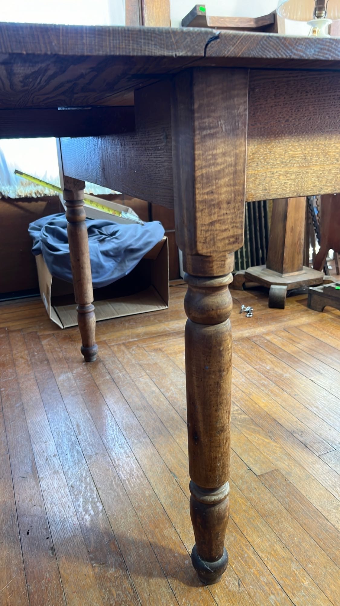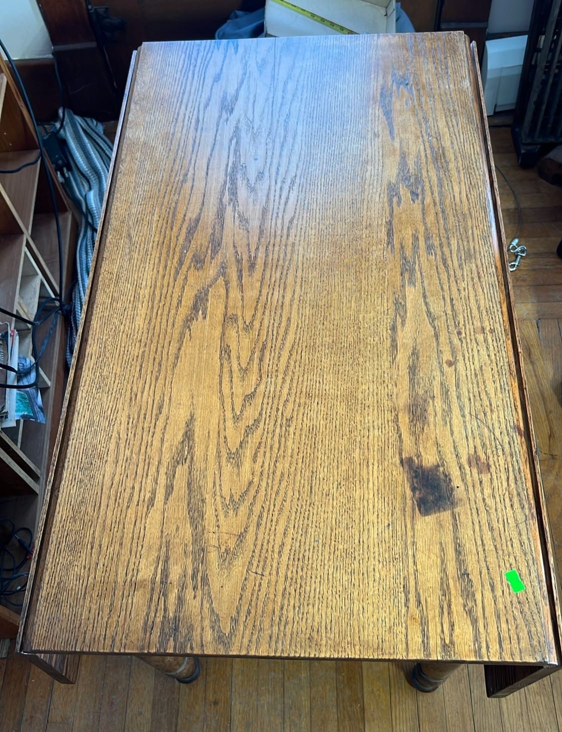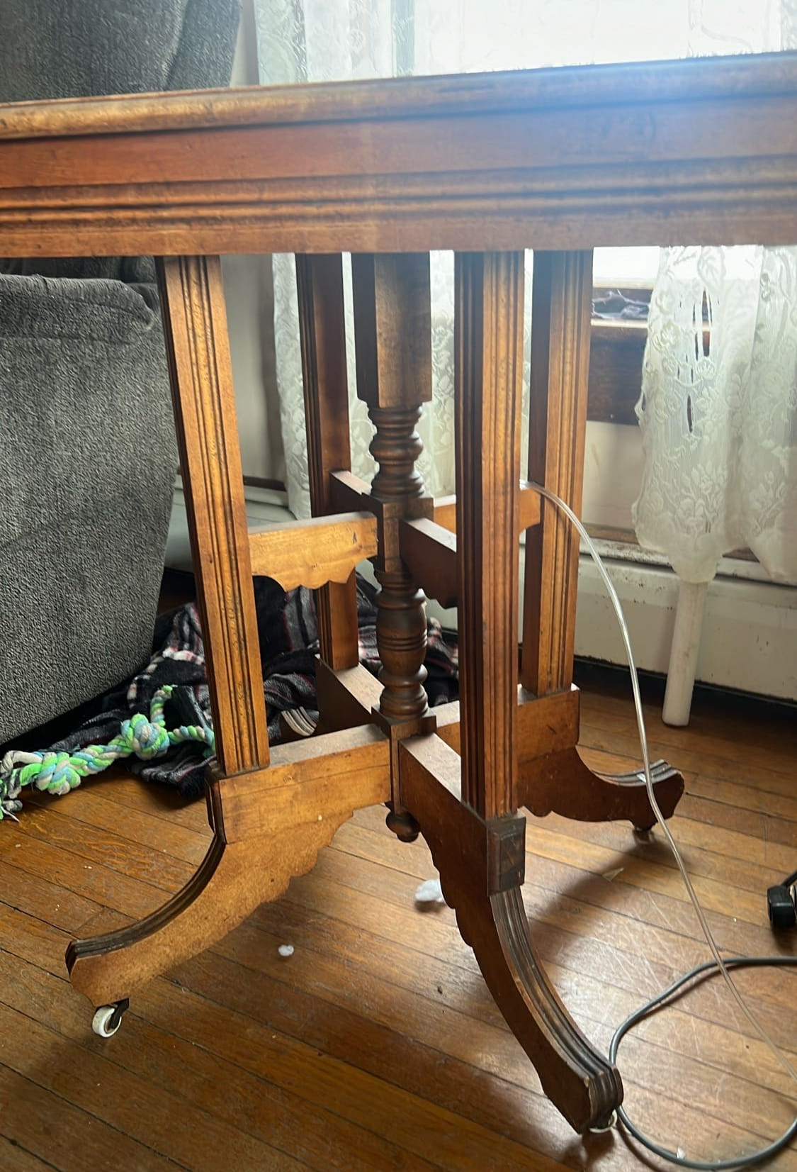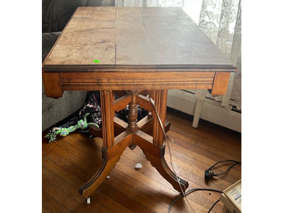 1121 Wood Table 22.25”W x 54.25”L, has damage see picture