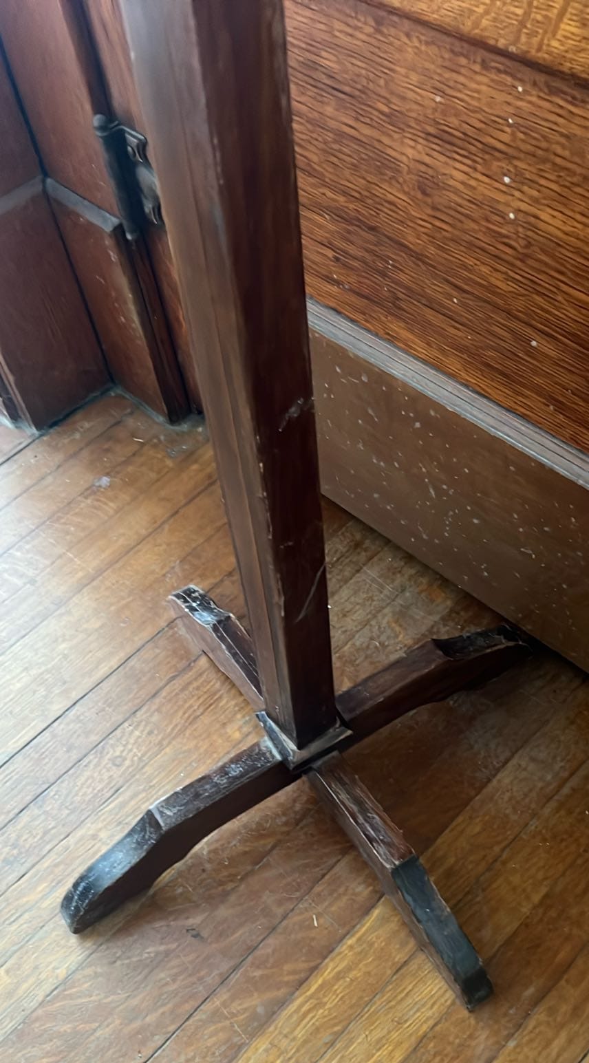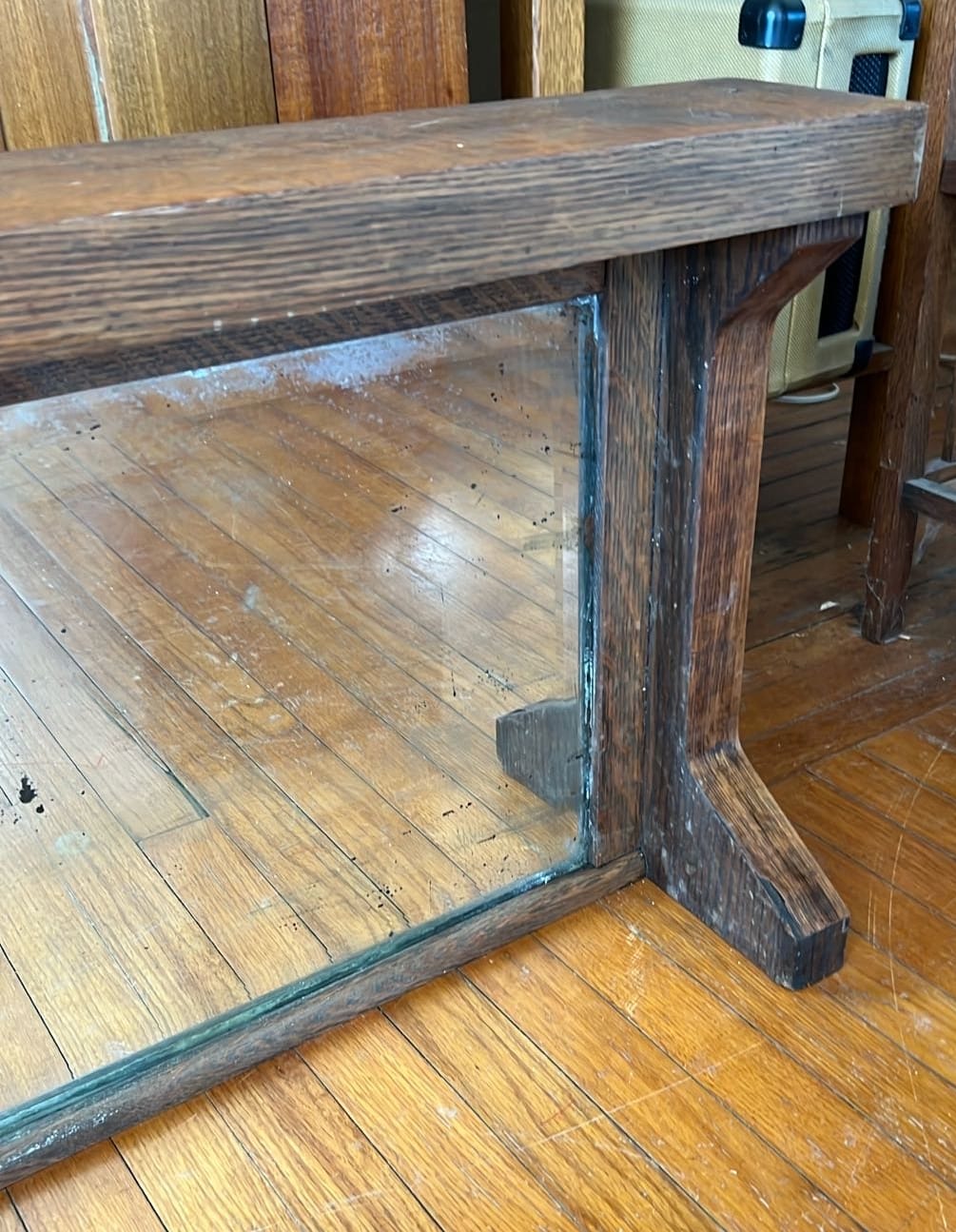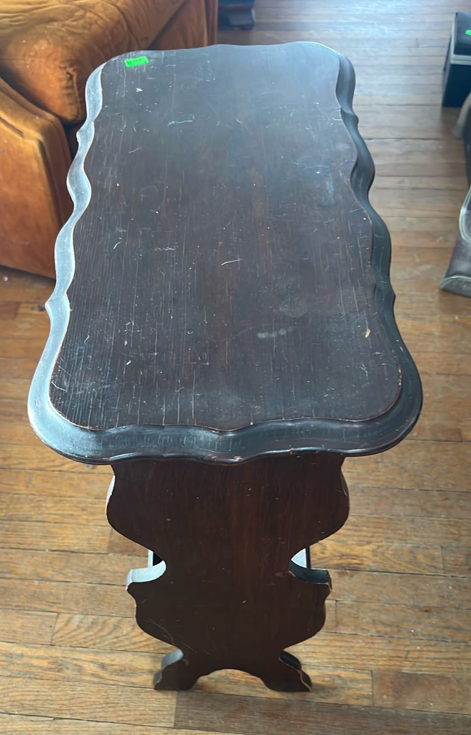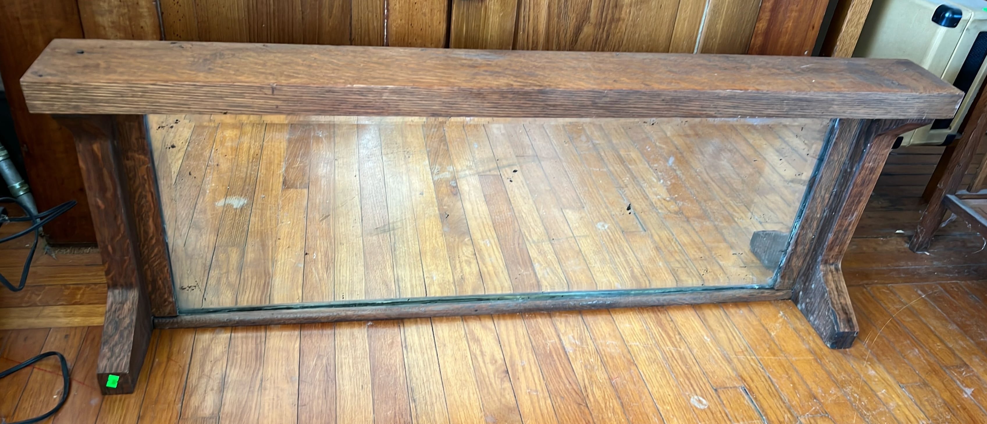 1121 Wood Table 22.25”W x 54.25”L, has damage see picture