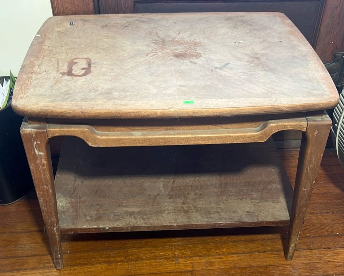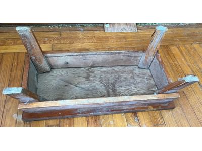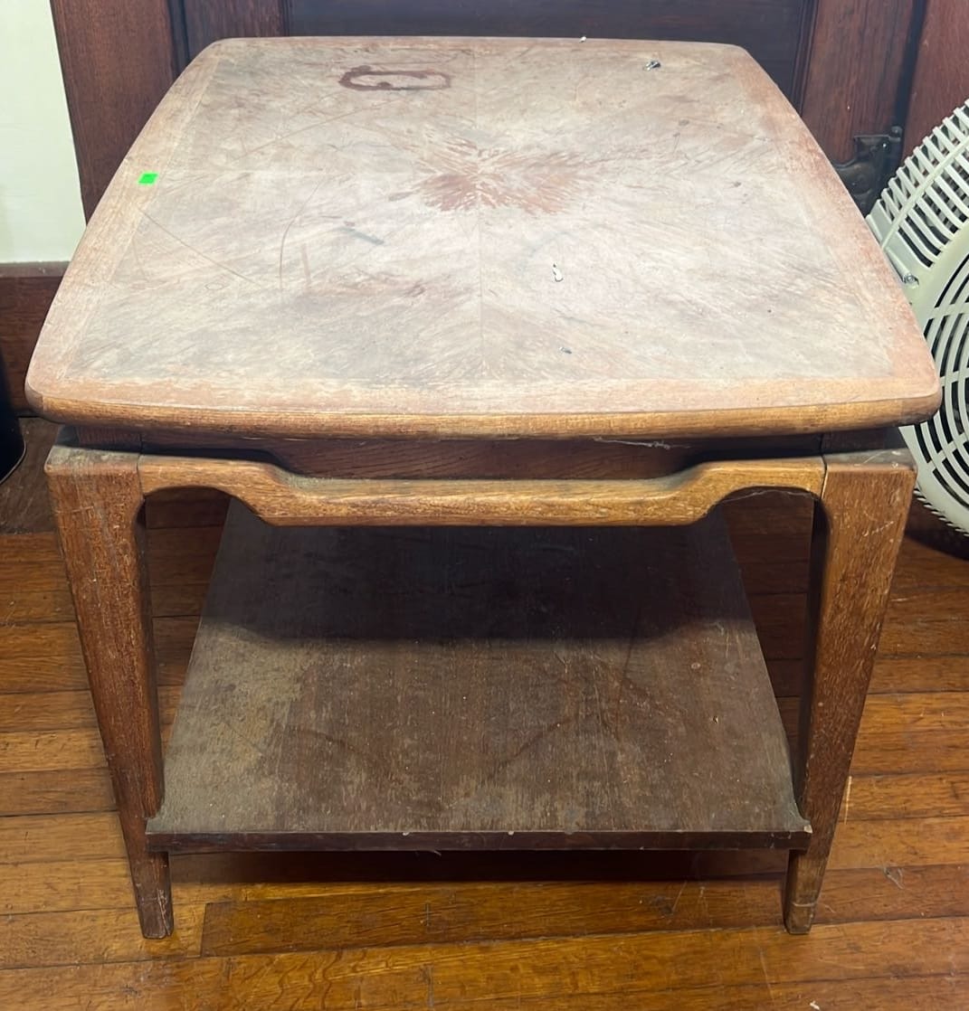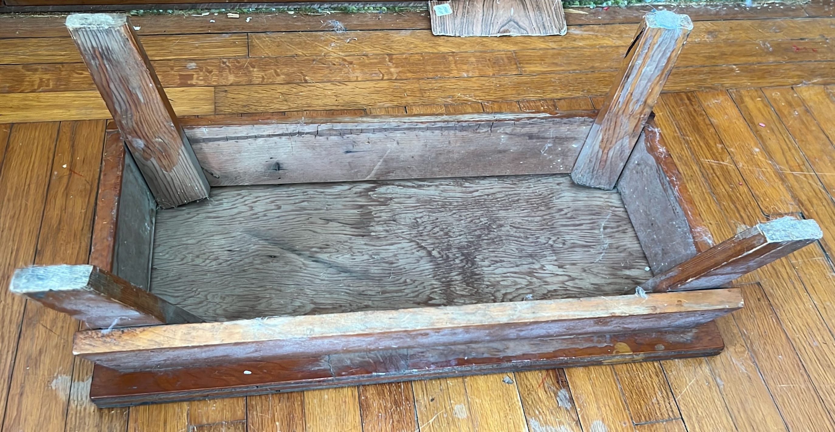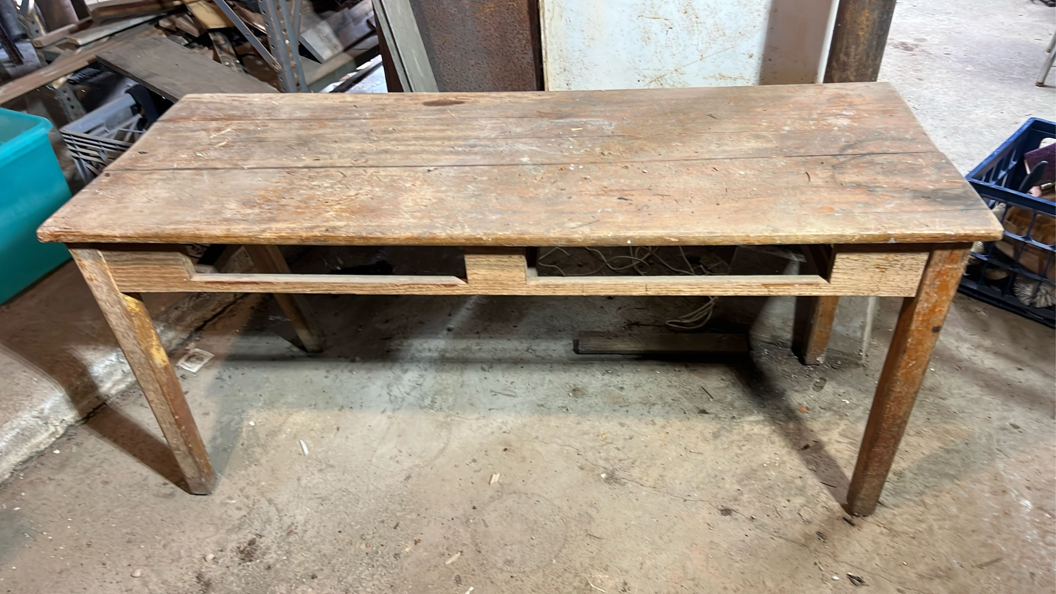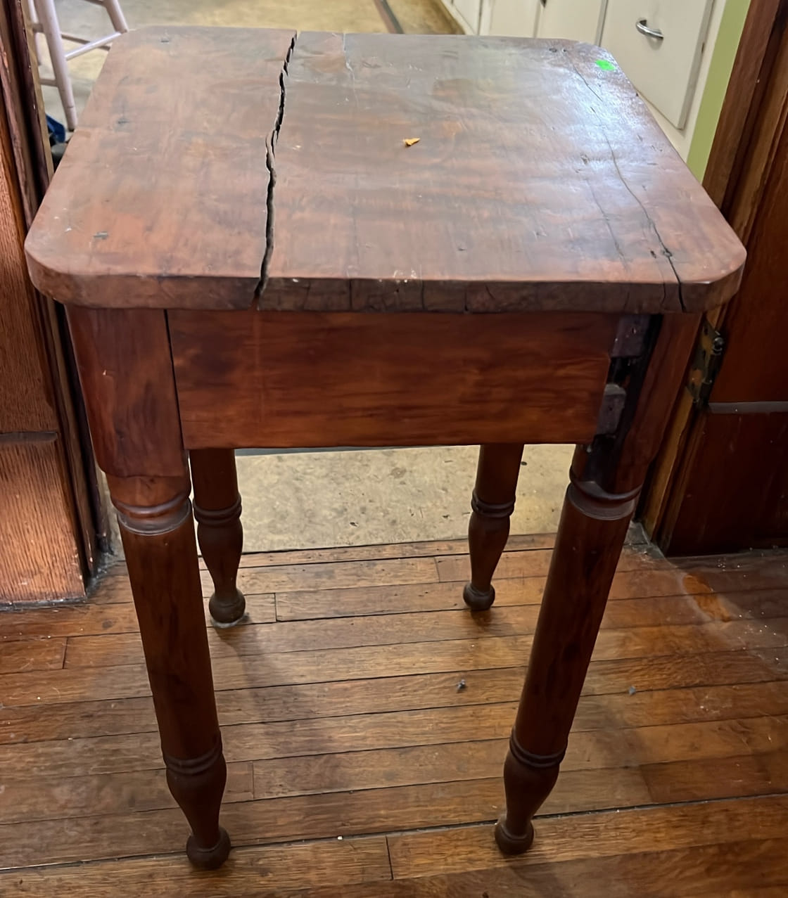 1121 Wood Table 22.25”W x 54.25”L, has damage see picture