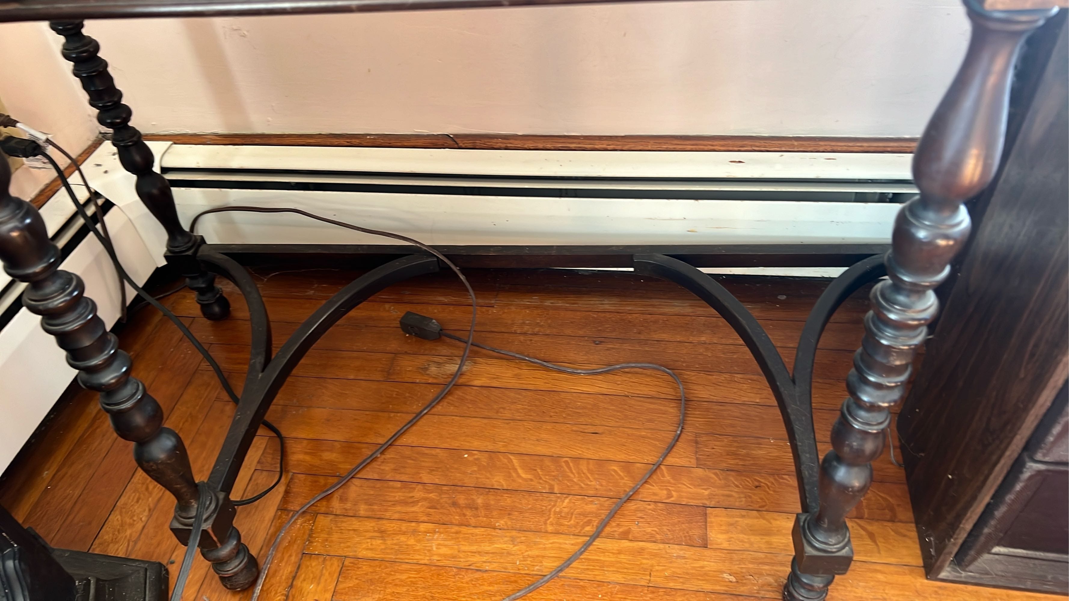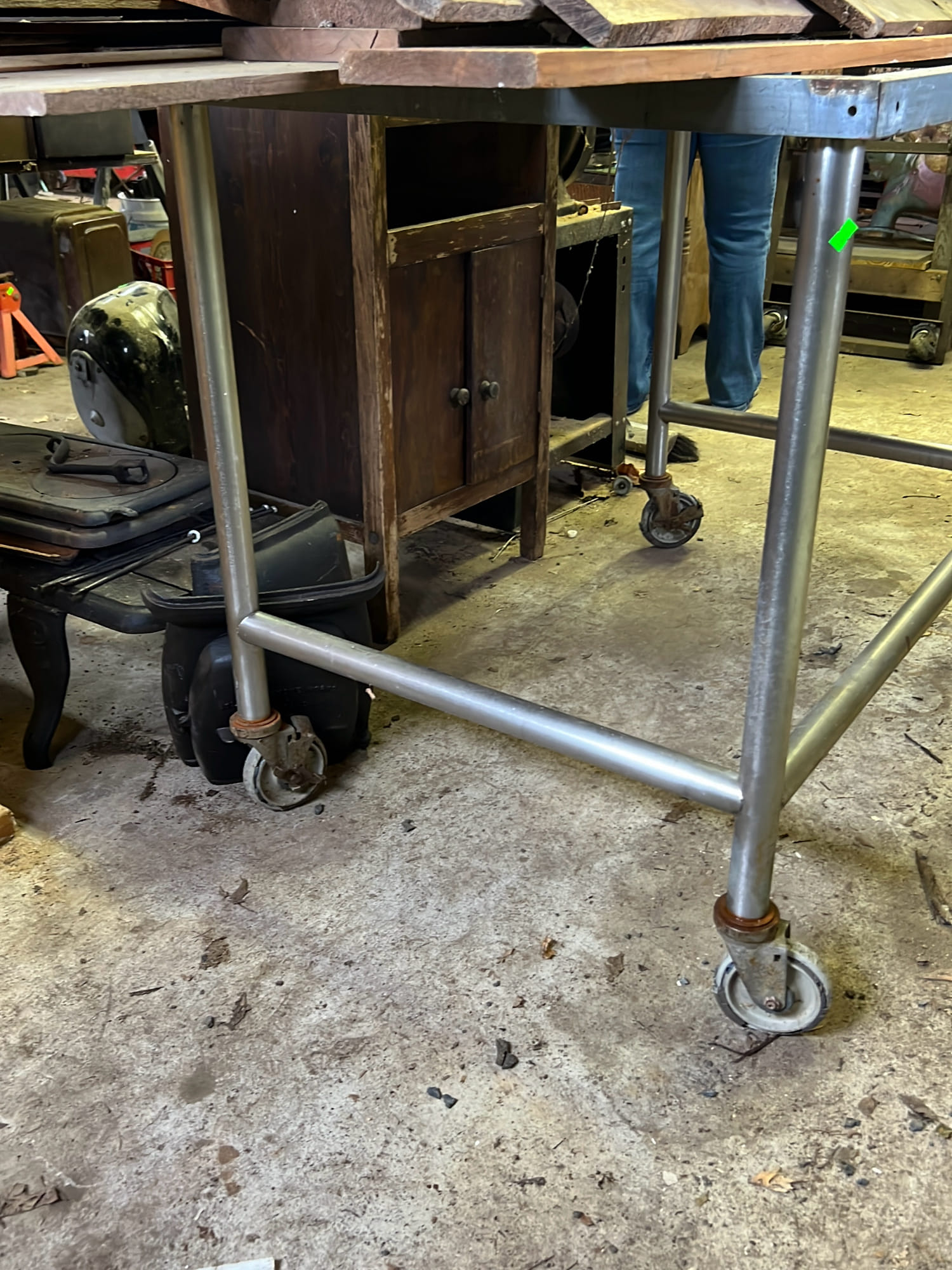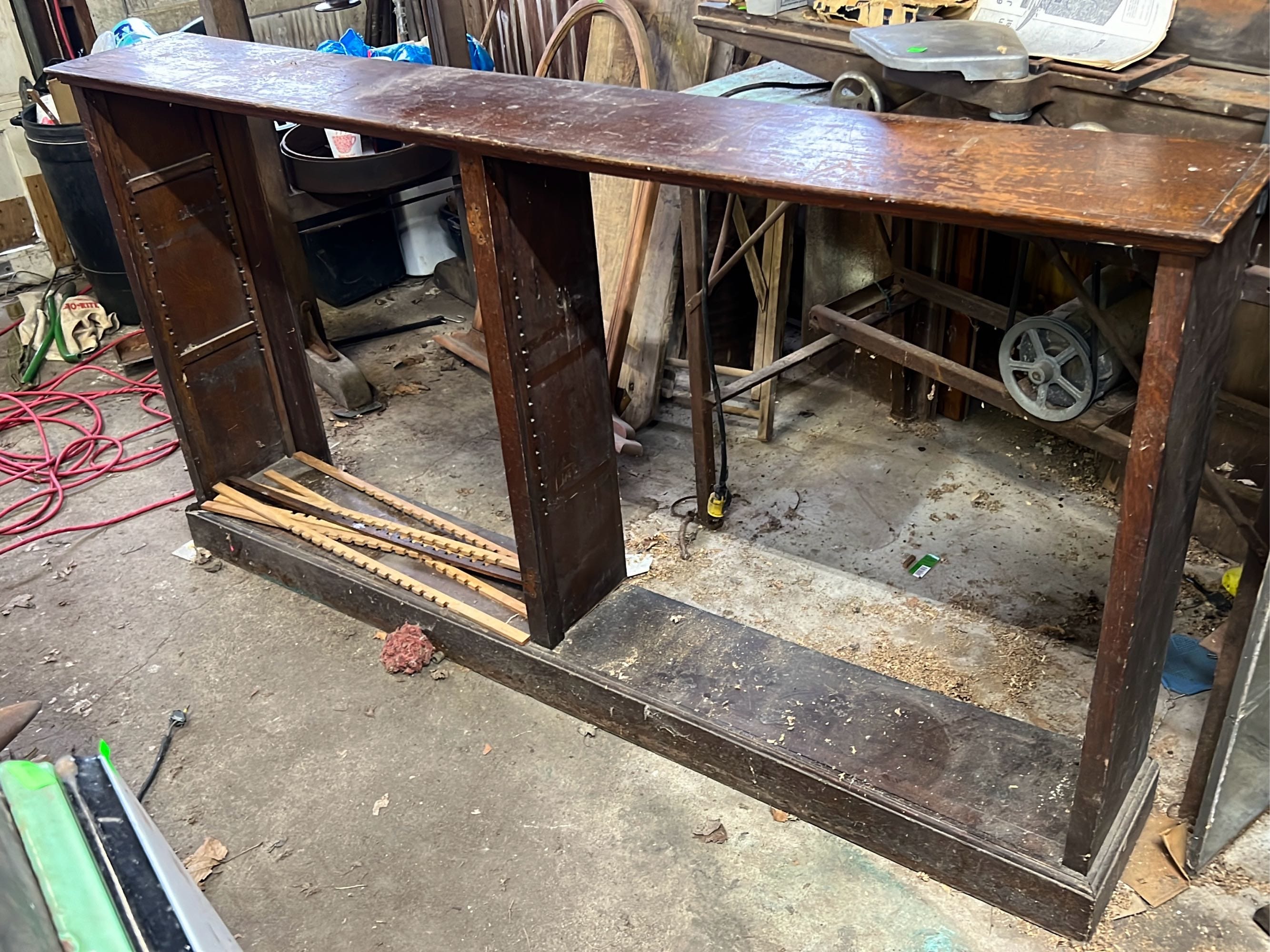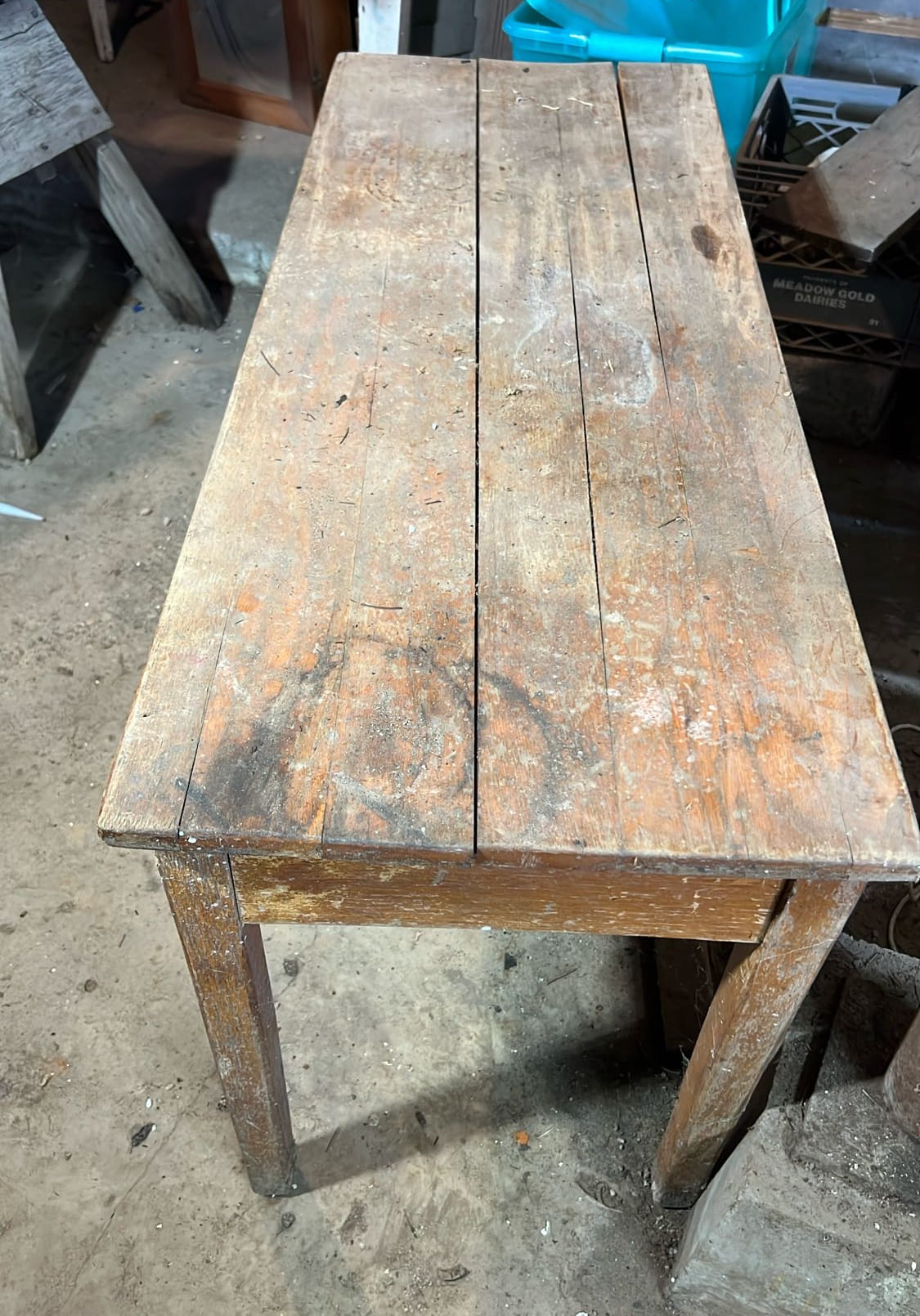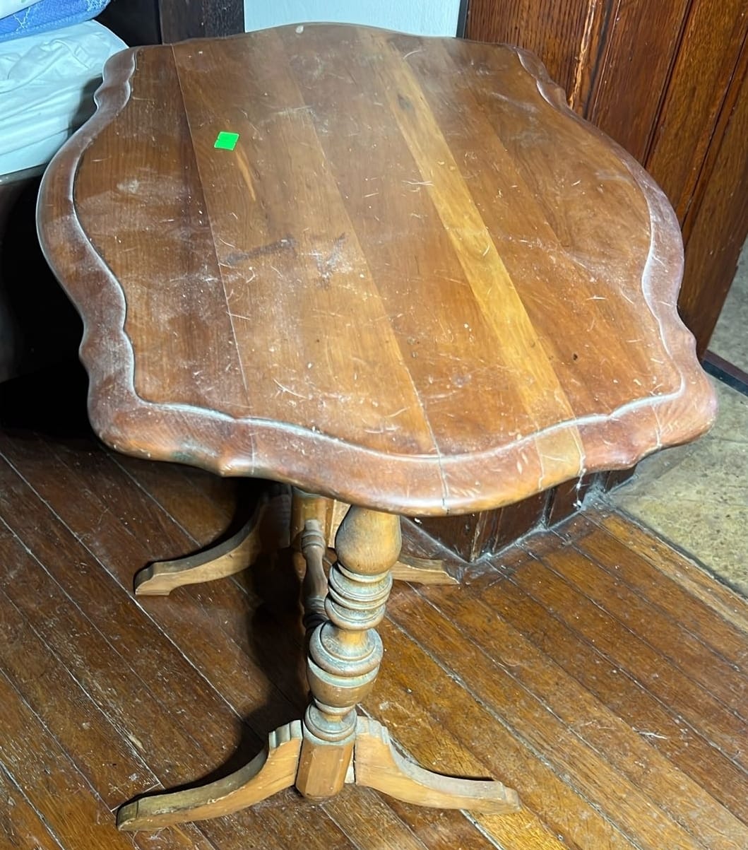 1121 Wood Table 22.25”W x 54.25”L, has damage see picture