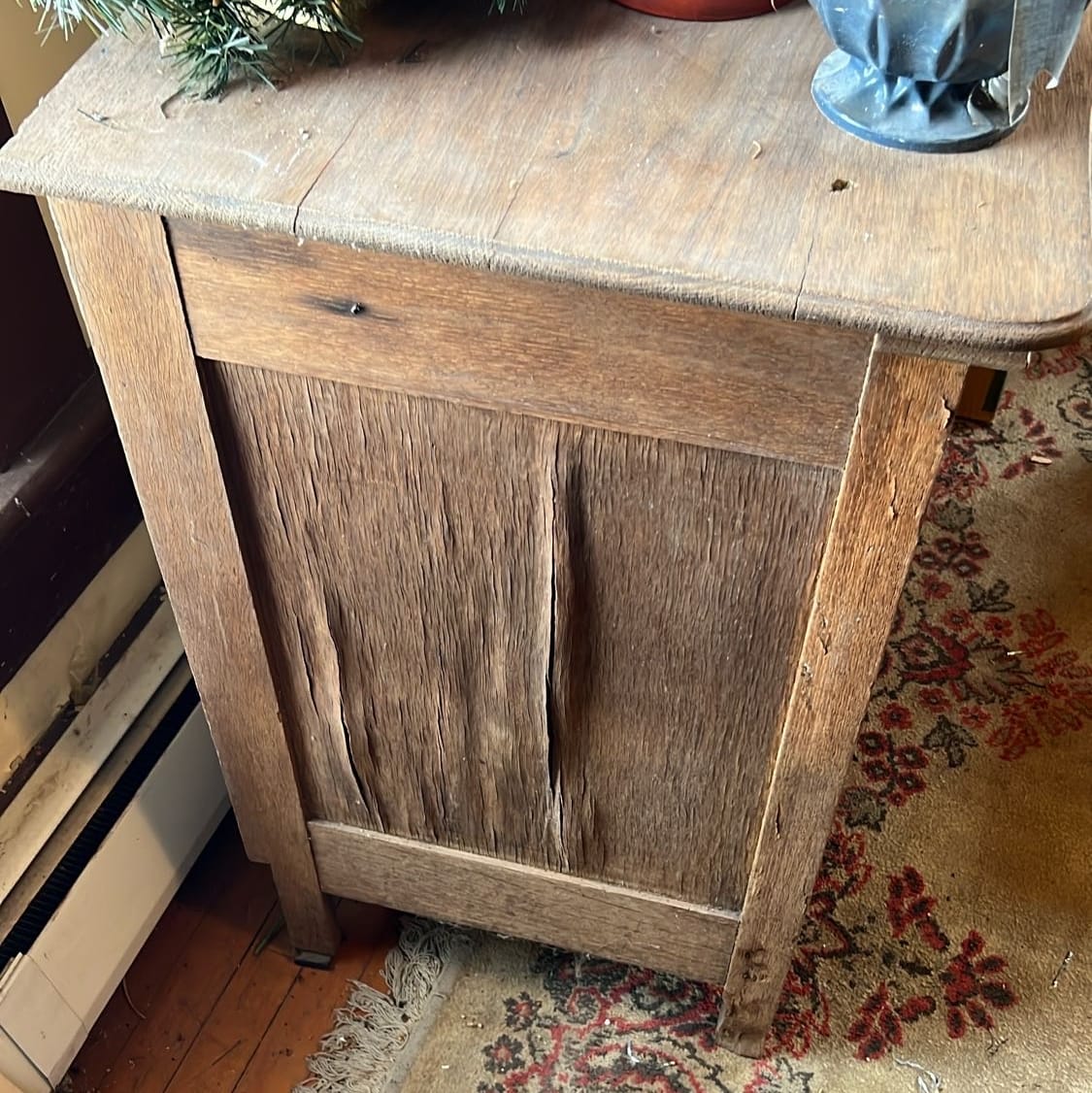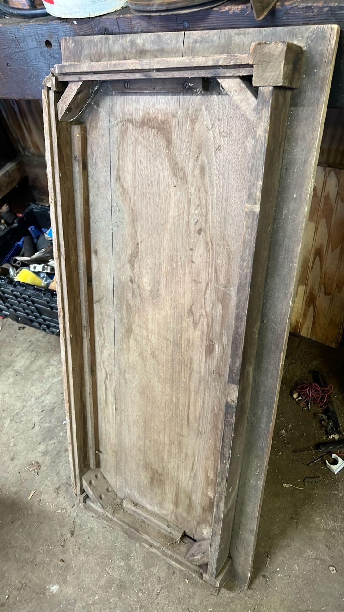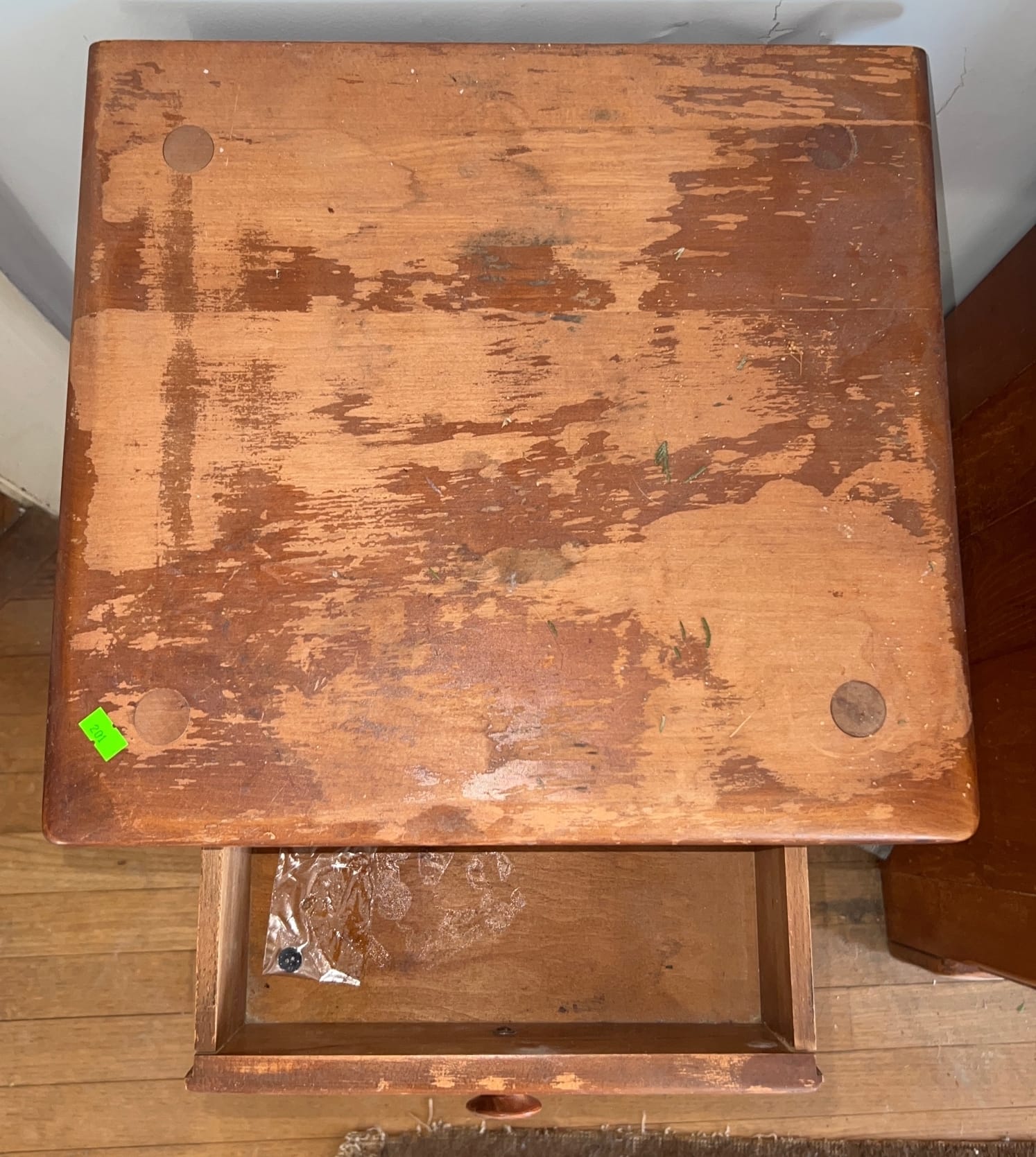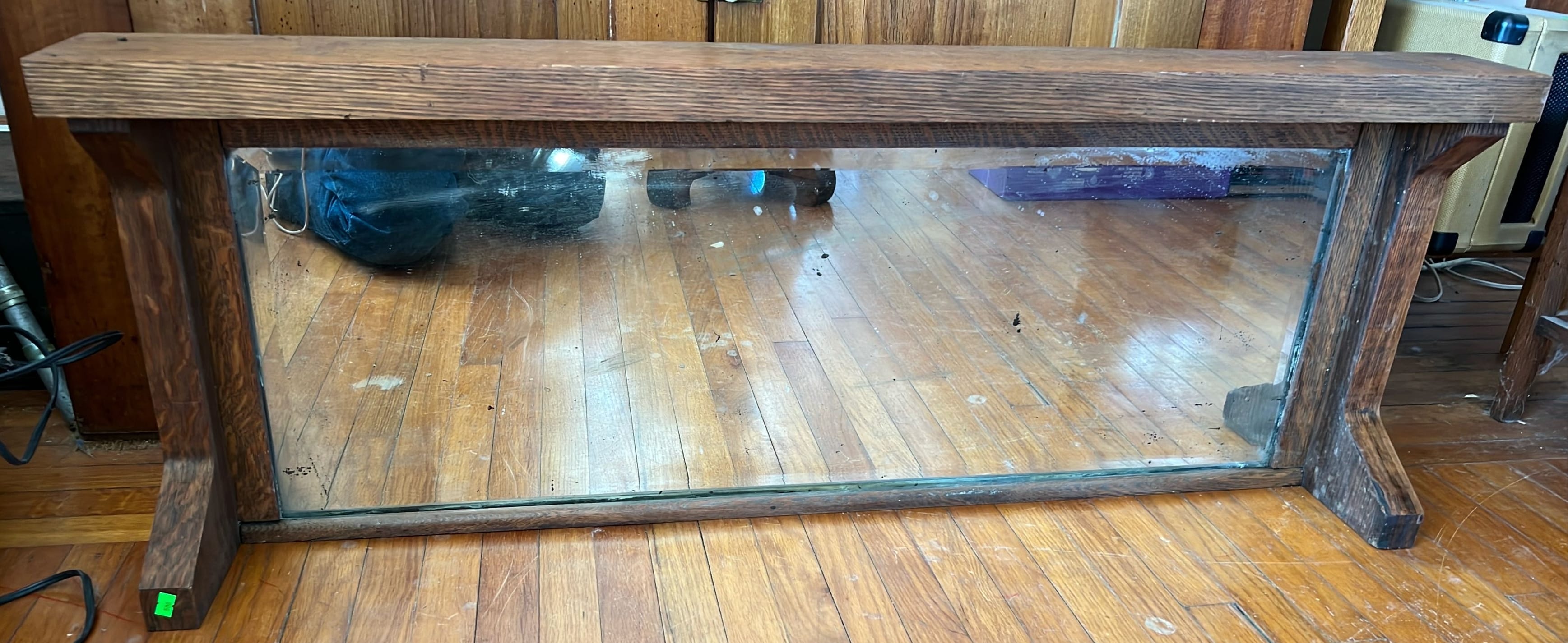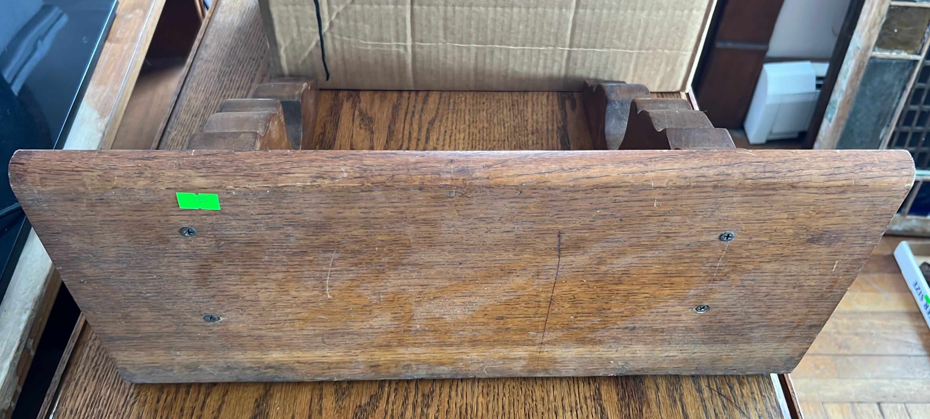 1121 Wood Table 22.25”W x 54.25”L, has damage see picture