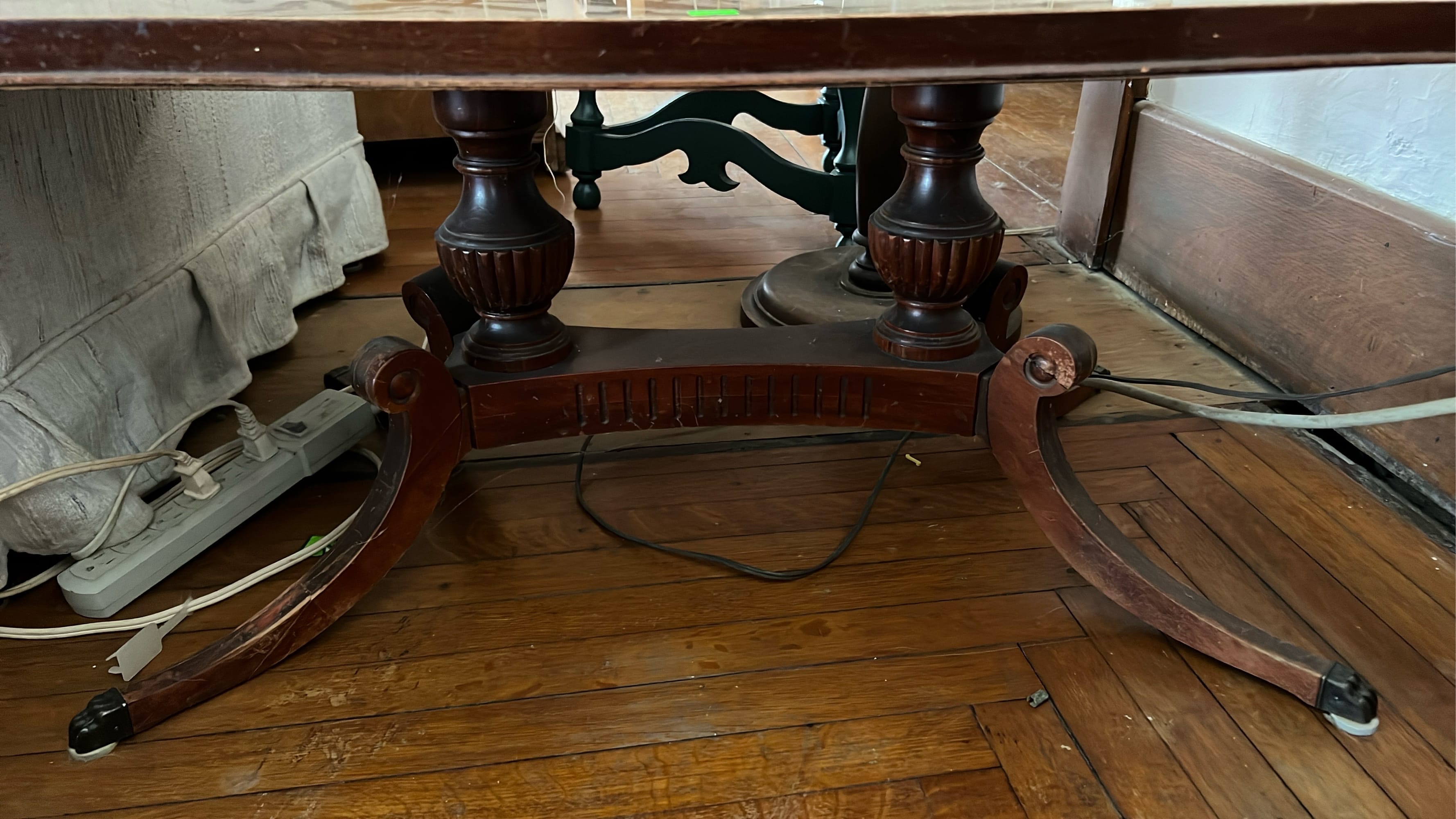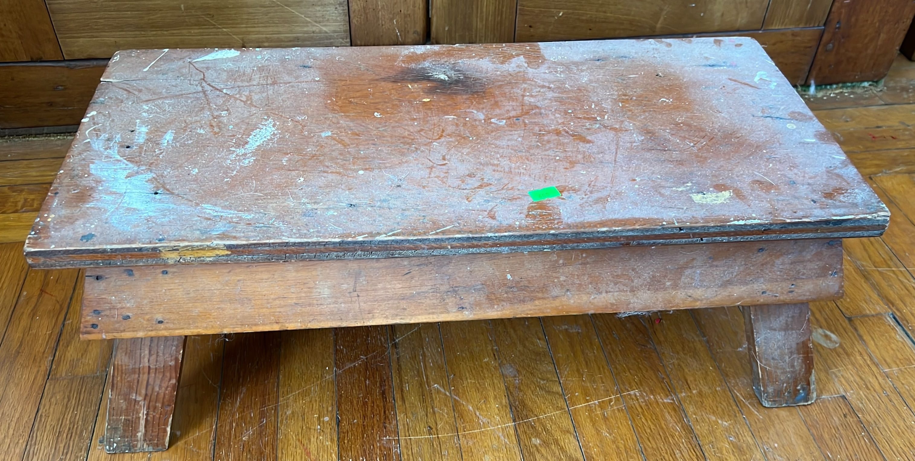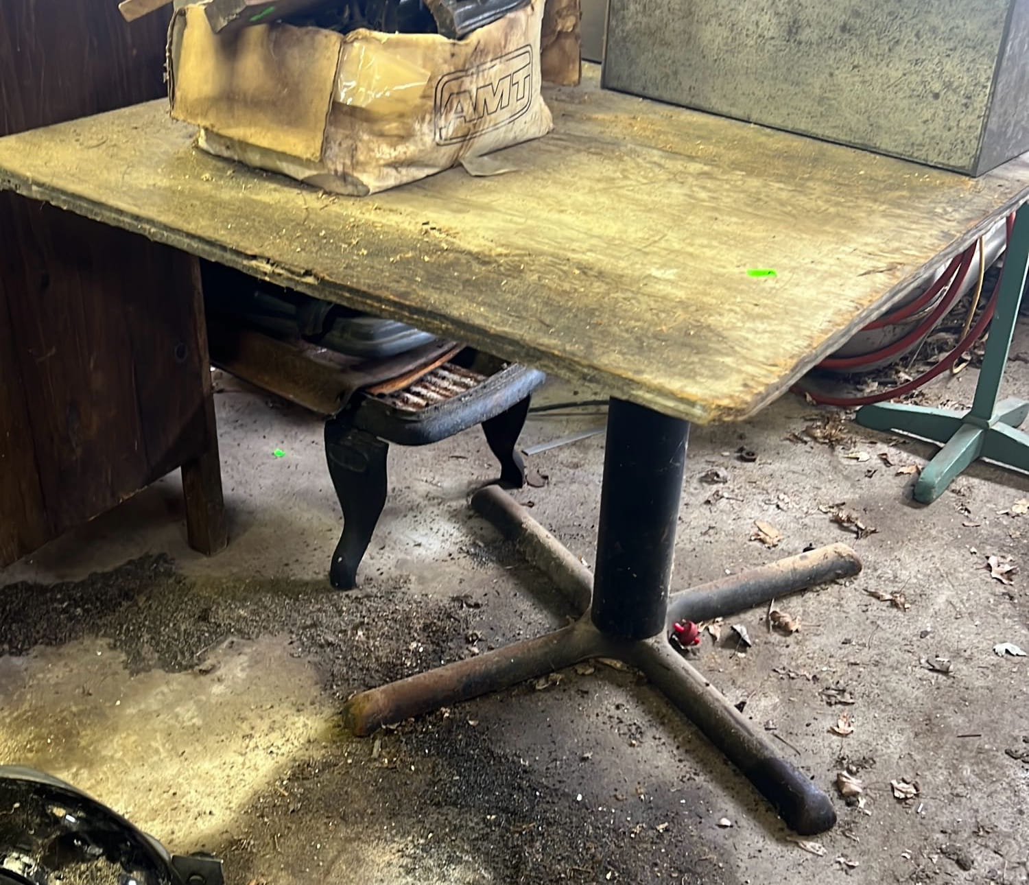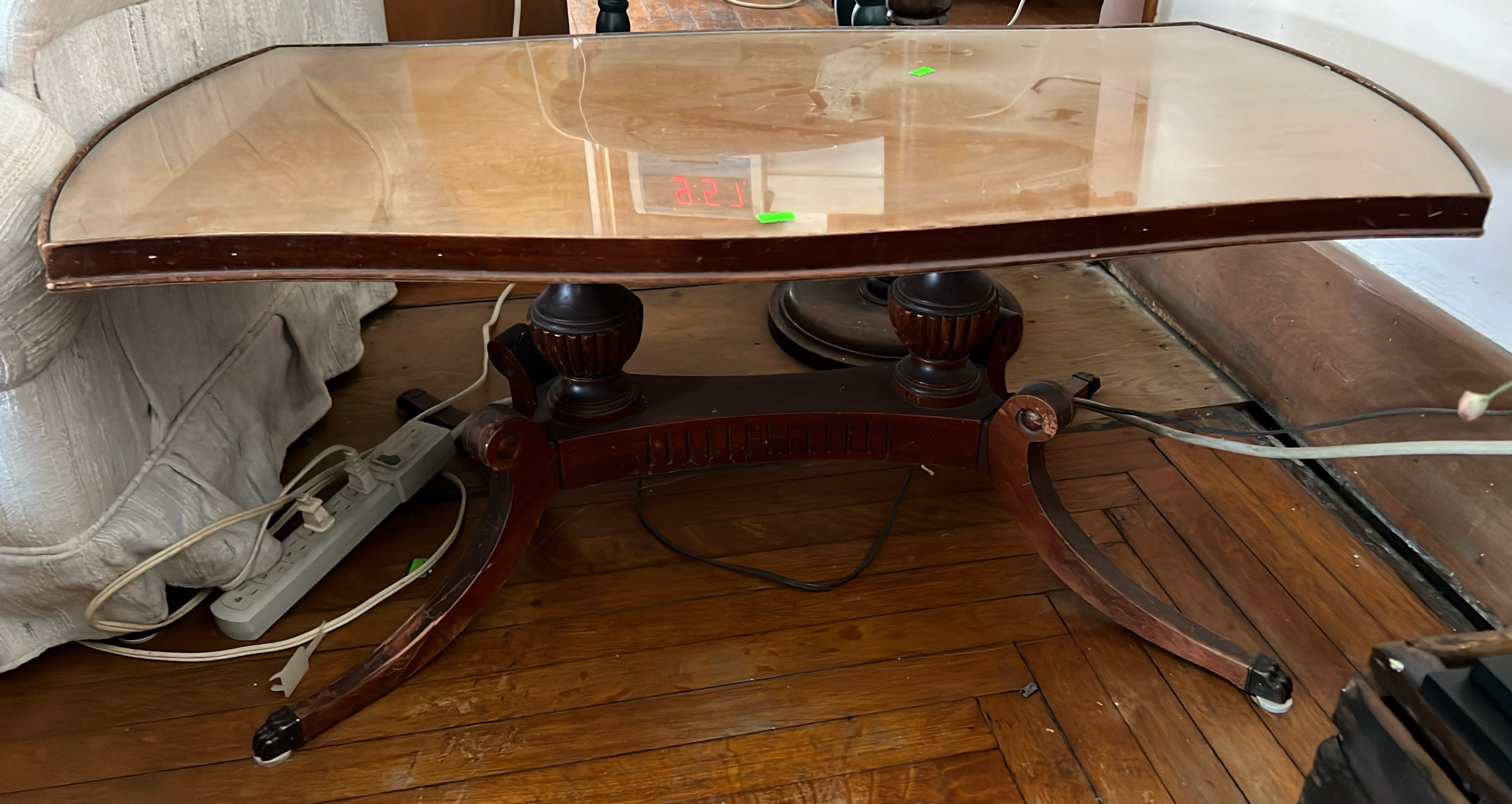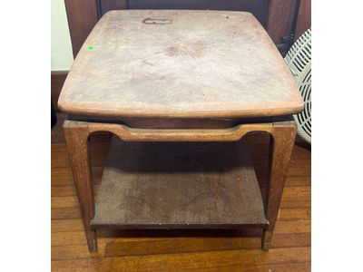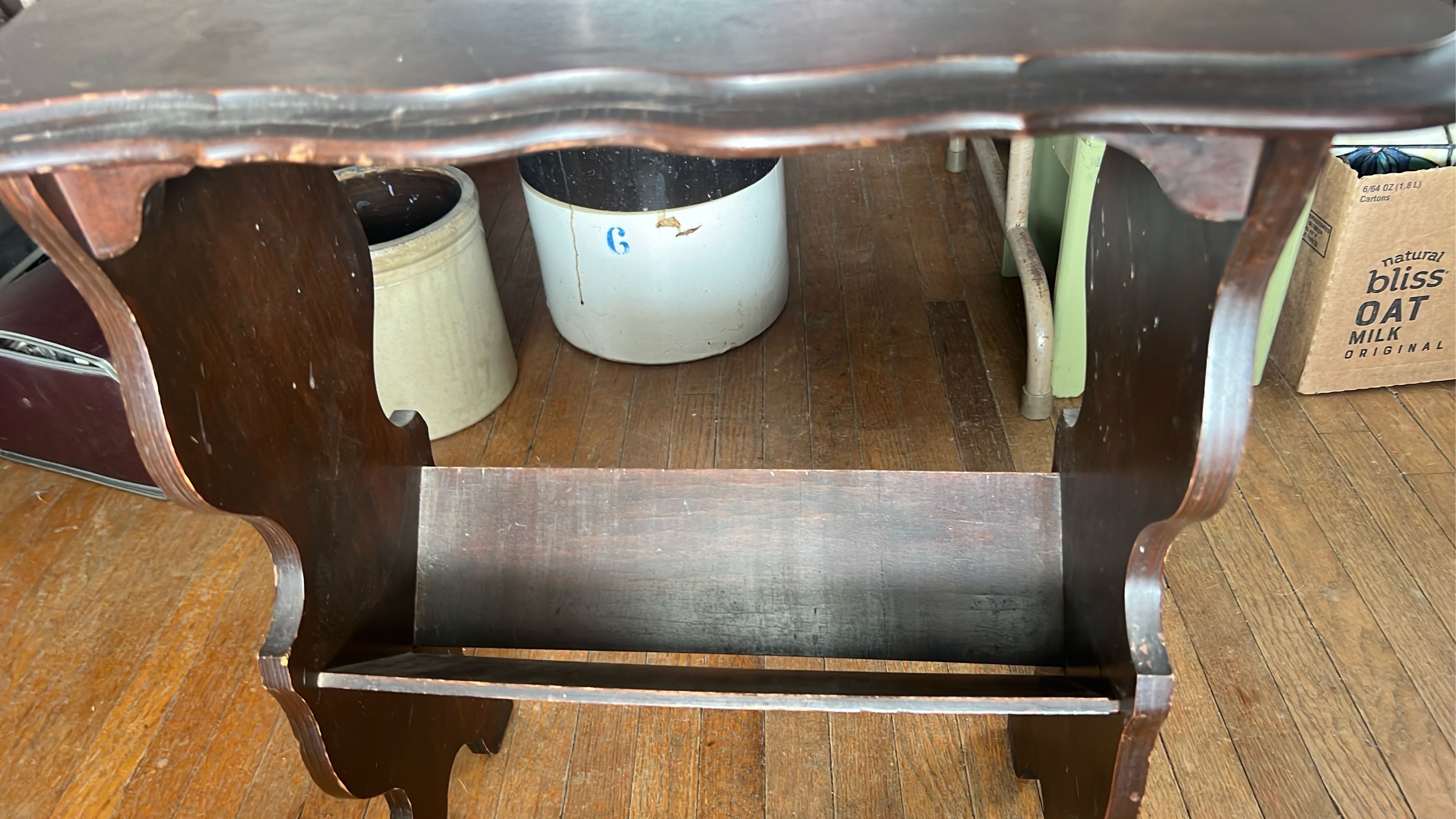 1121 Wood Table 22.25”W x 54.25”L, has damage see picture