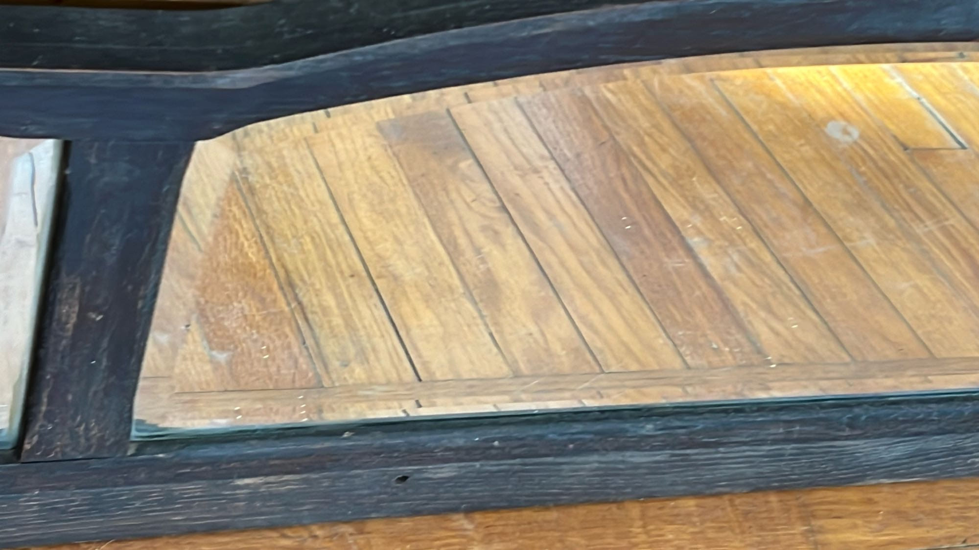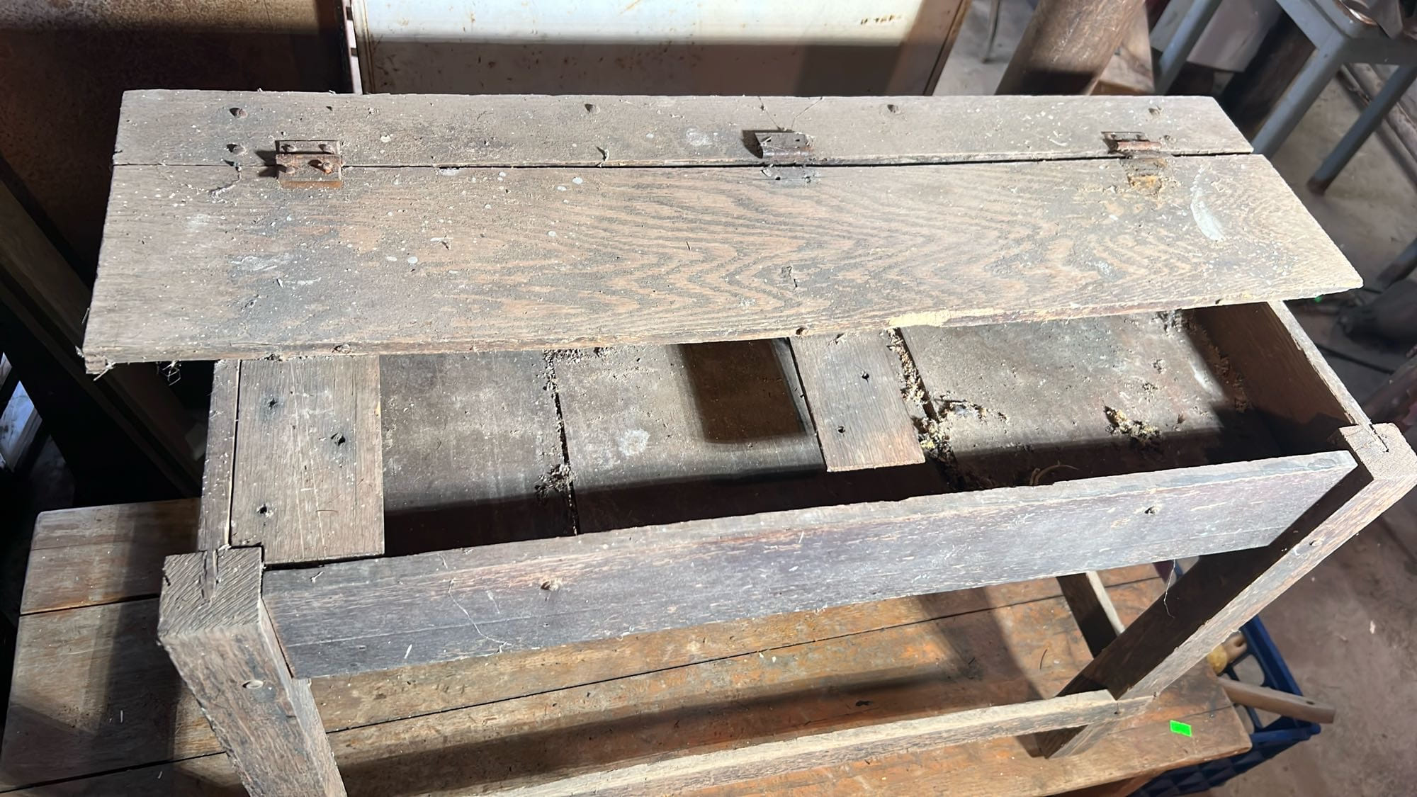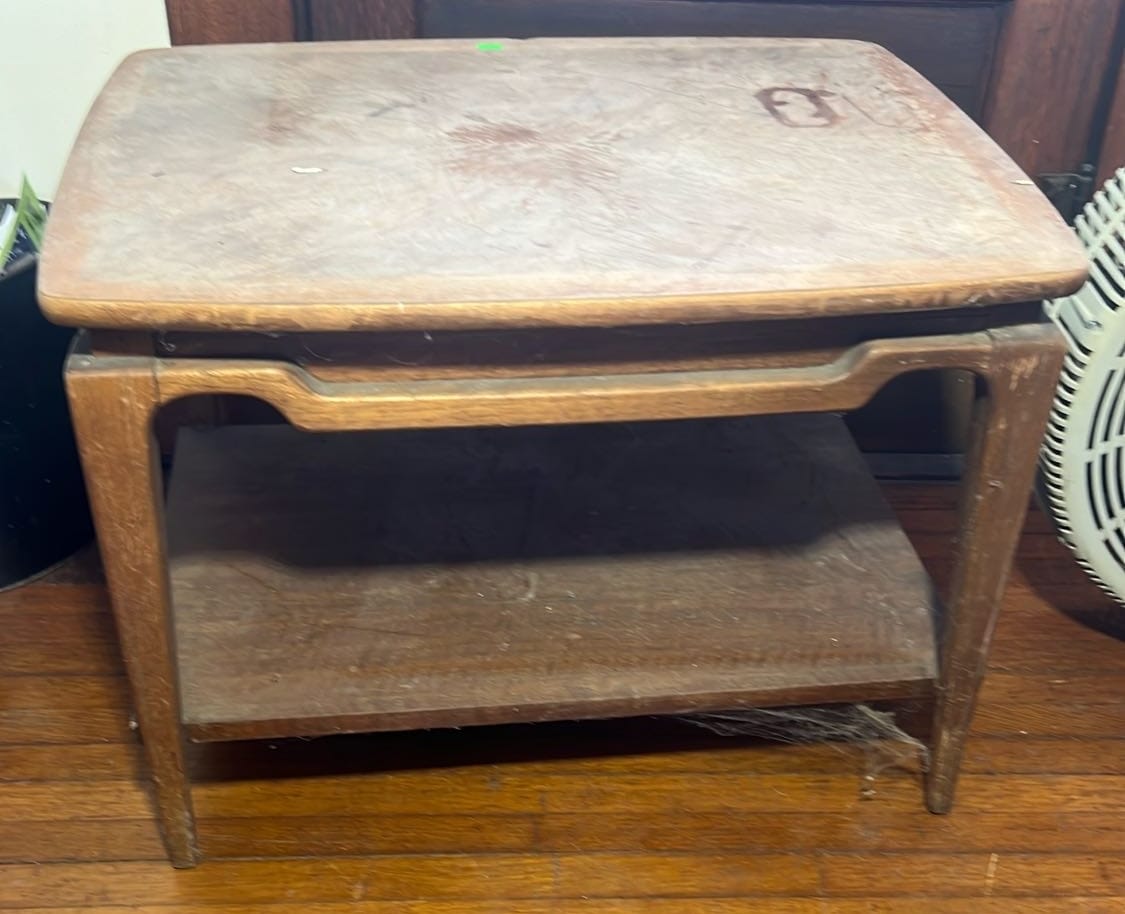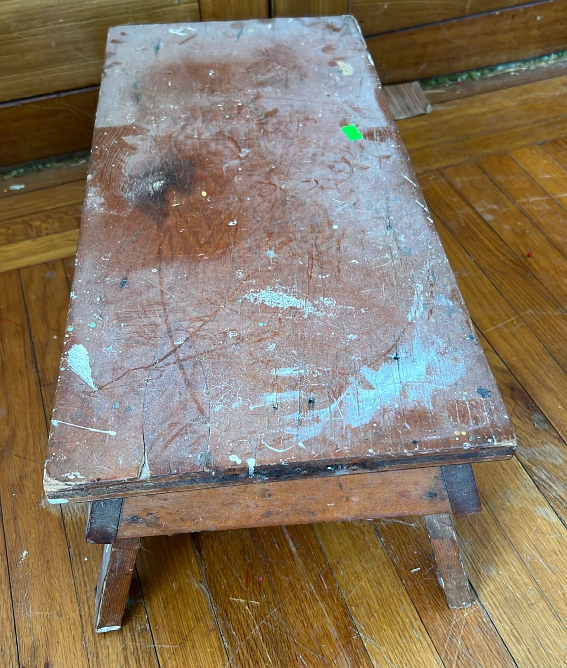 1121 Wood Table 22.25”W x 54.25”L, has damage see picture
