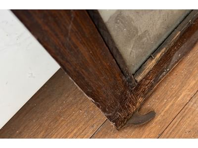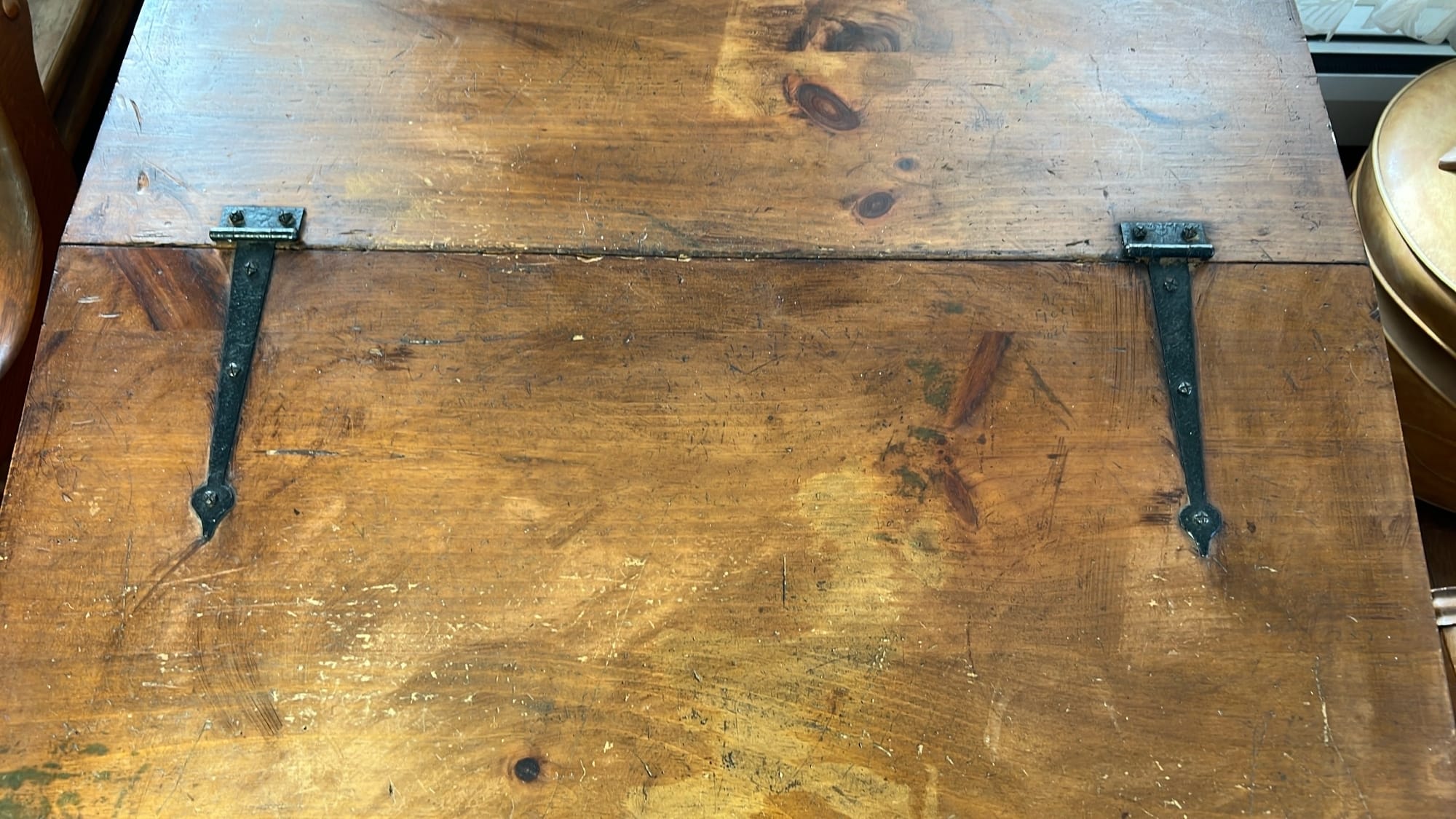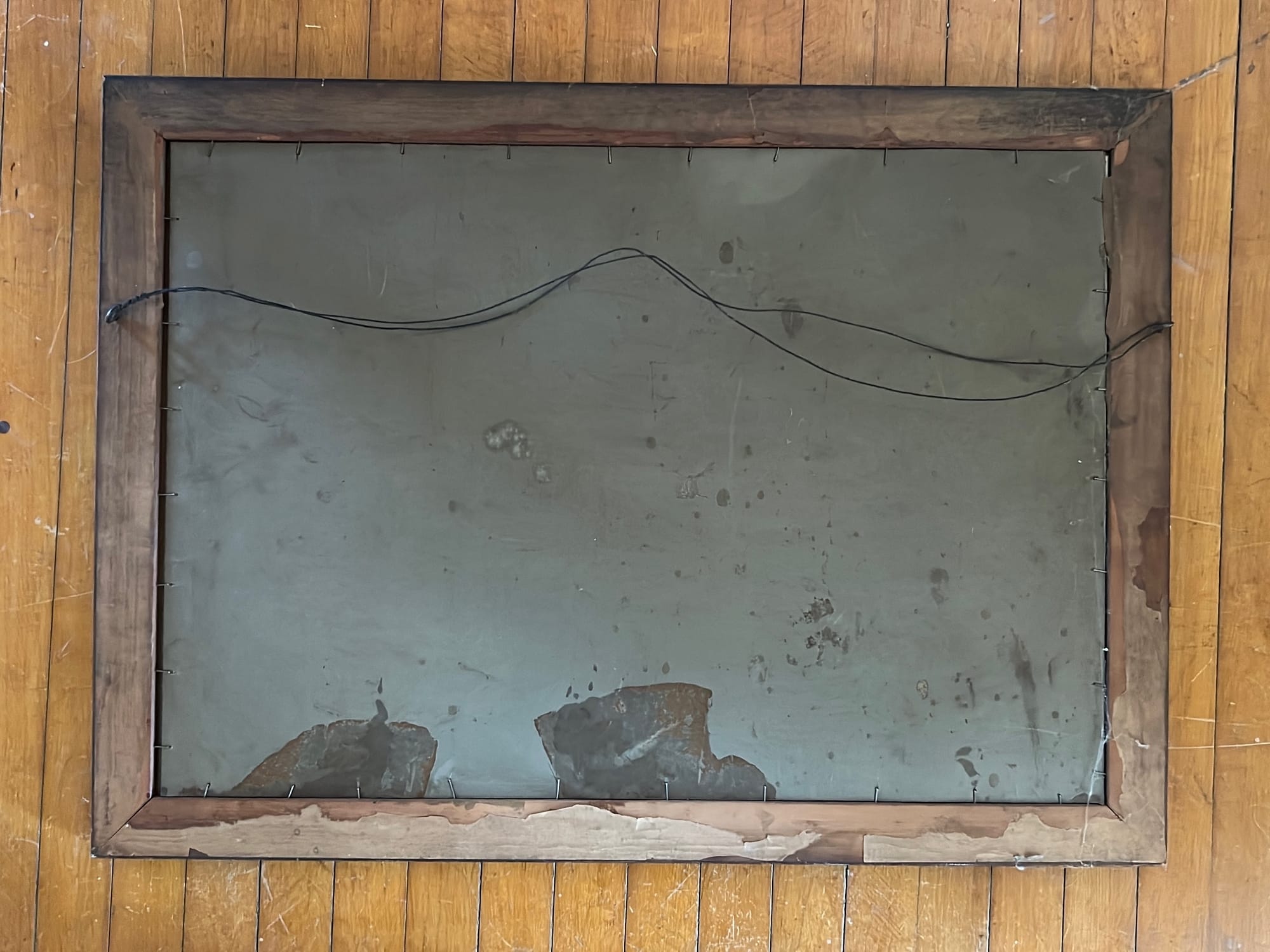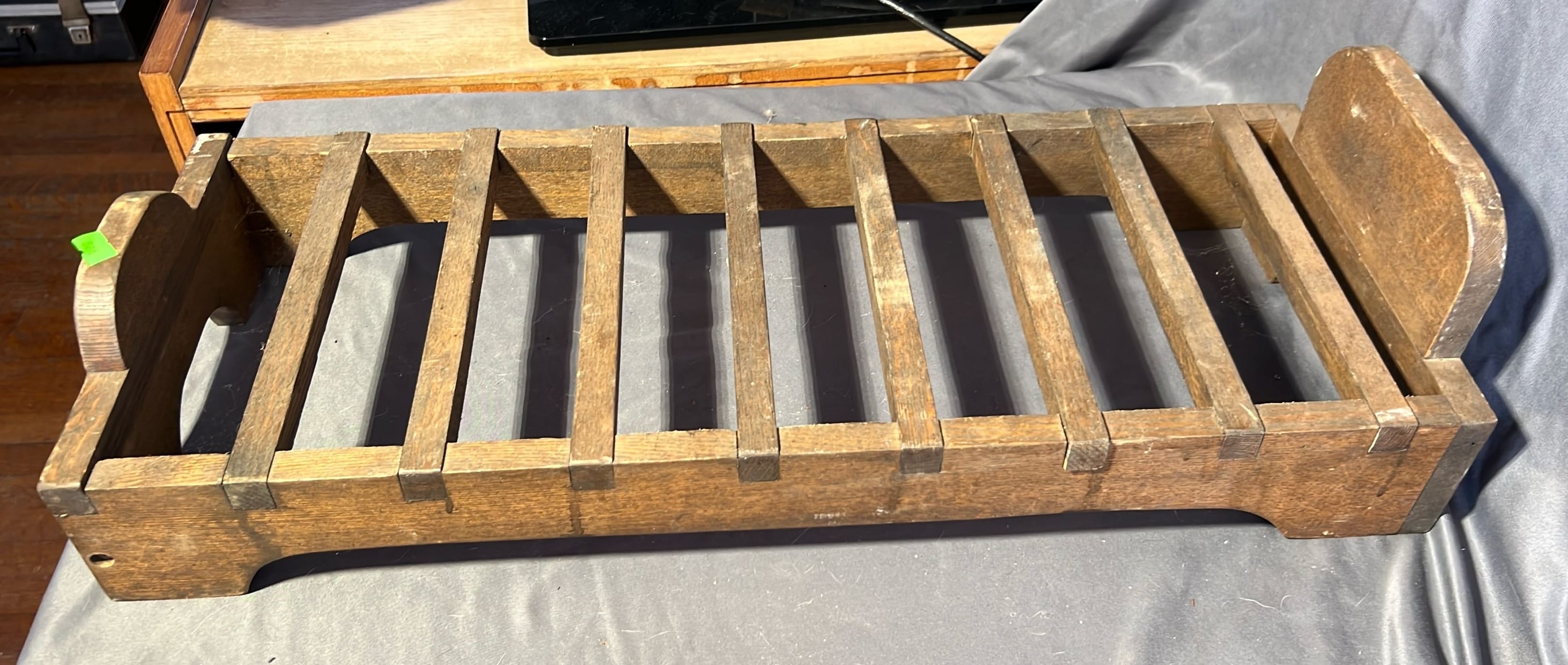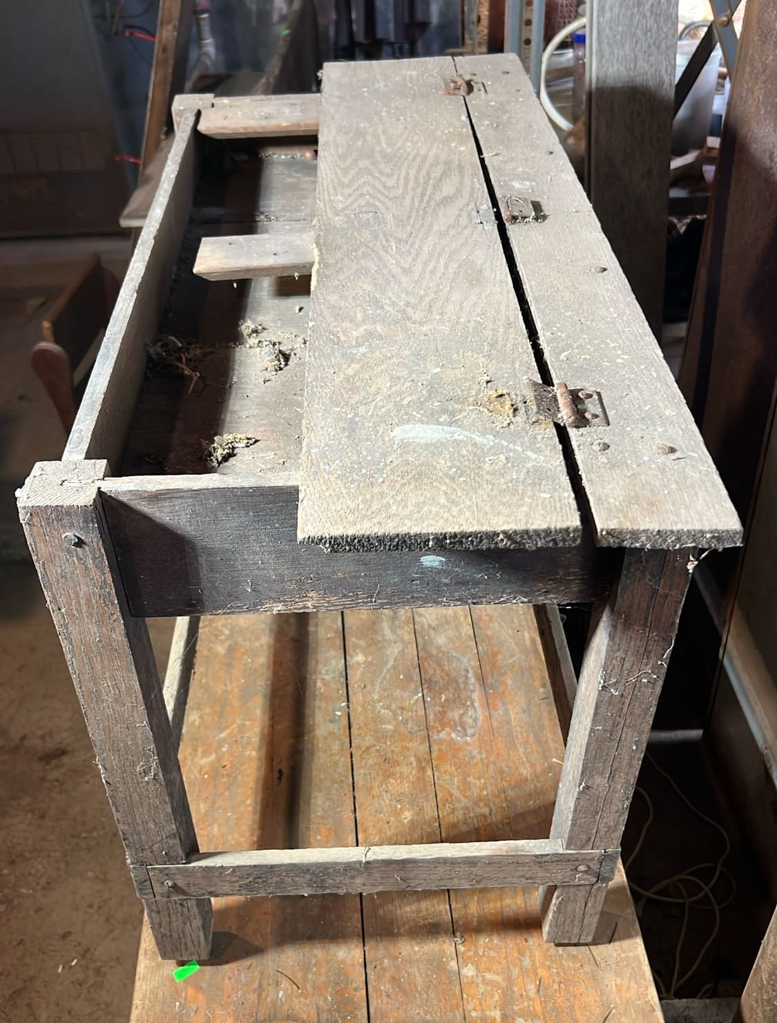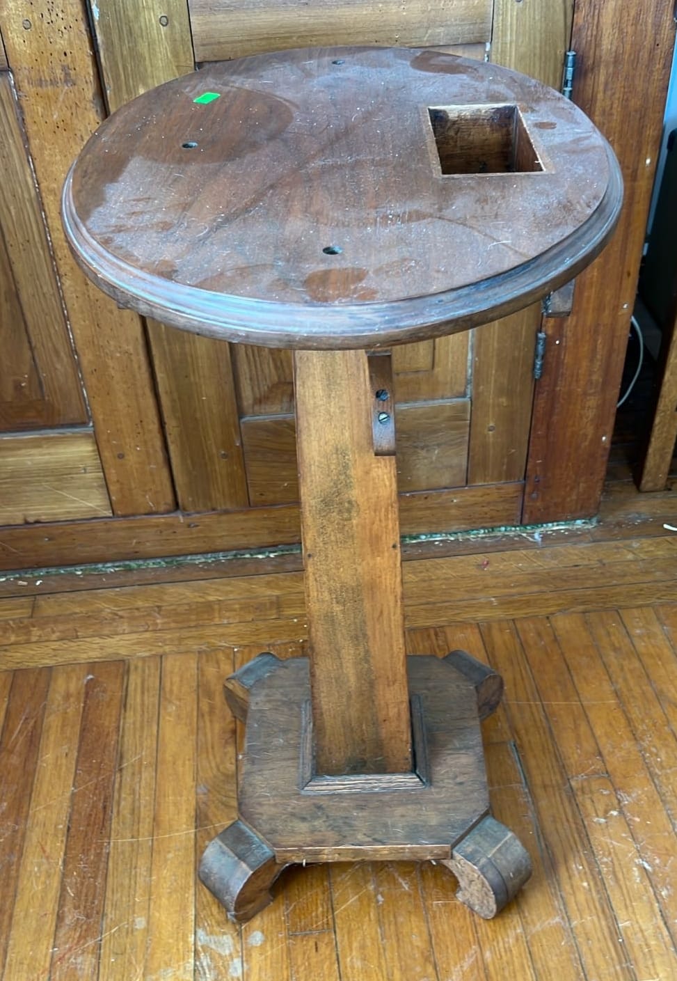 1121 Wood Table 22.25”W x 54.25”L, has damage see picture