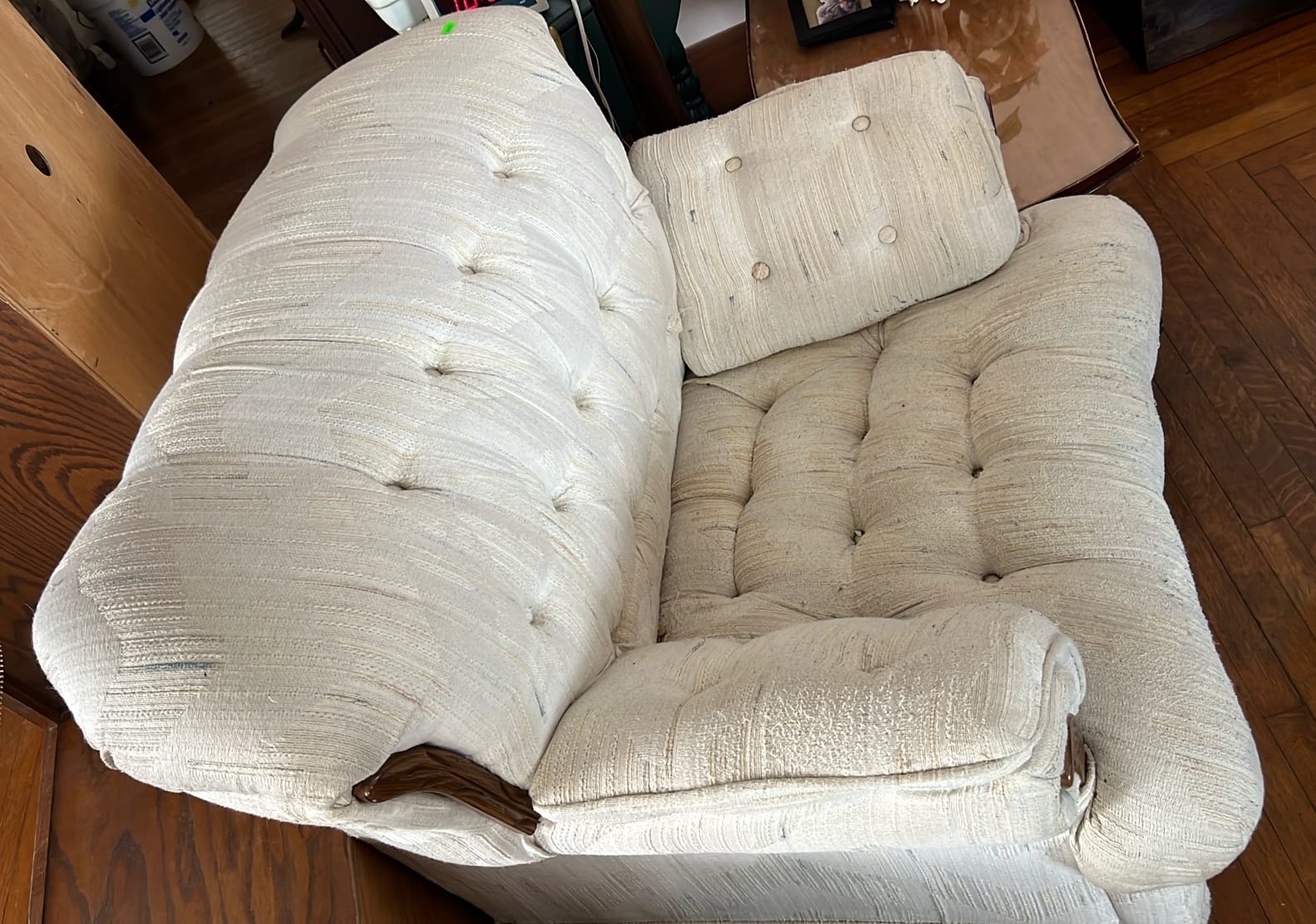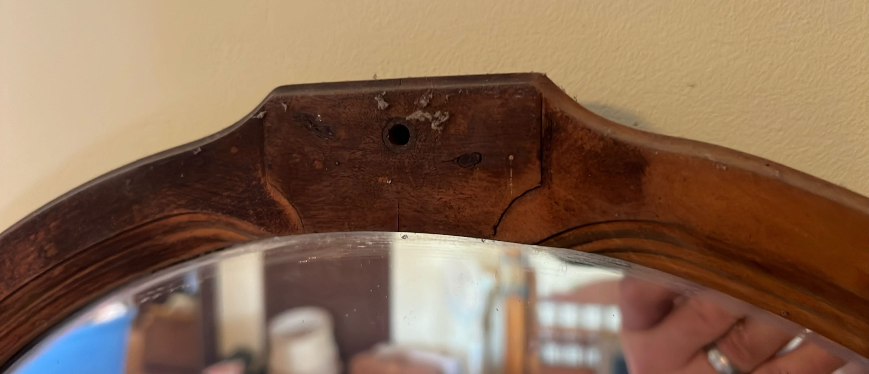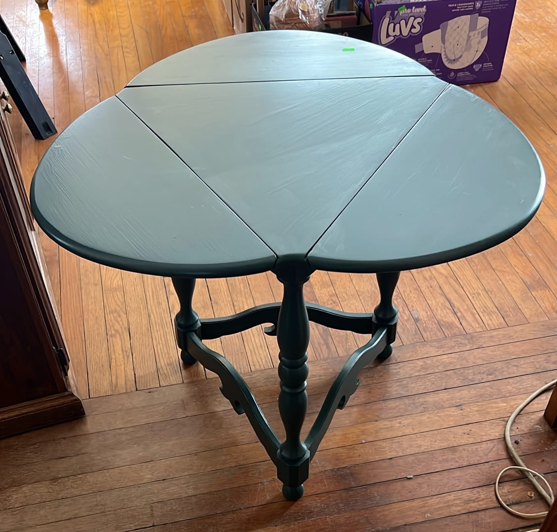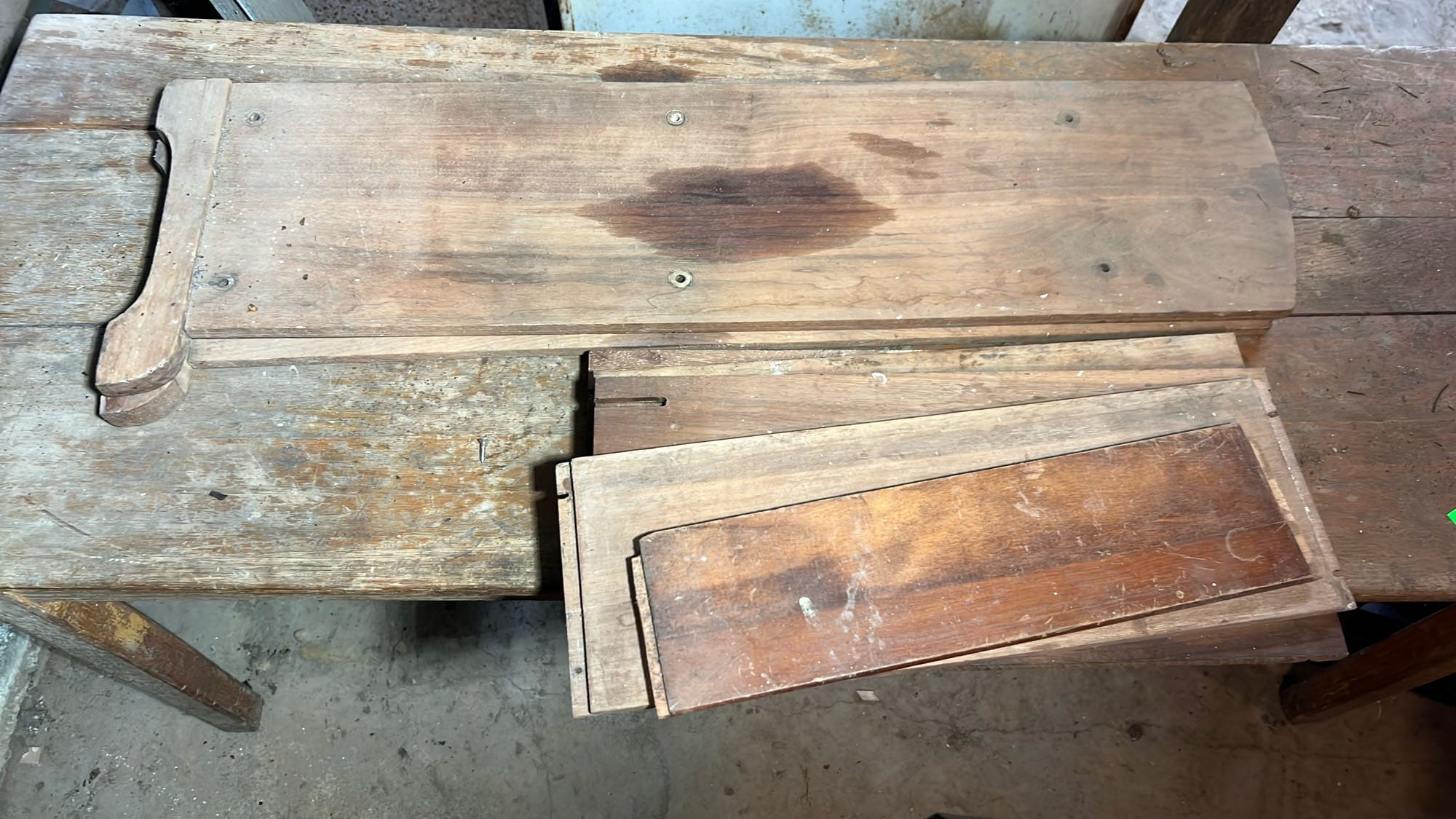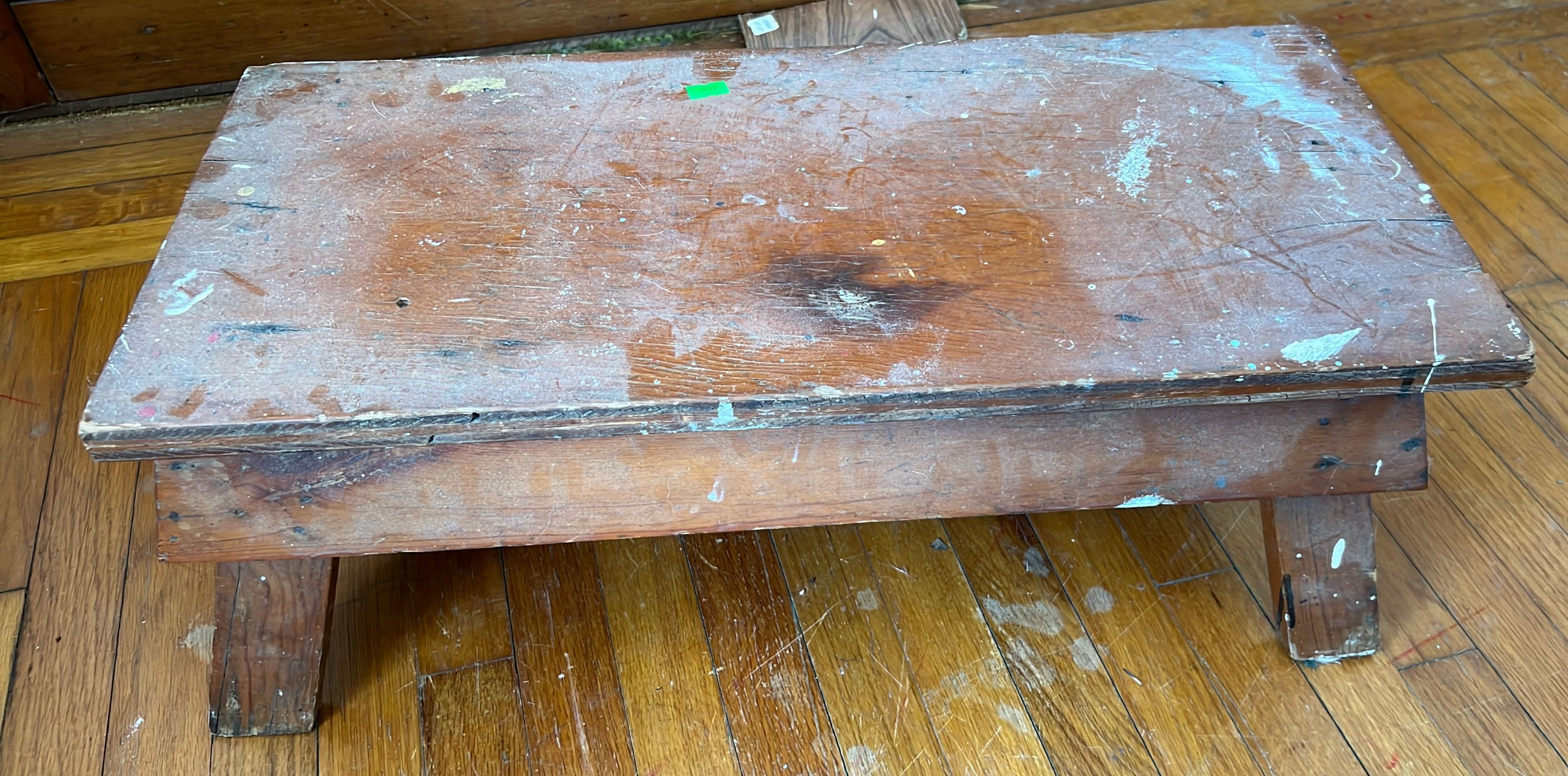 1121 Wood Table 22.25”W x 54.25”L, has damage see picture