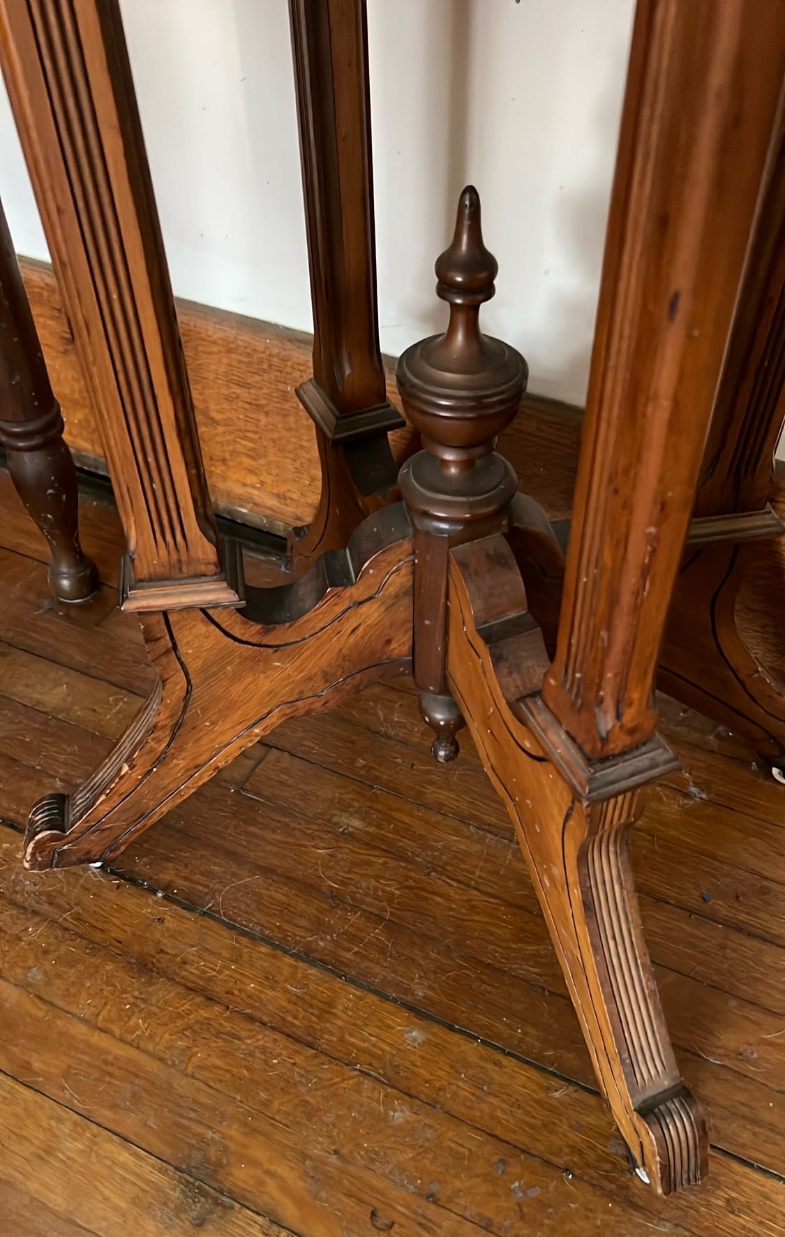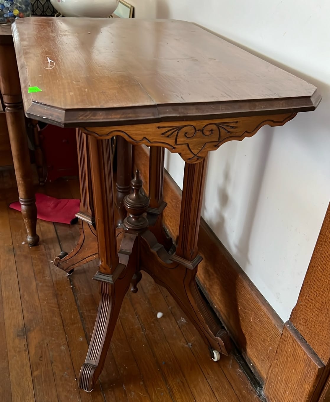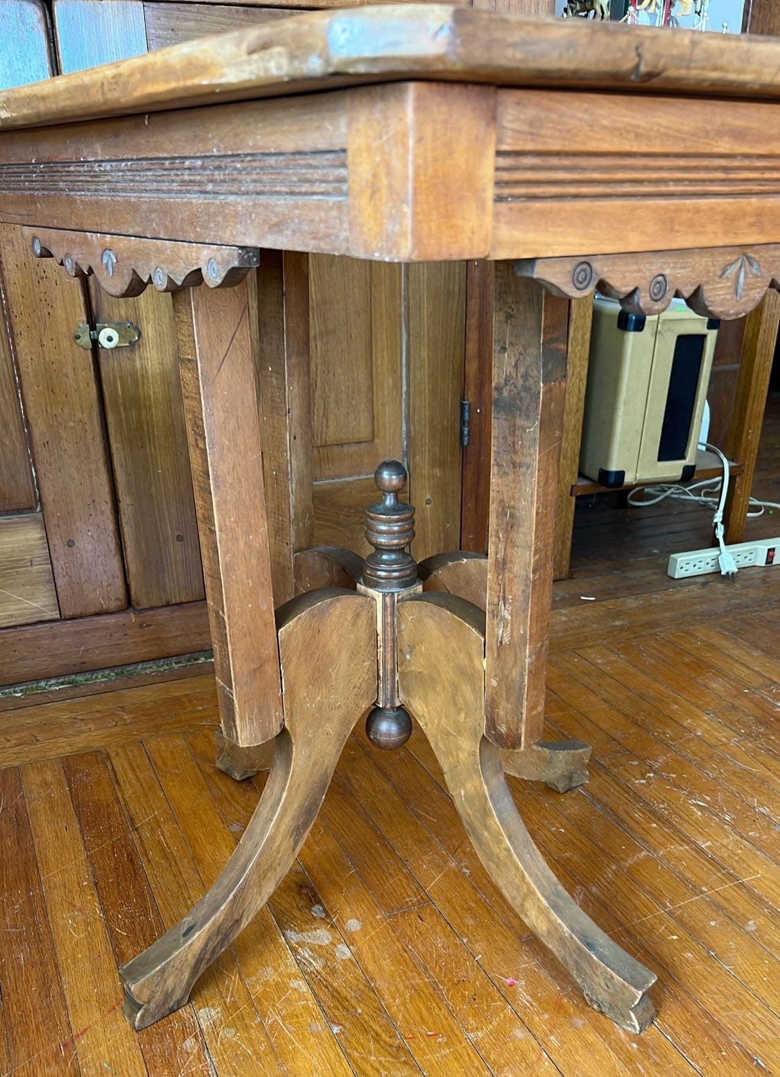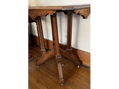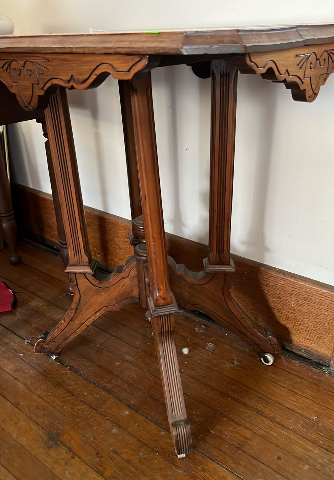 20 Walnut Ornate Parlor Table 28”x30”x18.75”
