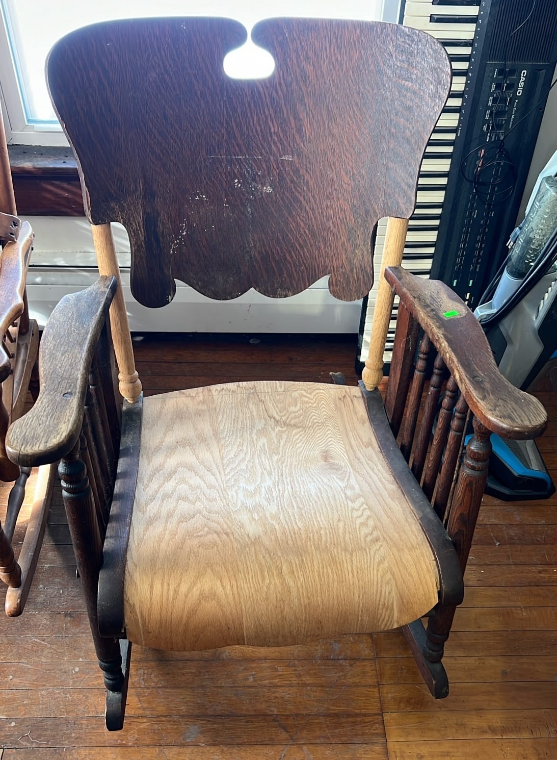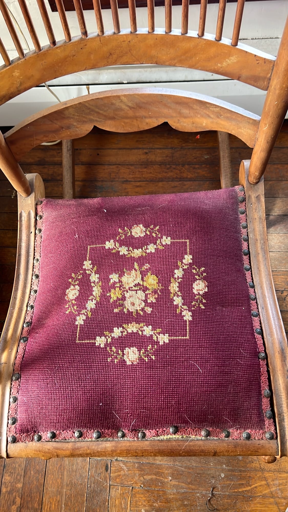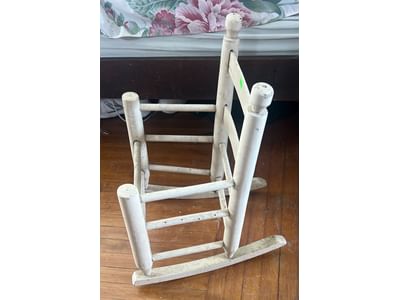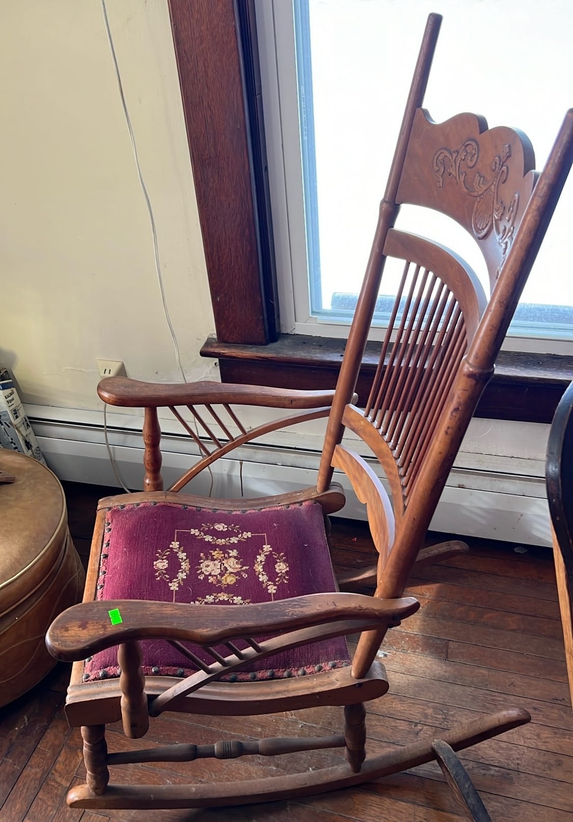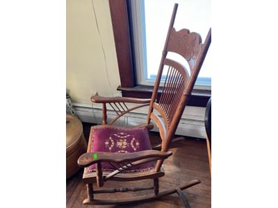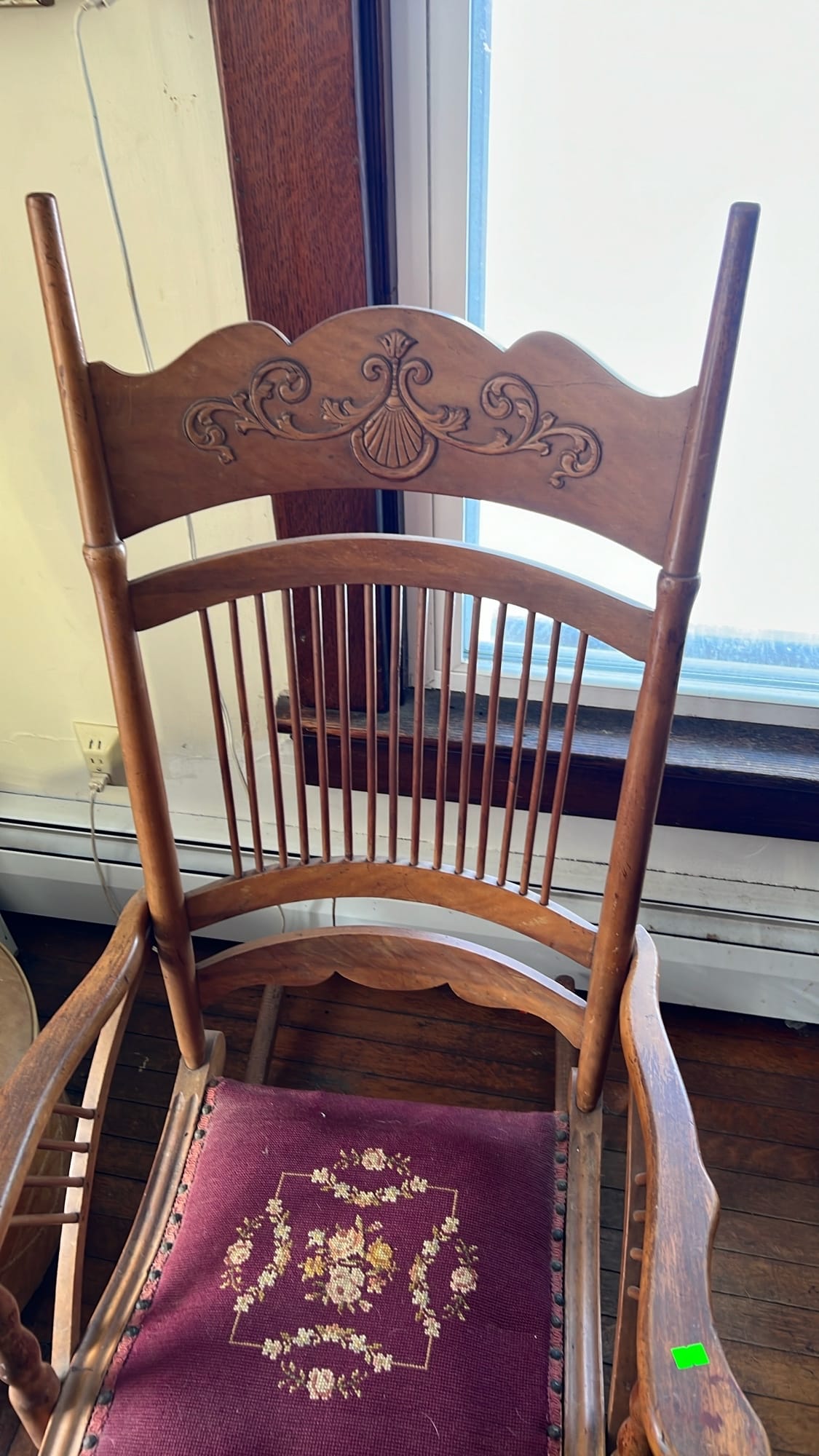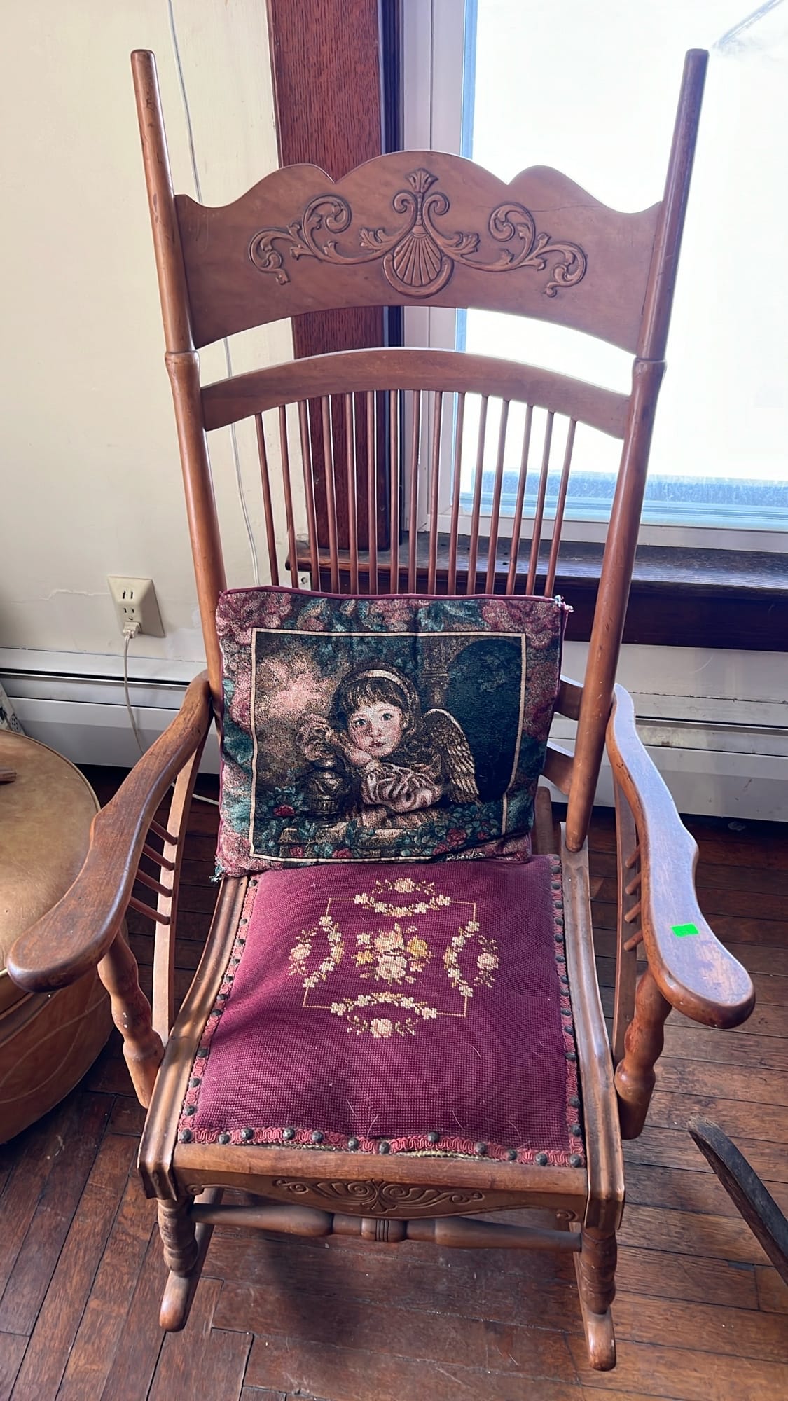 18 Ornate Wood Rocking Chair with Pillows 26”W Seat ht. 15”