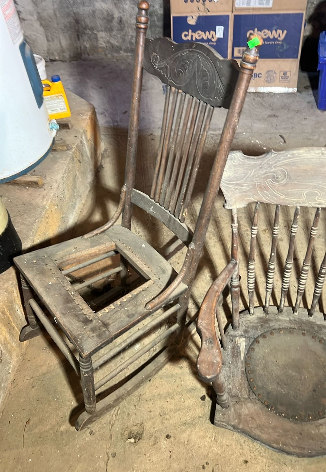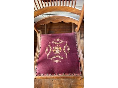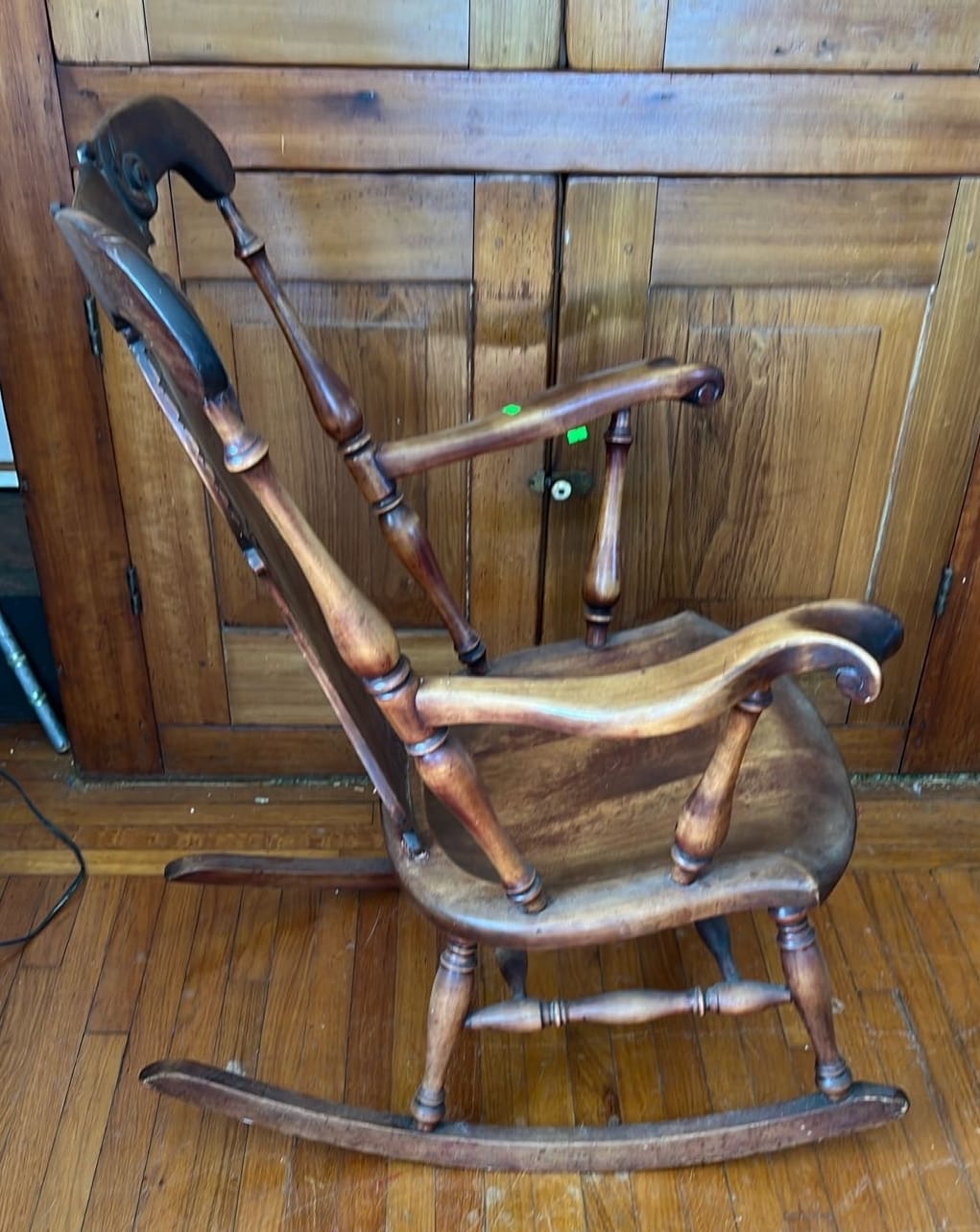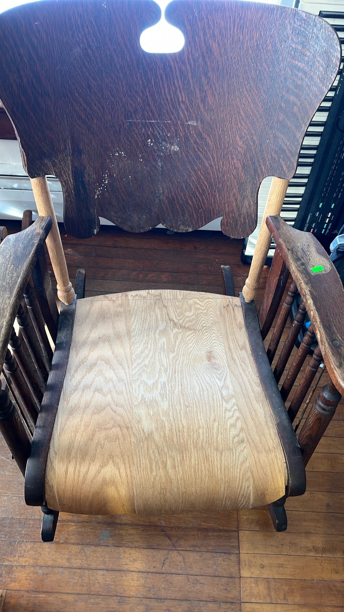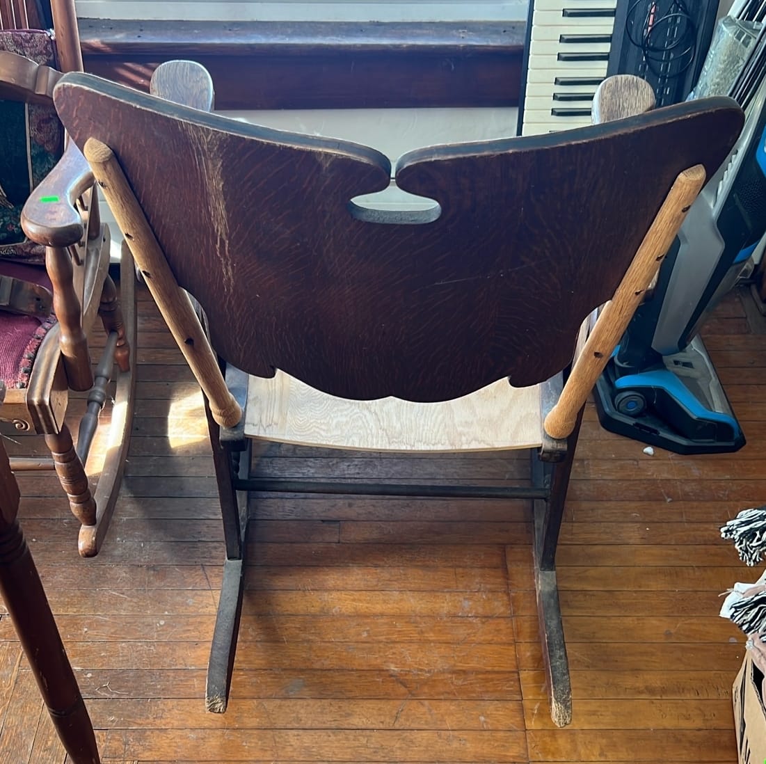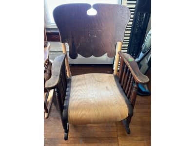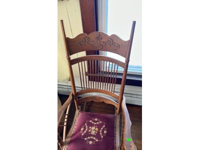 18 Ornate Wood Rocking Chair with Pillows 26”W Seat ht. 15”