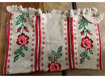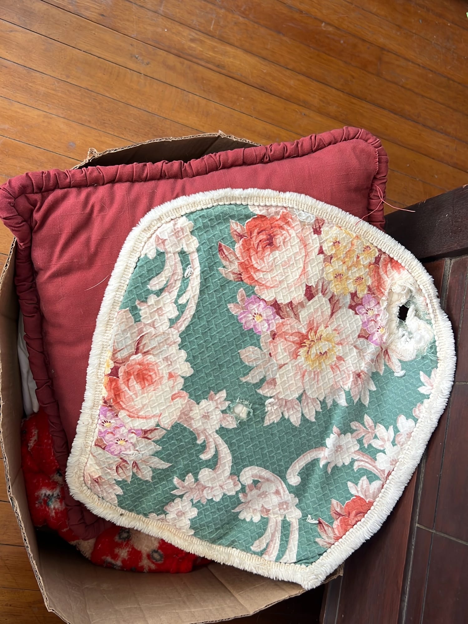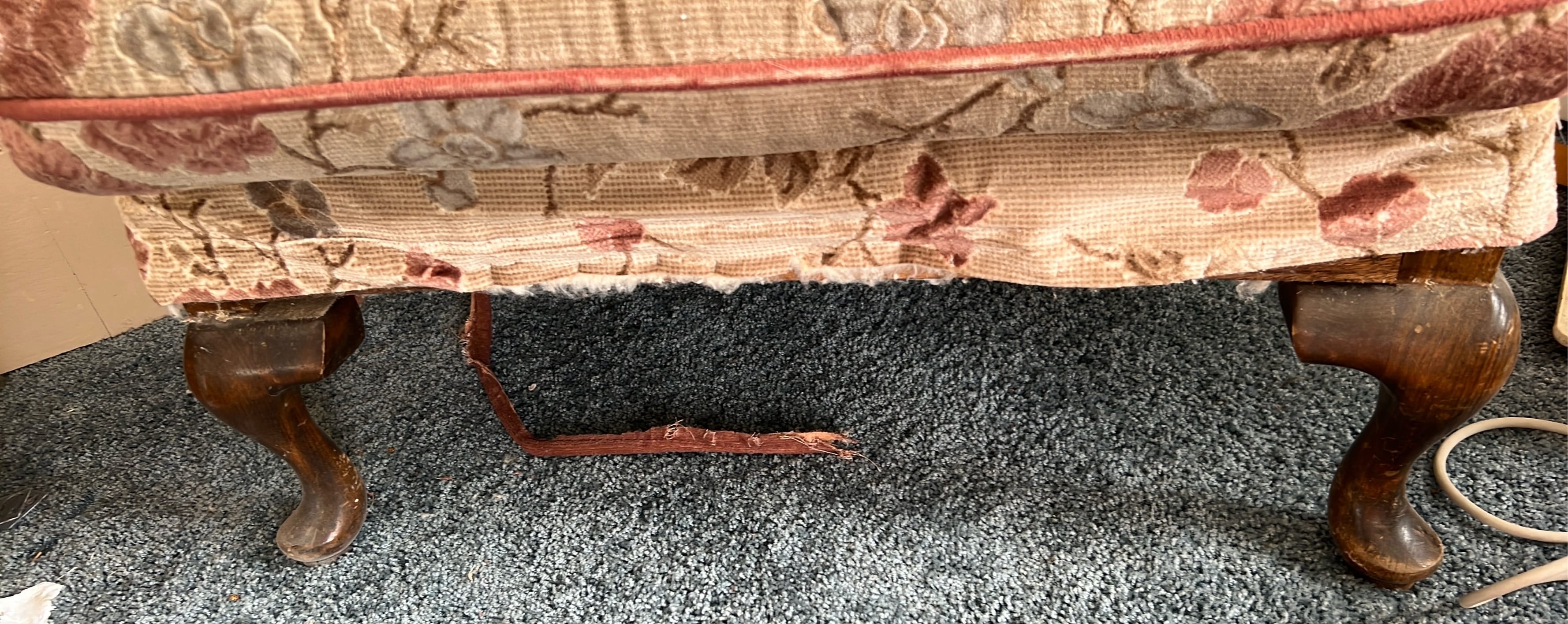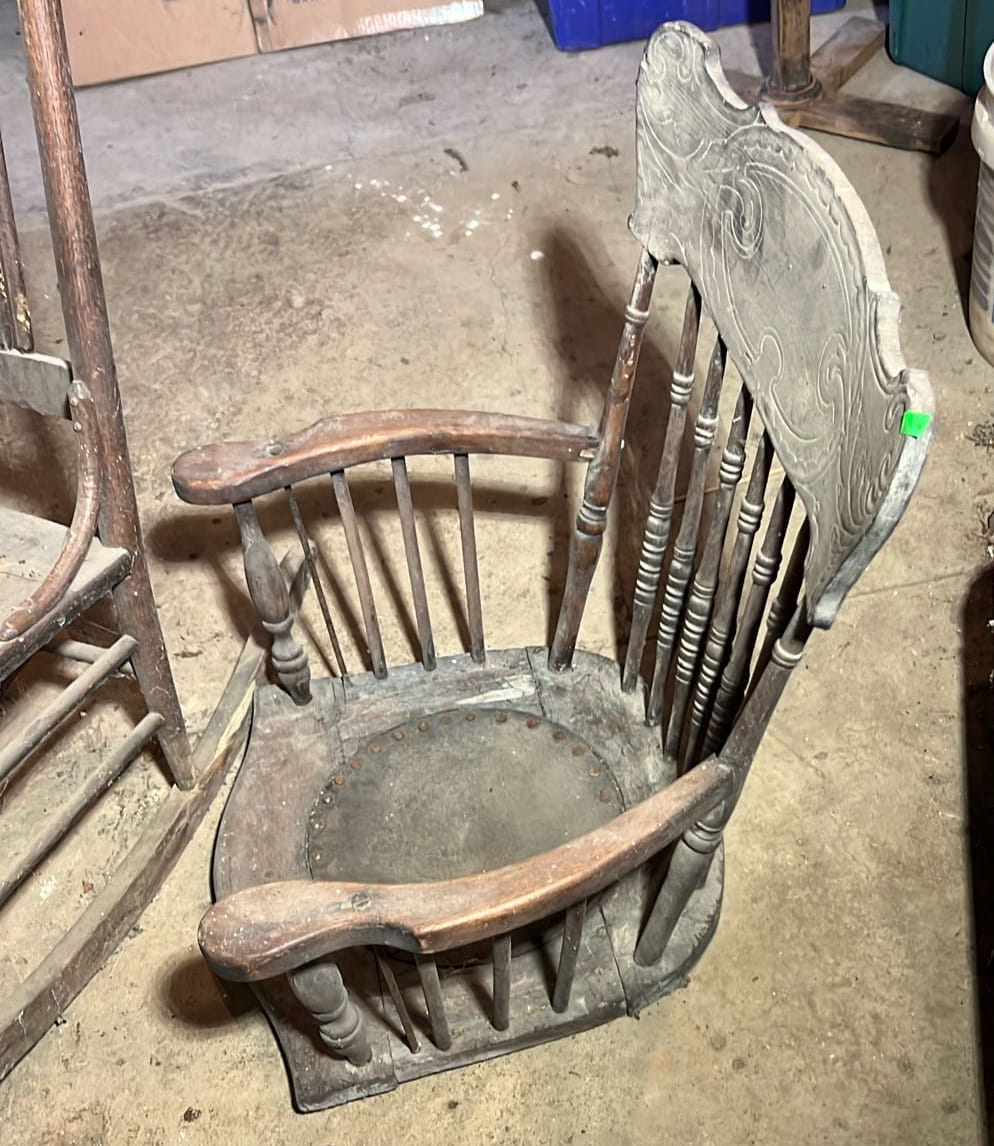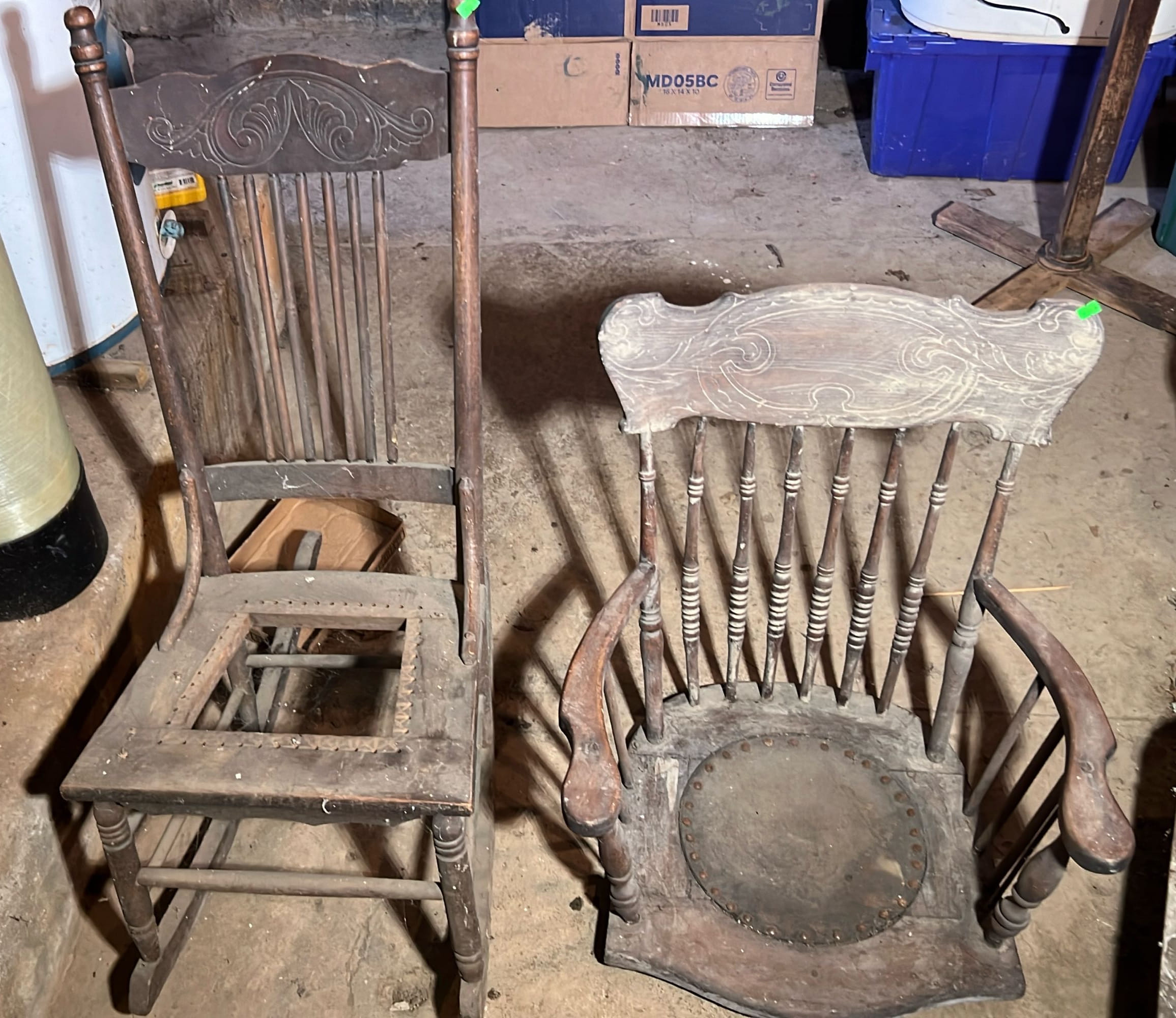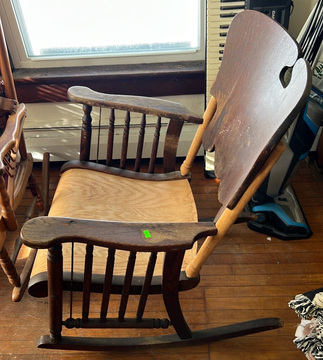 18 Ornate Wood Rocking Chair with Pillows 26”W Seat ht. 15”