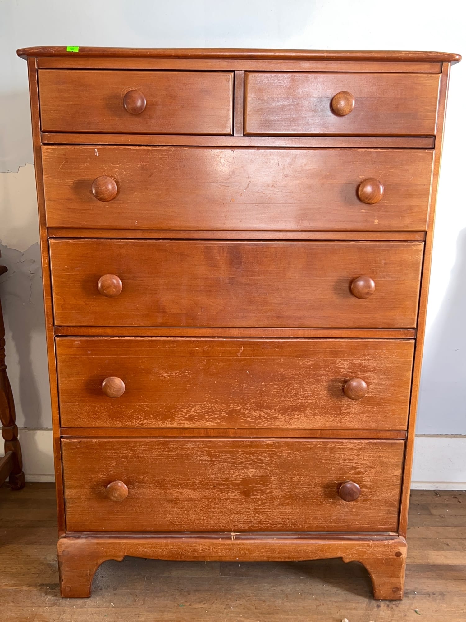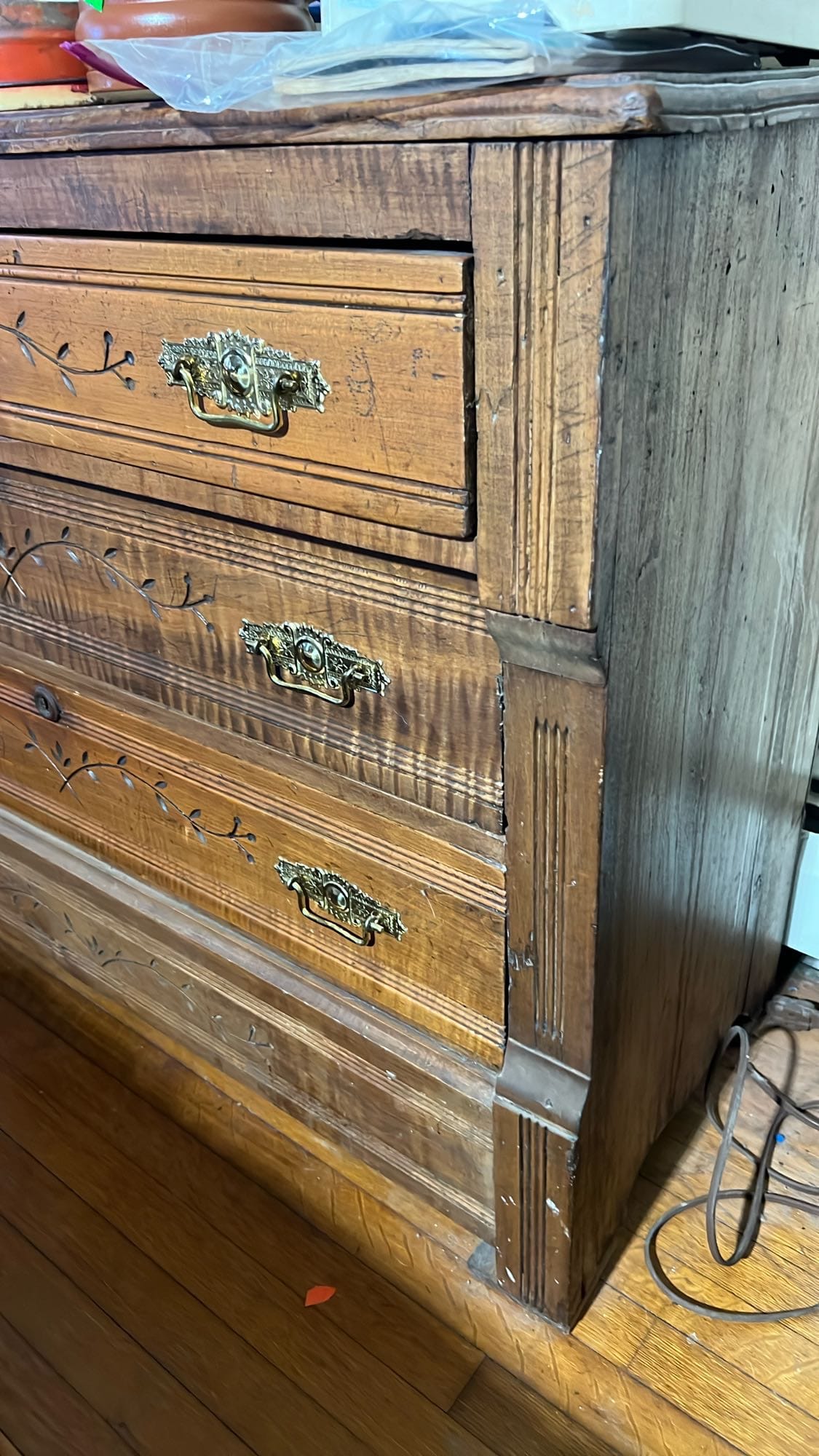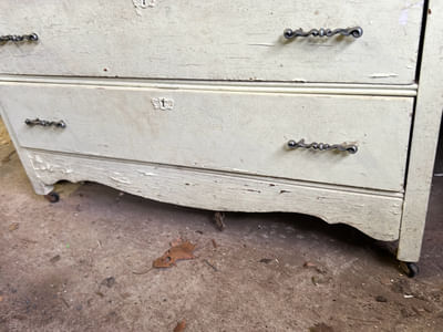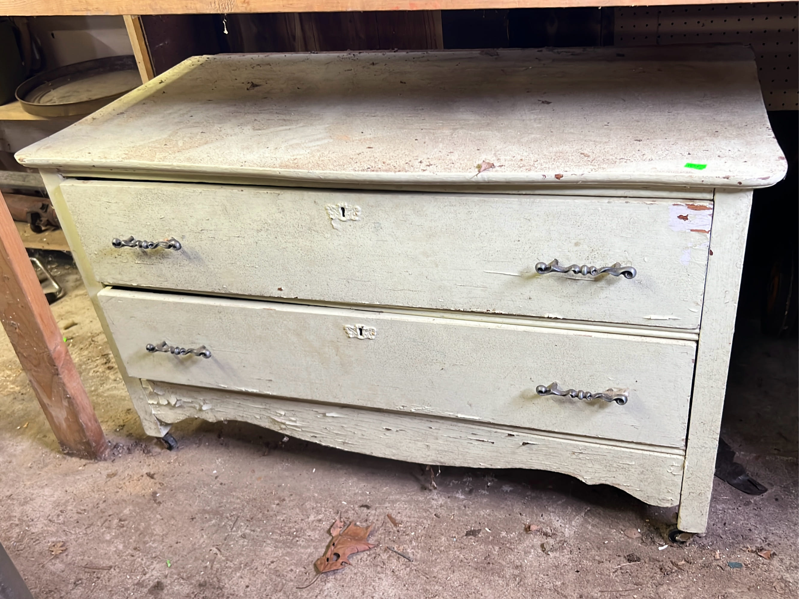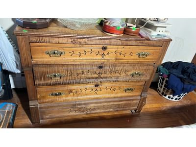 23 Spoon Carved Three-Drawer Lowboy Dresser 43.25”x32”x17.25” (contents not included)