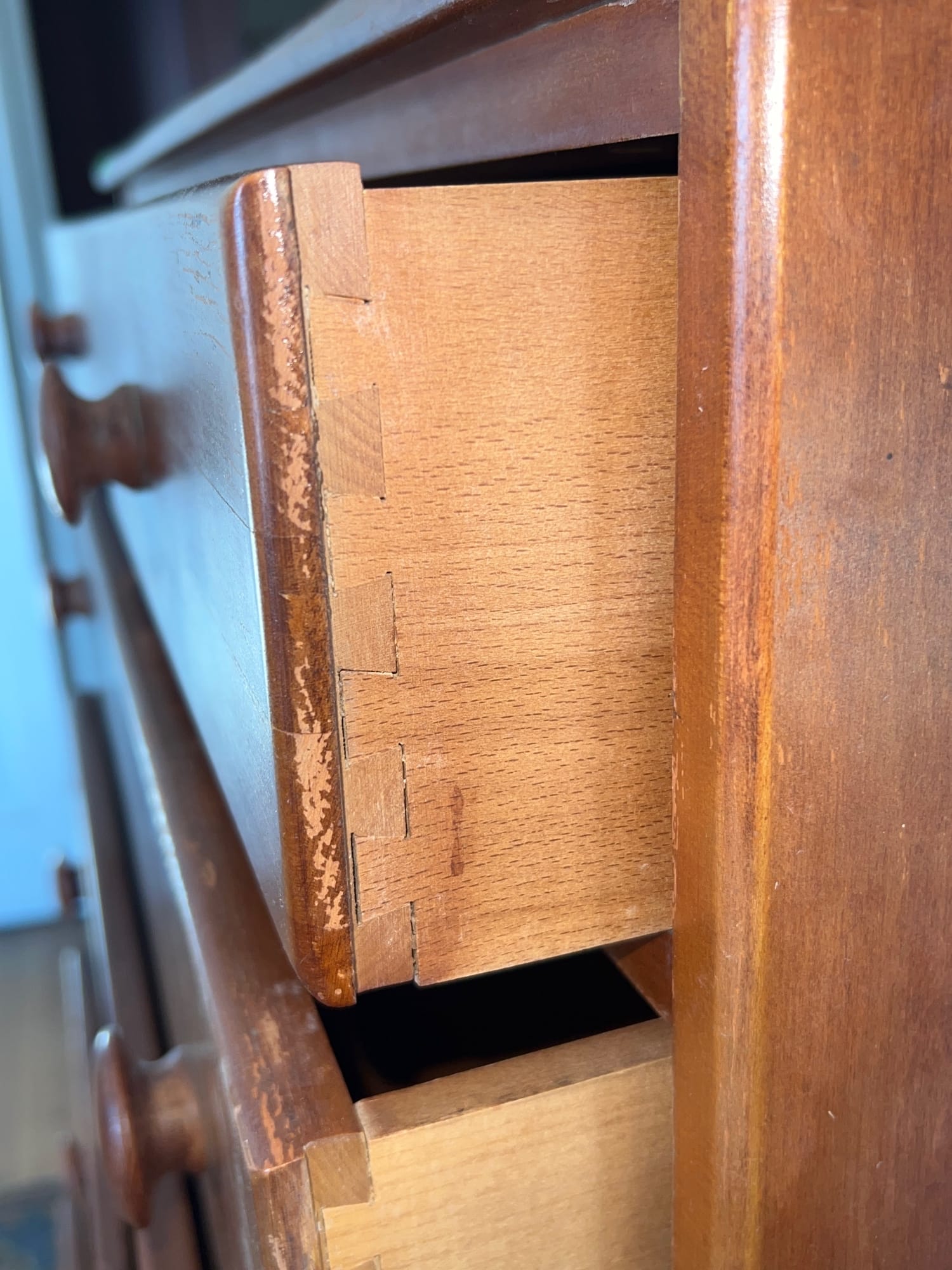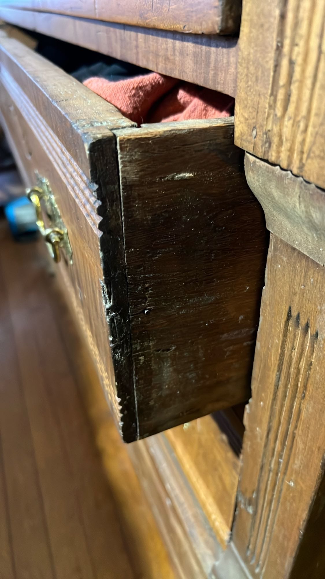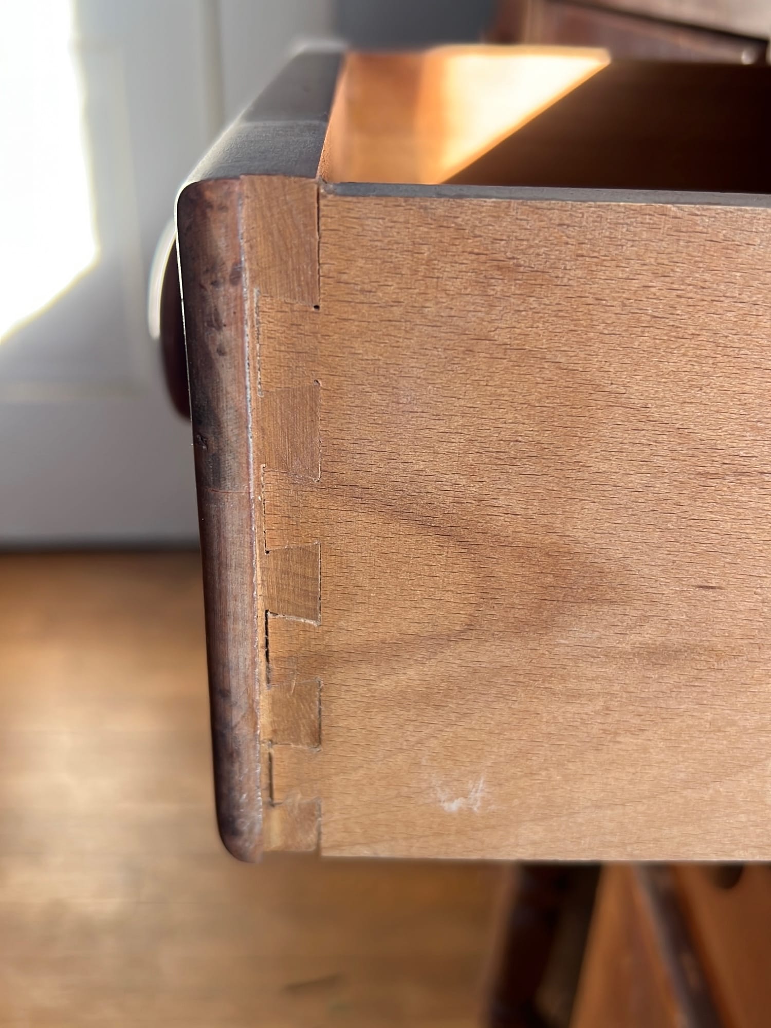 23 Spoon Carved Three-Drawer Lowboy Dresser 43.25”x32”x17.25” (contents not included)