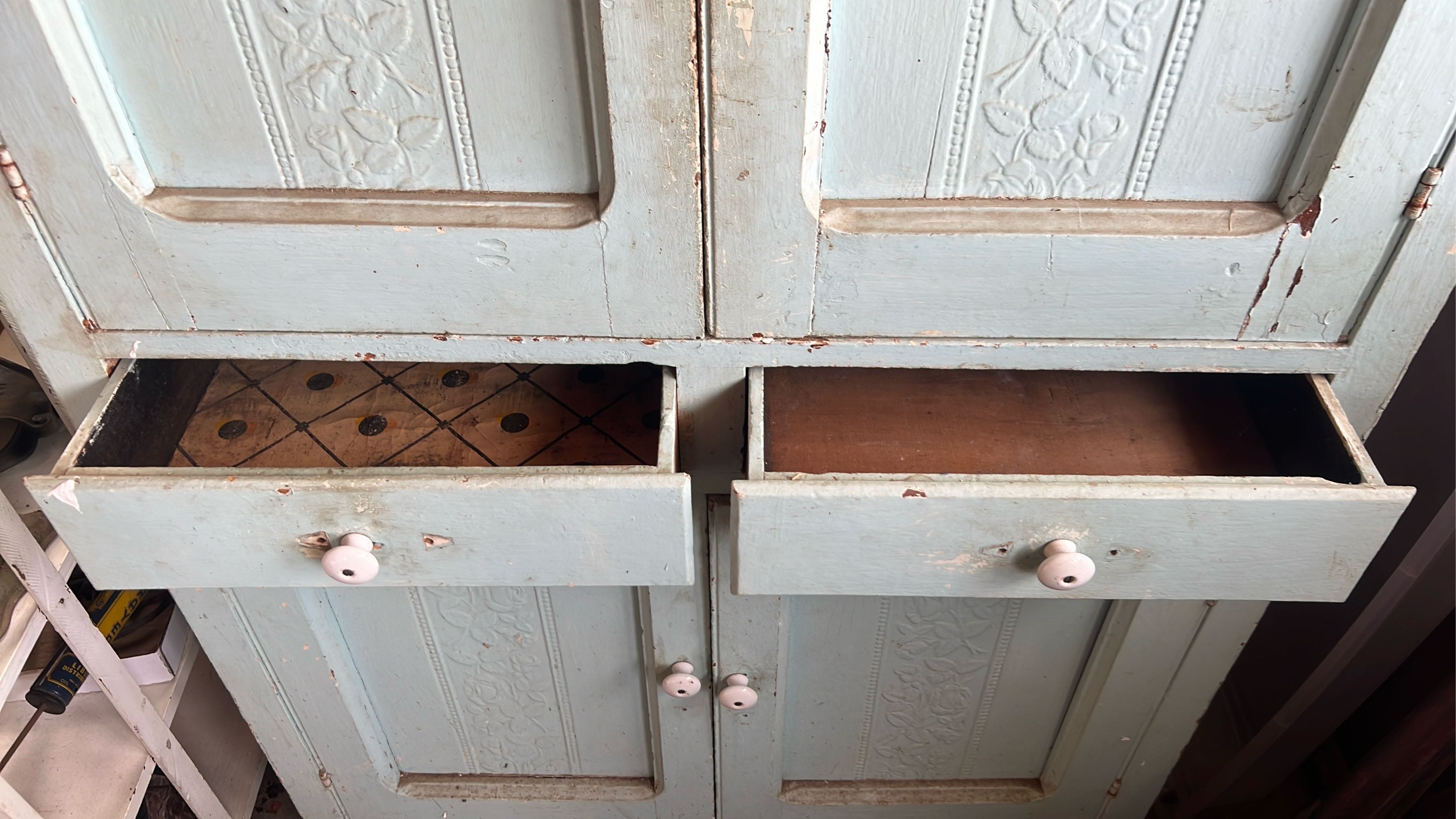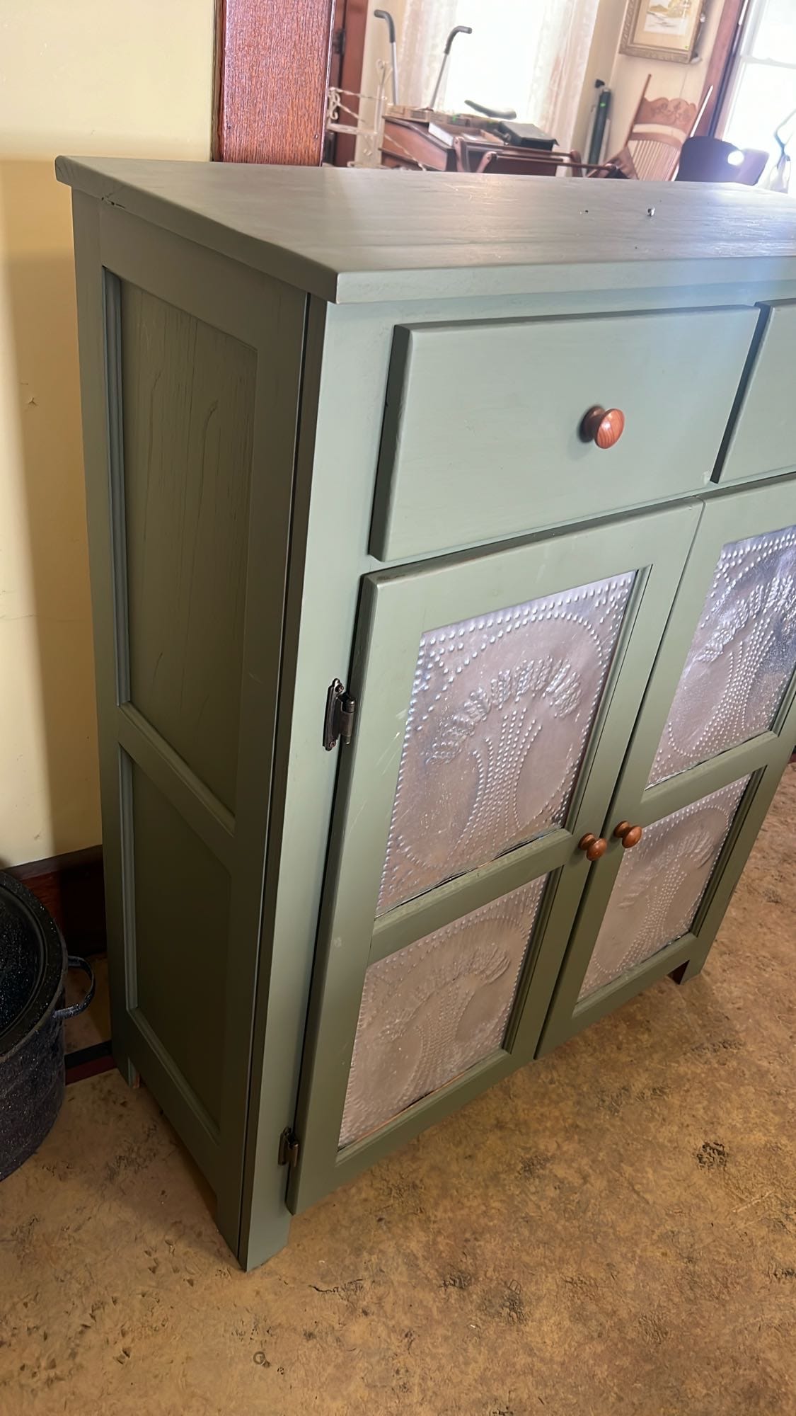 25 Painted Punch Tin Pie Safe 36”x44.75”x15.25”