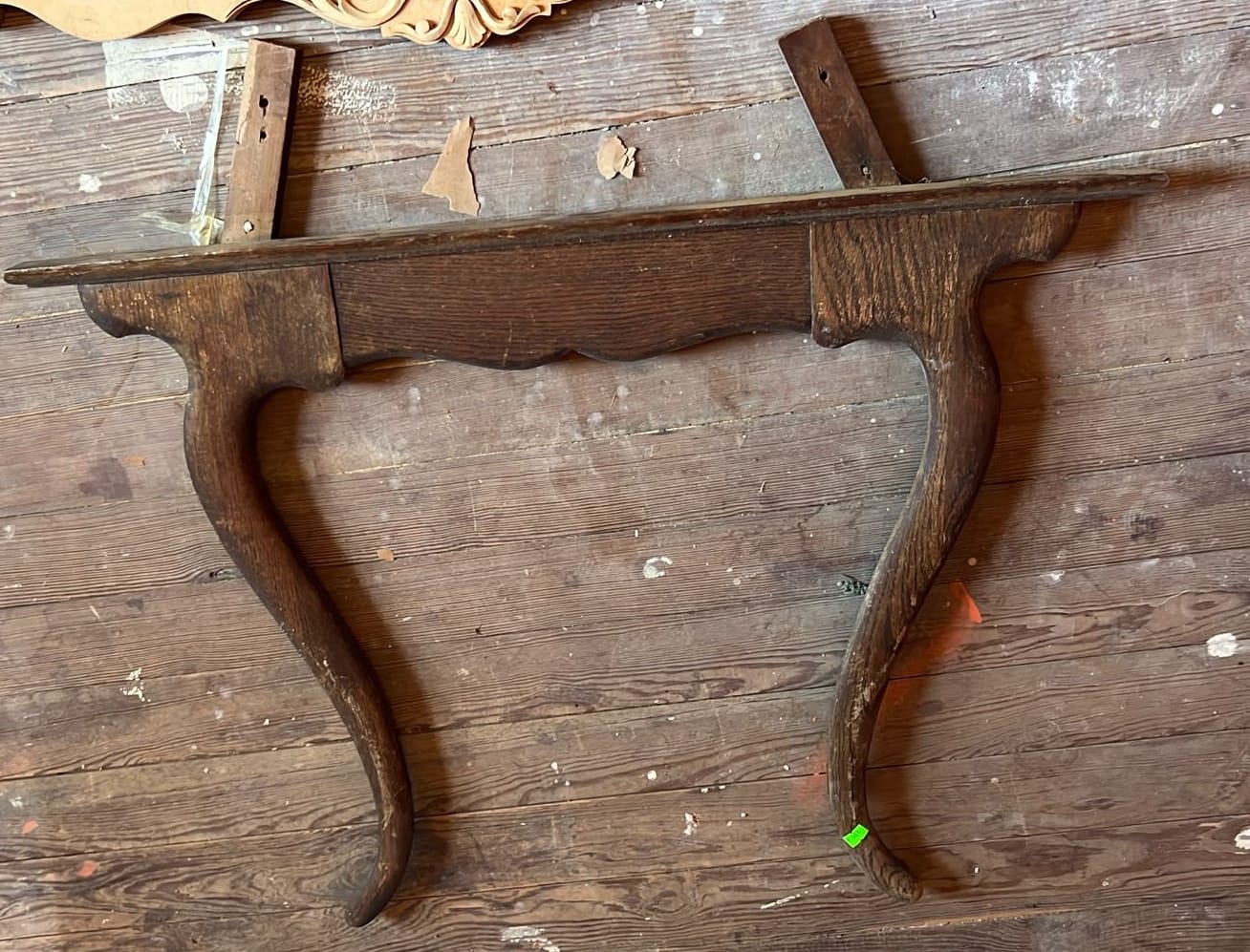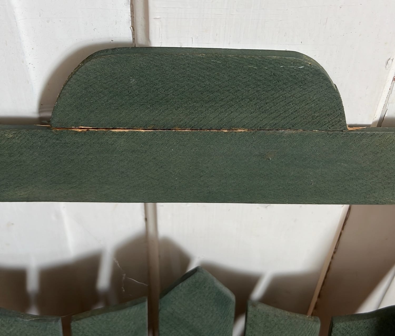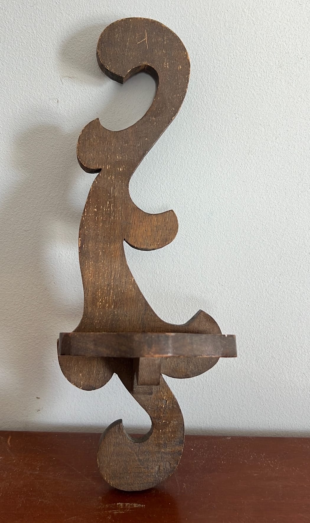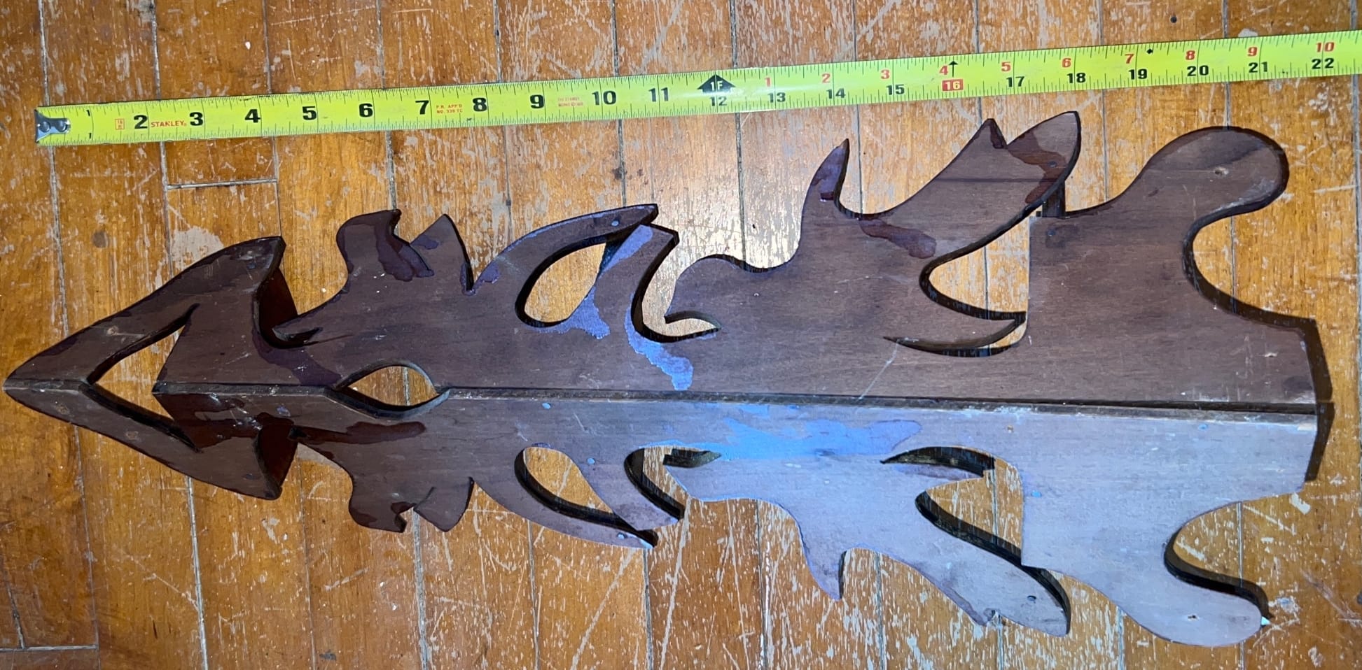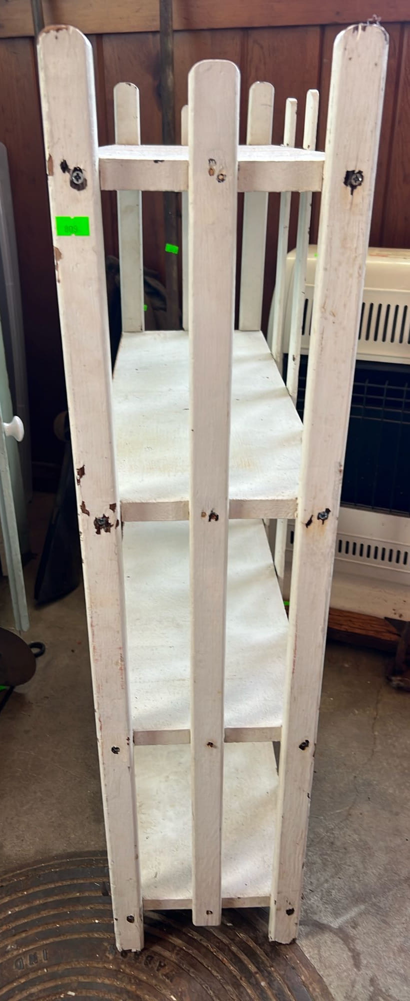 27 Painted wood shelf with heart cut outs 9.25”x 17.5”x 49”