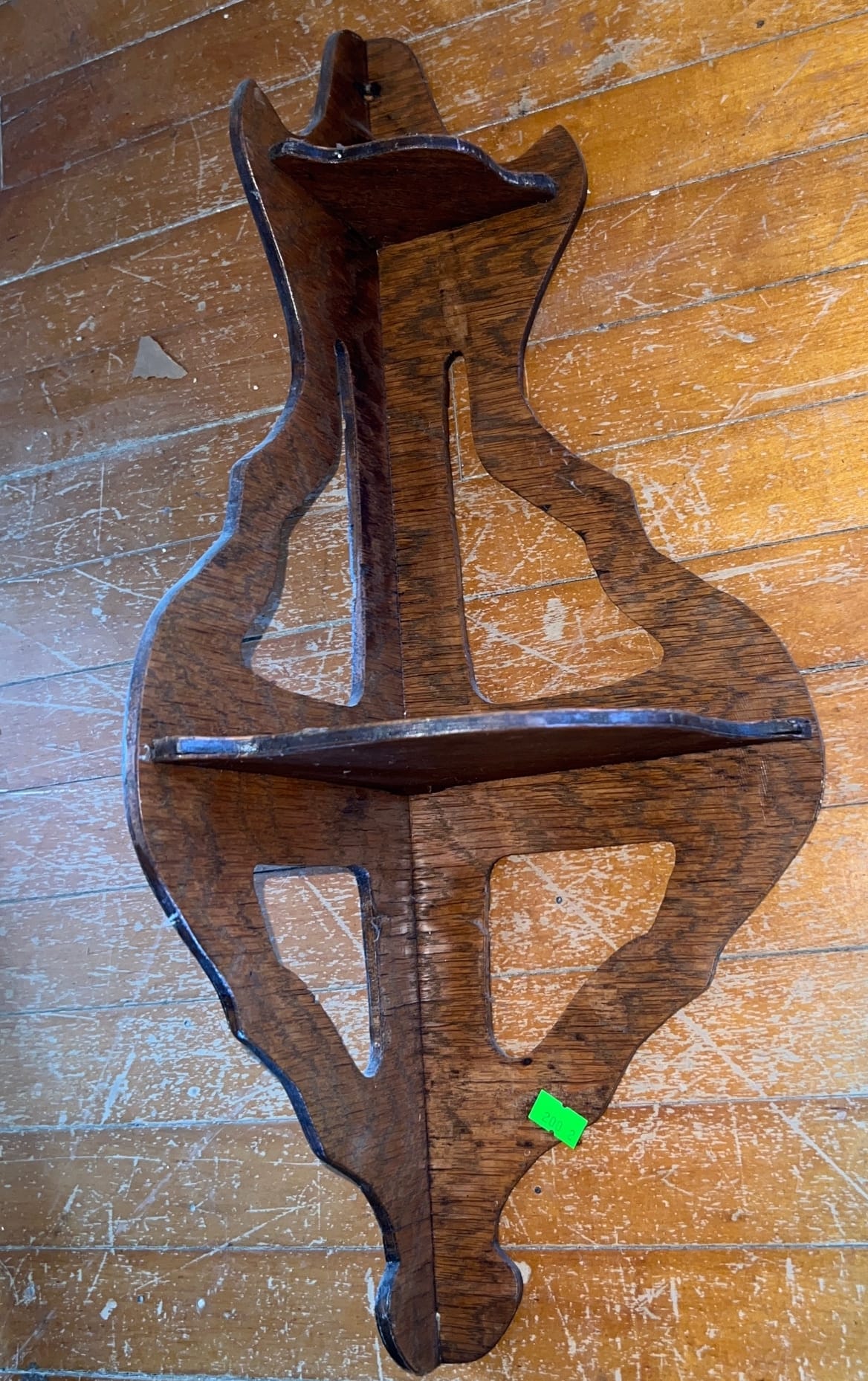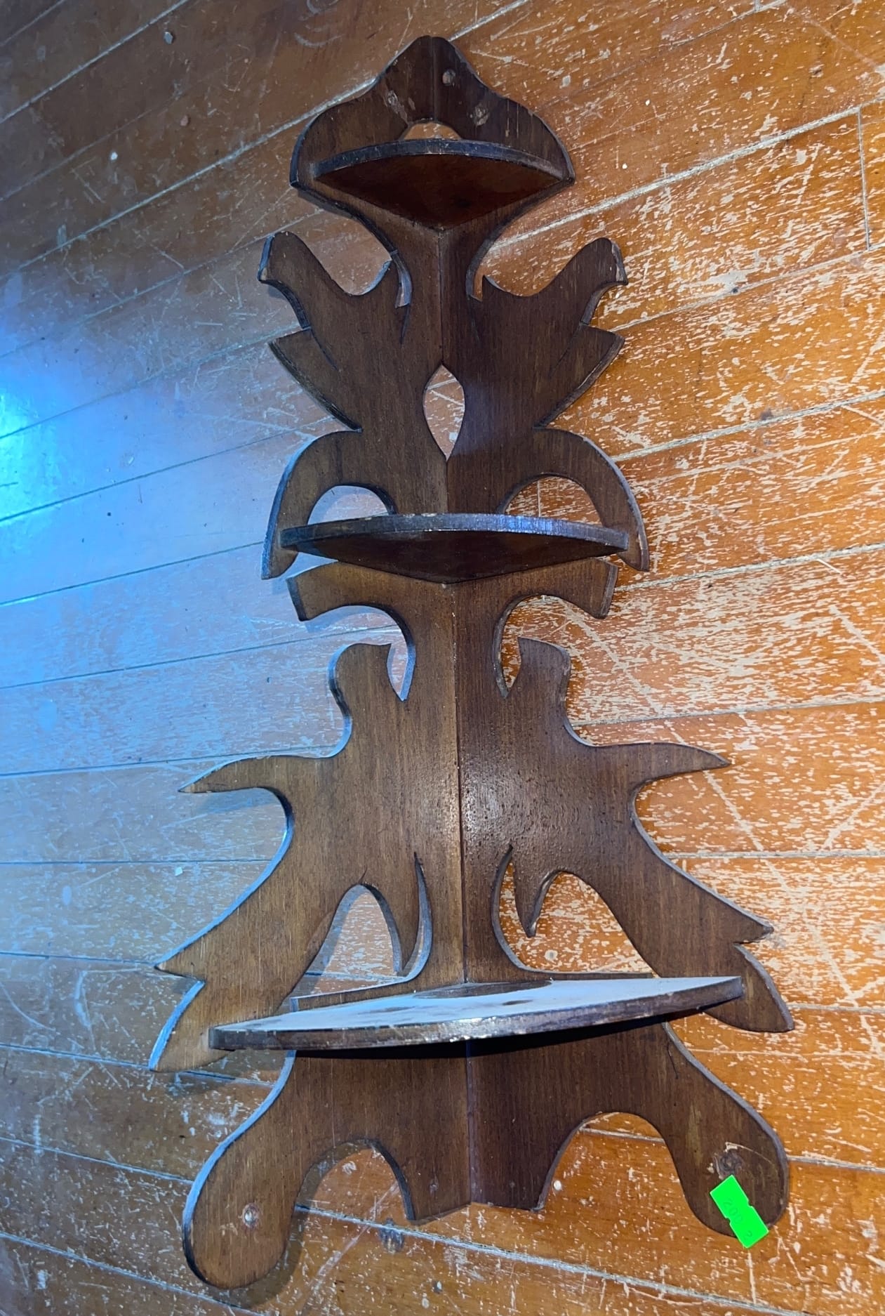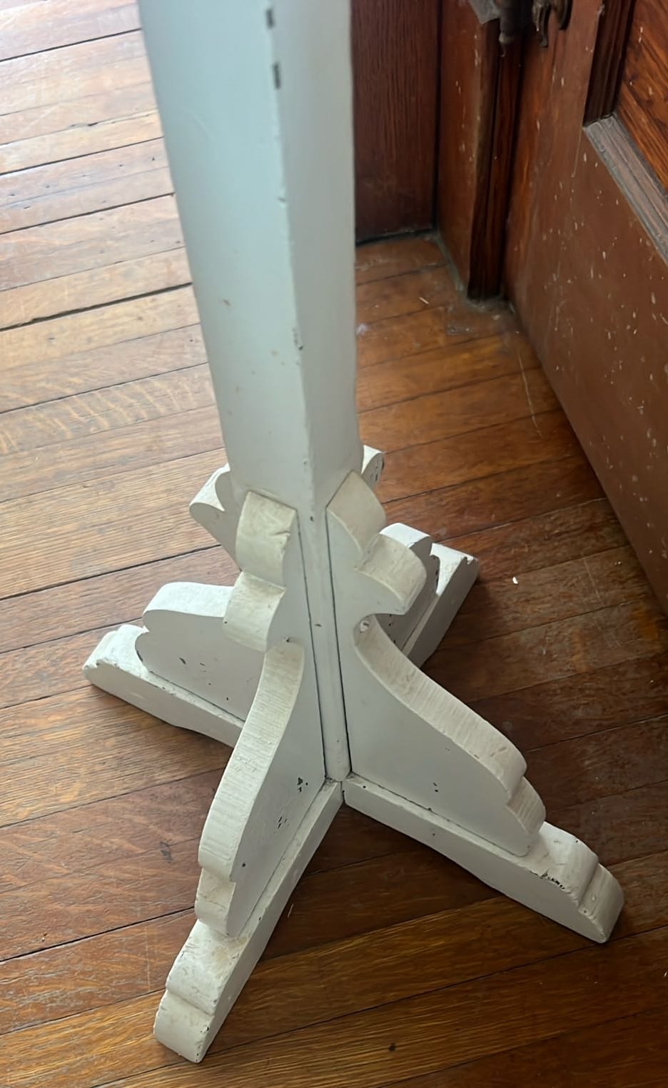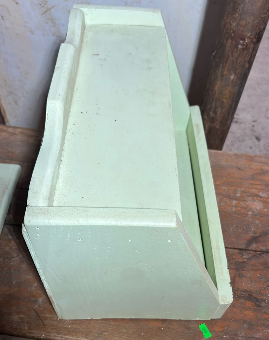 27 Painted wood shelf with heart cut outs 9.25”x 17.5”x 49”