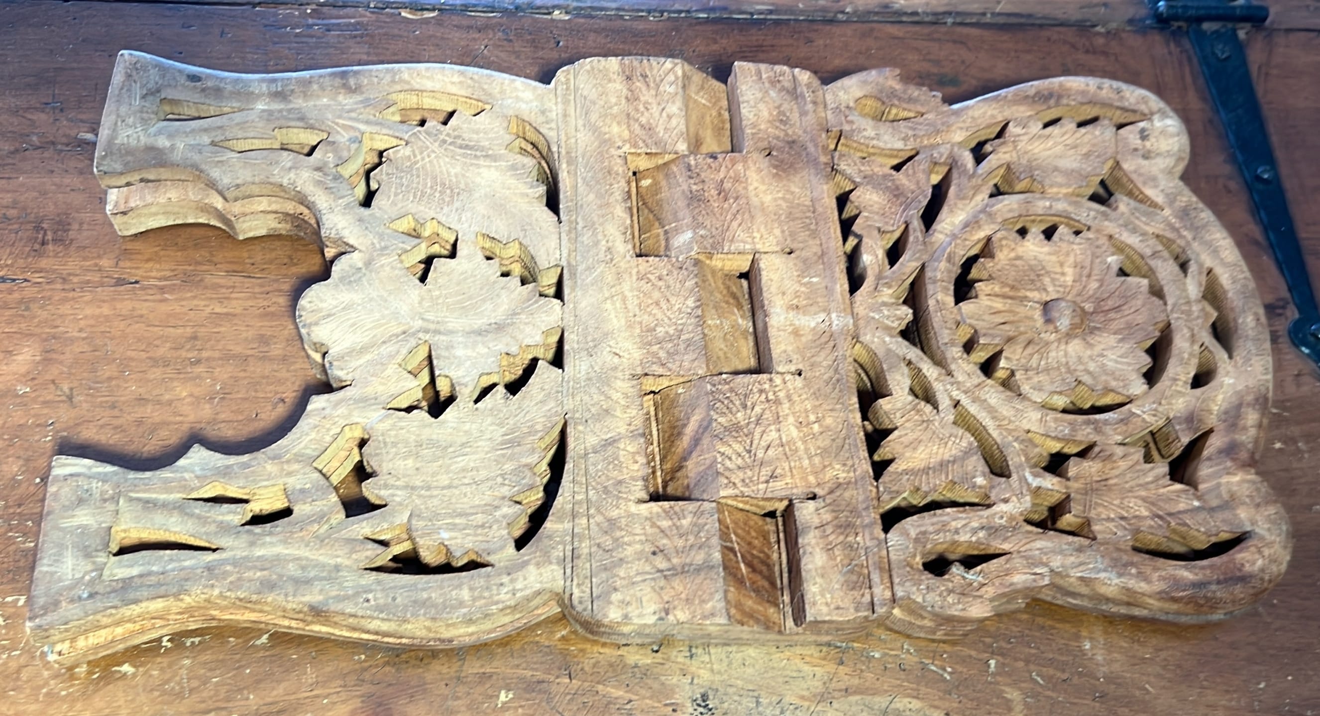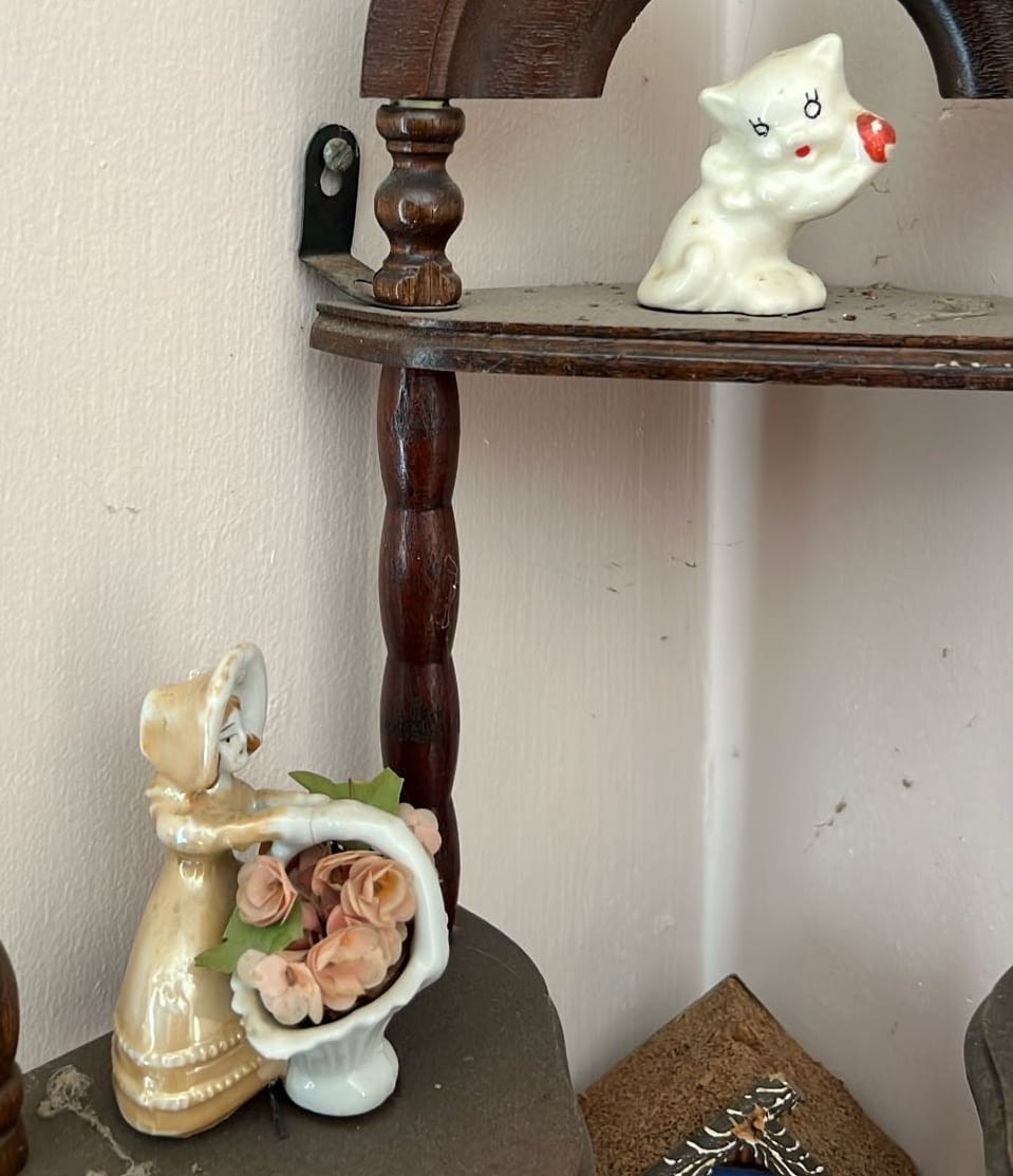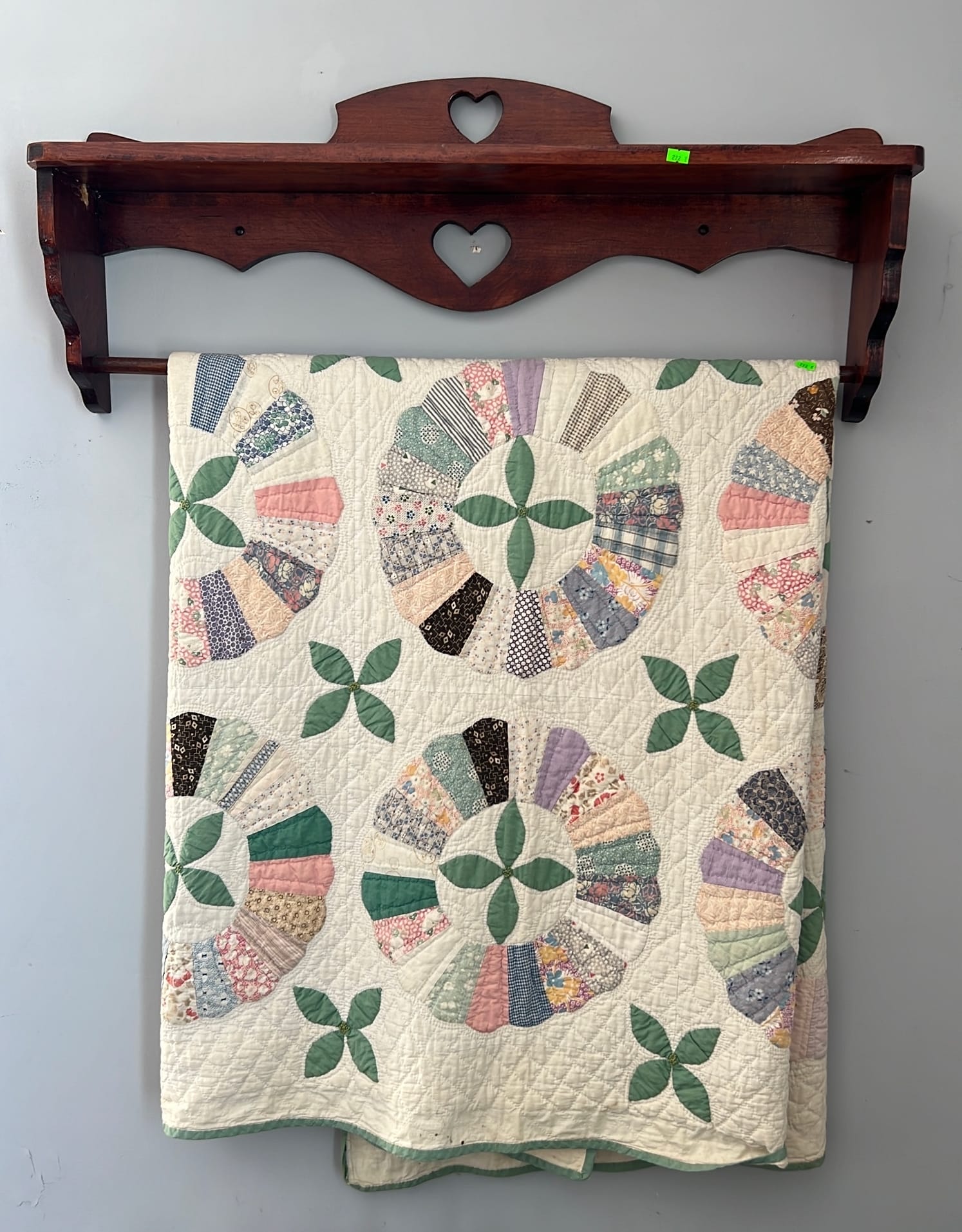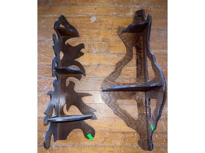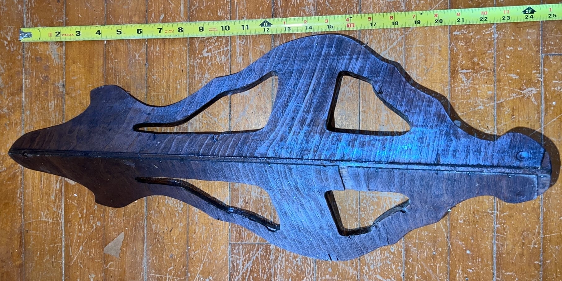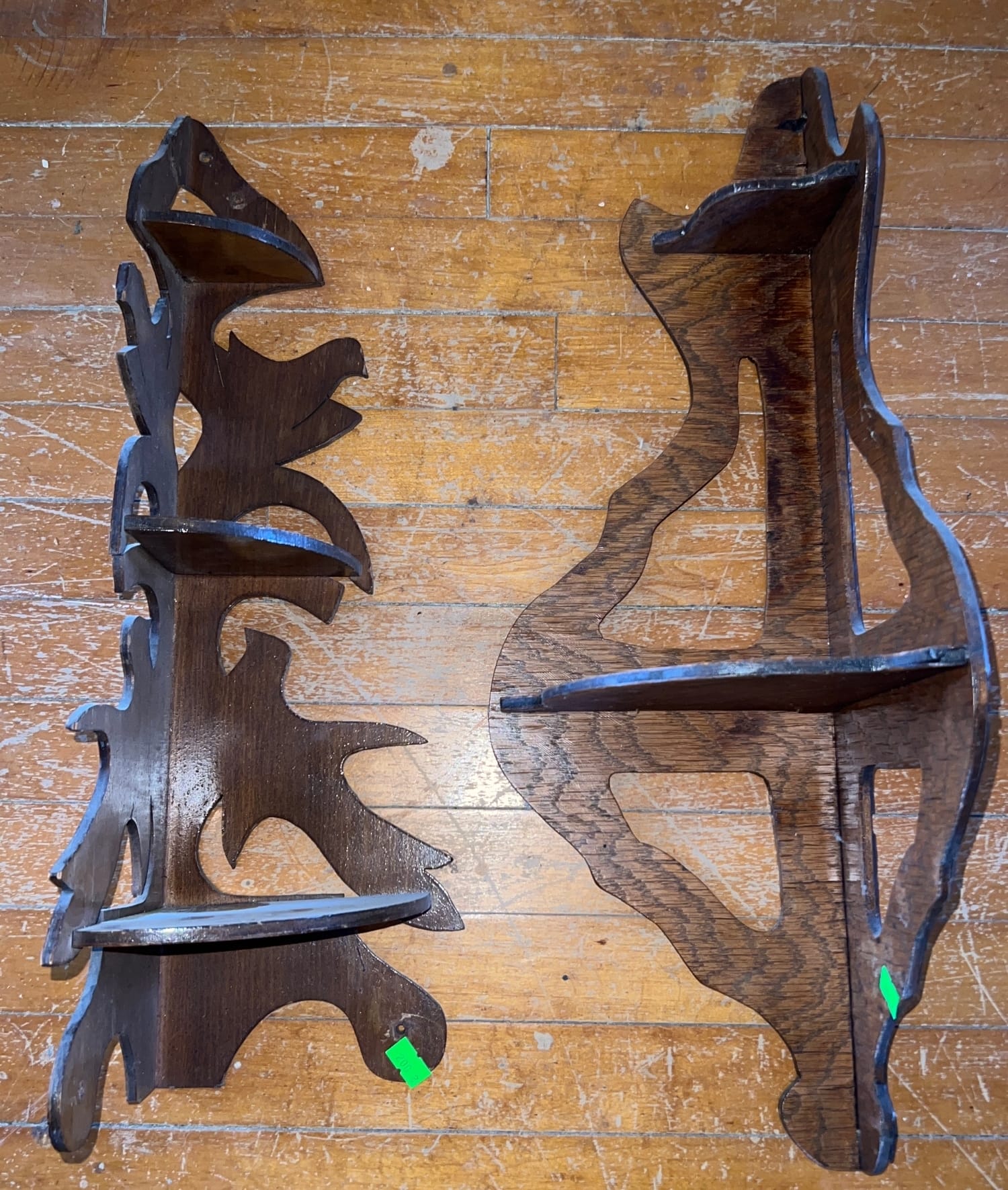 27 Painted wood shelf with heart cut outs 9.25”x 17.5”x 49”