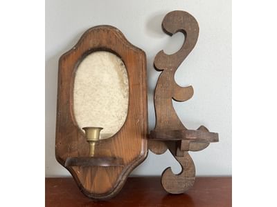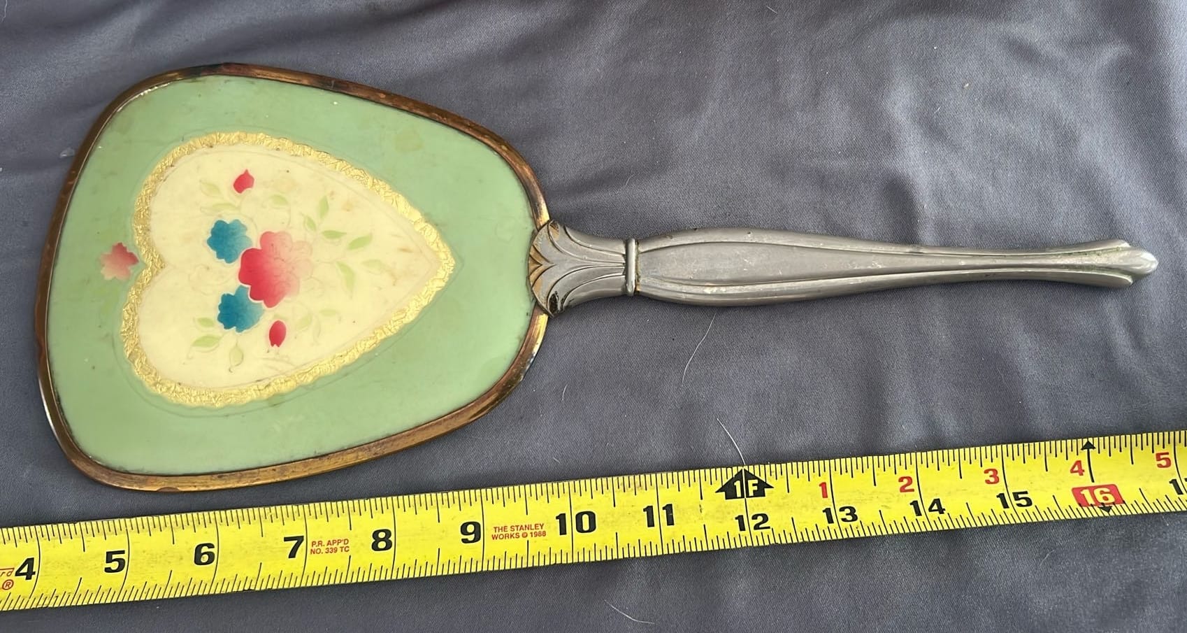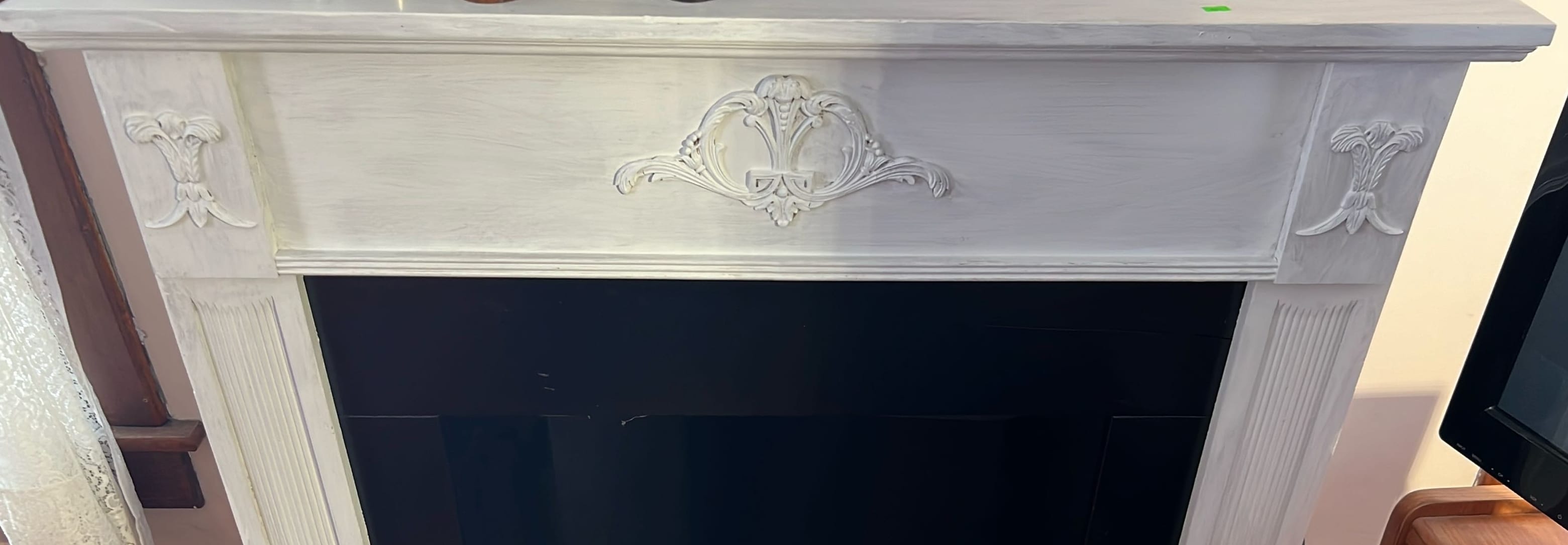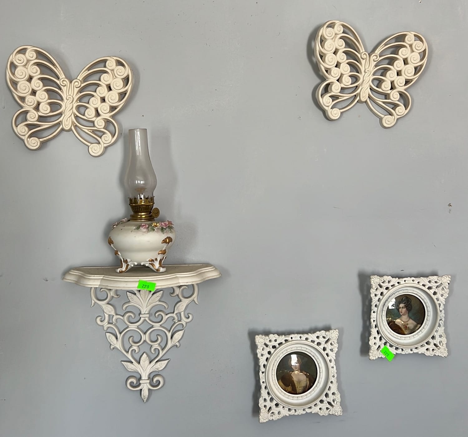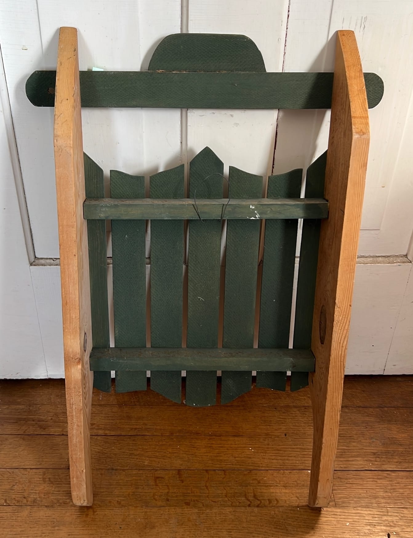 27 Painted wood shelf with heart cut outs 9.25”x 17.5”x 49”