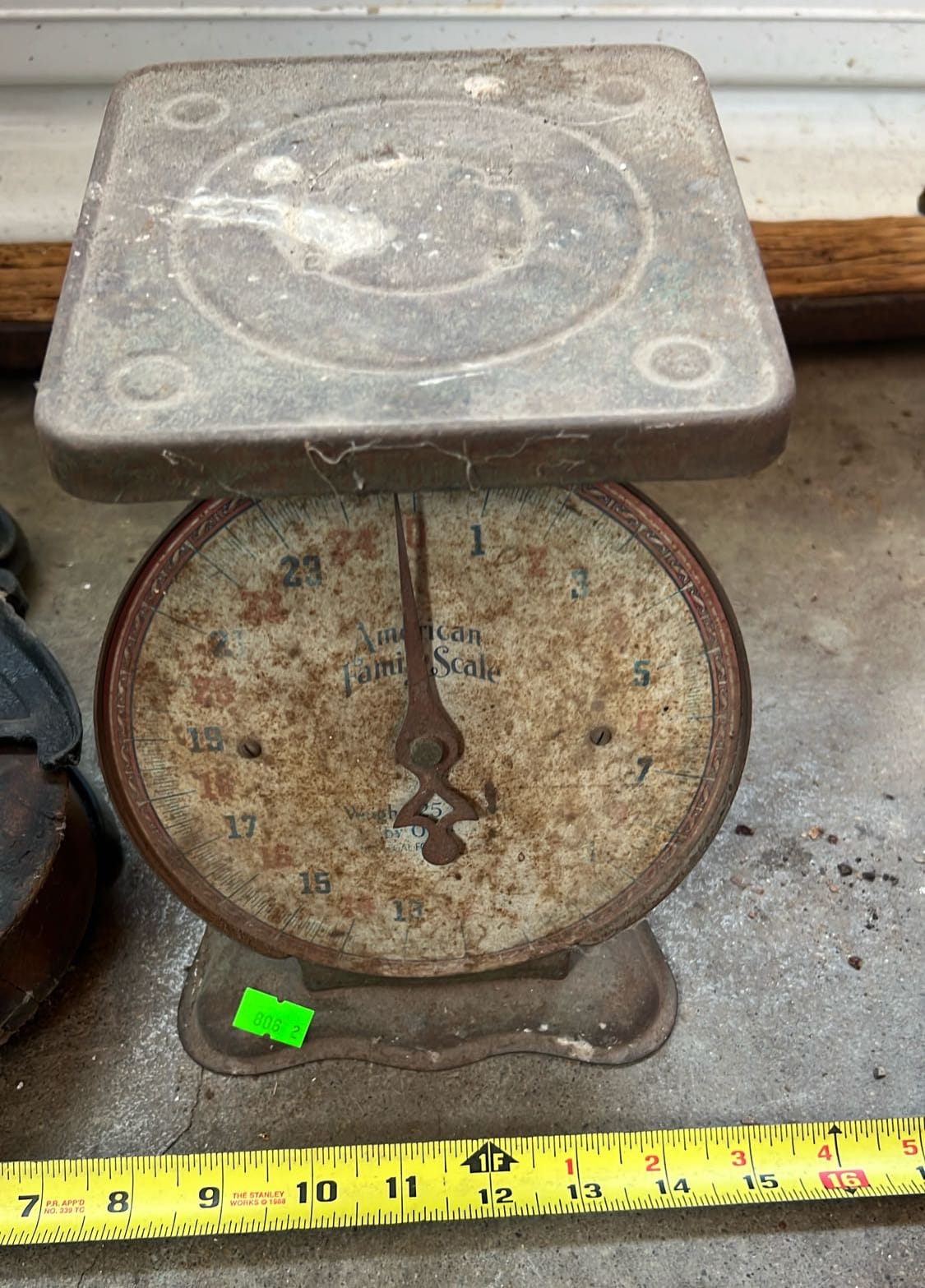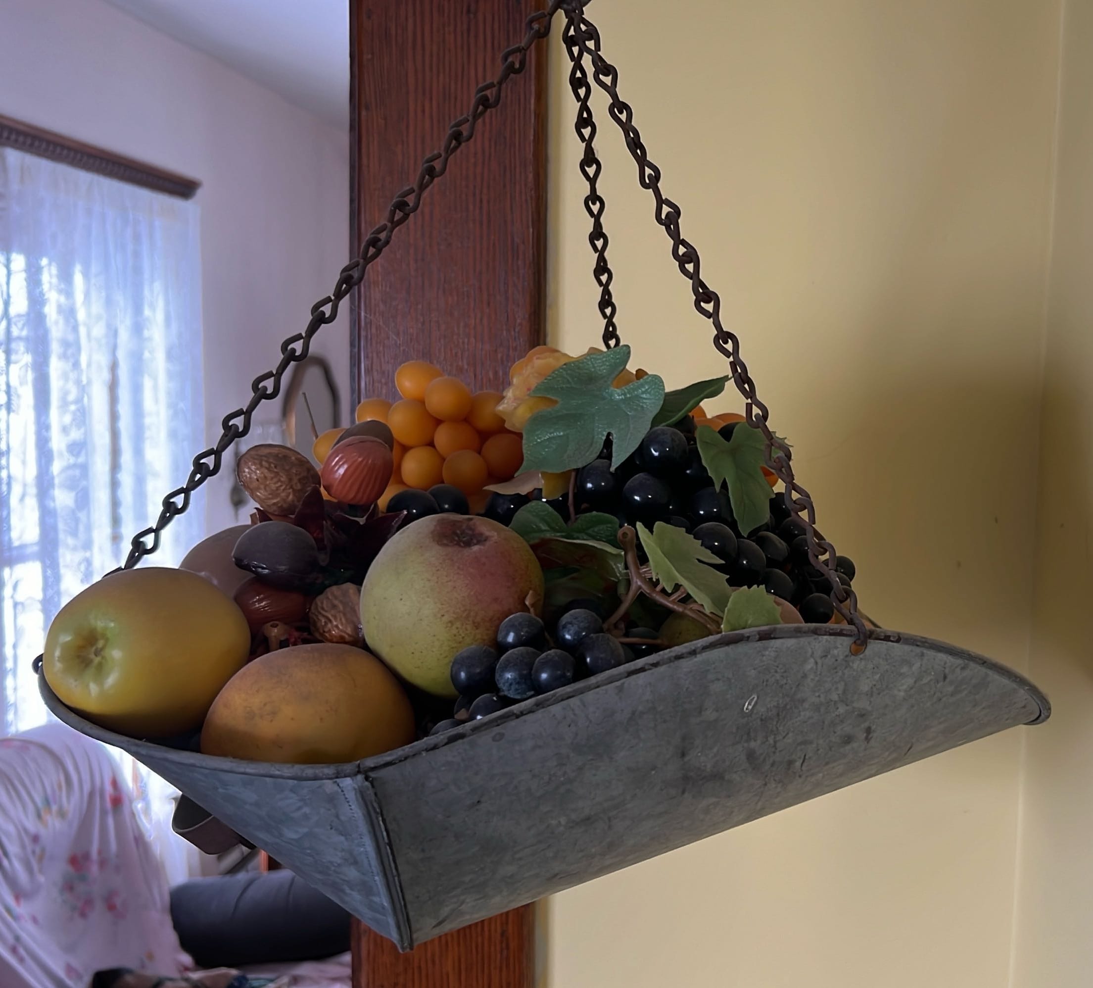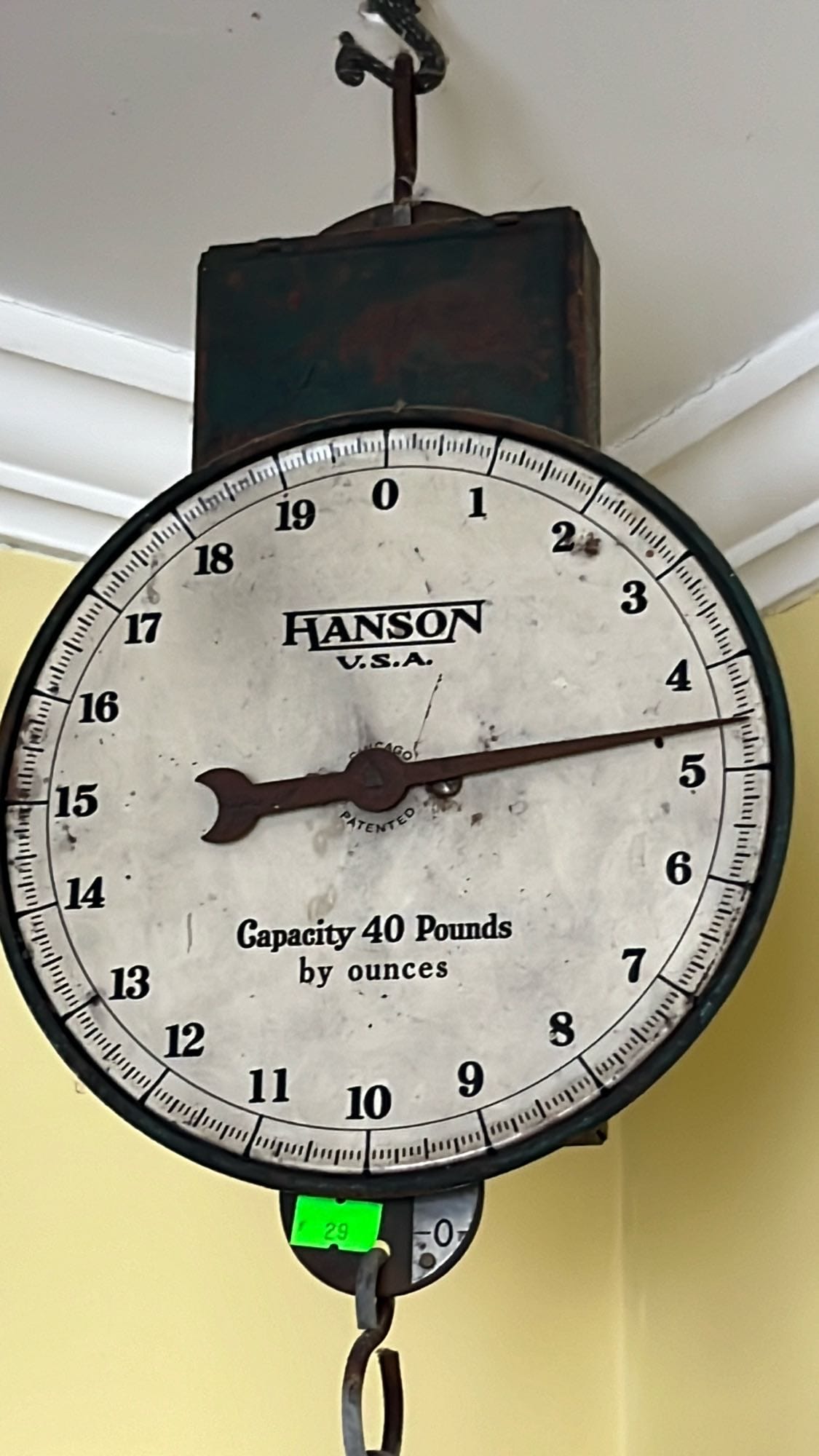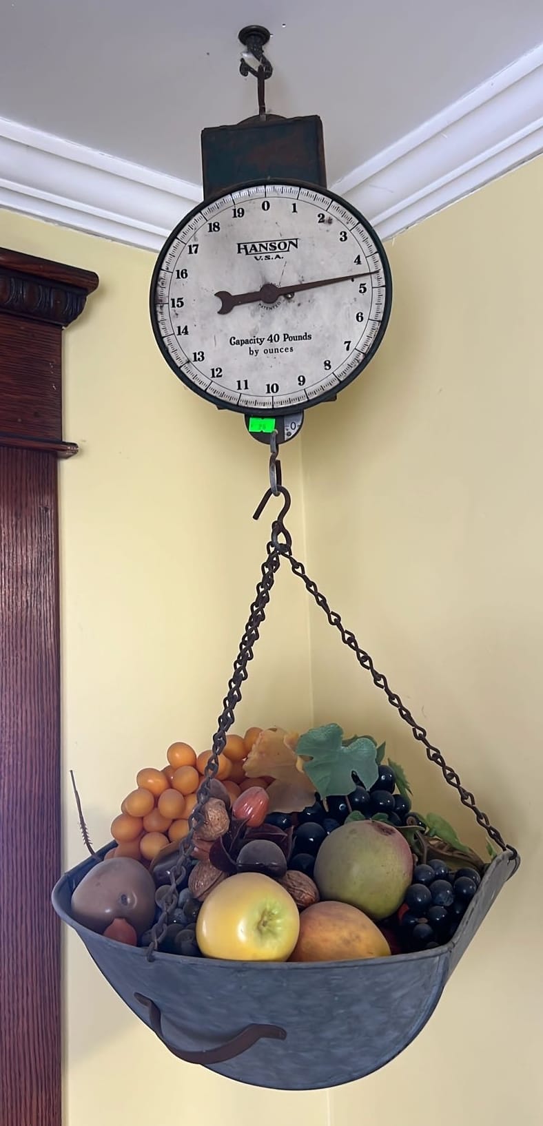 29 Hanson U.S.A 40 pound Hanging Scale with Artificial Fruit 34”