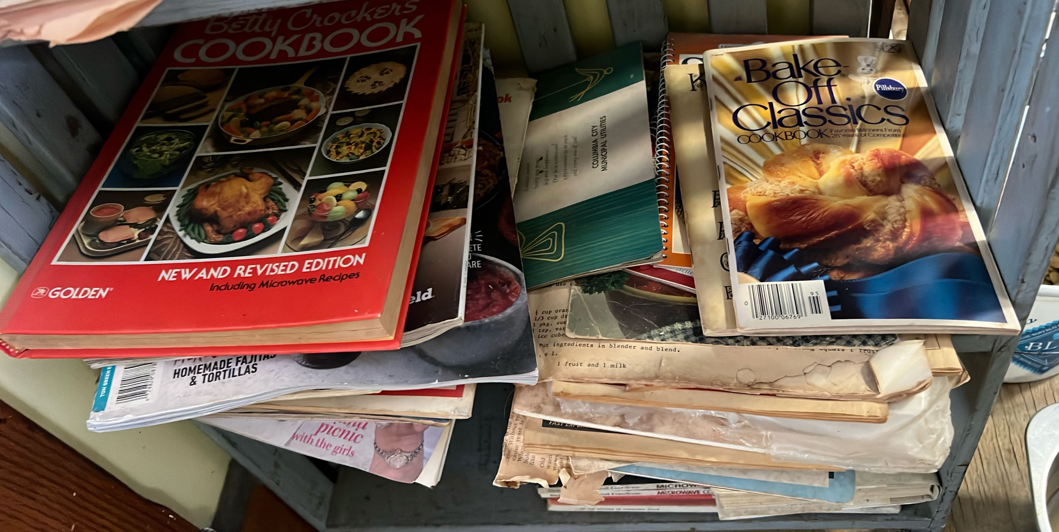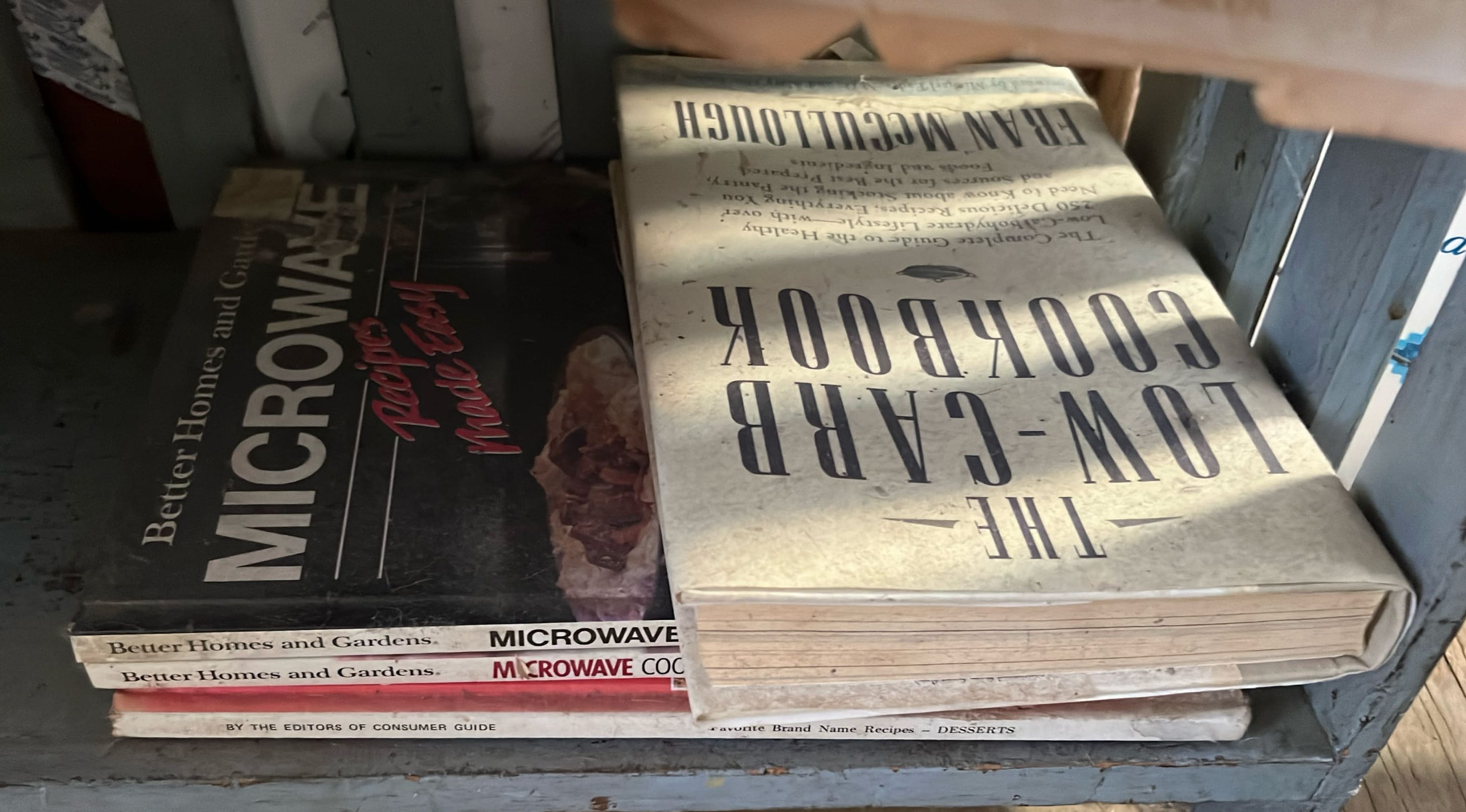 30 Primitive Book Shelf with recipe book contents 21”x36”10.25”