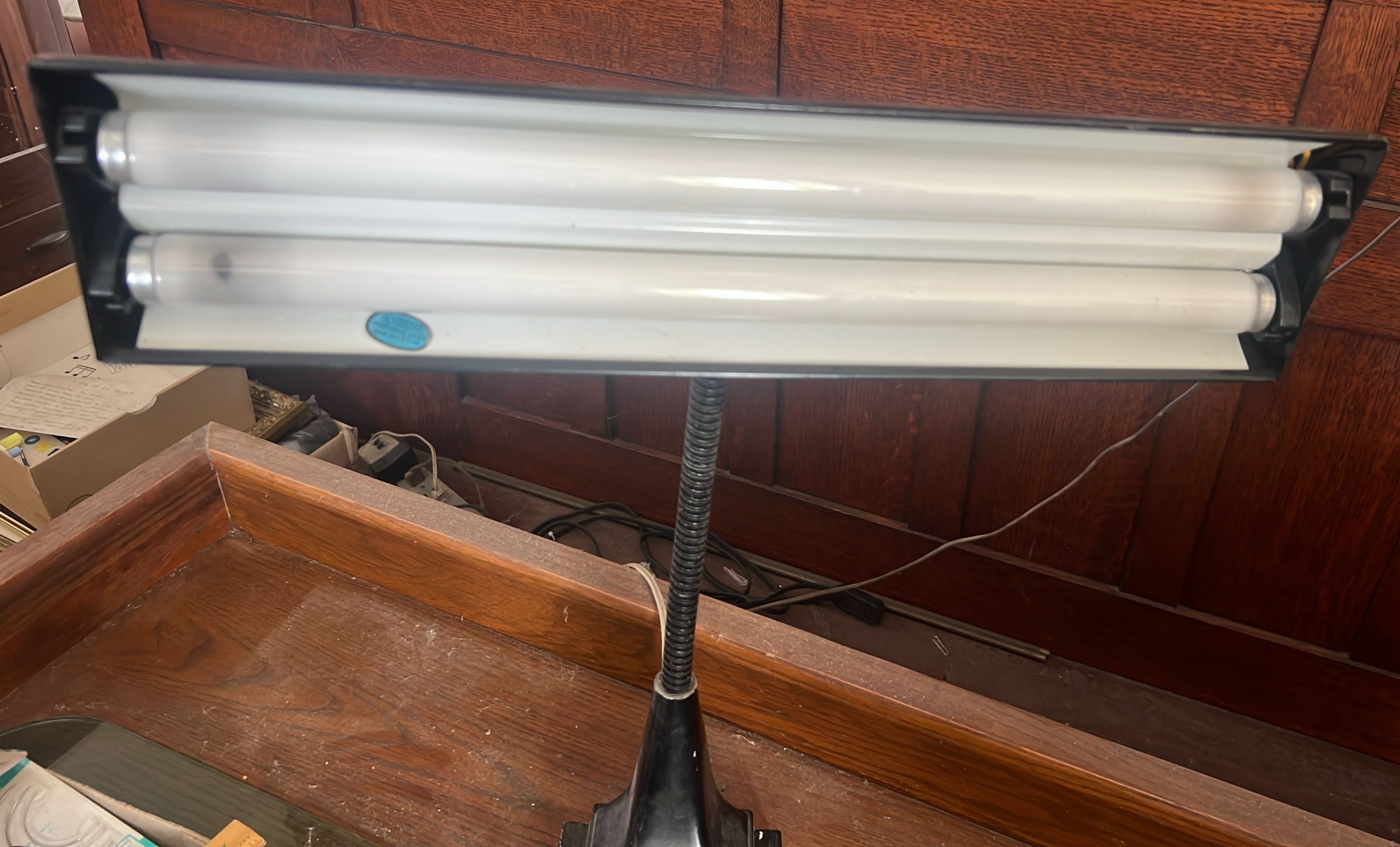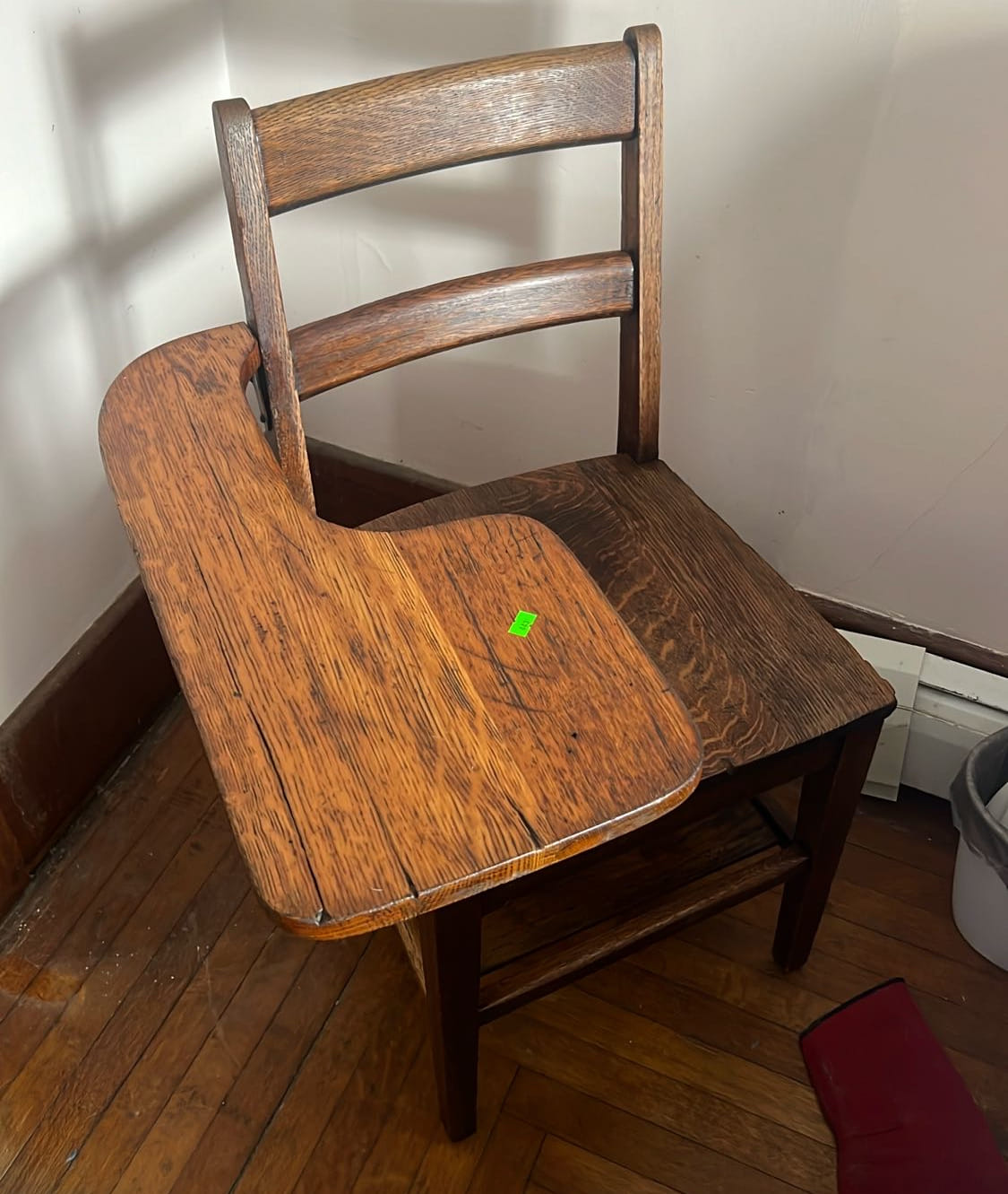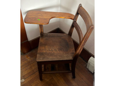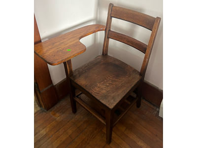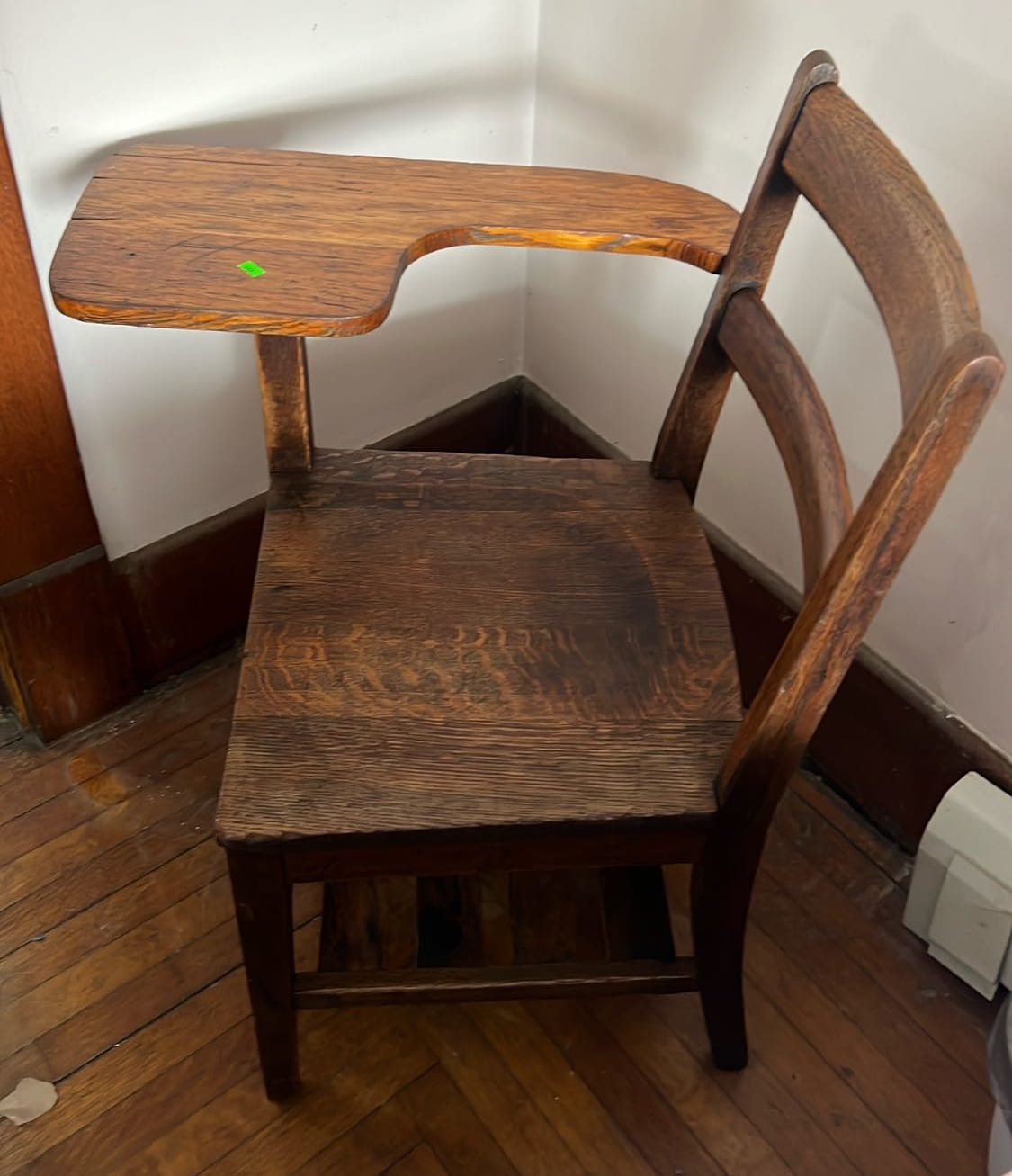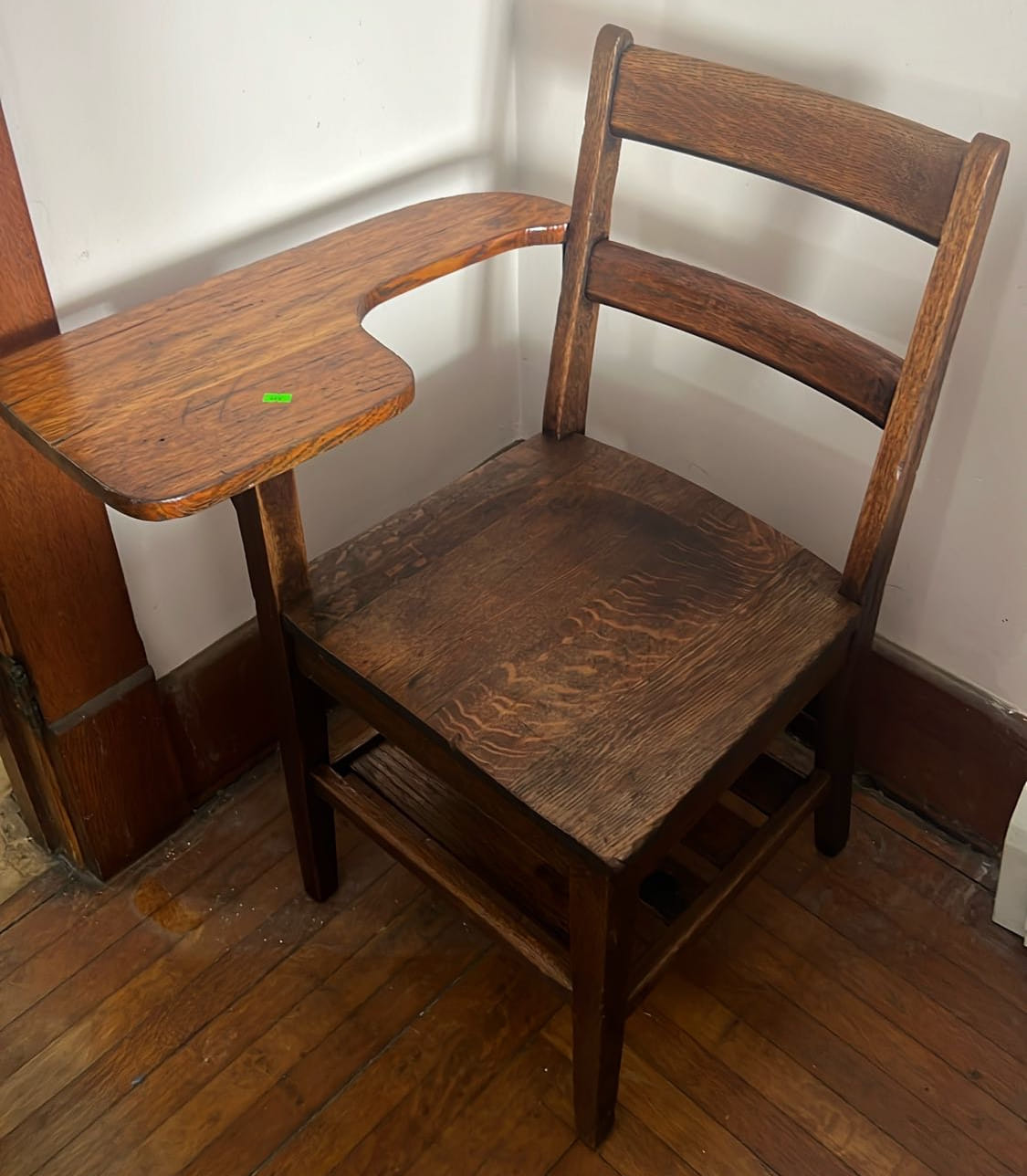 31 Oak Office Desk 41.25” x33.5”x27.25”• Oak Chair 16.75”W Seat ht. 18” • & Protective Glass 35.5”x18.5”