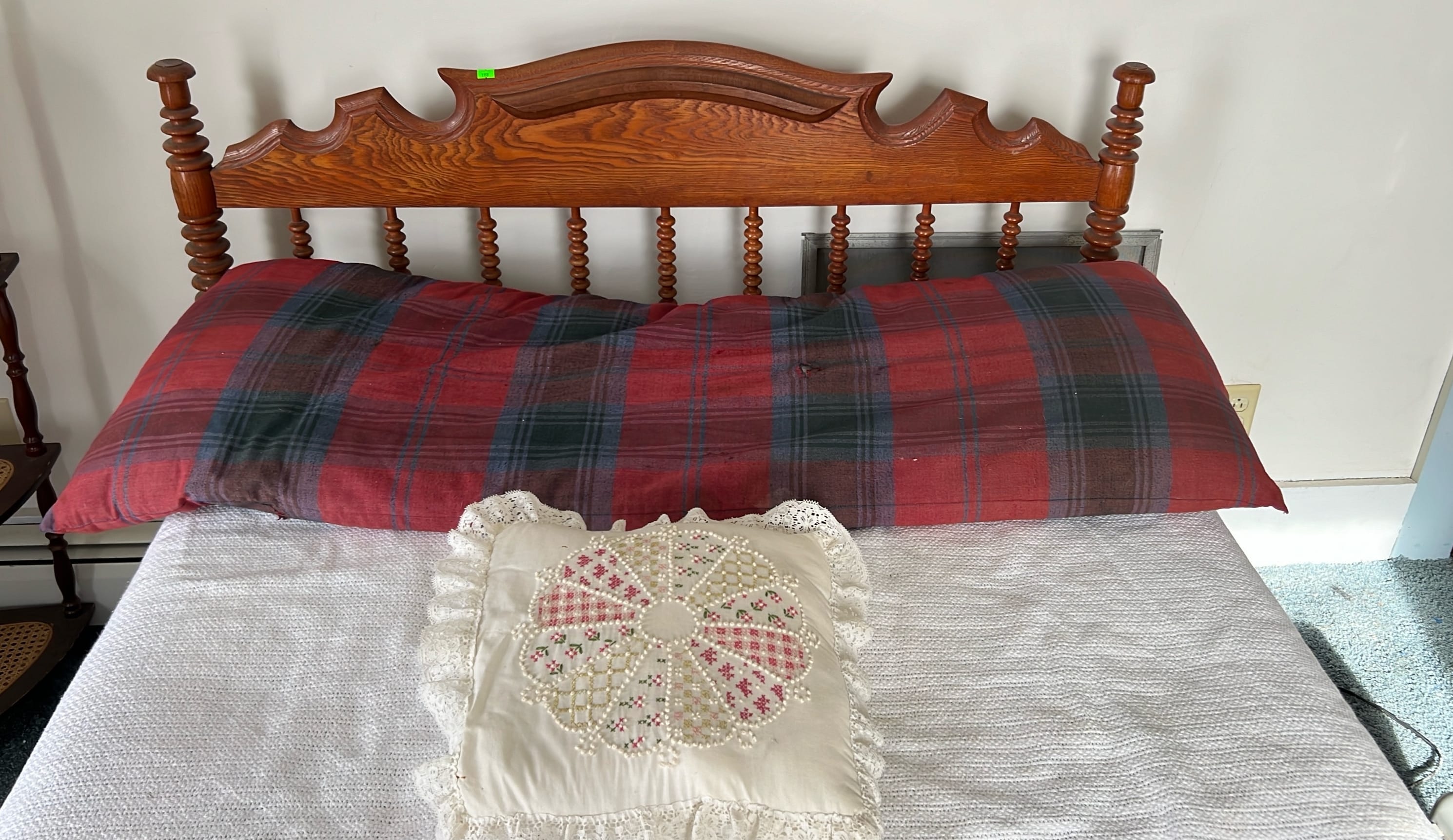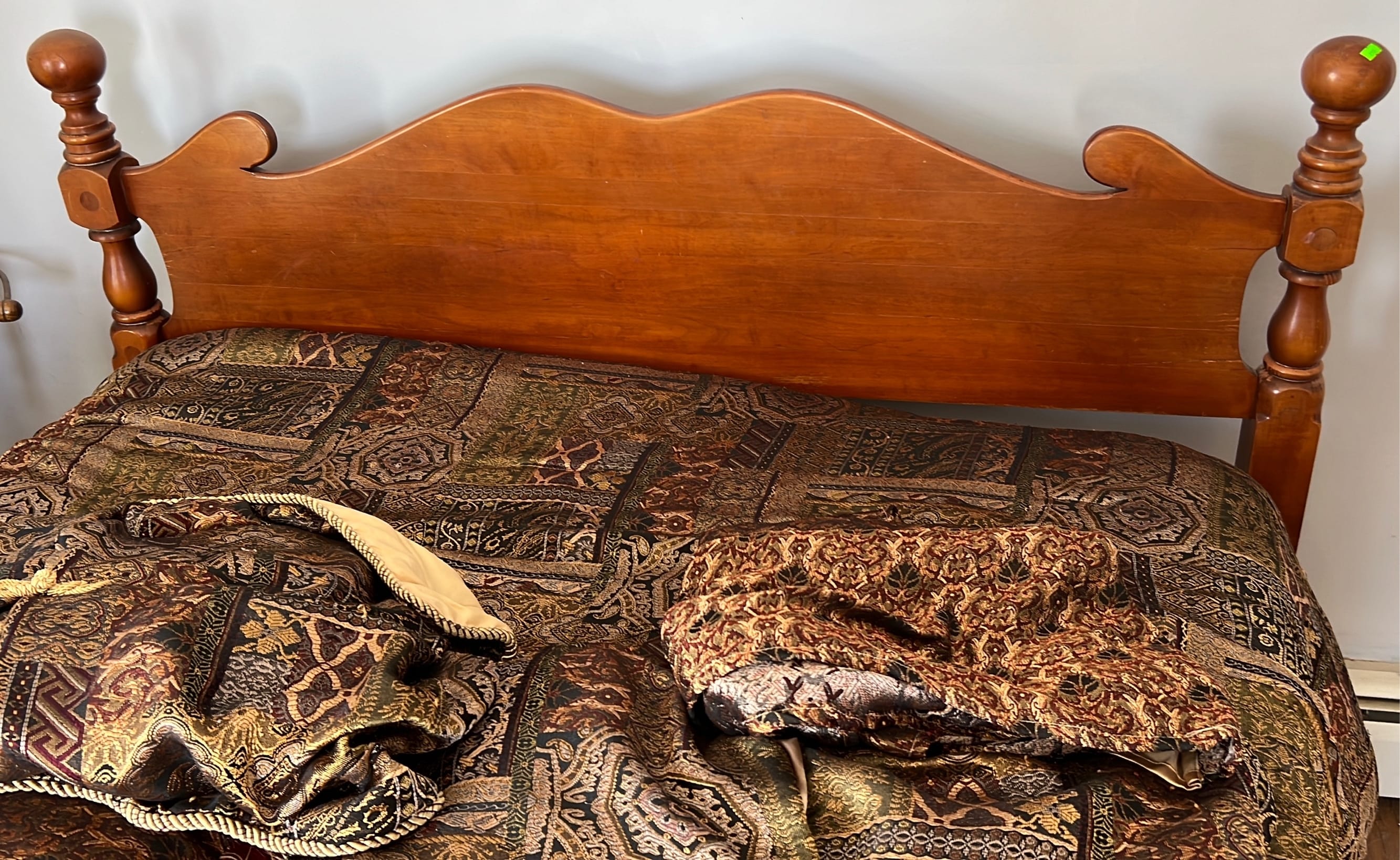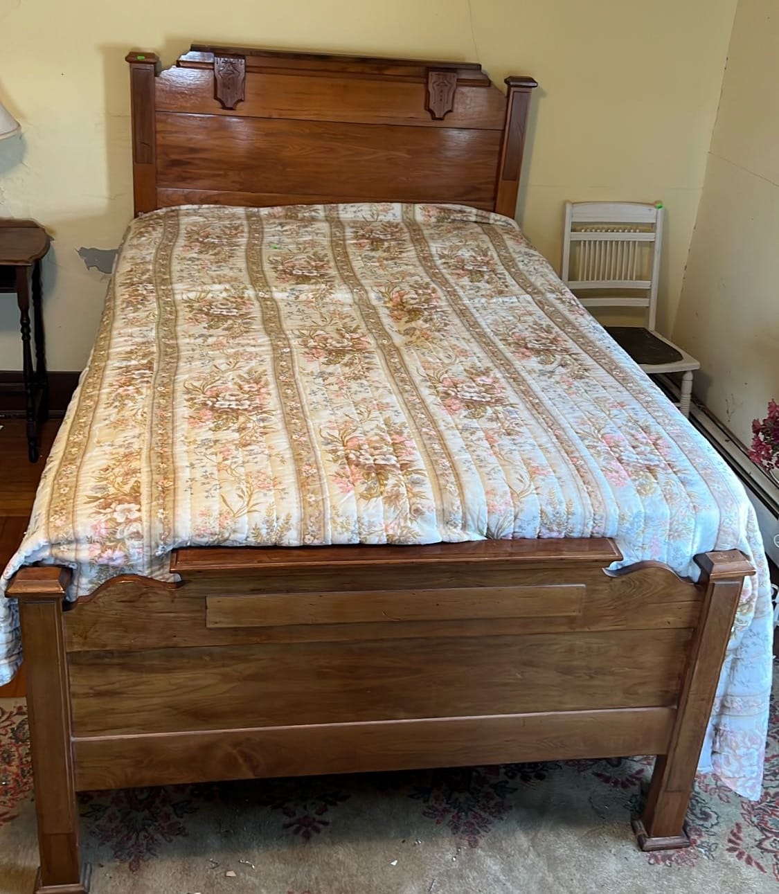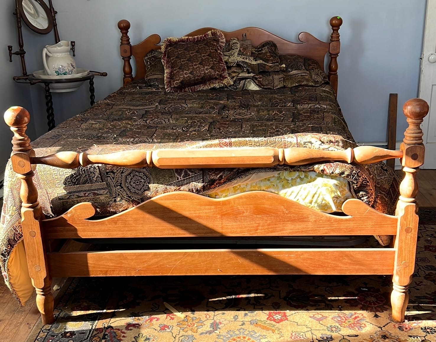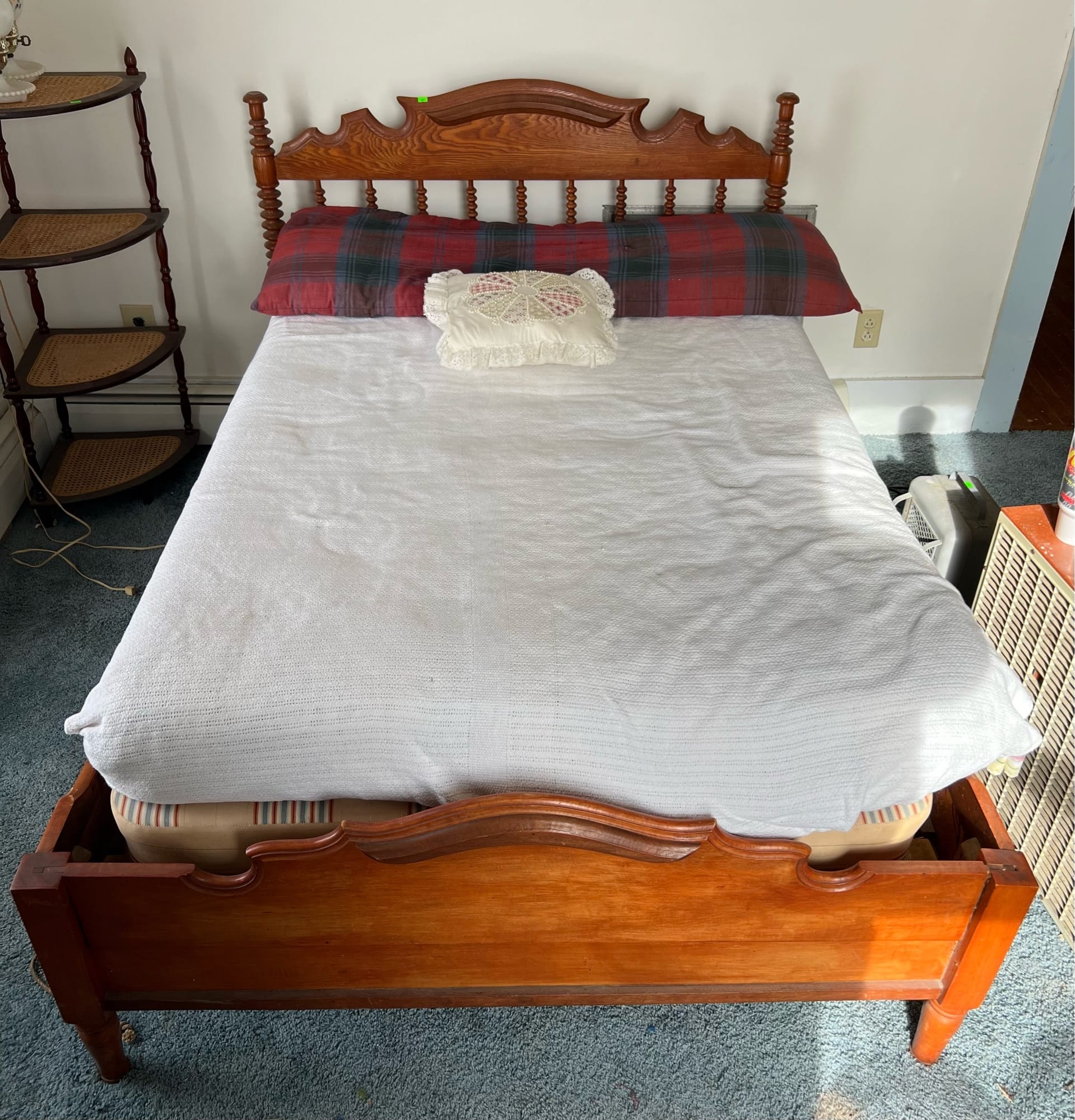 32 Vintage Wood Full Bed with Head & Foot Boards with Box Springs • Mattress • Rails & bedding & Pillows