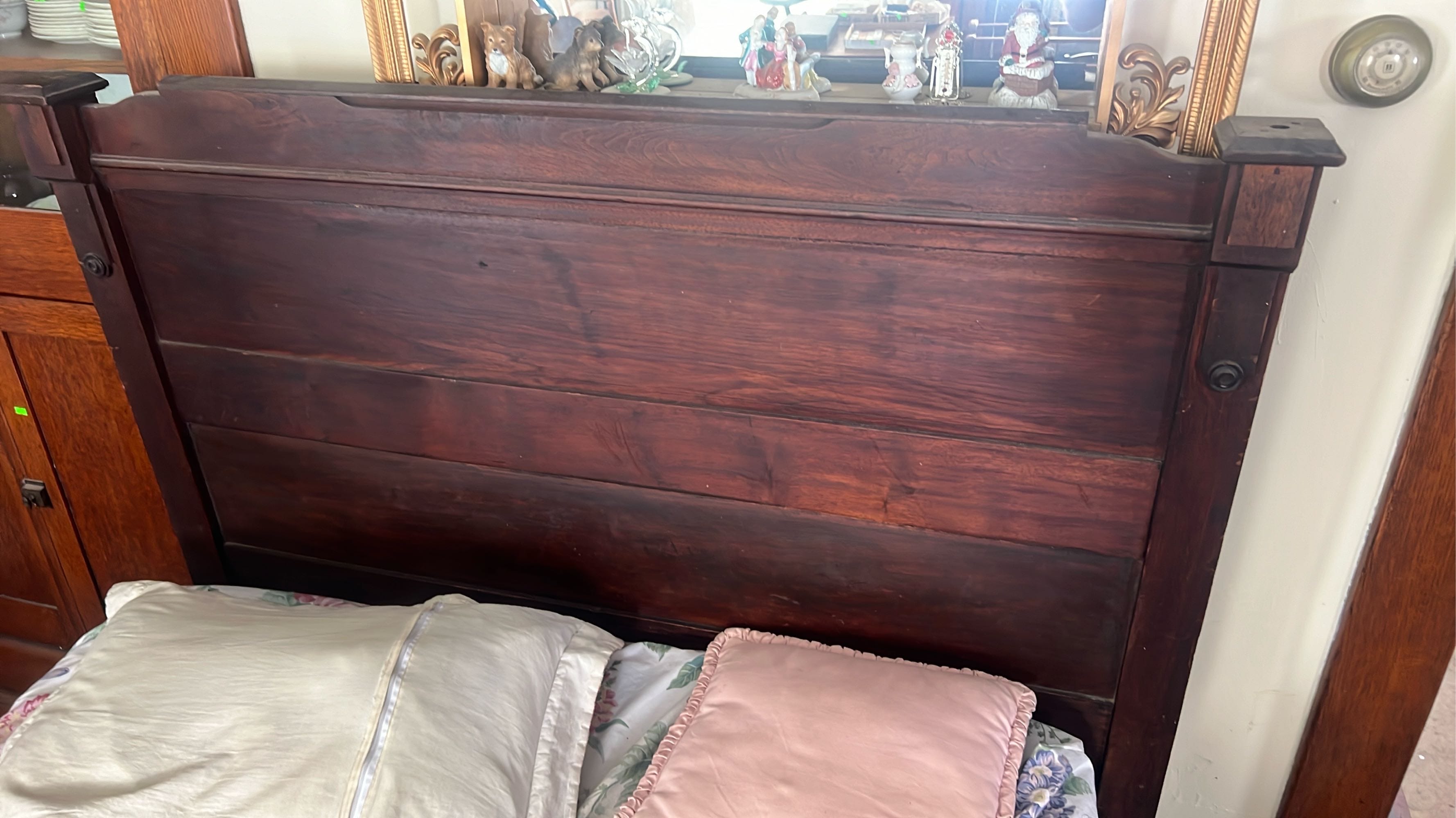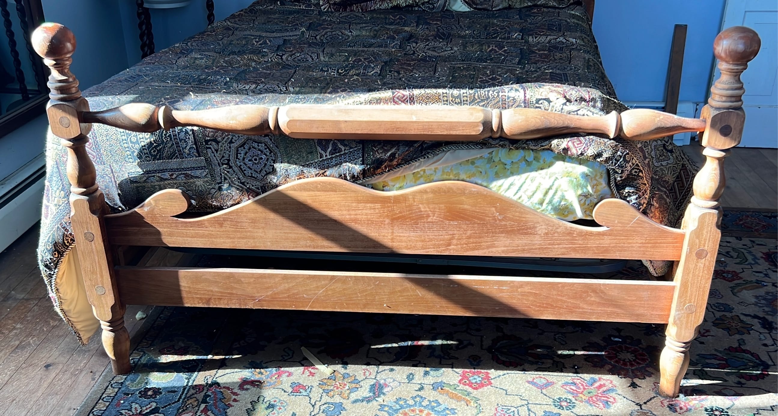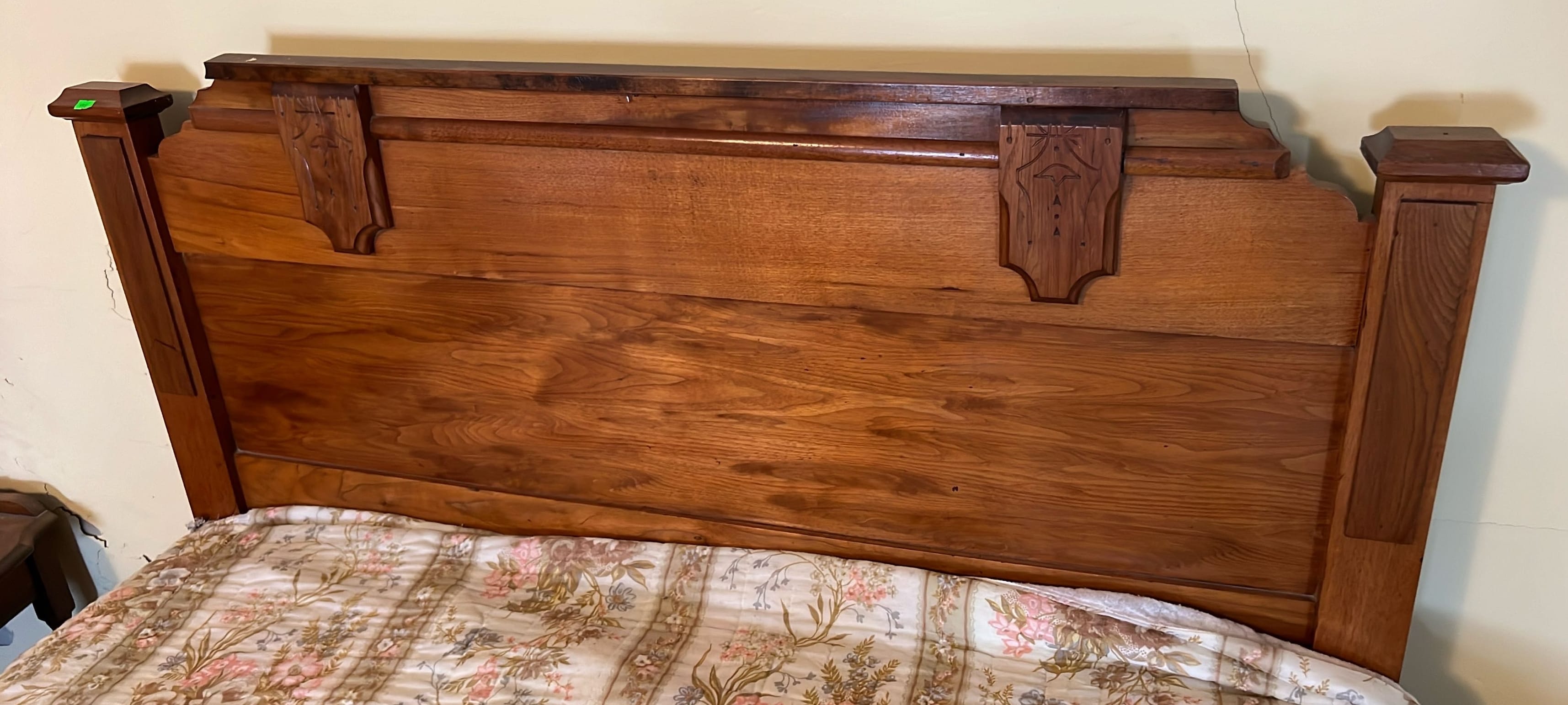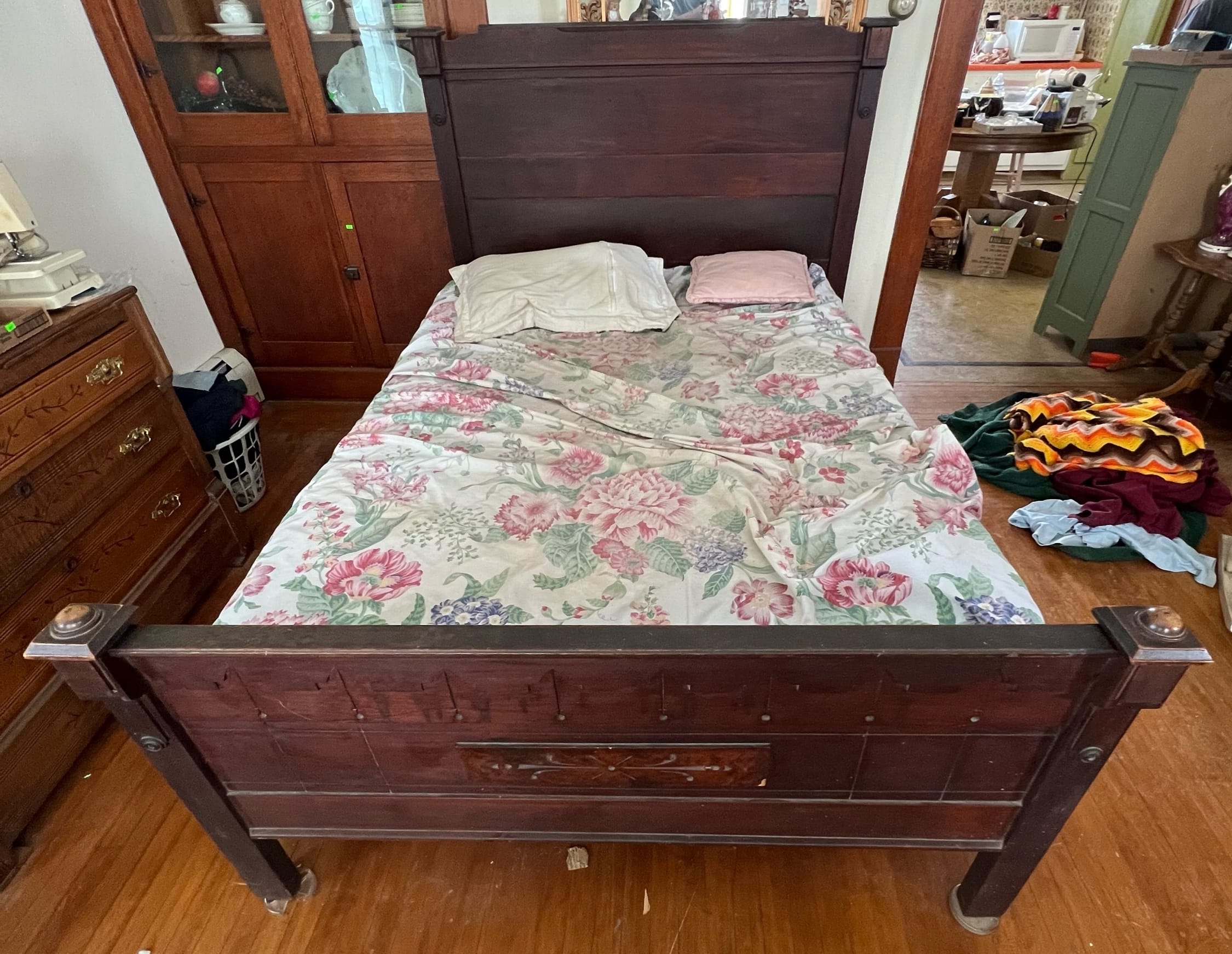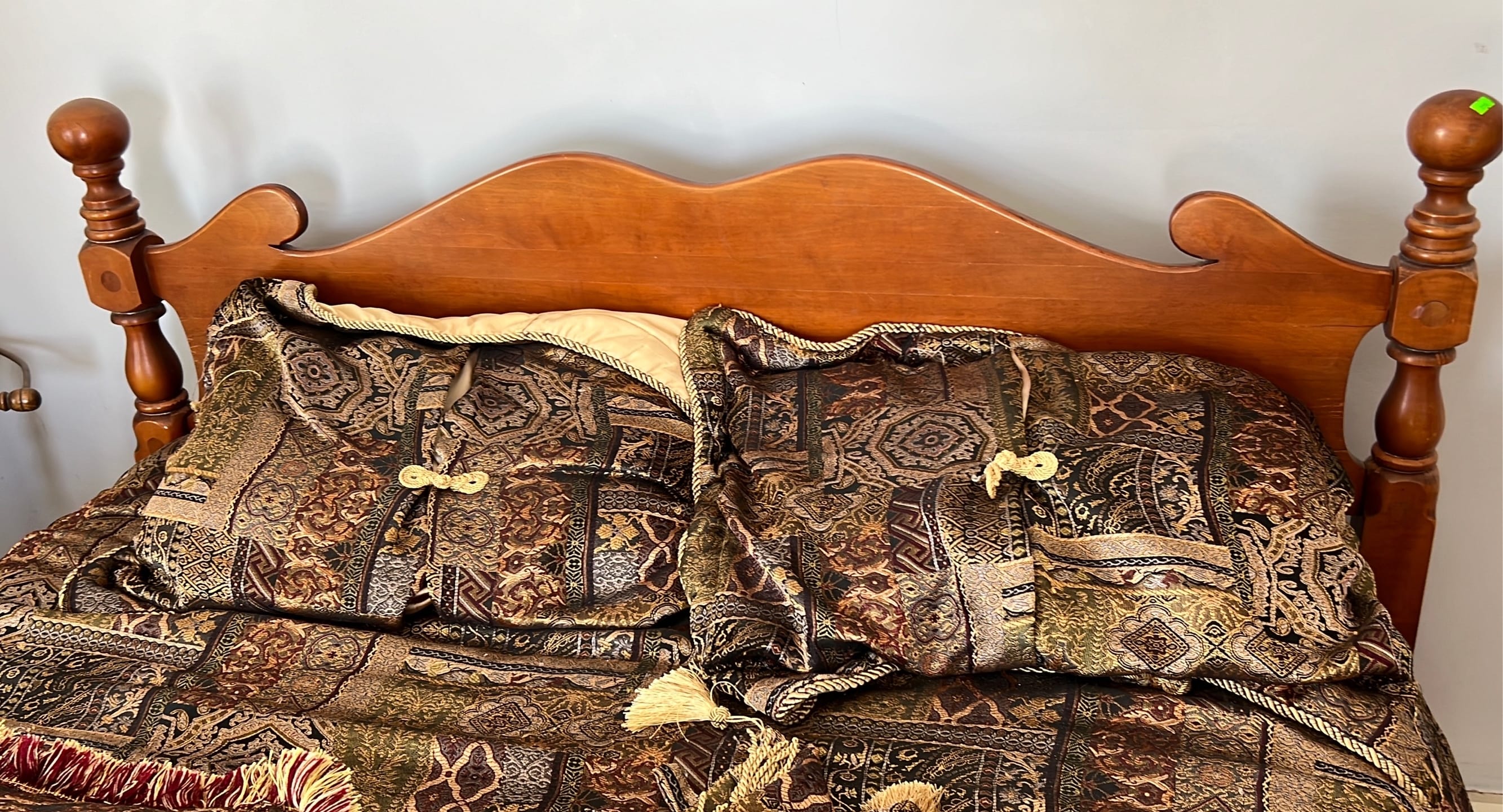 32 Vintage Wood Full Bed with Head & Foot Boards with Box Springs • Mattress • Rails & bedding & Pillows