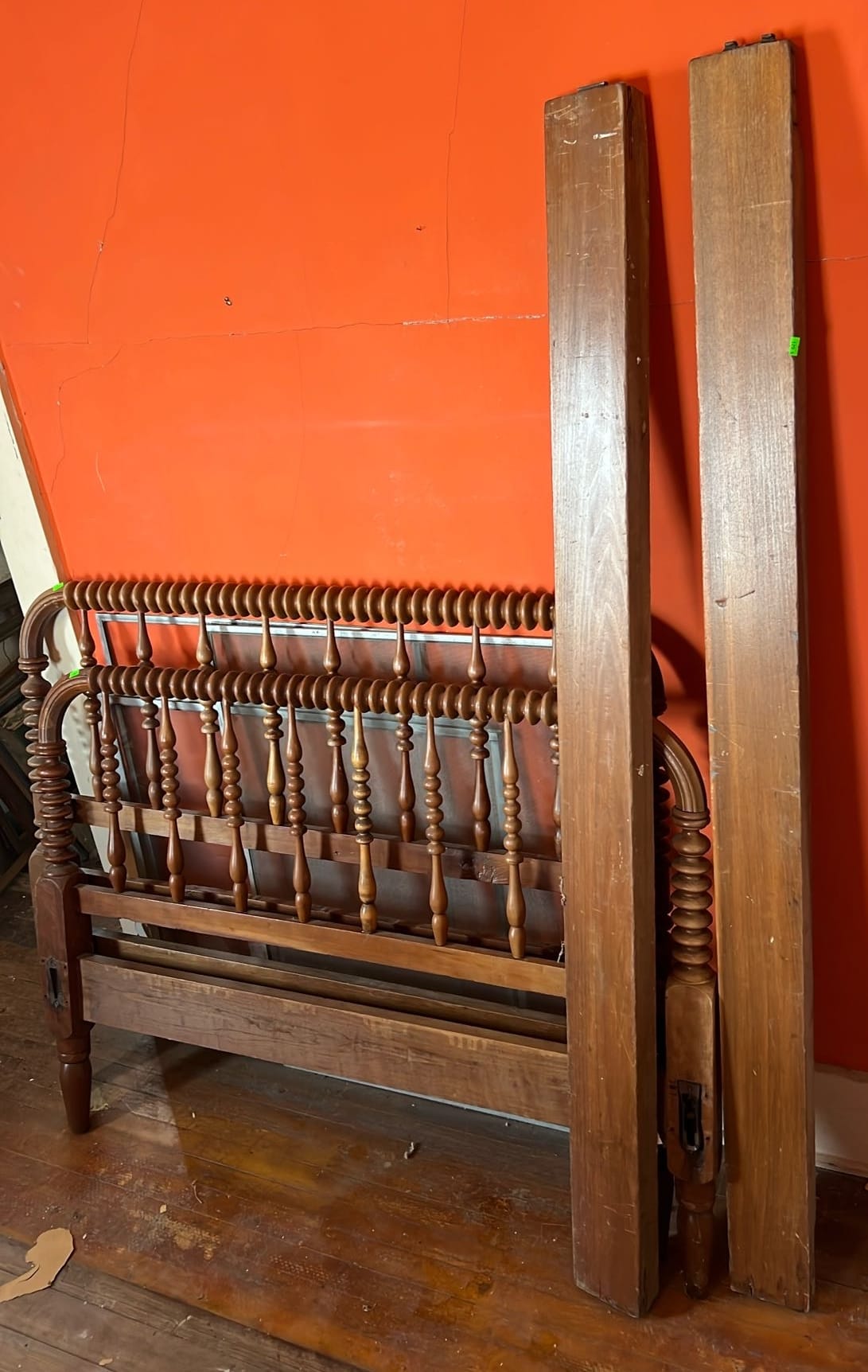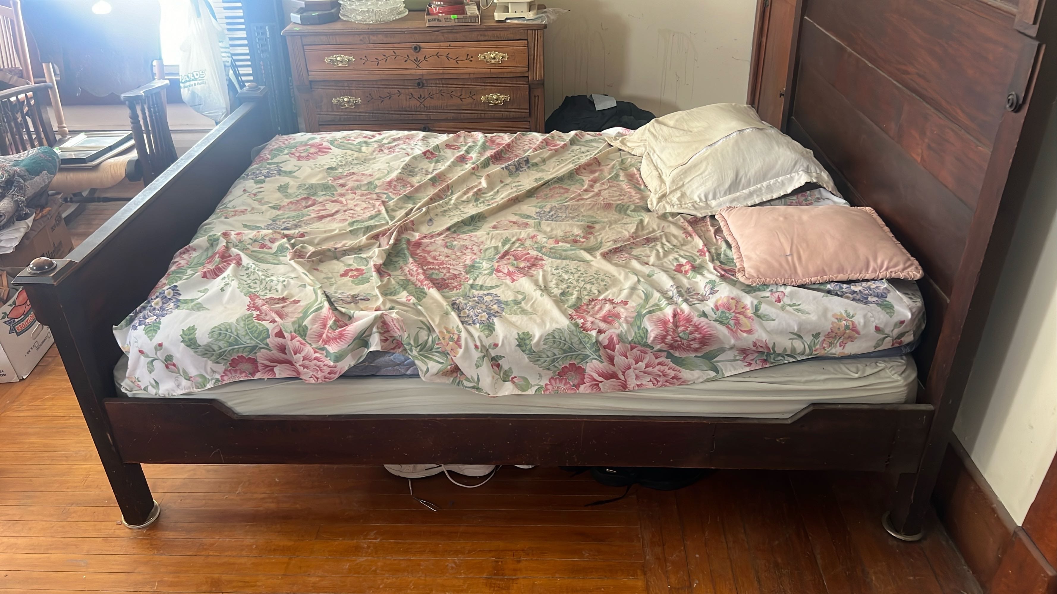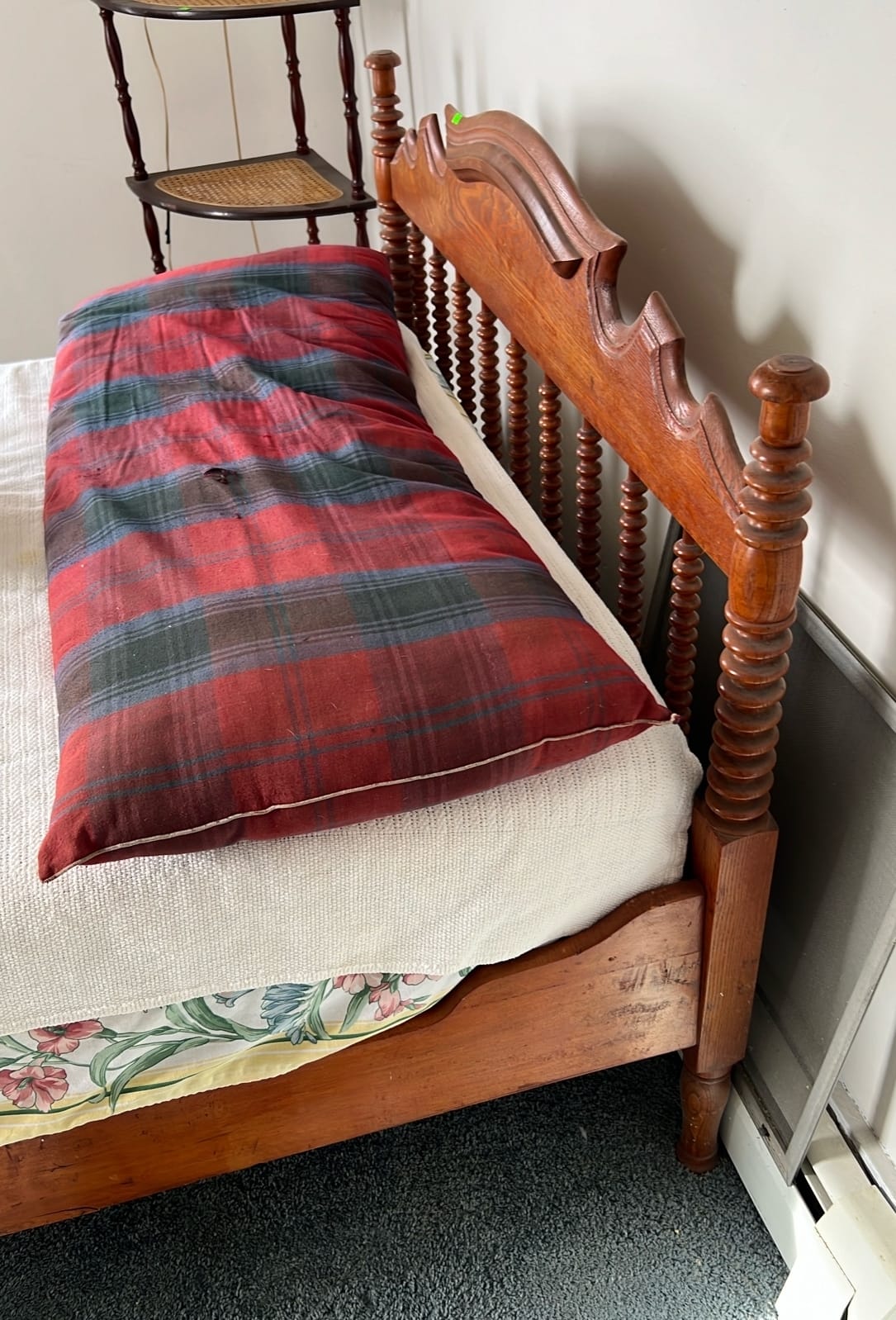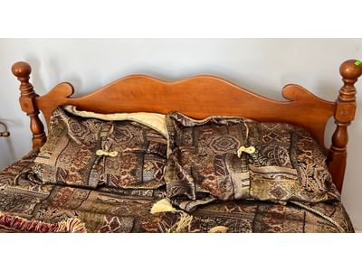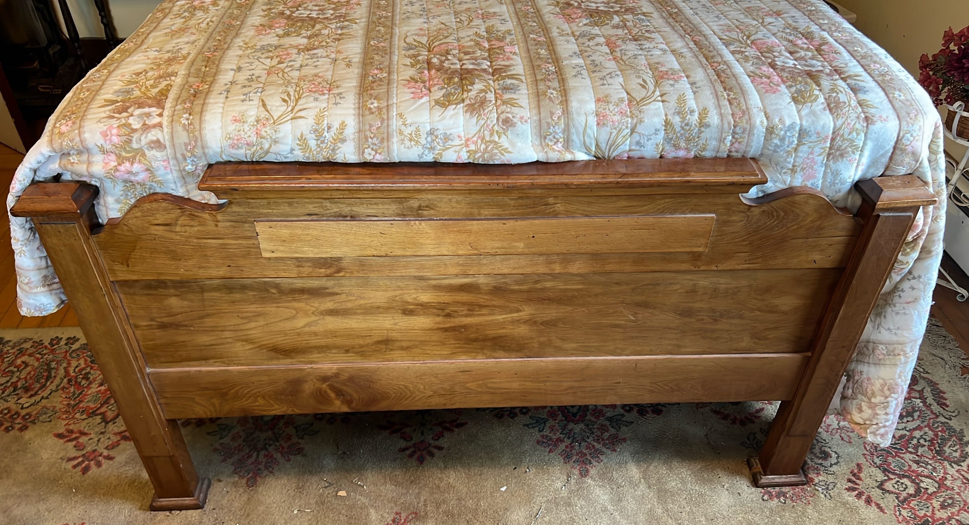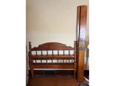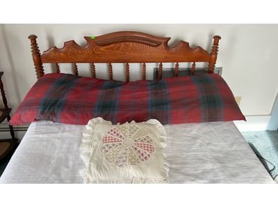 32 Vintage Wood Full Bed with Head & Foot Boards with Box Springs • Mattress • Rails & bedding & Pillows