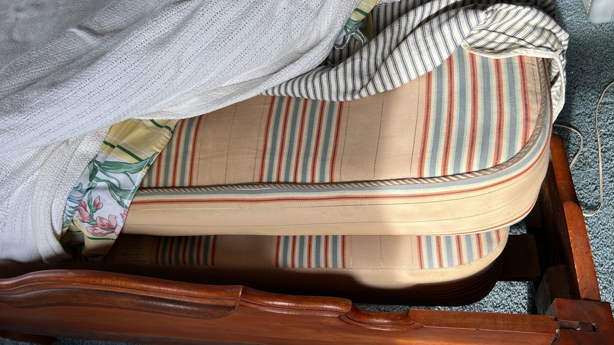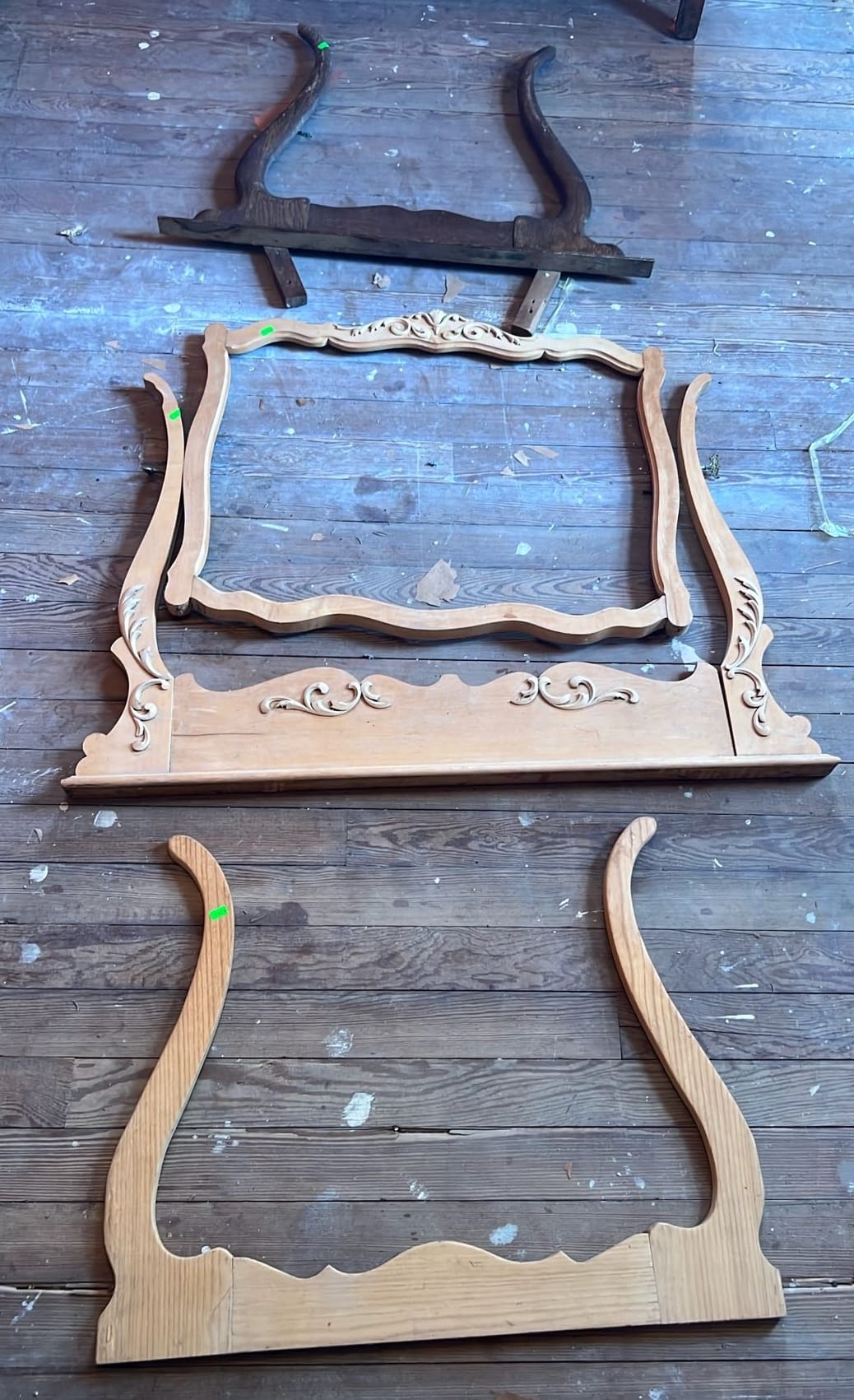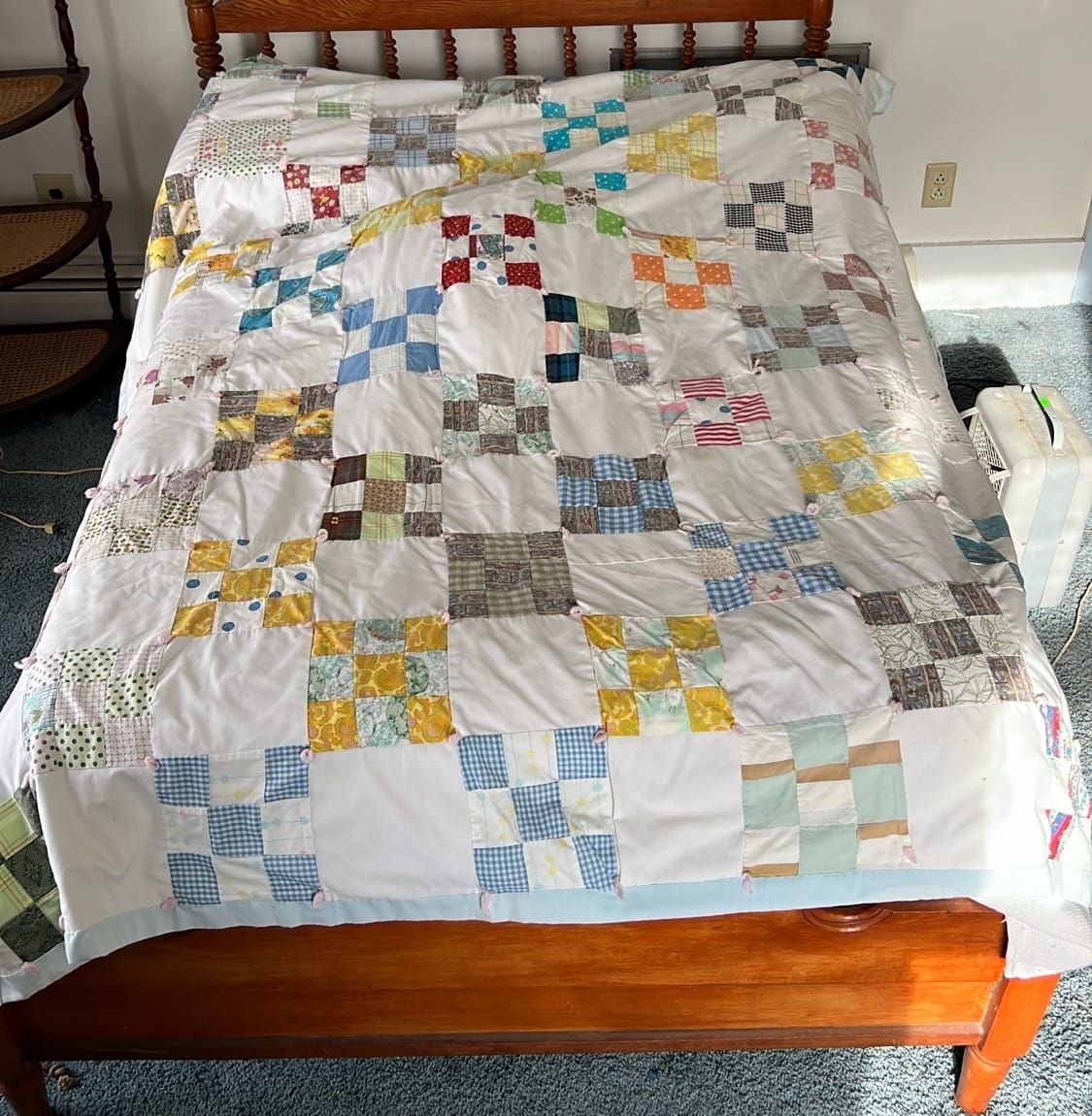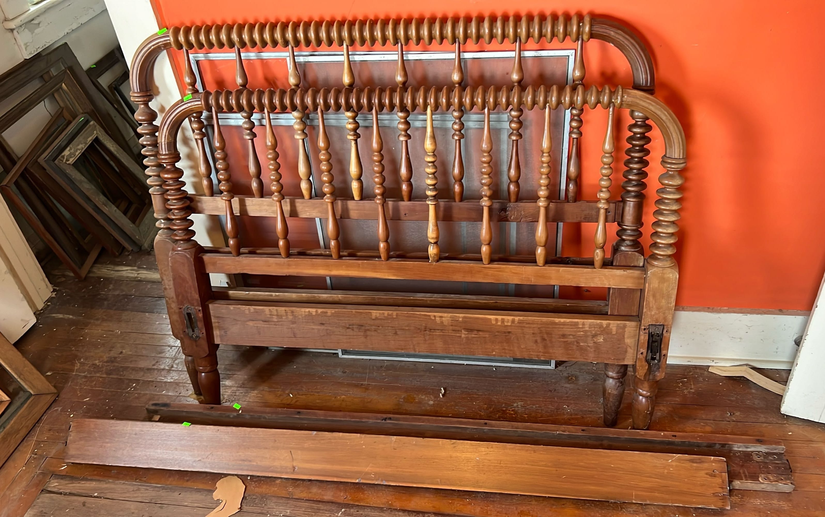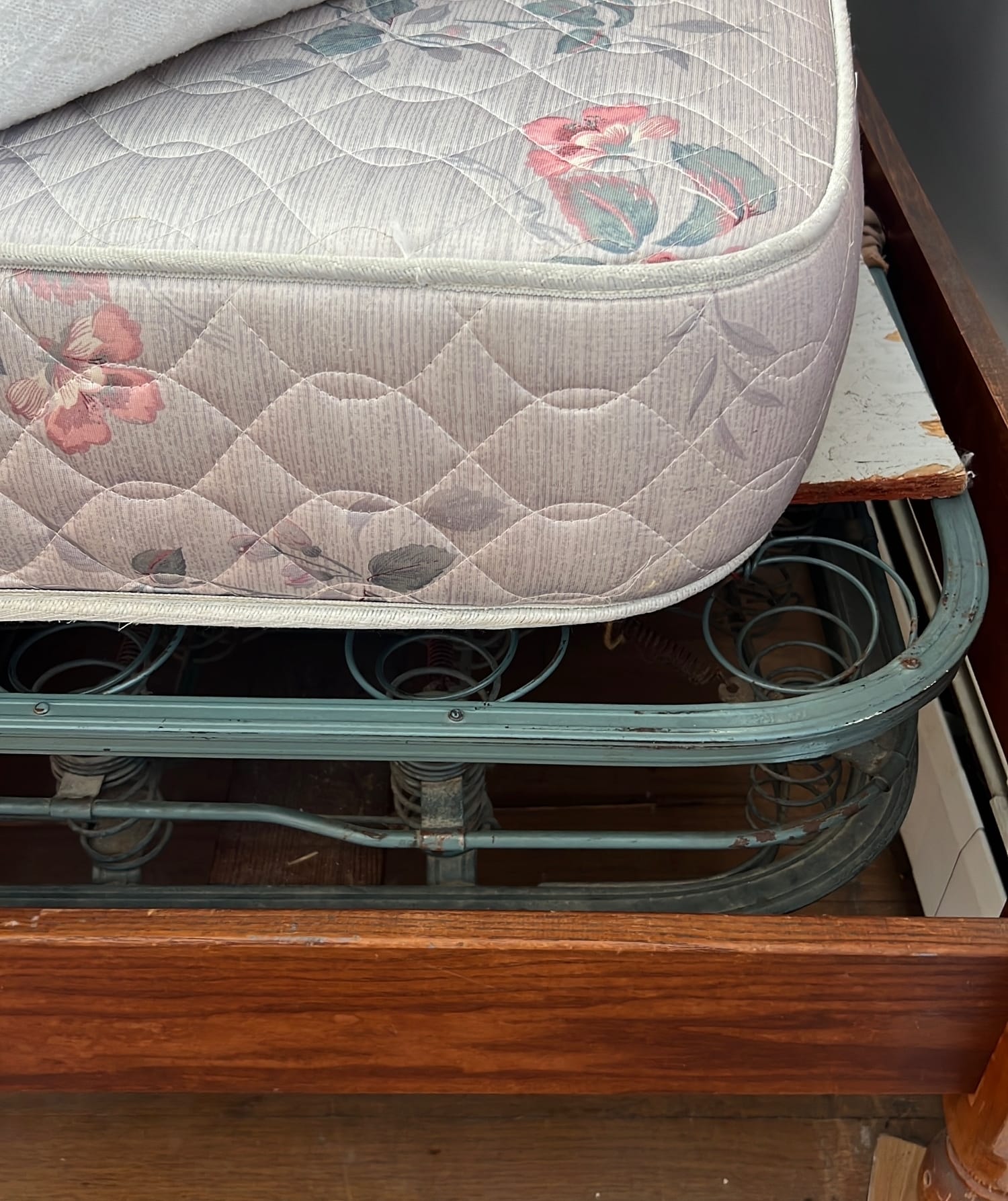 32 Vintage Wood Full Bed with Head & Foot Boards with Box Springs • Mattress • Rails & bedding & Pillows
