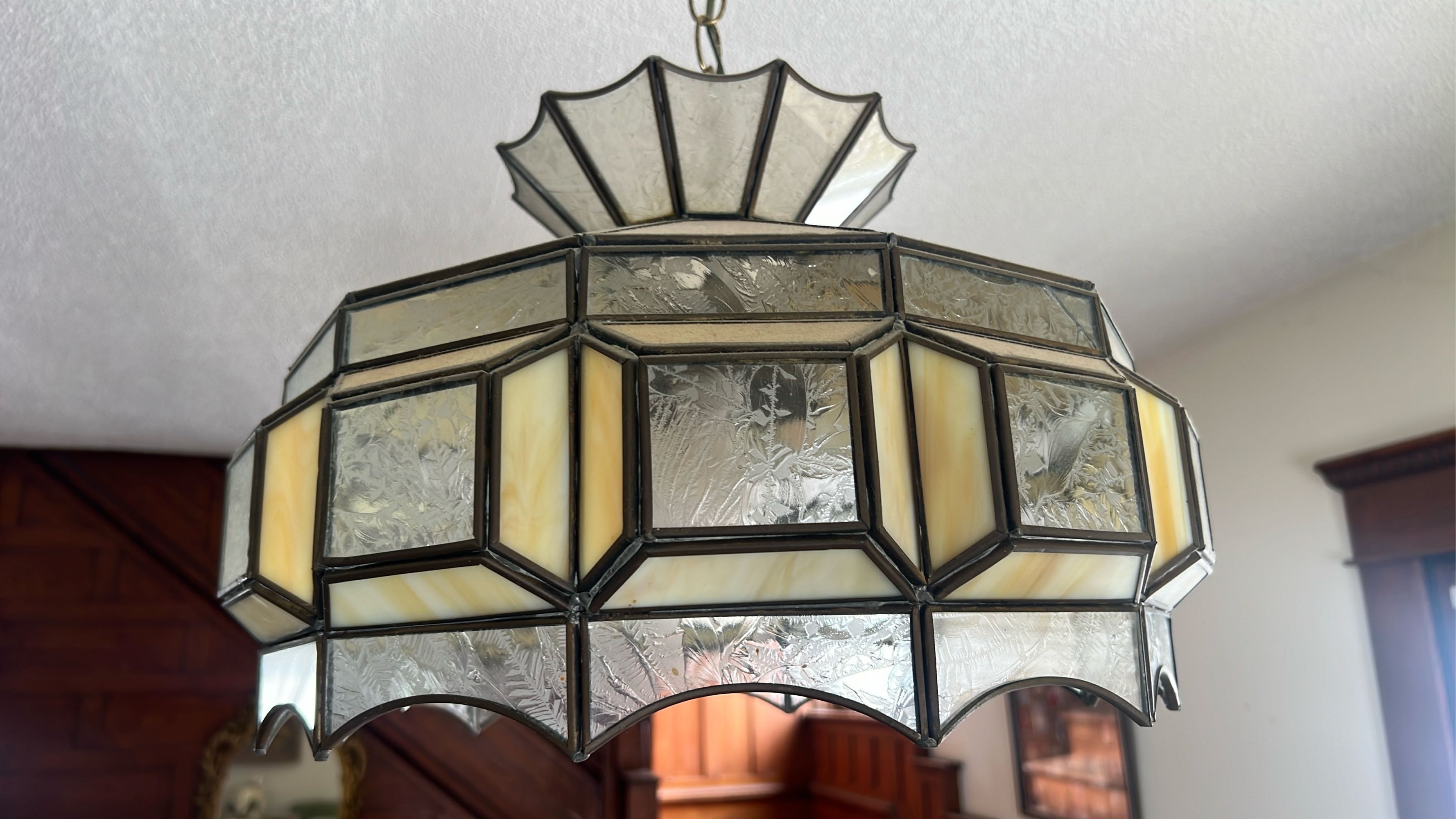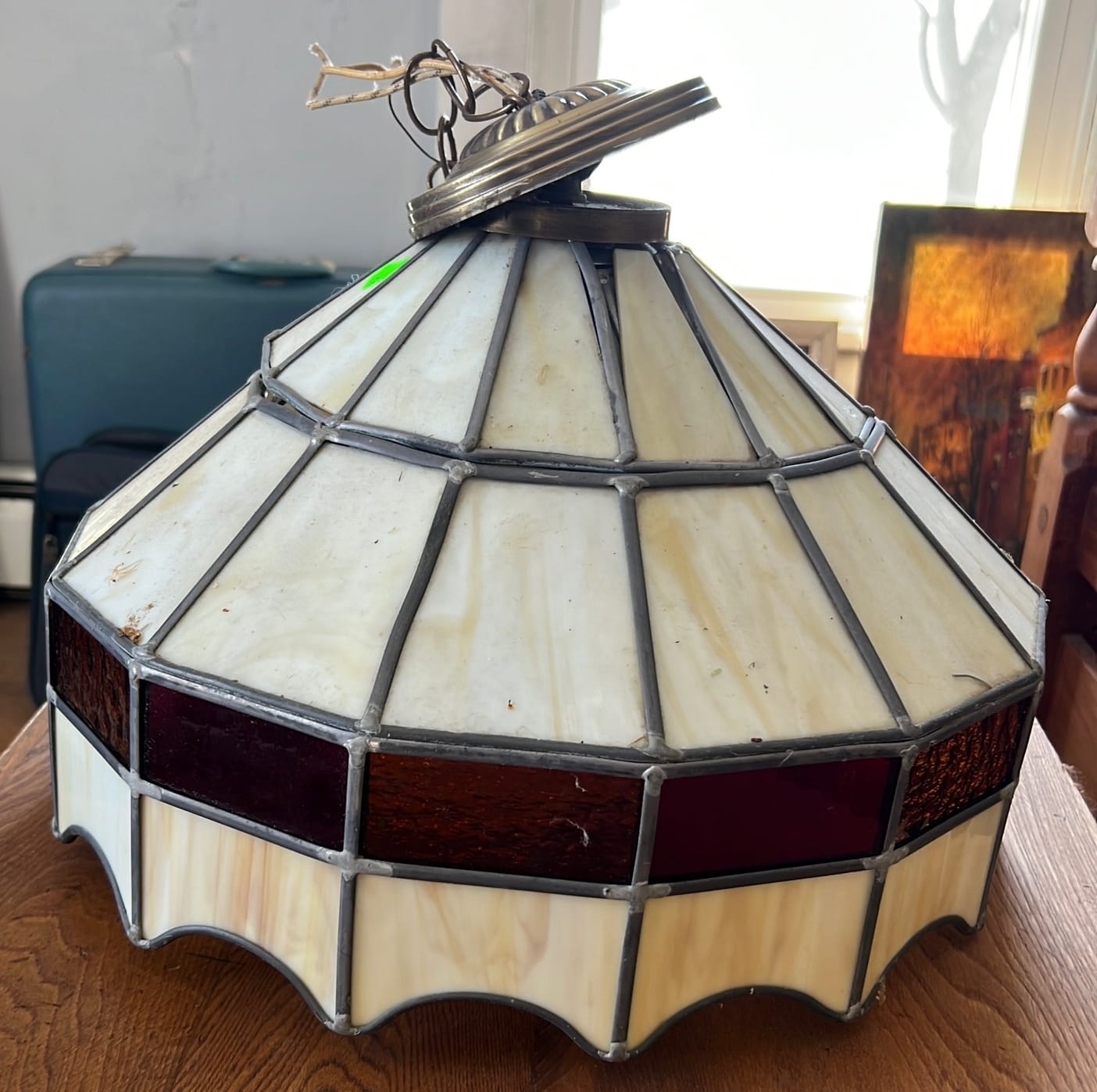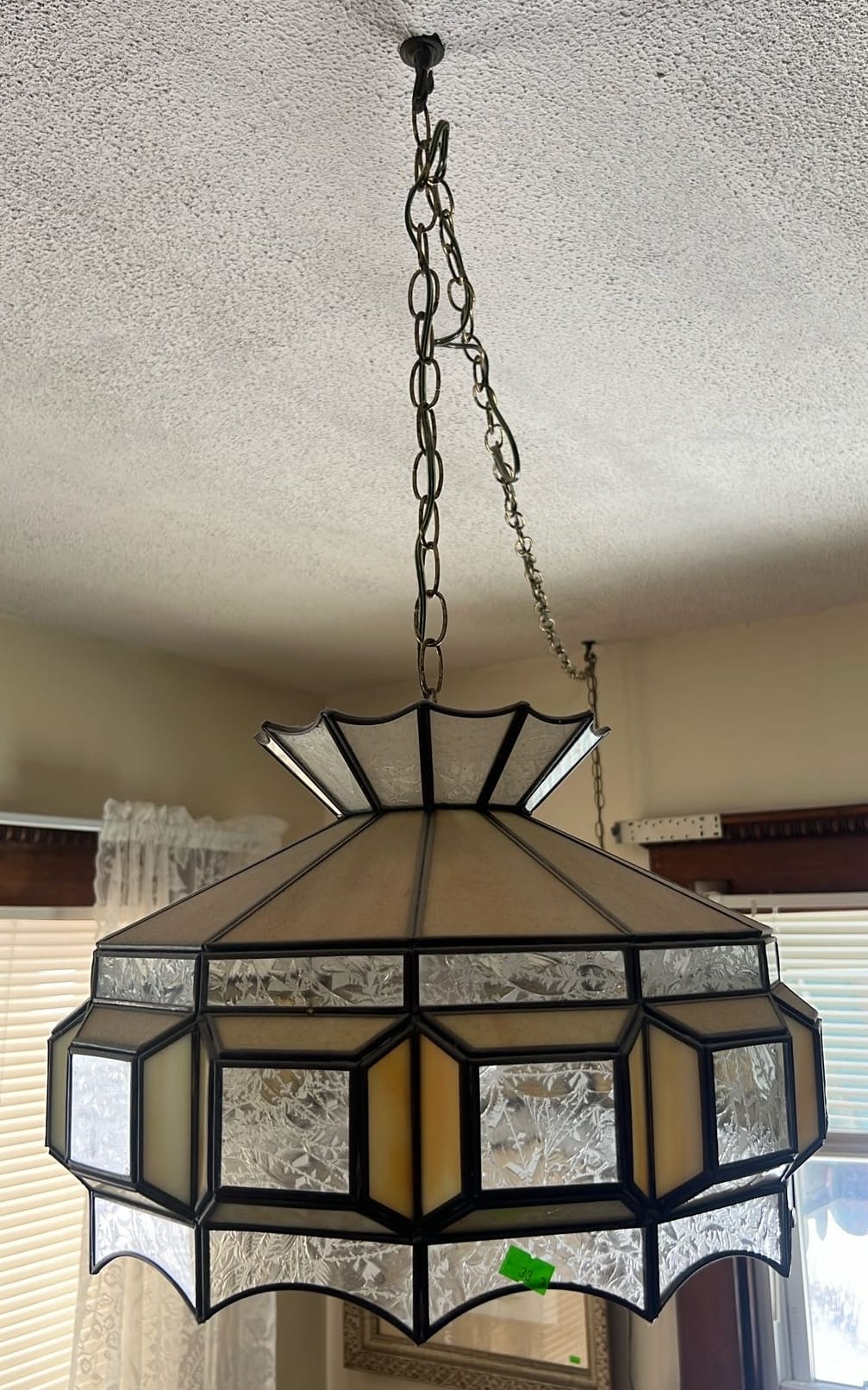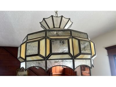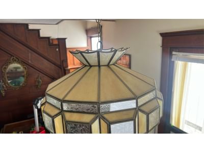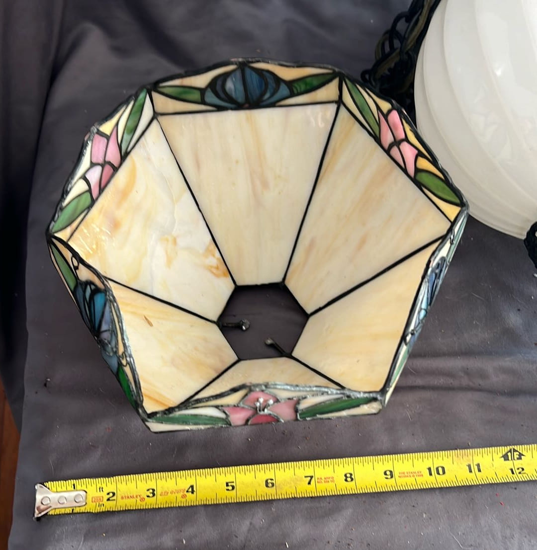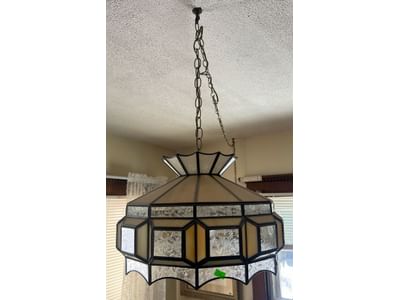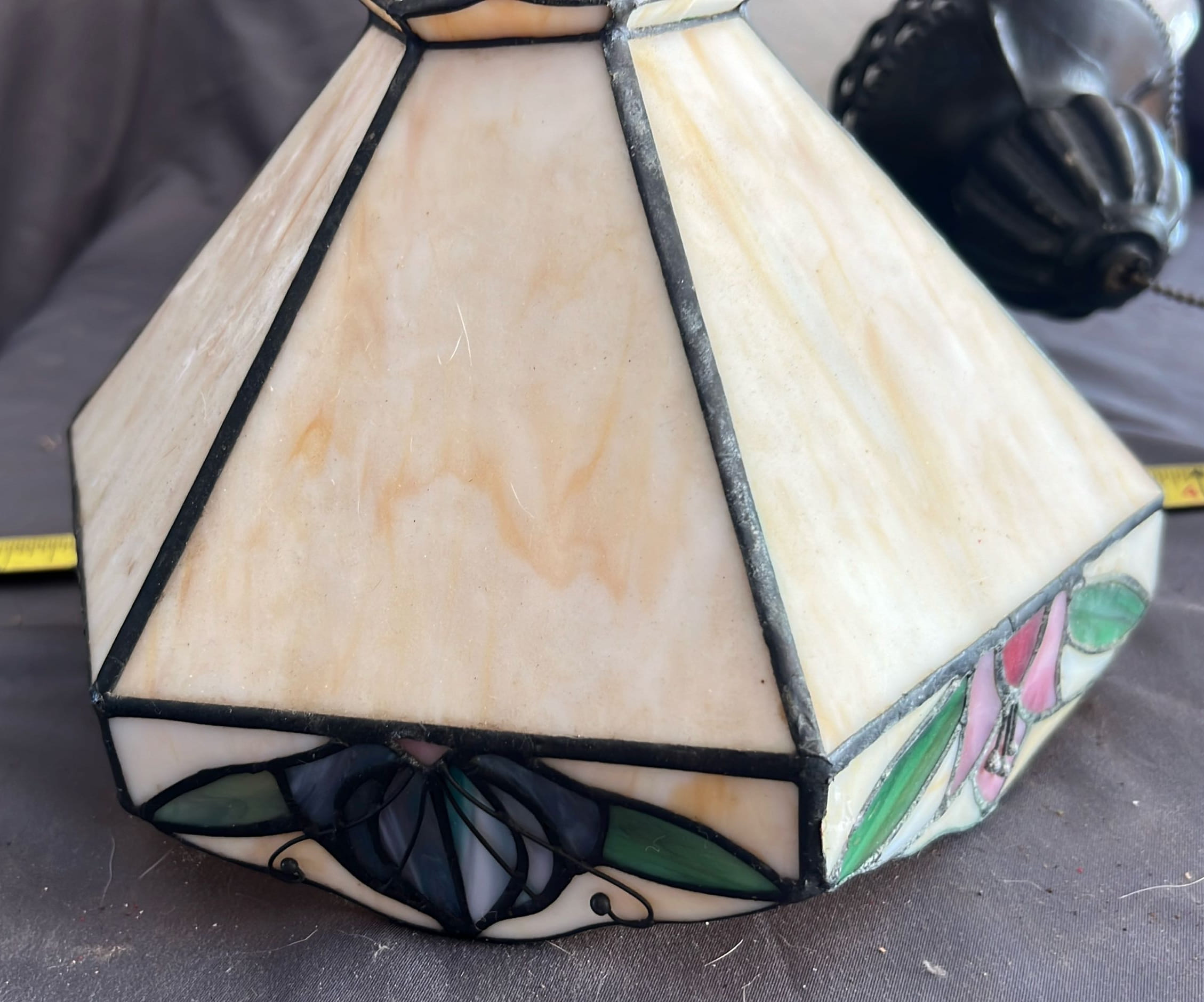 33 Hanging Light with Frosted & Stained Glass Panels 16”